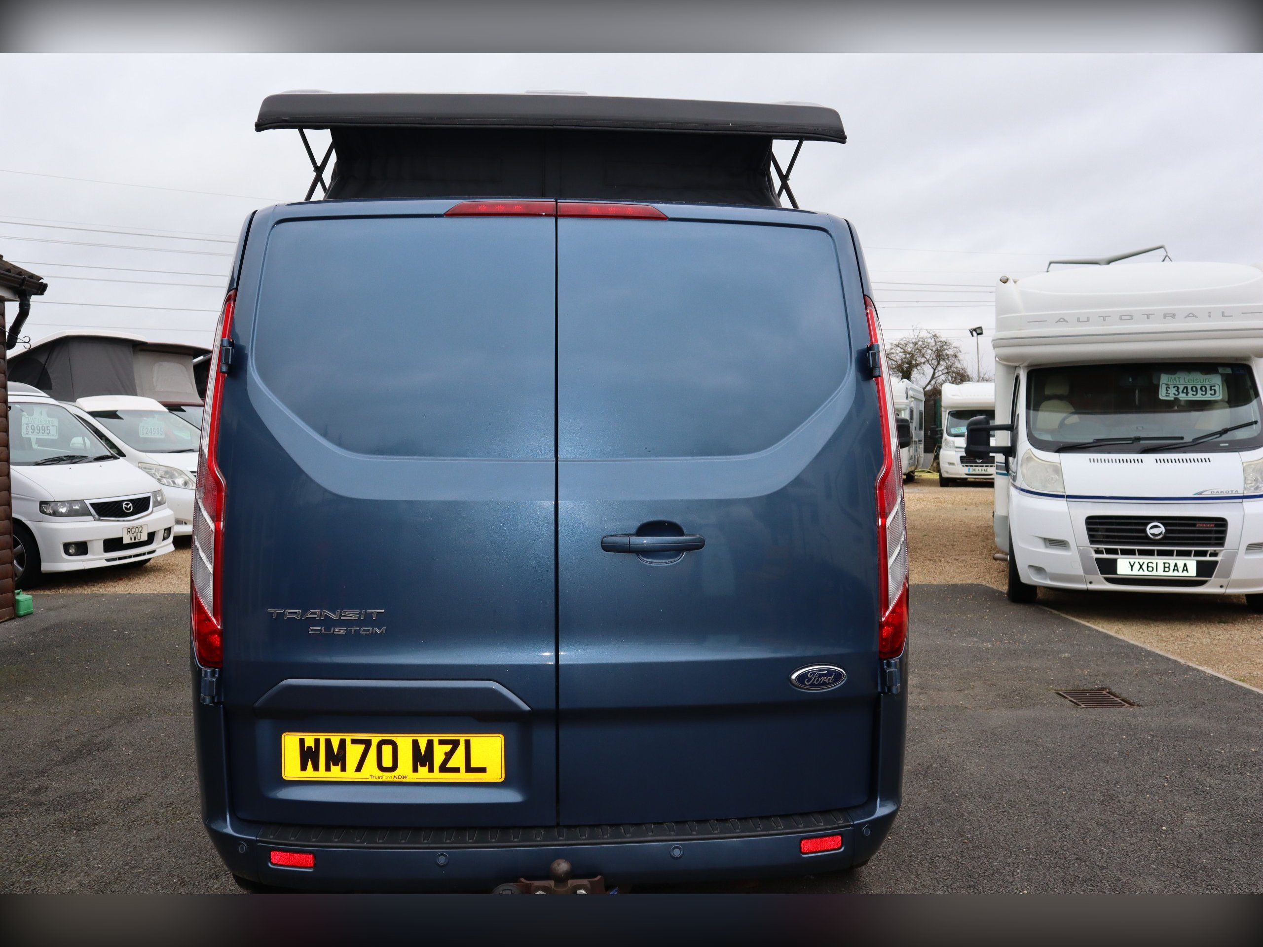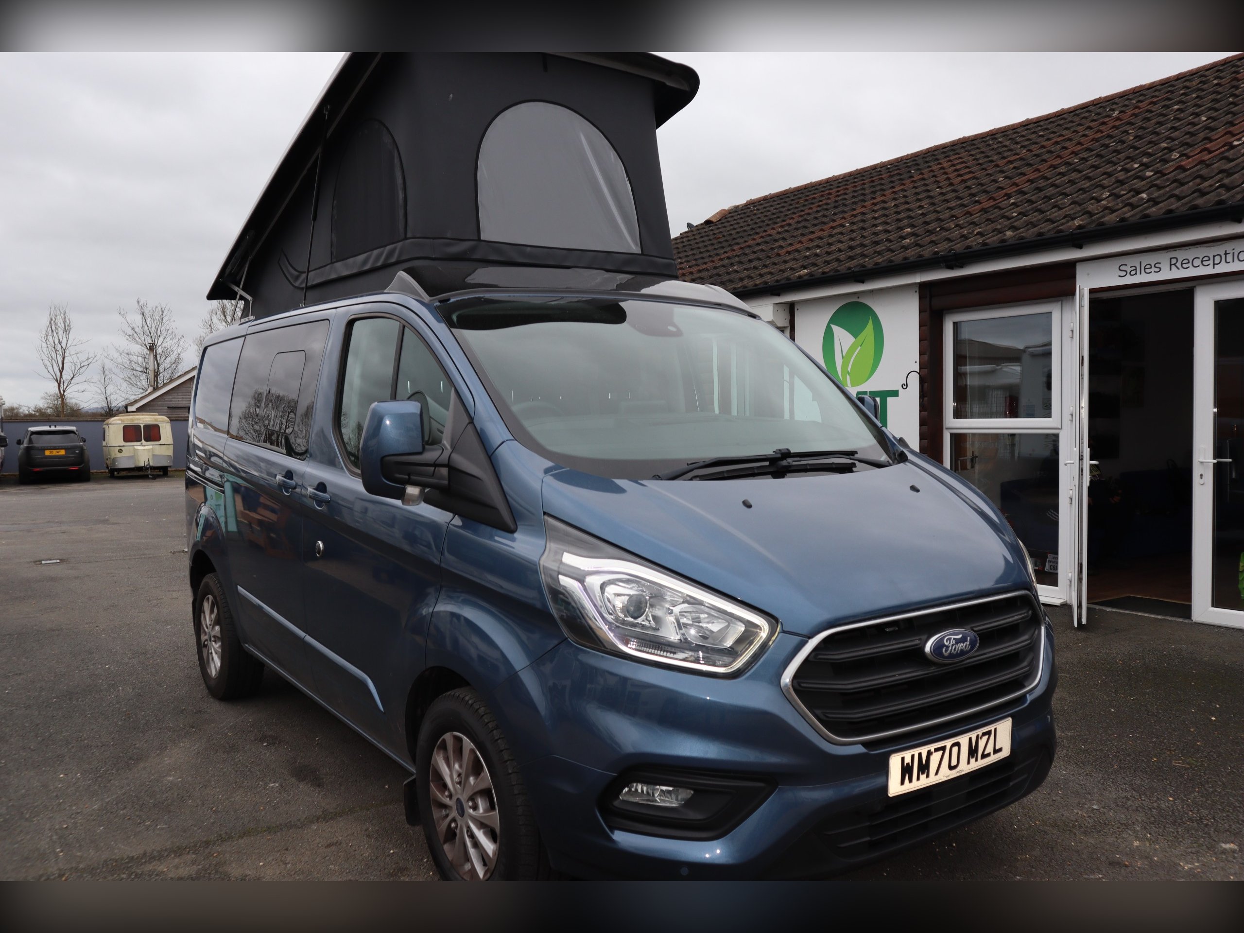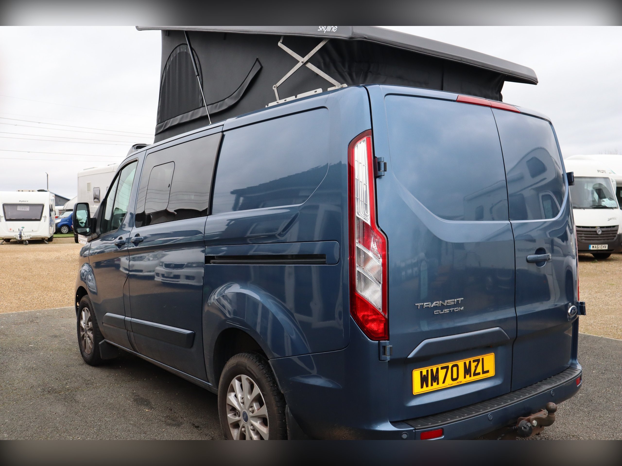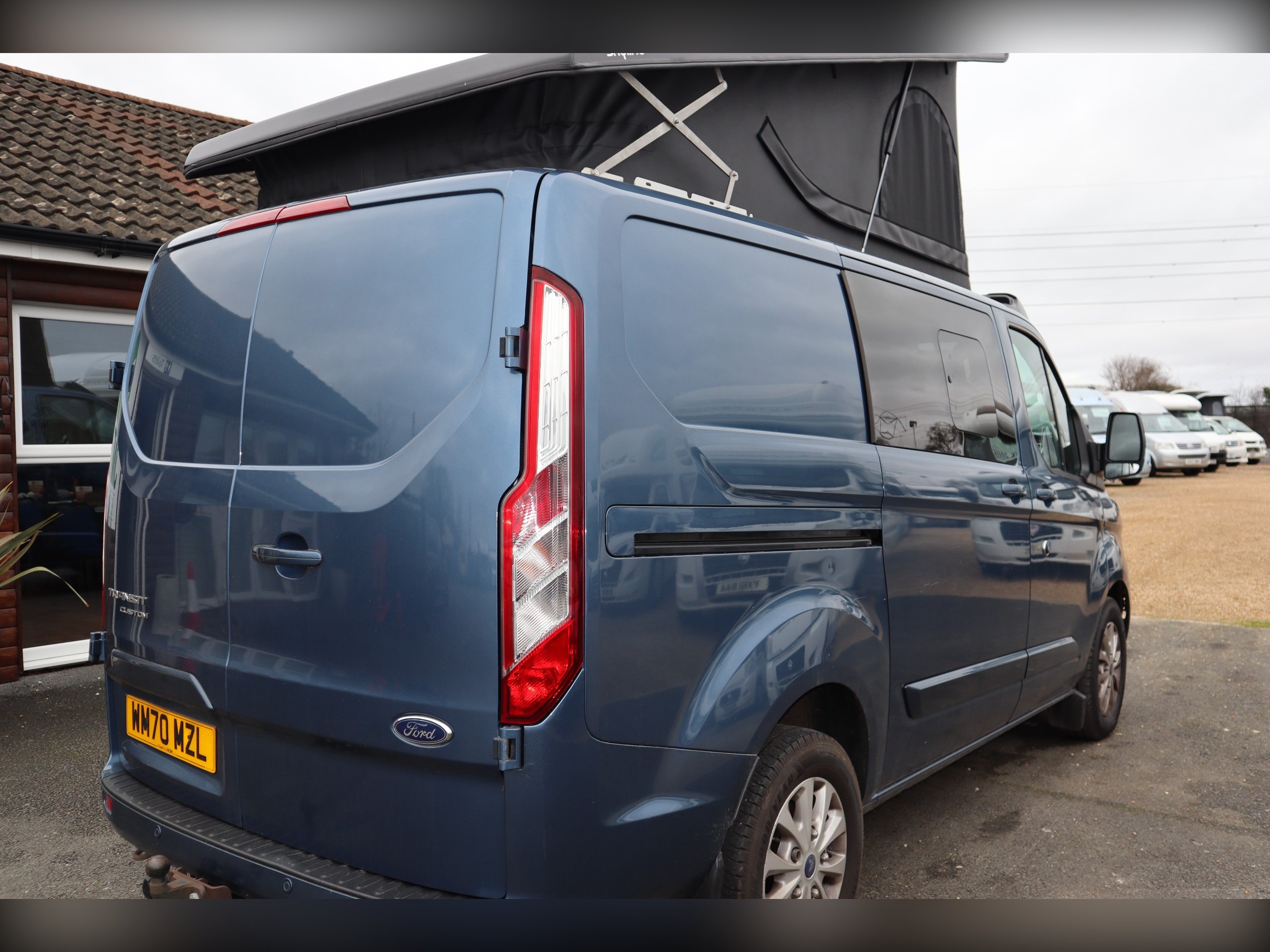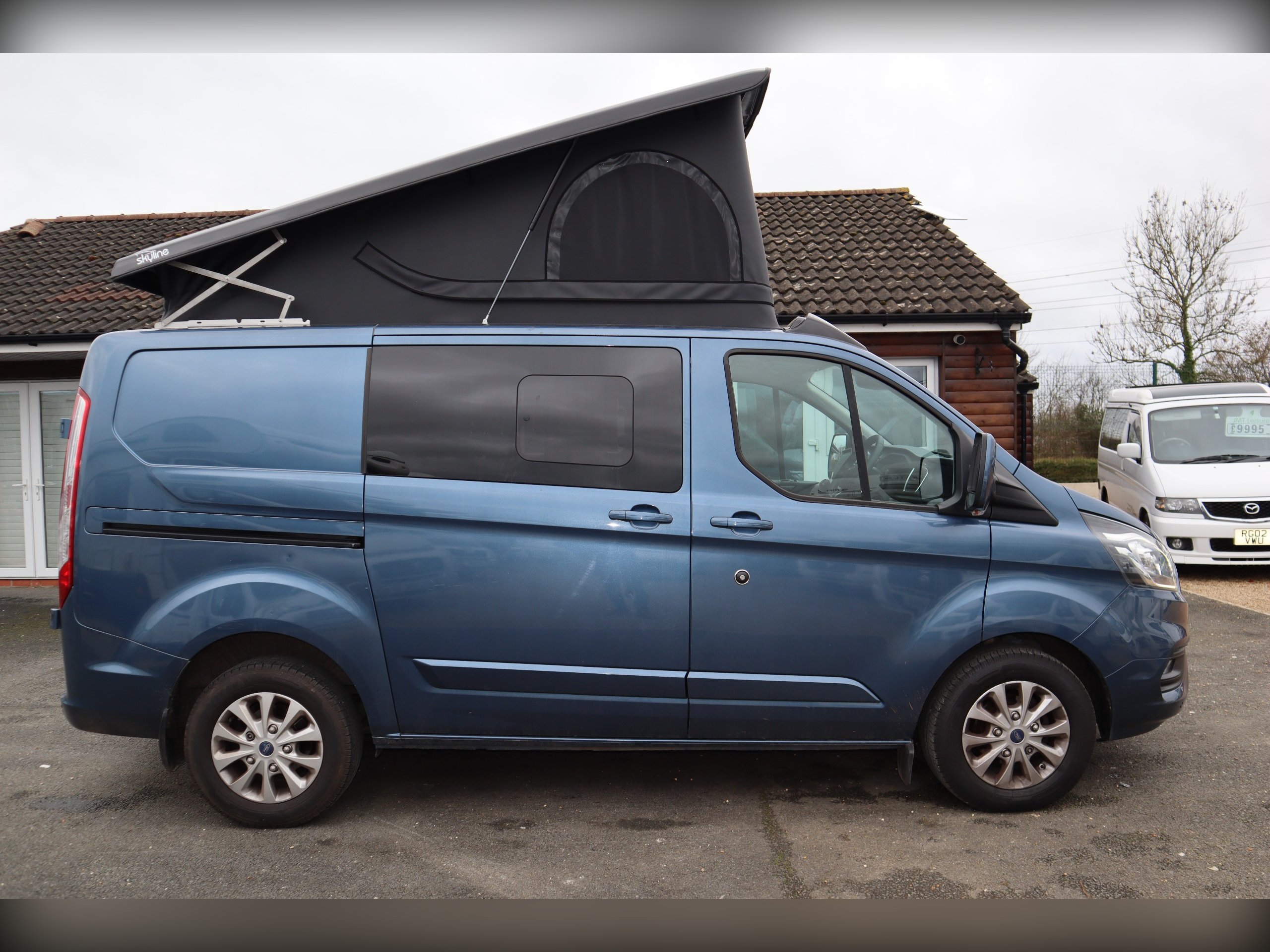 NO VAT, 1 Lady Owner from new, Ford Transit Custom Crew Van, 2.0 300 EcoBlue Limited model, 130 bhp, manual gearbox, Short Wheelbase (L1) and Low Roof (H1), with 6 seats for passengers plus cargo, meeting Euro 6 emissions standards with Start/Stop, making it a versatile work and family vehicle with desirable "Limited" trim features, parking sensors, air con, and connectivity. Bulkhead has been removed but comes with van. Skyline Pop Top Roof Fitted