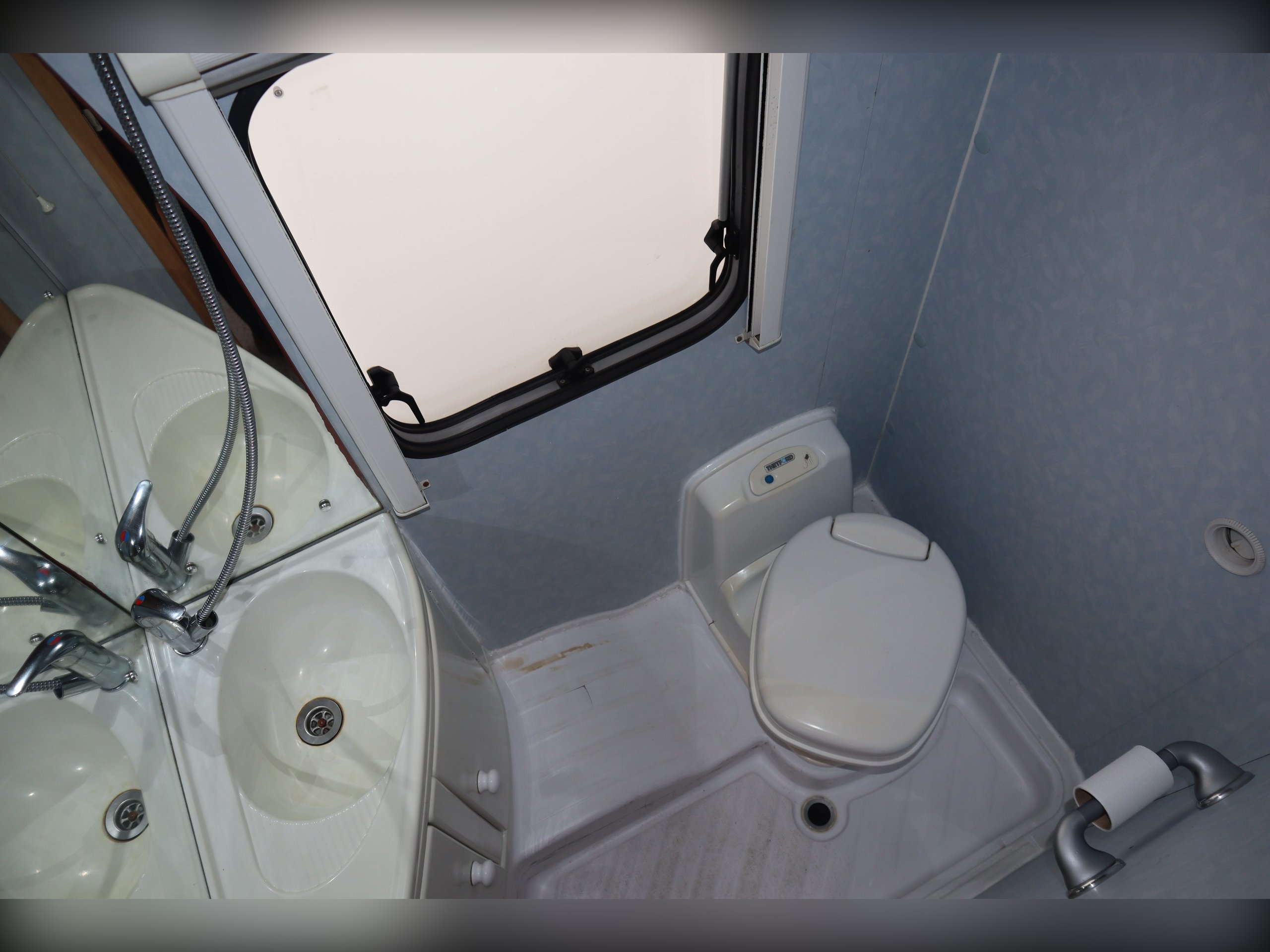 Ace Novella Roma 6 Berth 4 Belted Seats. Rear garage which opens on the near side with ample storage space. Inside at the rear is a large fixed bed above the garage and forward of this you will find the washroom which includes a toilet, sink and shower. In the kitchen there is a hob, grill, and fridge freezer. Opposite in the dinette there are 2 forward facing seats with full seatbelts and a bench seat opposite, which converts into a double bed. Upfront in the cab, there is a 5-speed manual gearbox, electric windows & mirrors. The over cab bed can be neatly stored away to create extra headroom for travelling. Excellent fixed bed family motorhome with ample storage.