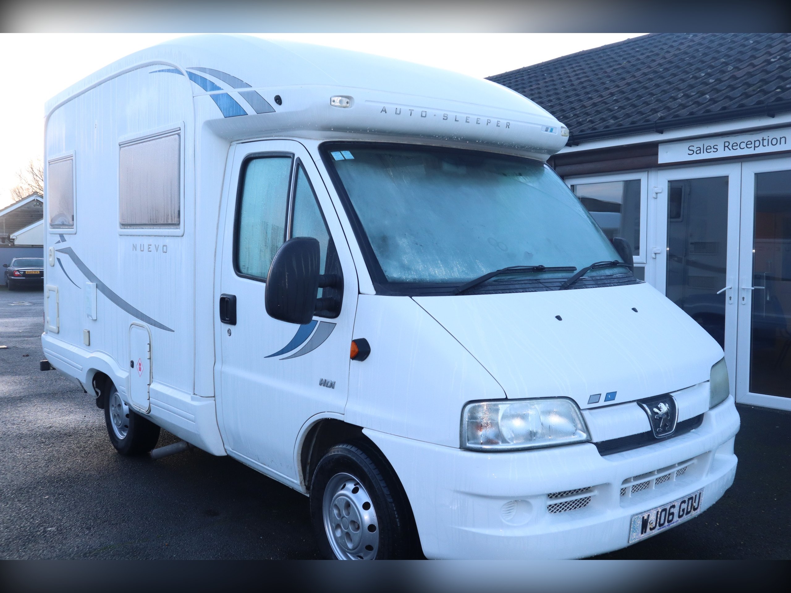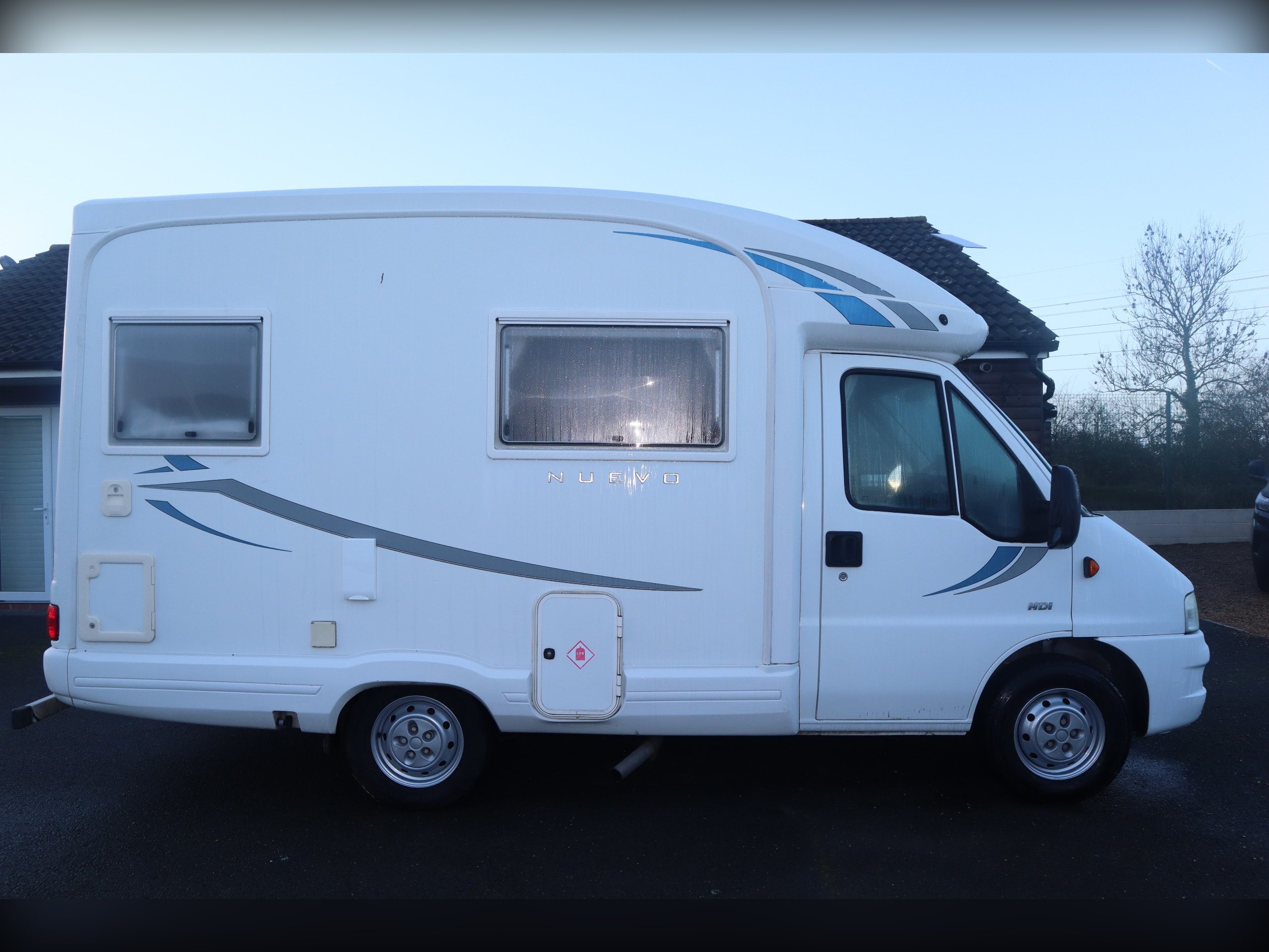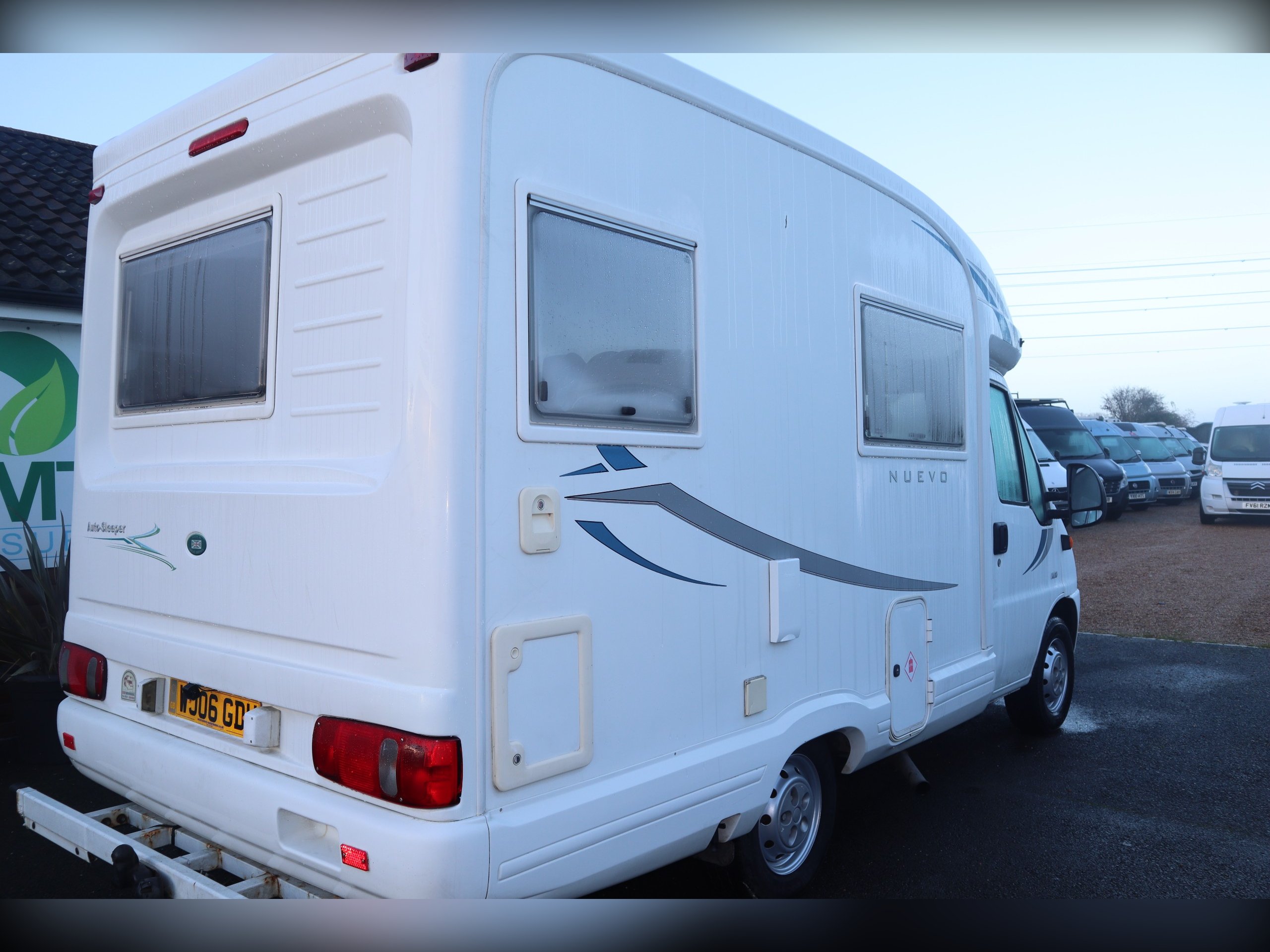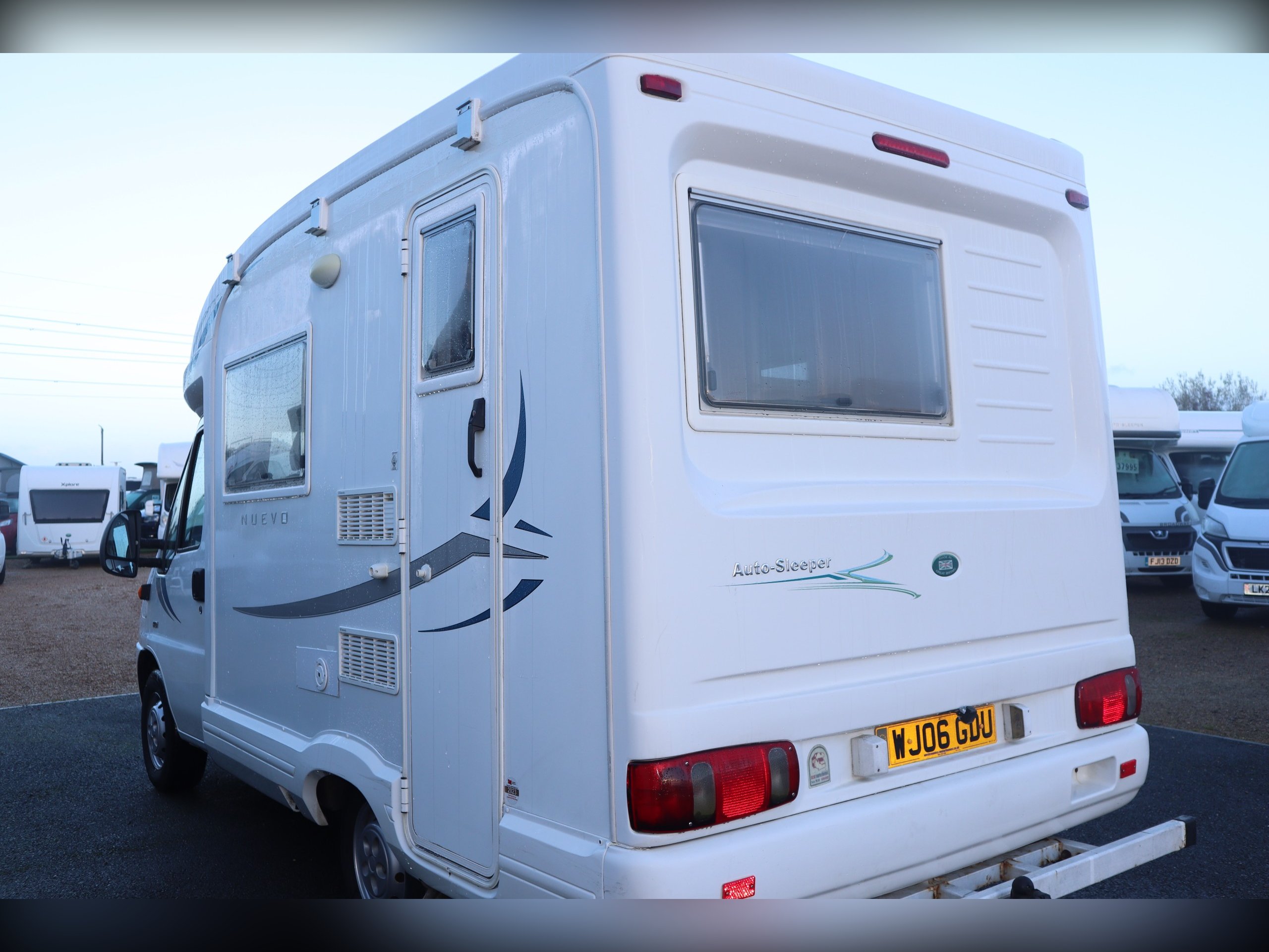 AutoSleeper Nuevo, 2 Berth, 2 Belts, Front Bench seats that convert to a large double bed. Rear well equipped kitchen, Side rear bathroom with cassette toilet, wash basin and shower. Lovely short compact 2 Berth Motorhome. Extras include a reversing camera..