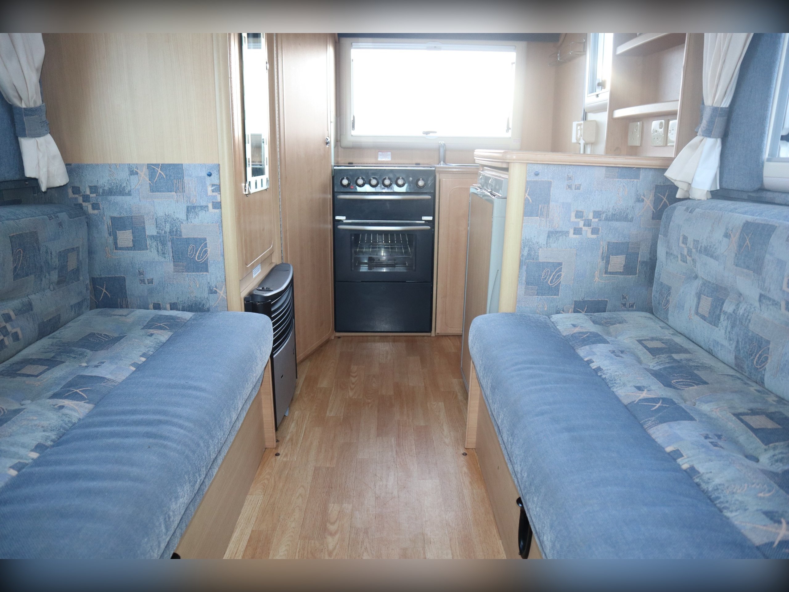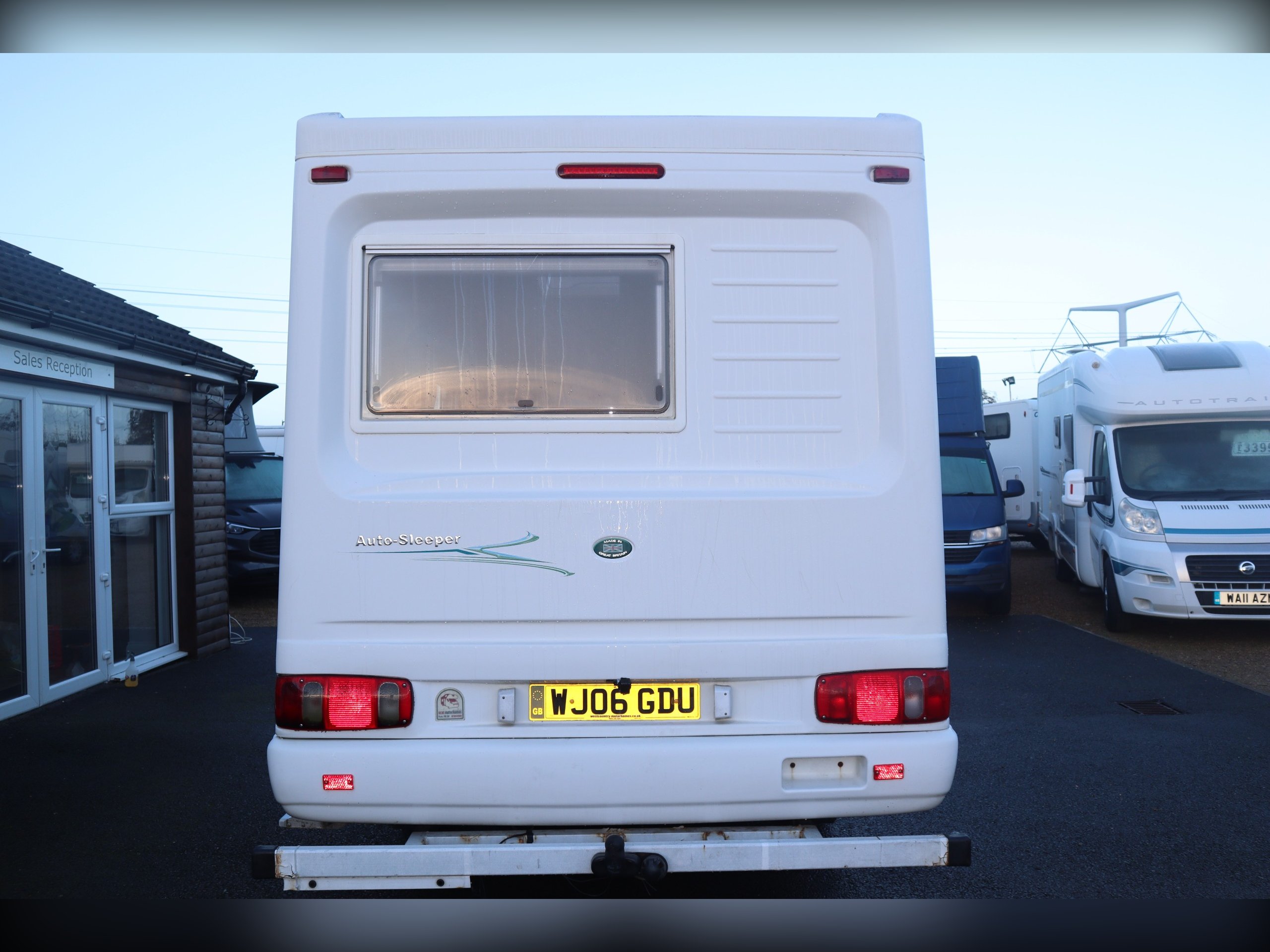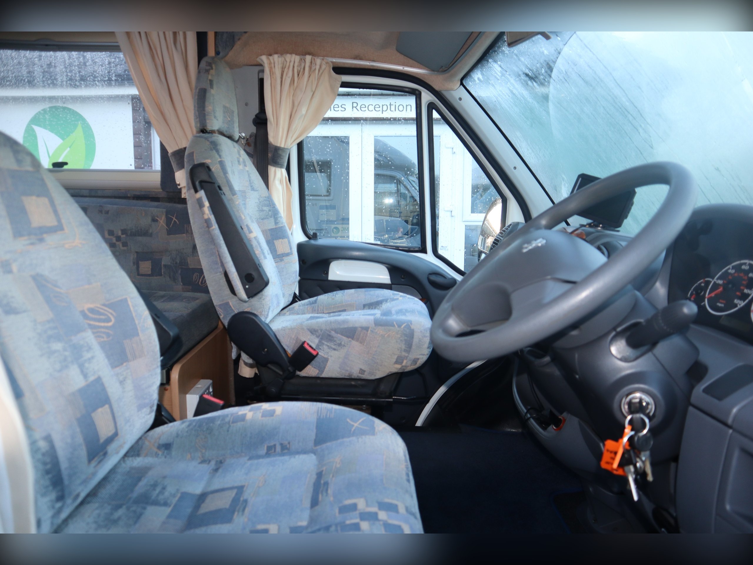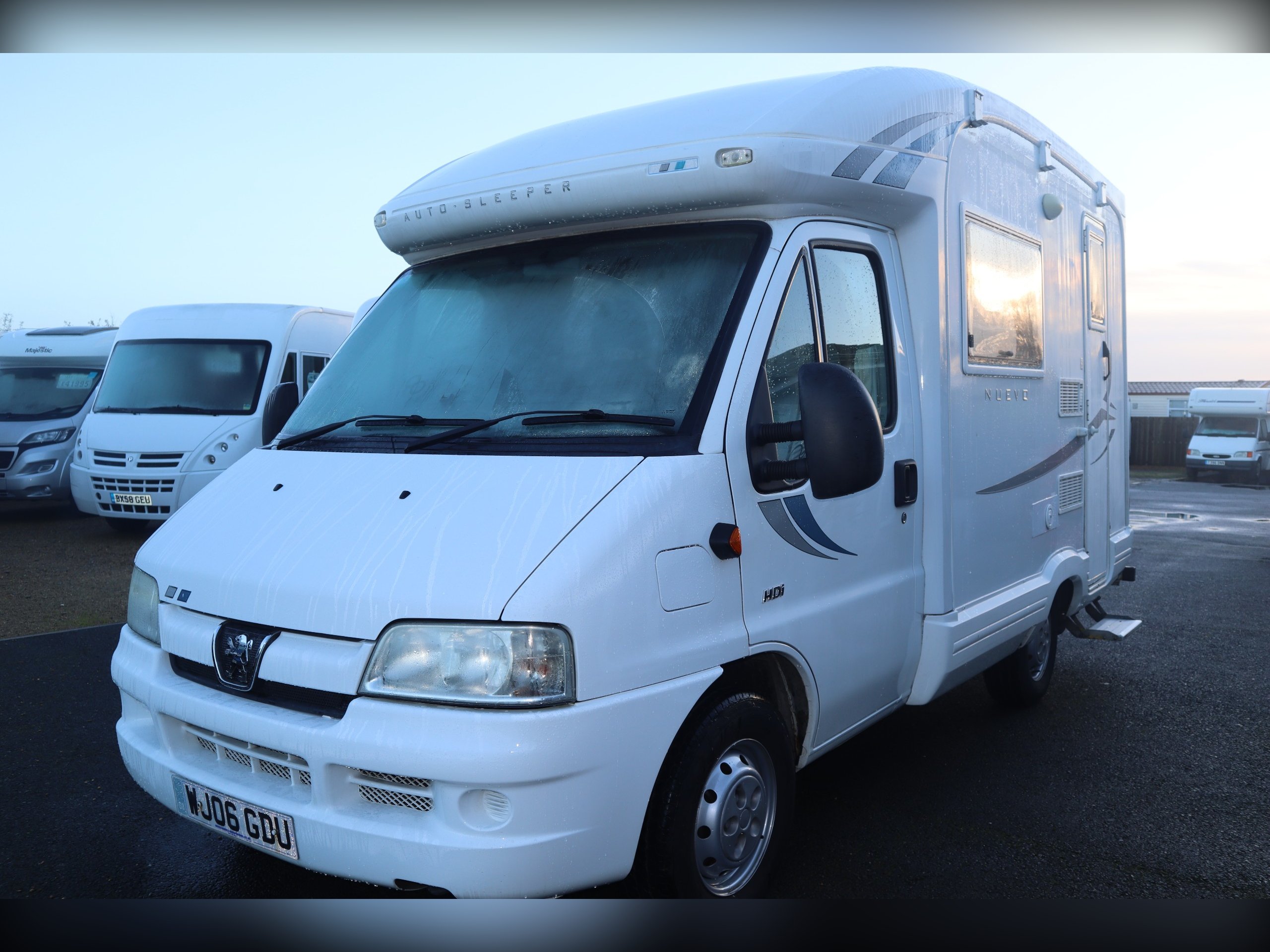 AutoSleeper Nuevo, 2 Berth, 2 Belts, Front Bench seats that convert to a large double bed. Rear well equipped kitchen, Side rear bathroom with cassette toilet, wash basin and shower. Lovely short compact 2 Berth Motorhome. Extras include a reversing camera..