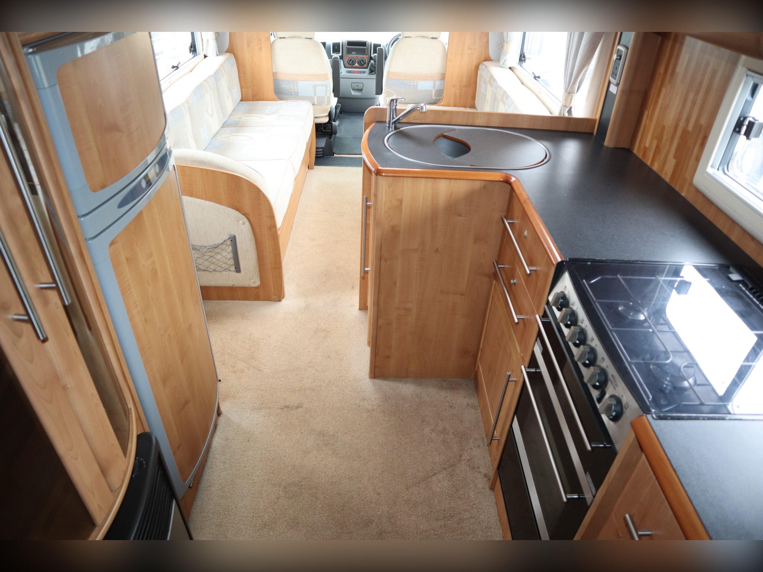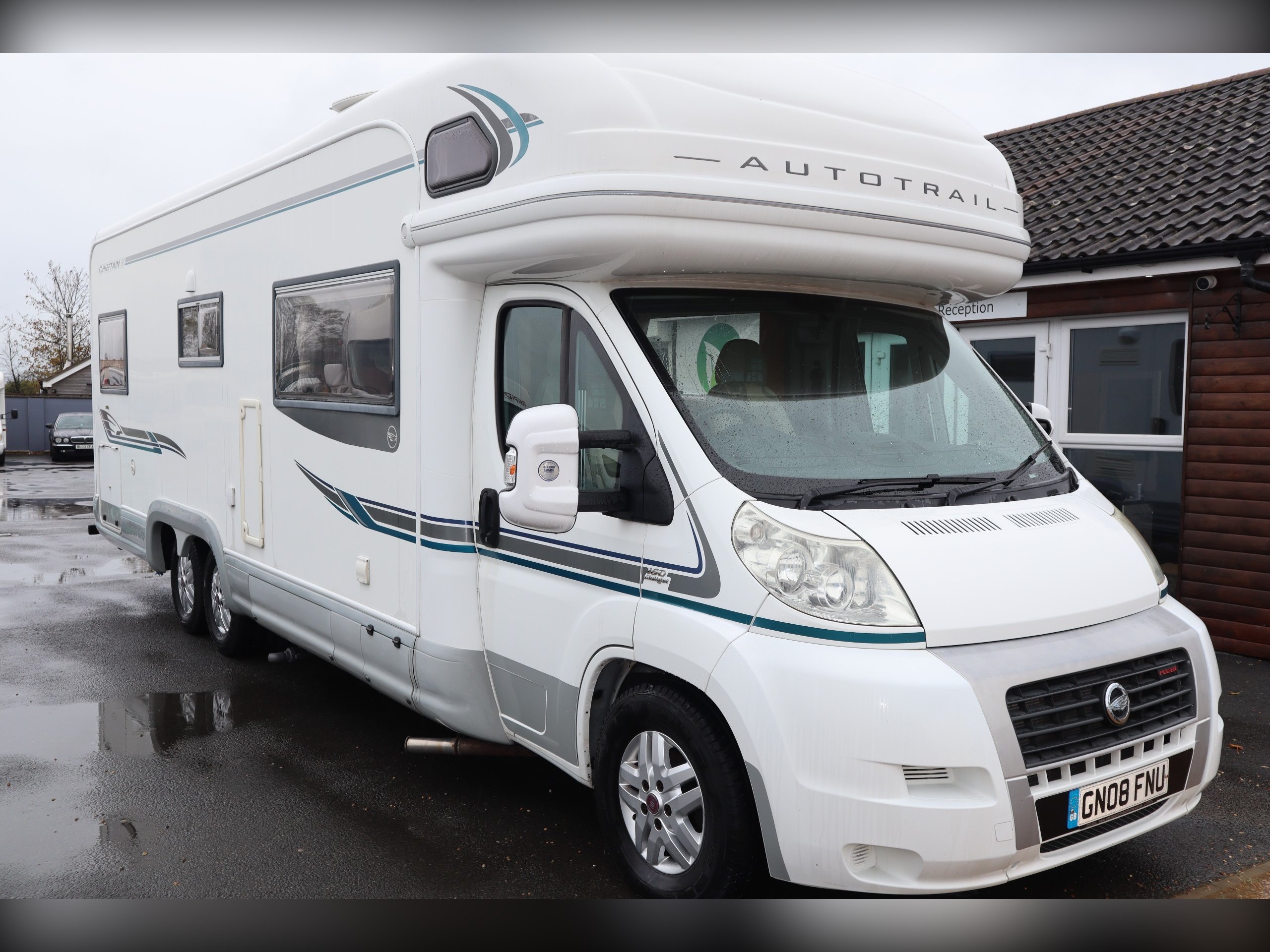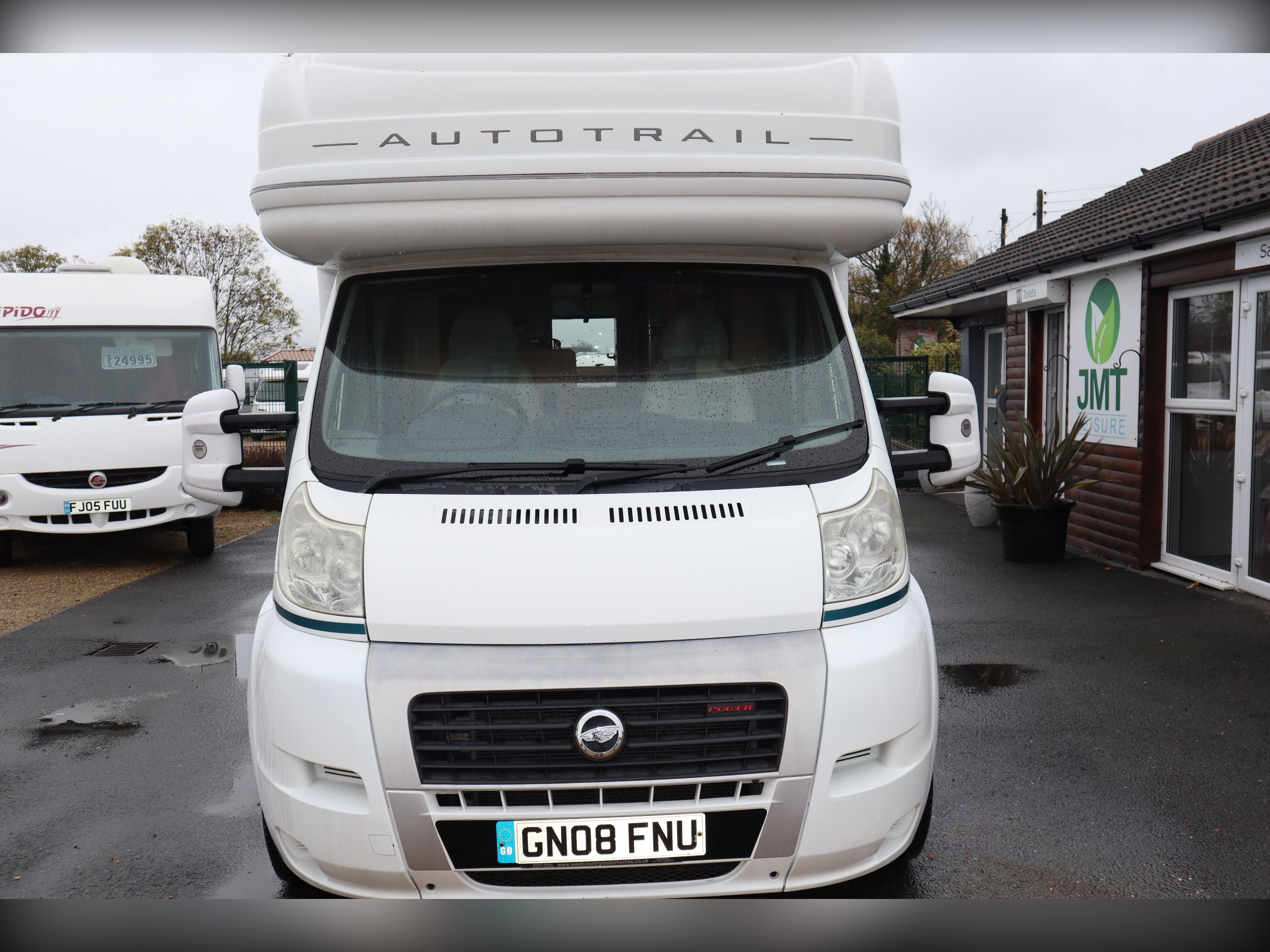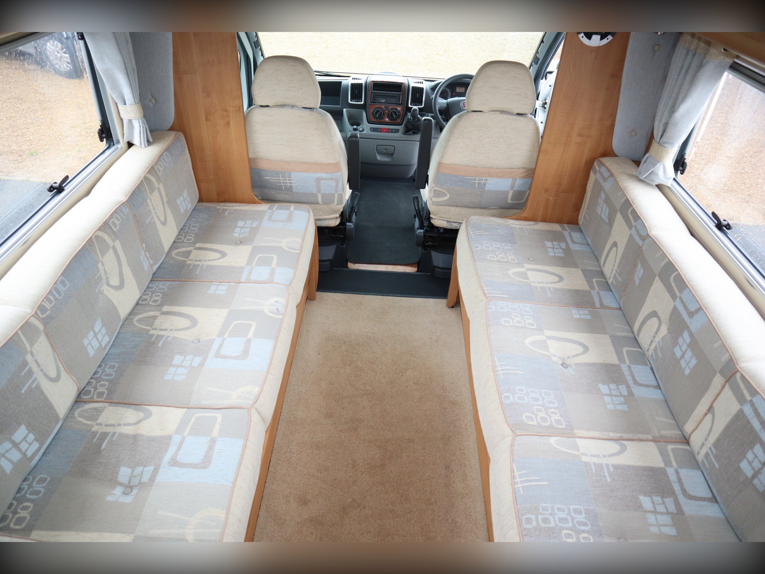 AutoTrail Cheiftan SE, 6 Berth, 2 Belts, Rear Transverse Bed, Front lounge that converts to a double, Overcab Bed. Central Well Equipped Kitchen. Mid Bathroom with separate shower. Extras include Alloy Wheels, Cab Air Con, Cruise Control, Bike Rack, Tow Bar & Awning.