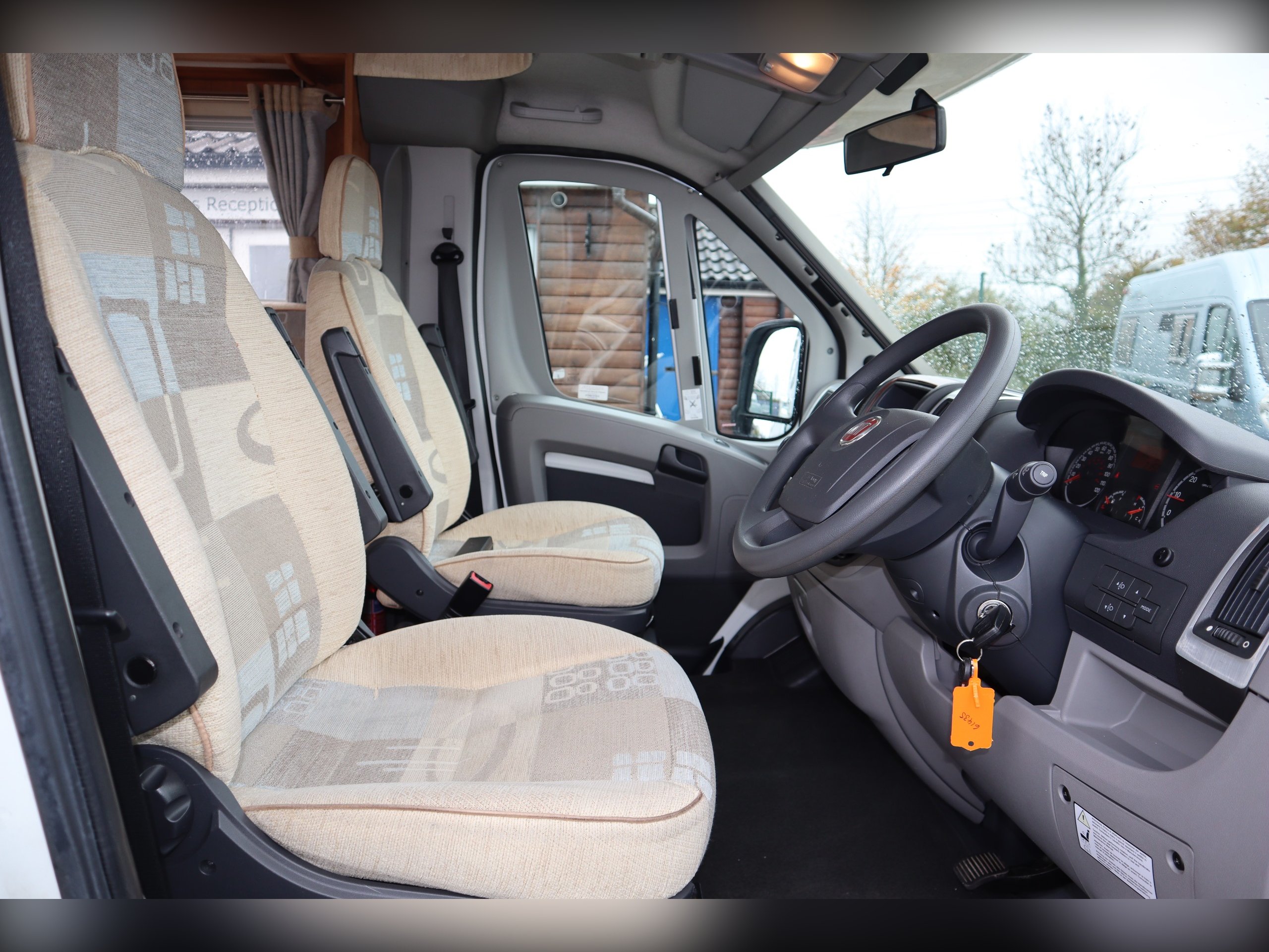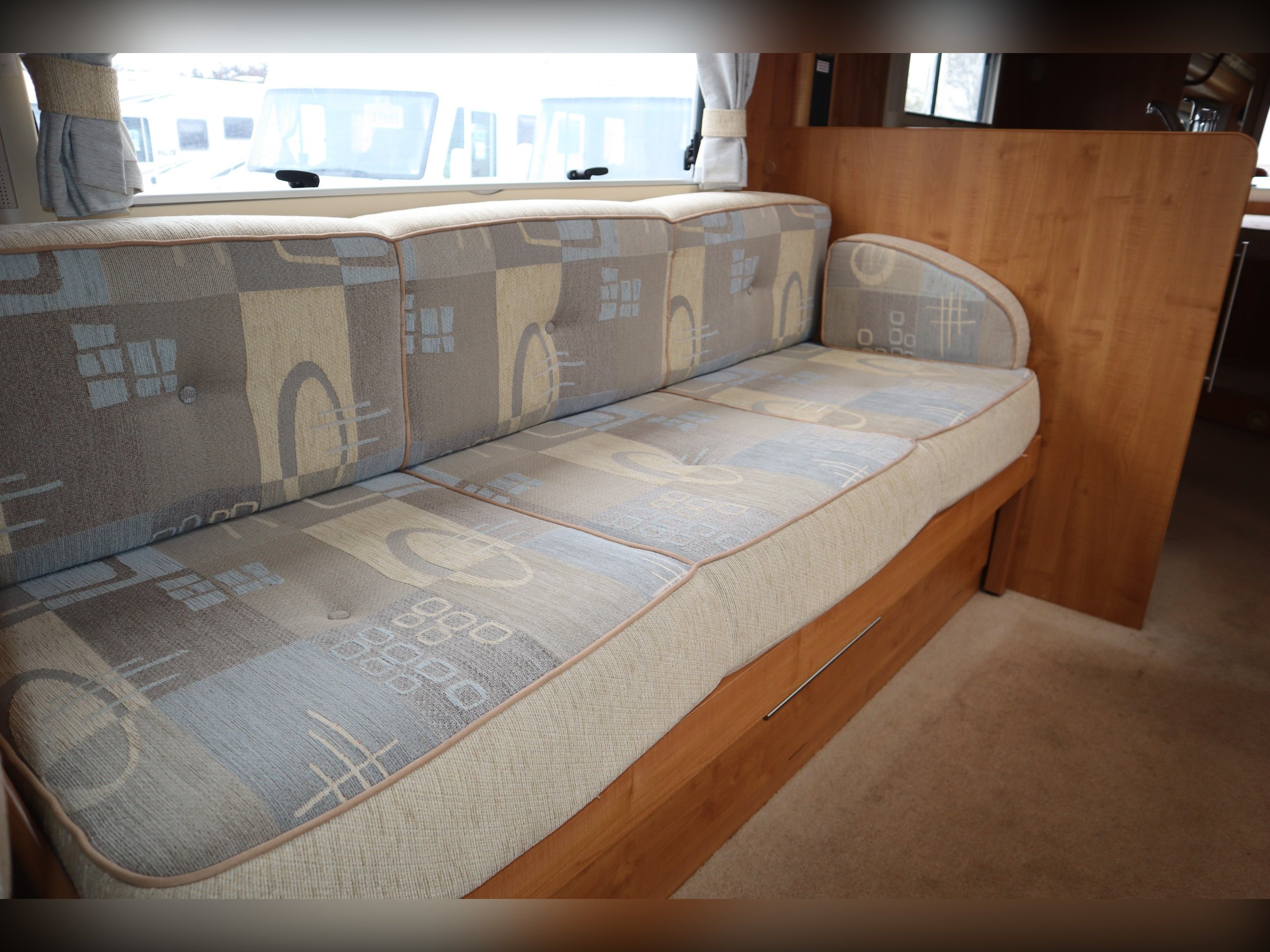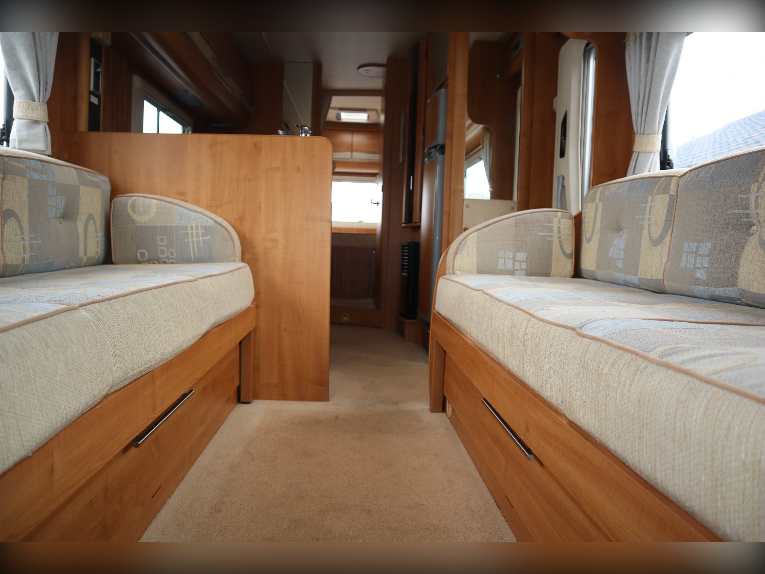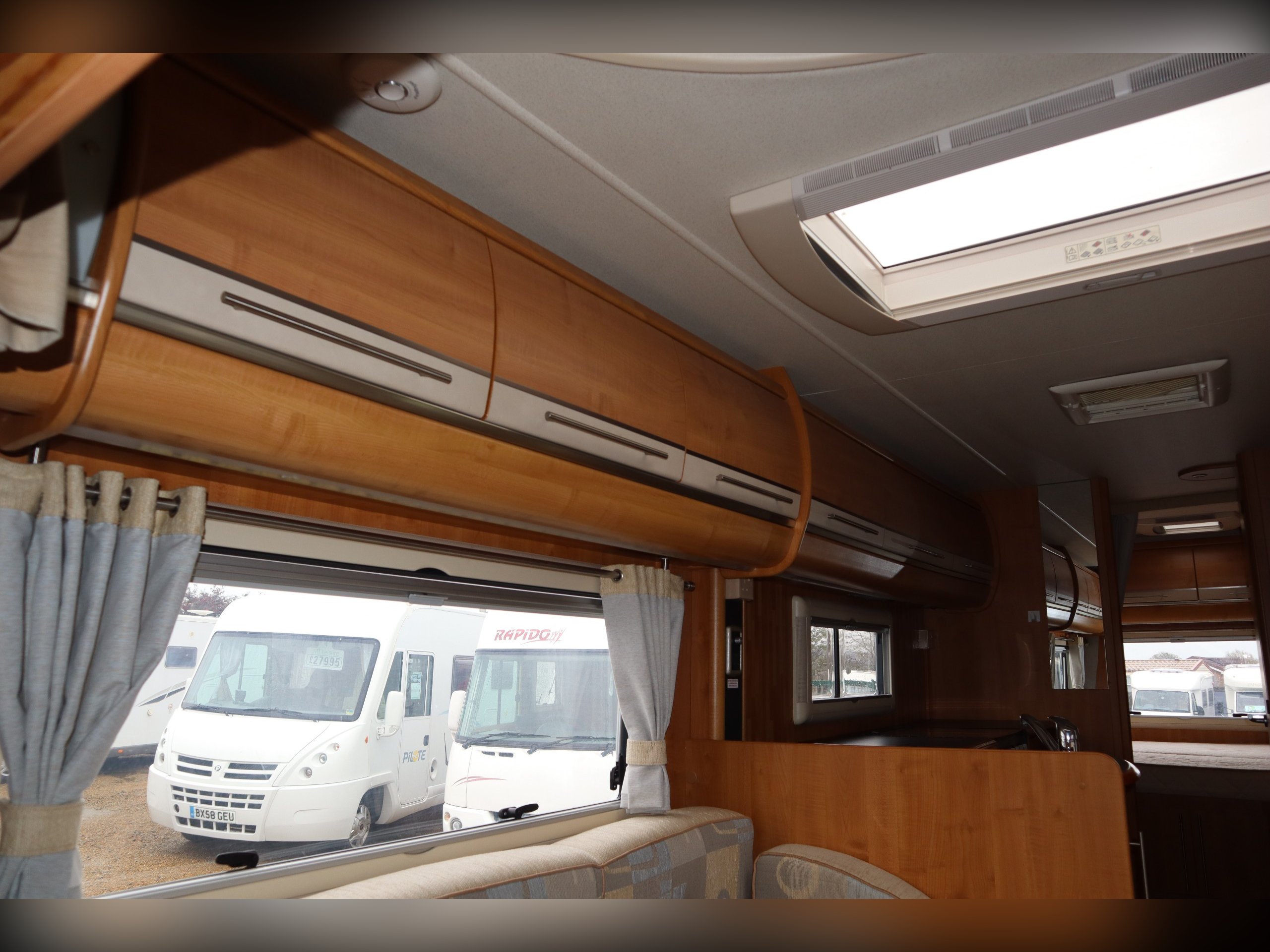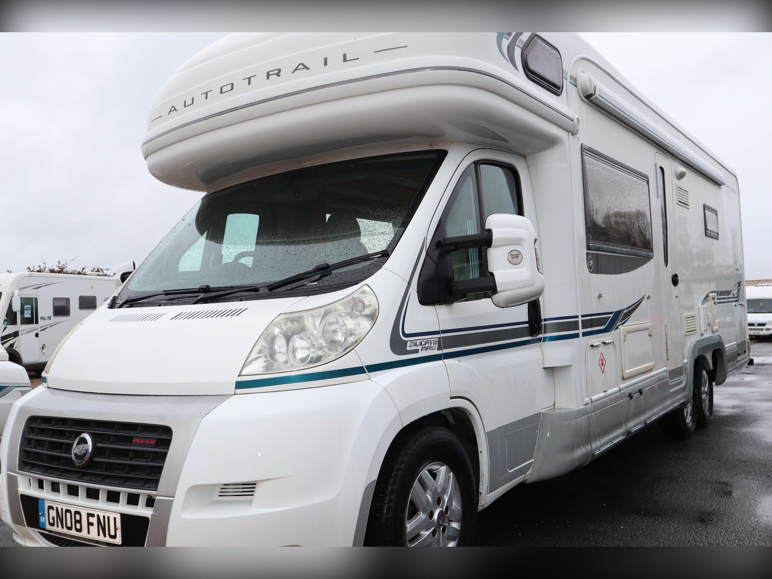 AutoTrail Cheiftan SE, 6 Berth, 2 Belts, Rear Transverse Bed, Front lounge that converts to a double, Overcab Bed. Central Well Equipped Kitchen. Mid Bathroom with separate shower. Extras include Alloy Wheels, Cab Air Con, Cruise Control, Bike Rack, Tow Bar & Awning.
