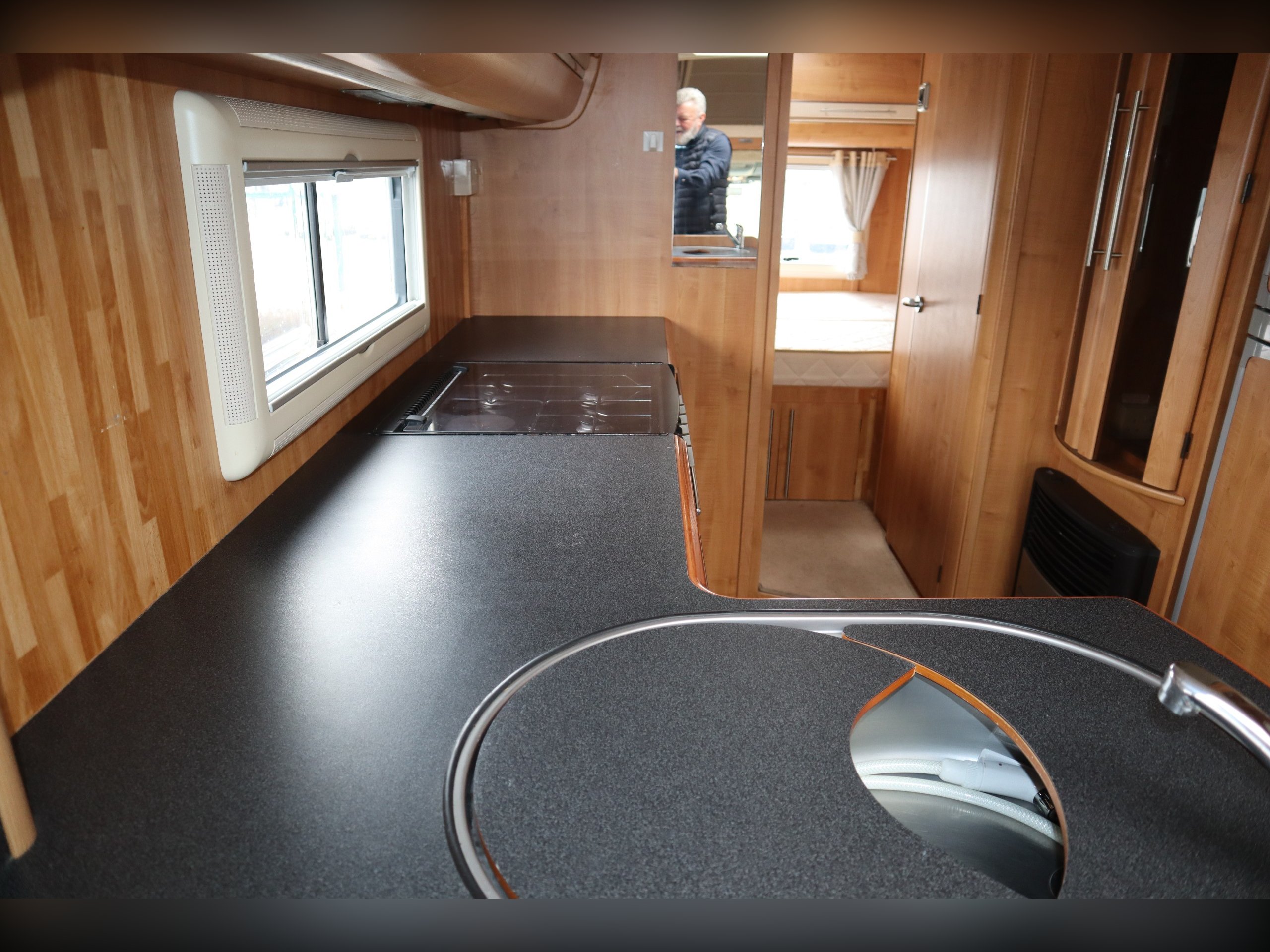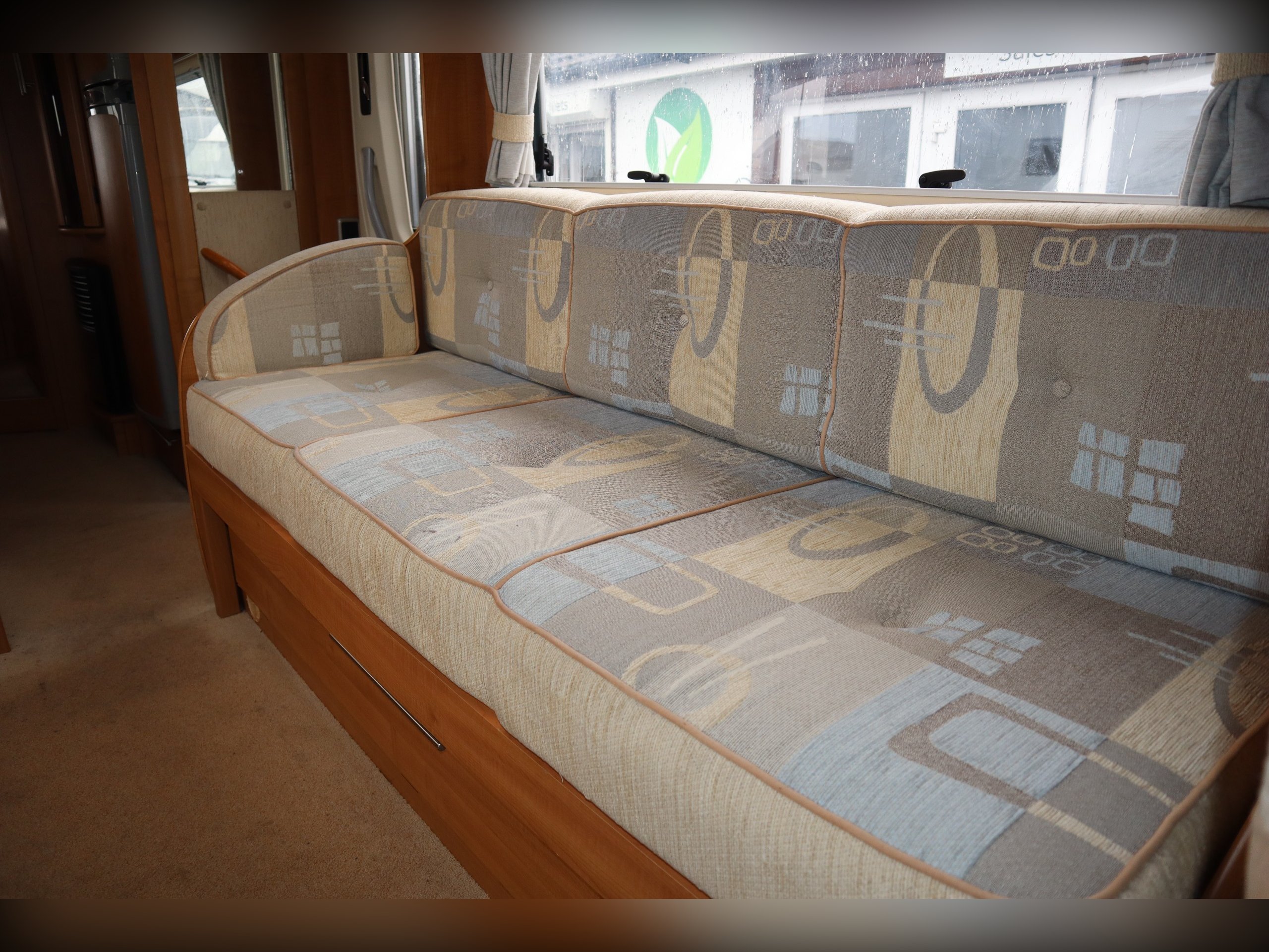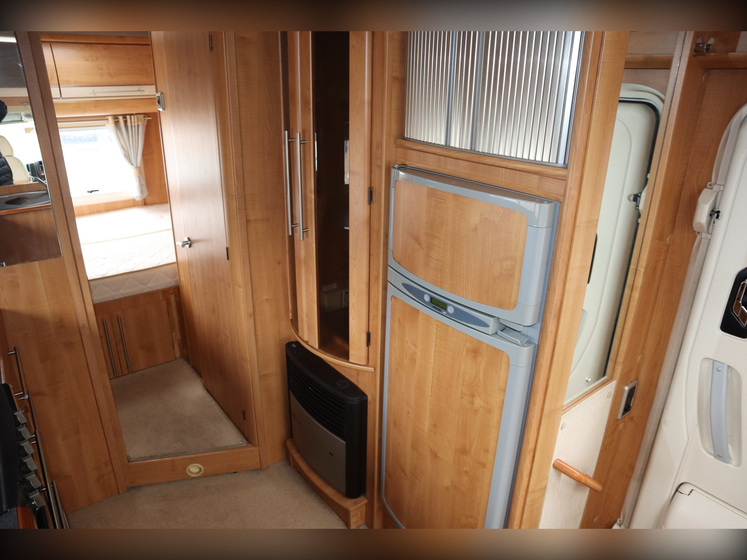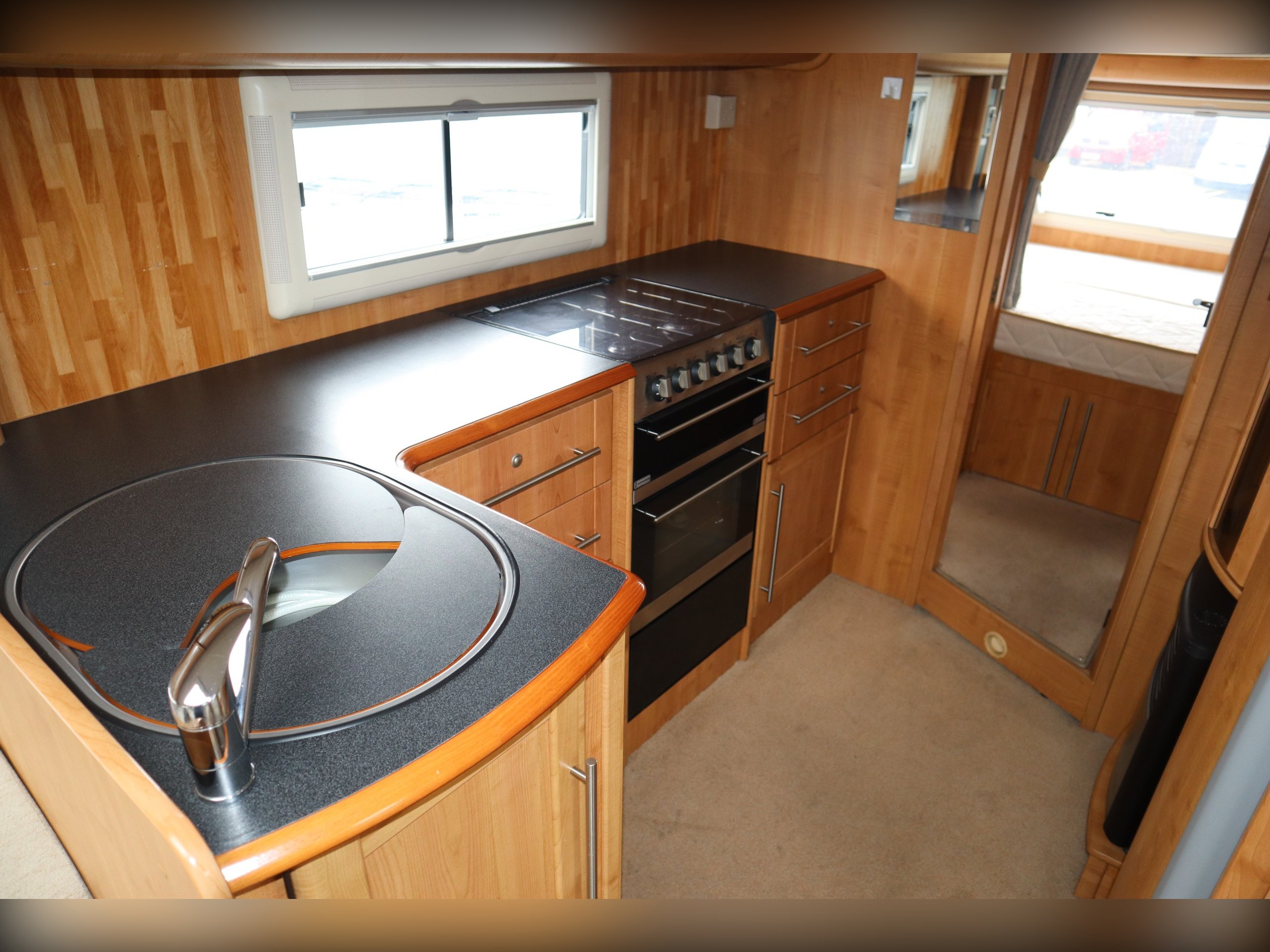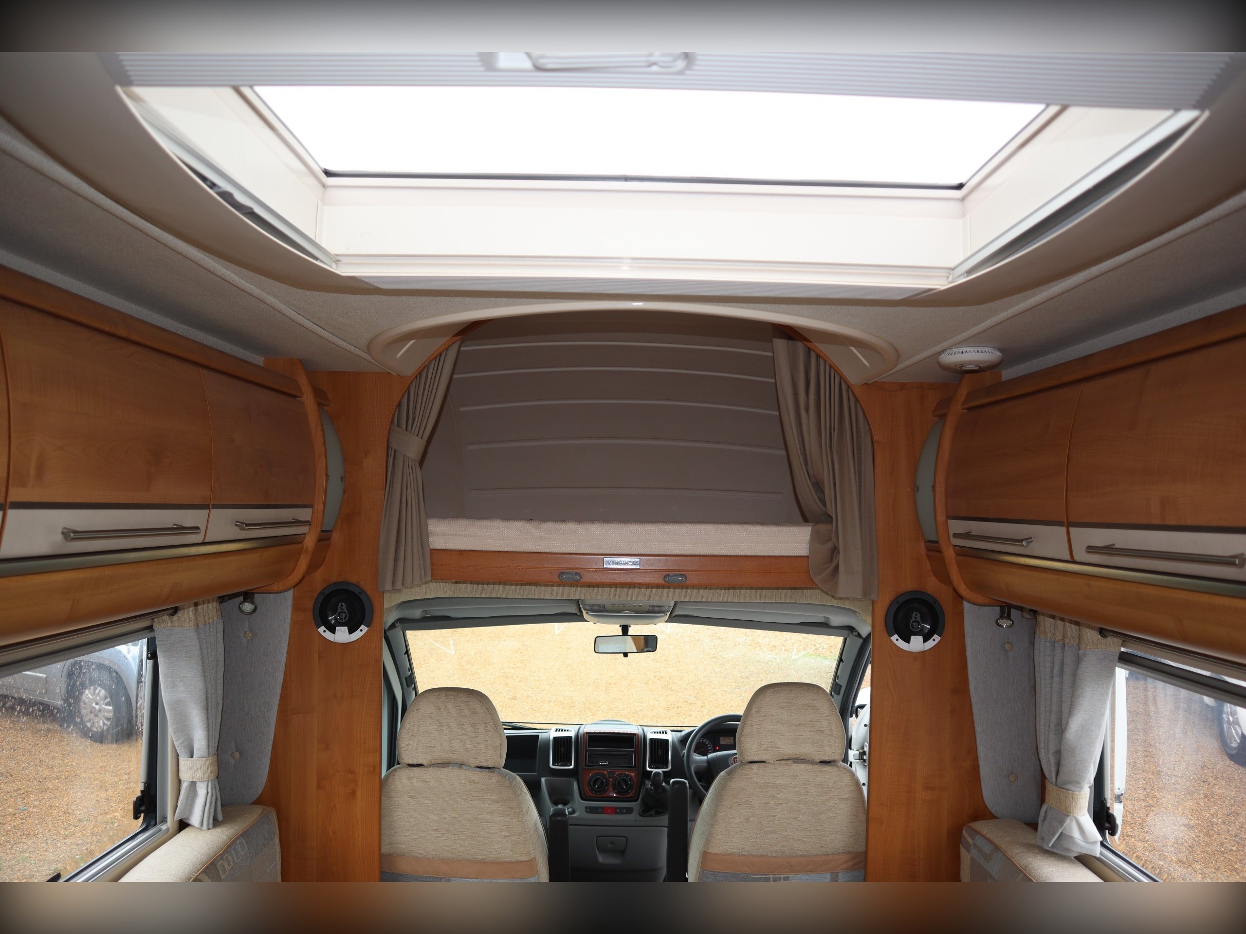 AutoTrail Cheiftan SE, 6 Berth, 2 Belts, Rear Transverse Bed, Front lounge that converts to a double, Overcab Bed. Central Well Equipped Kitchen. Mid Bathroom with separate shower. Extras include Alloy Wheels, Cab Air Con, Cruise Control, Bike Rack, Tow Bar & Awning.