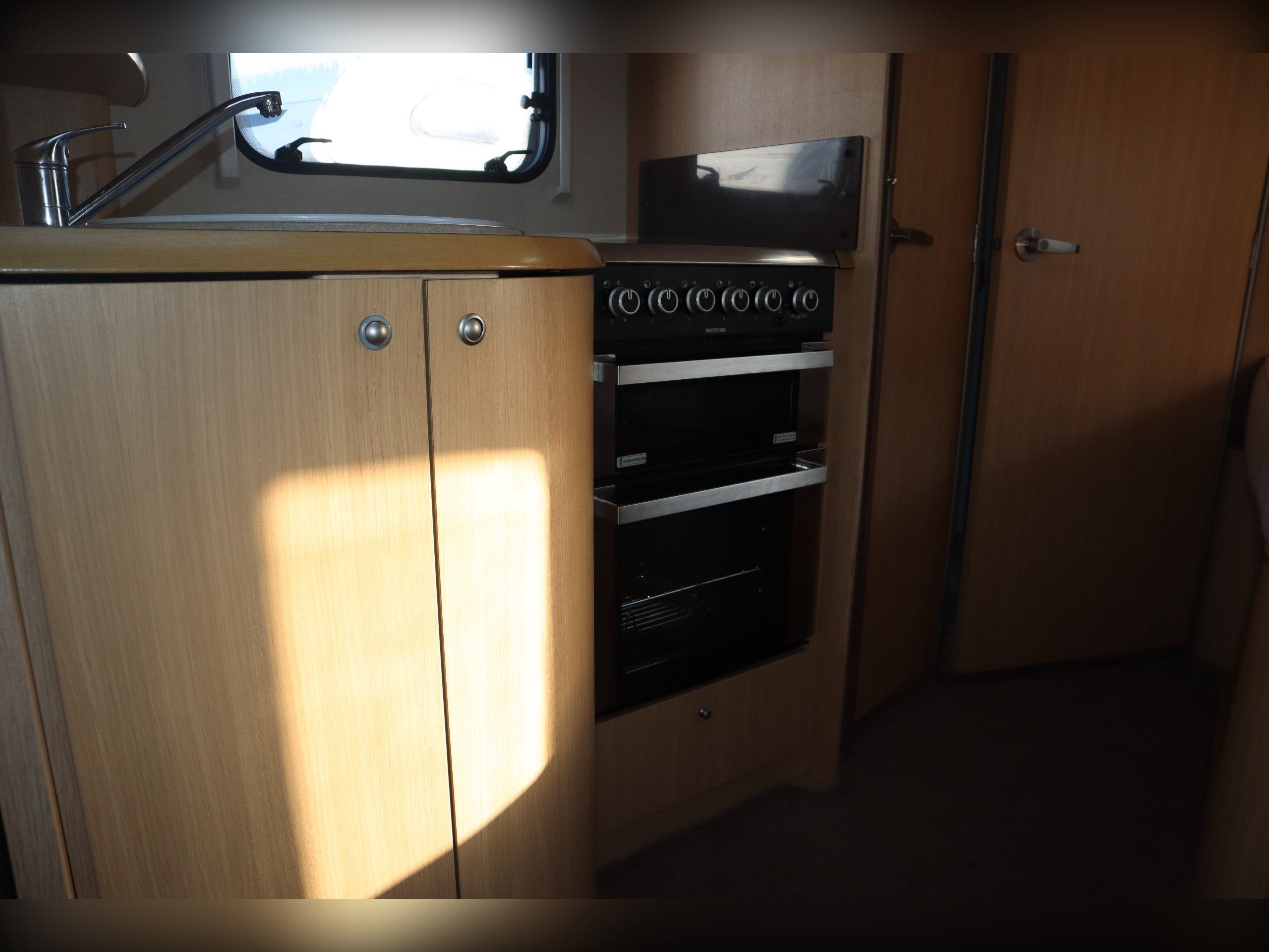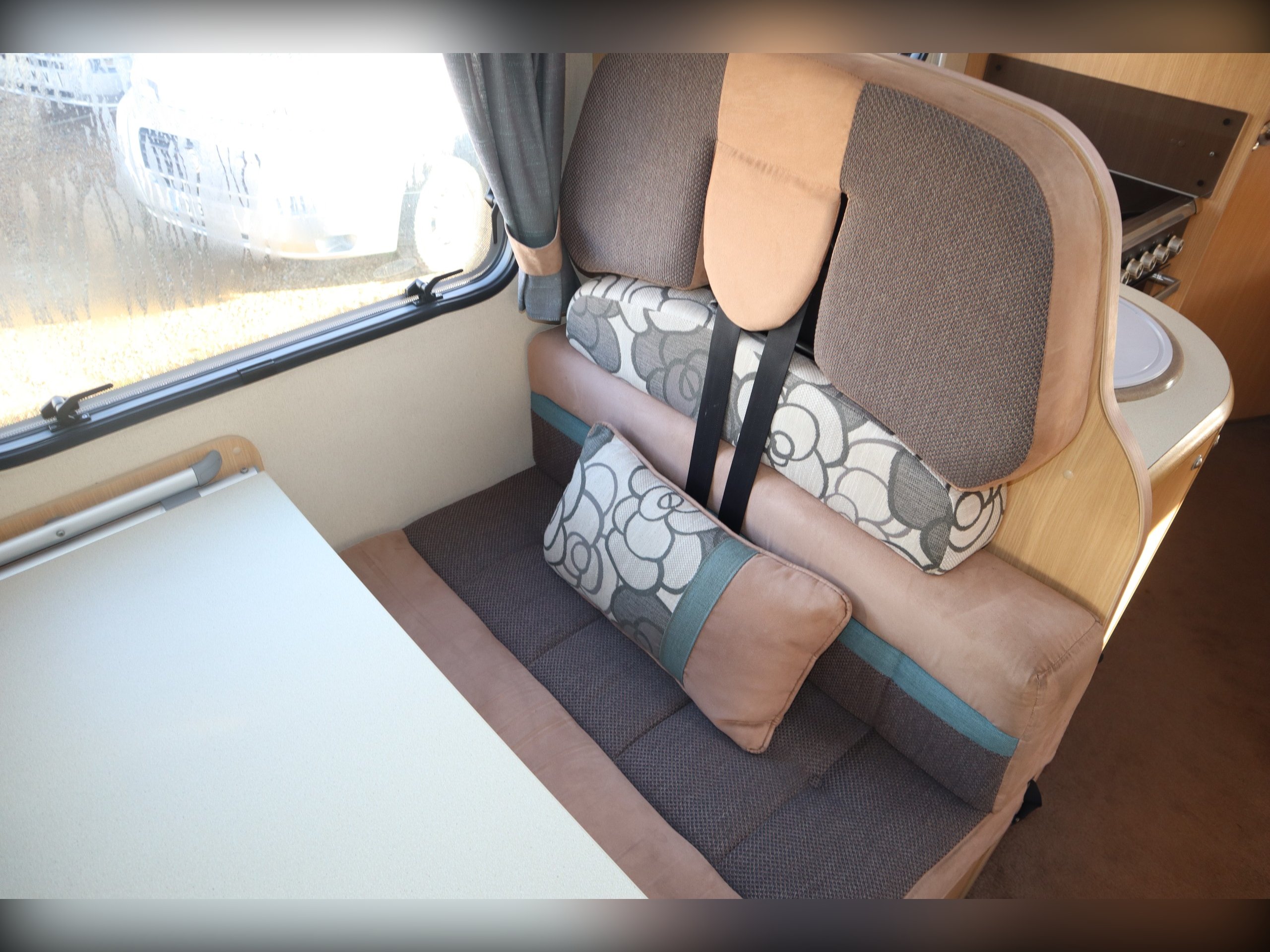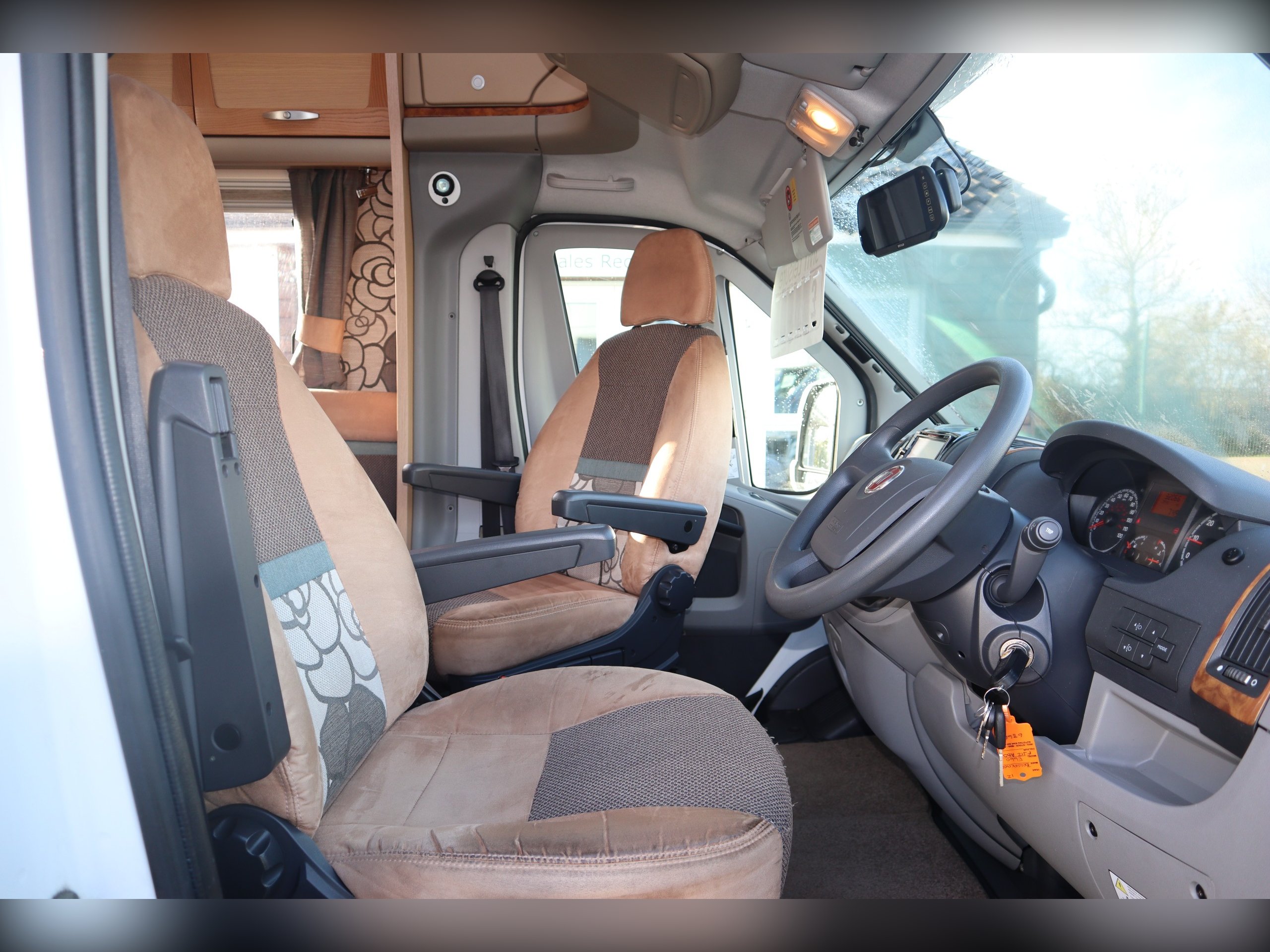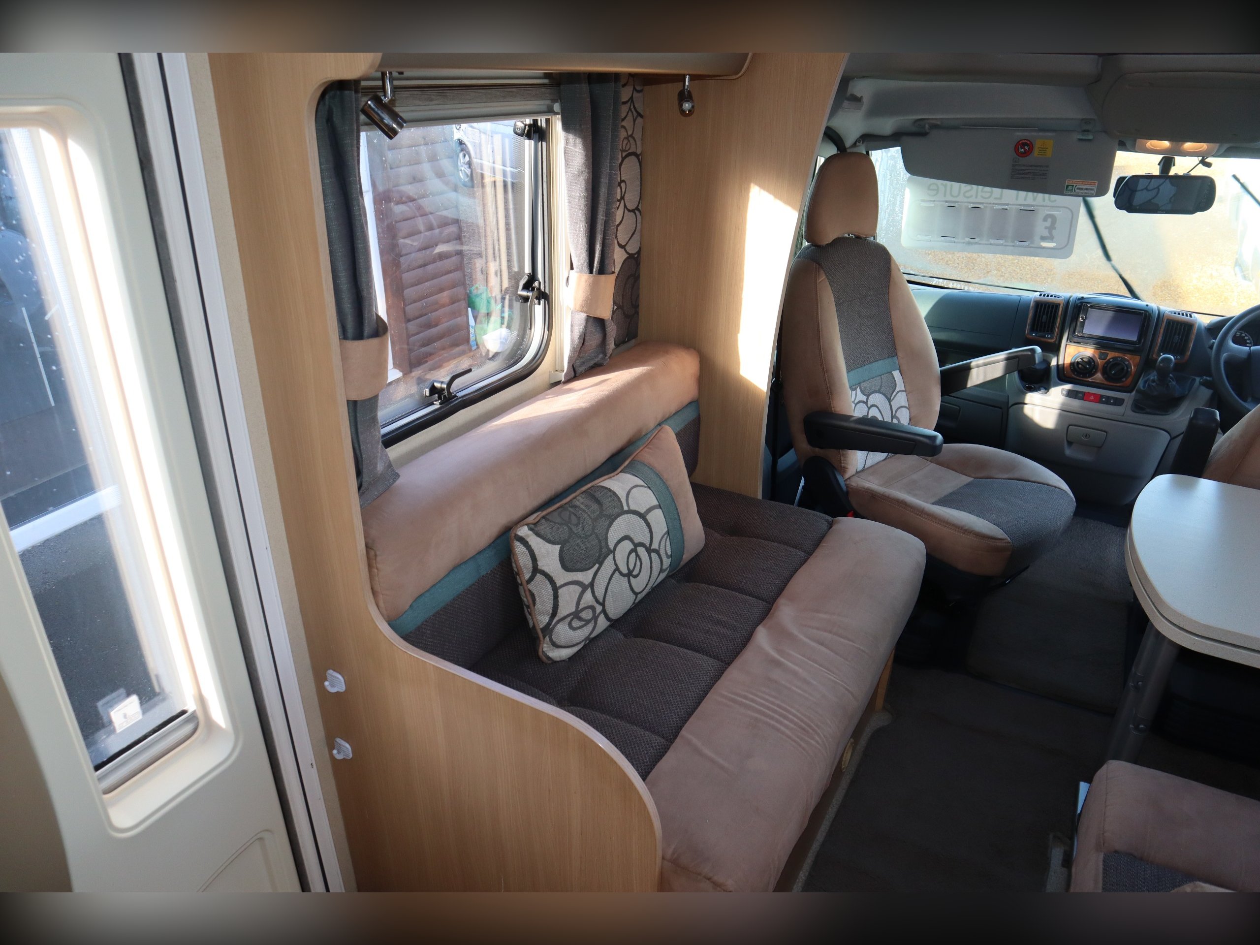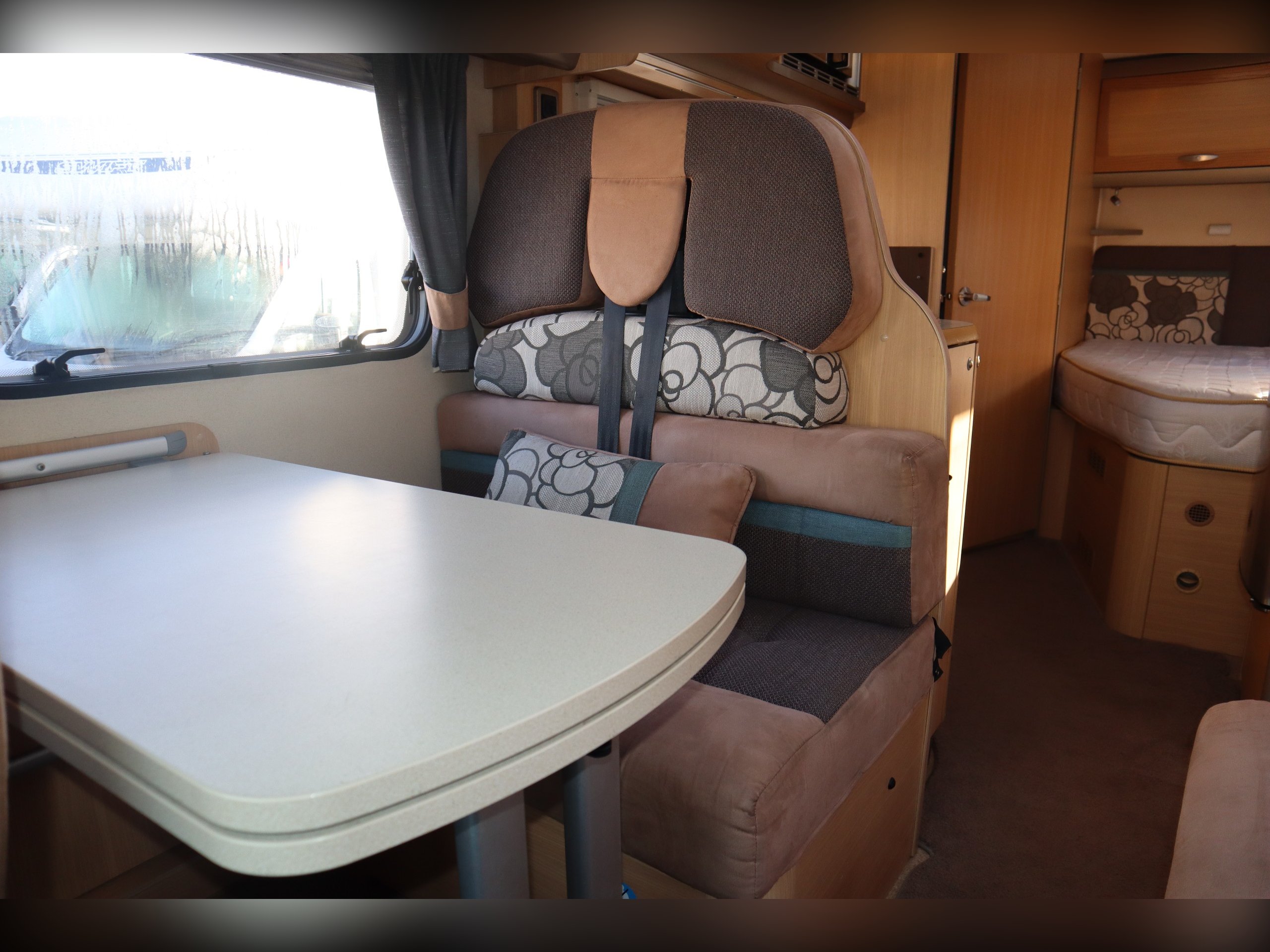 Fiat Ducato, 4 Berth, 4 Belts, Fixed Bed, Central Kitchen with large fridge freezer, oven, hob, grill, sink and microwave. Large bathroom with cassette toilet, wash basin, shower and vanity unit. Front dinette with side bench and 2 additional seatbelts. Extras include, awning, tow bar, bike rack, Cab Air Con, Cruise Control and a reversing camera.