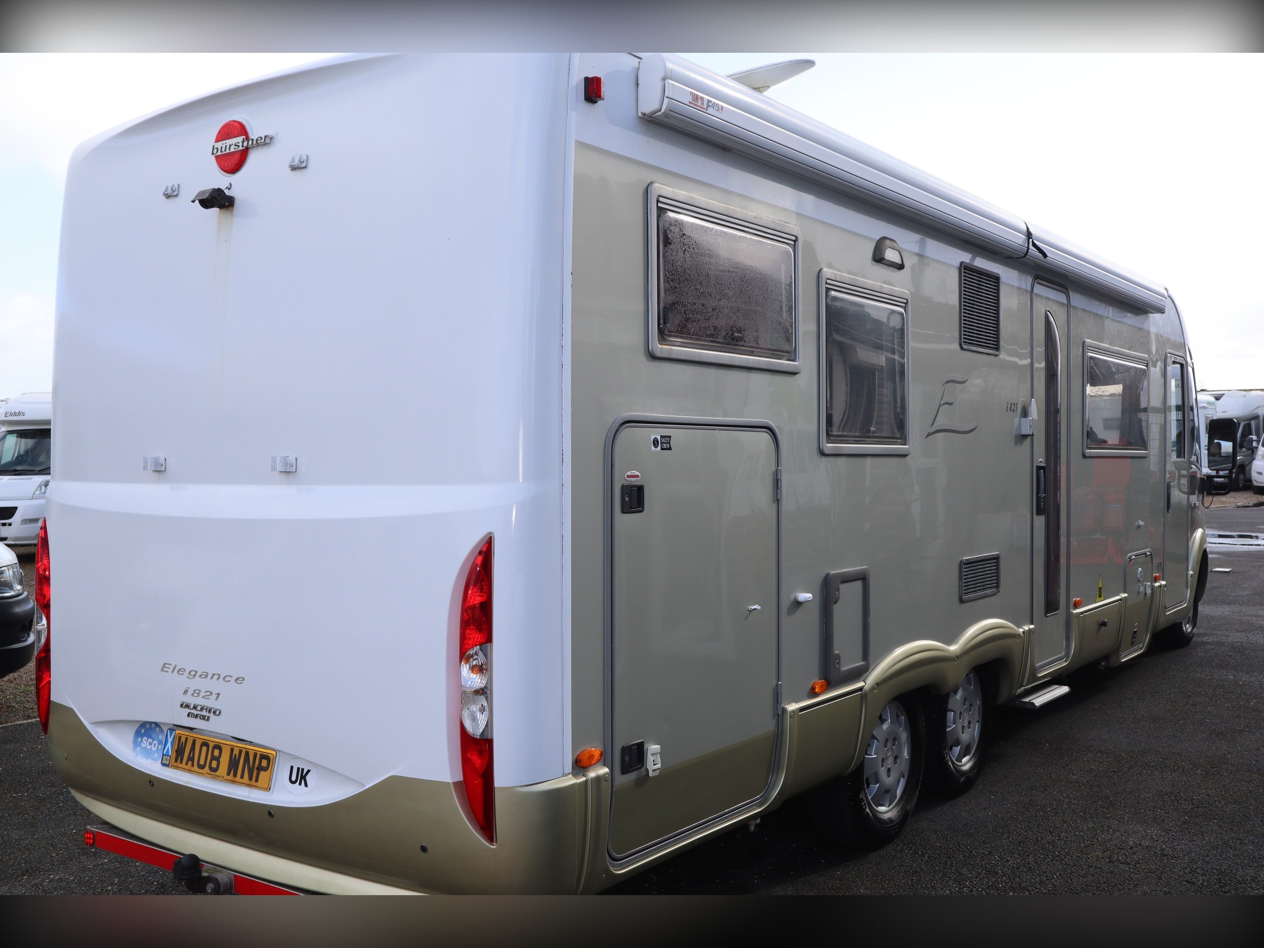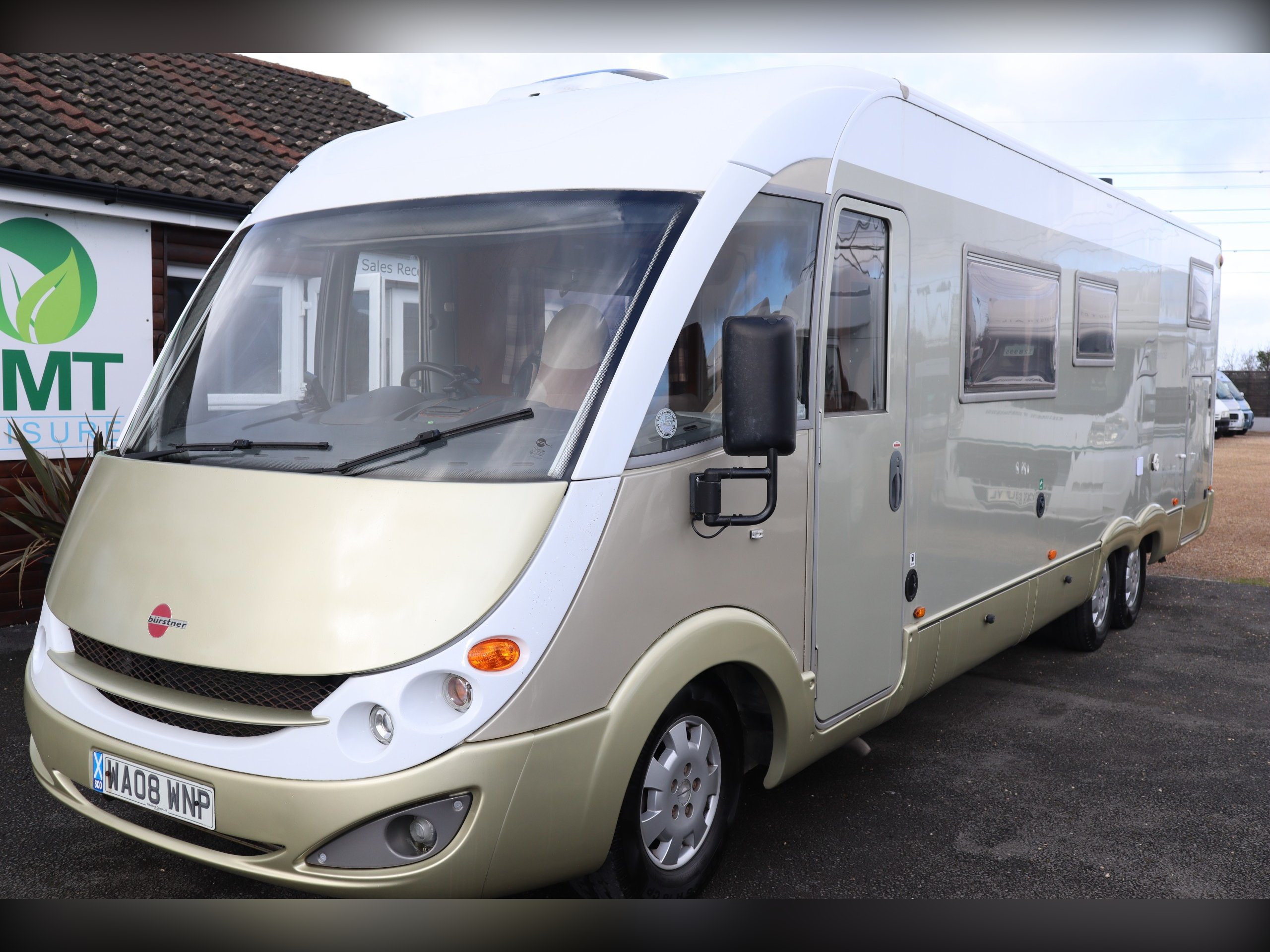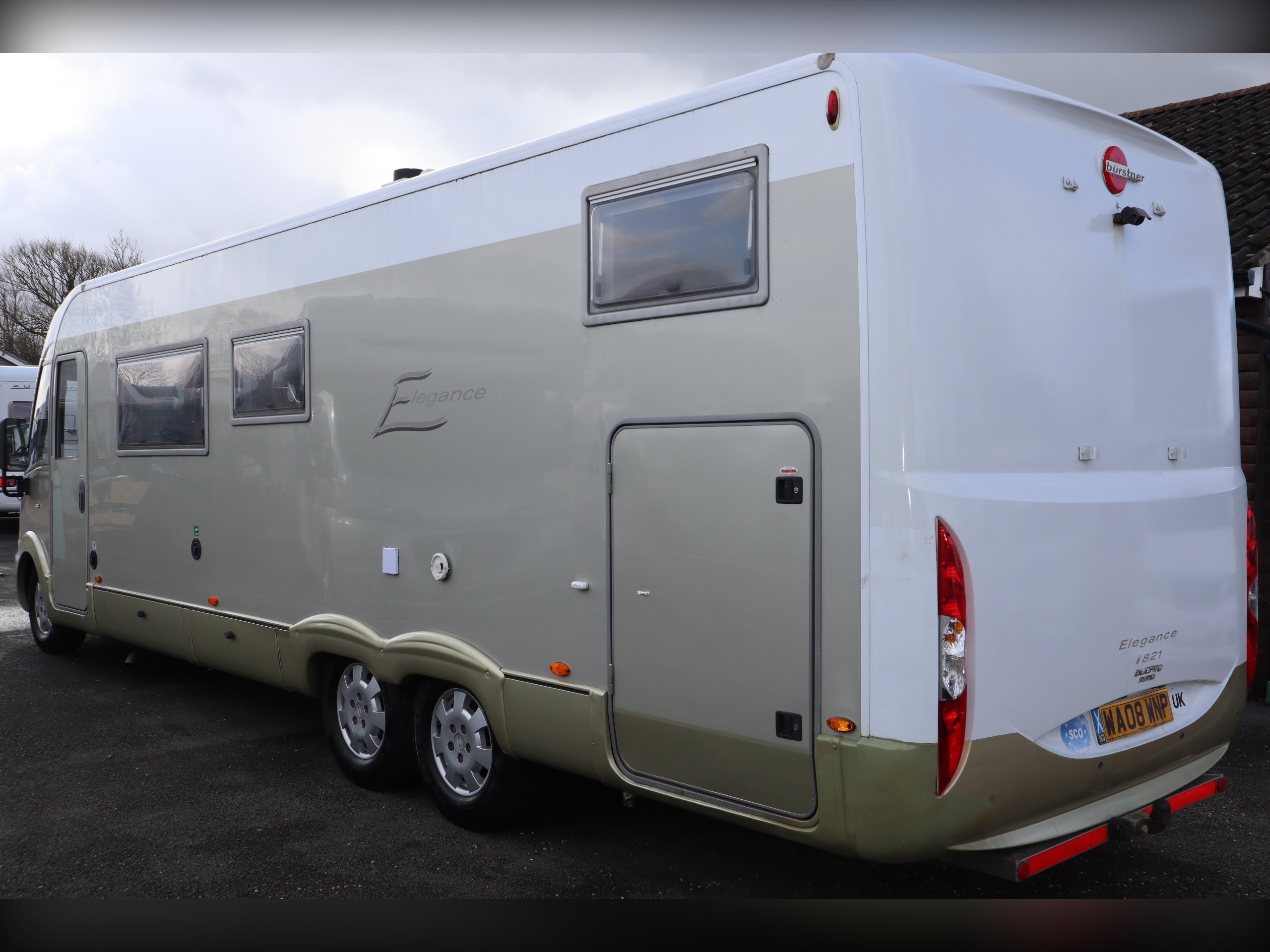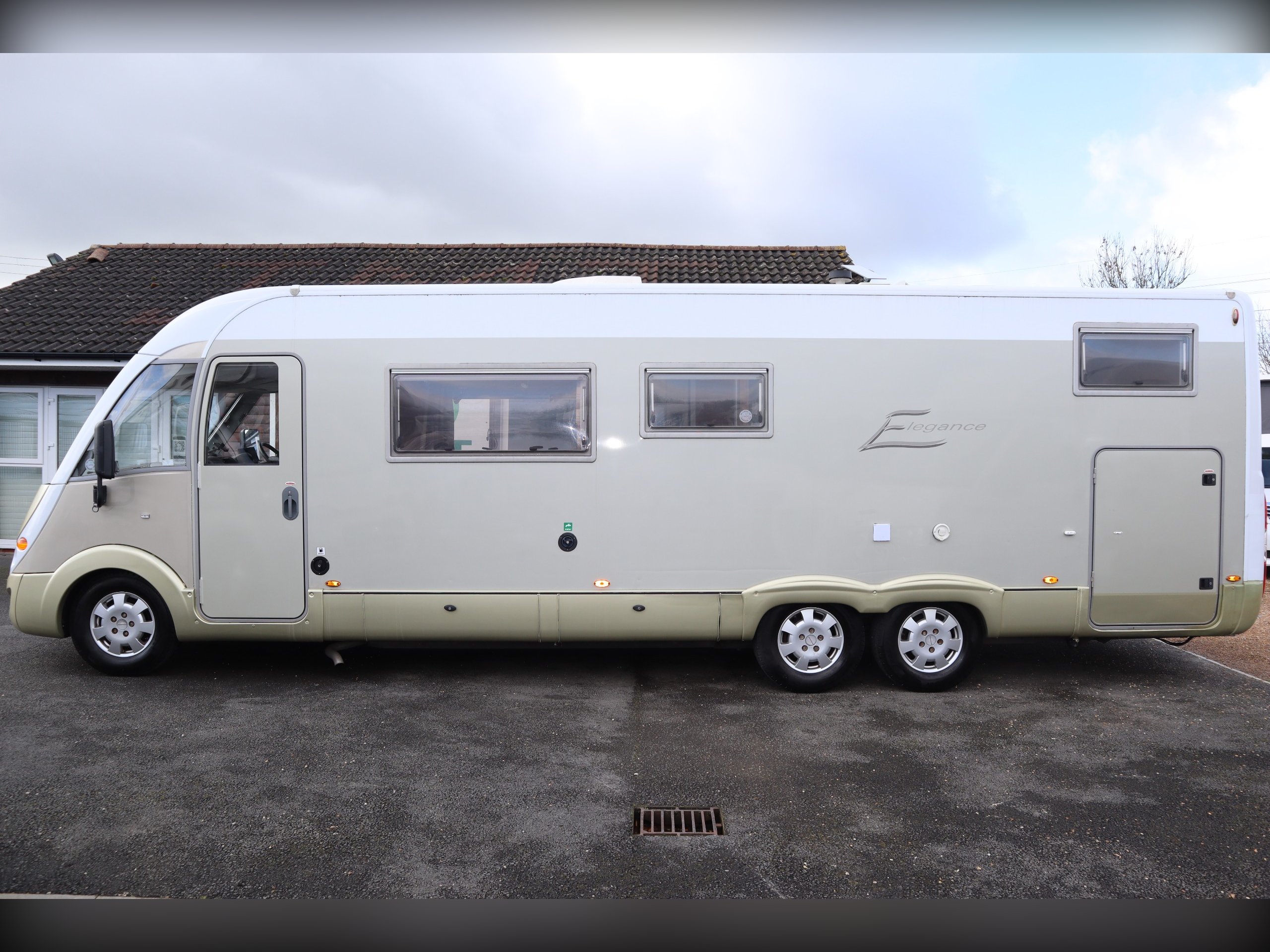 Burstner Elegance i 821 twin axle a class coach built motorhome, based on the Fiat Ducato Maxi 3.0 multi jet chassis, having covered 93,241 miles and features include alloy wheels, habitation air con, cab air con, fixed double transverse bed over the large garage, drop down double bed, lounge dinete area makes a double bed, cassette toilet and separate shower cubicle, kitchen with three way fridge, sink, gas hob, solar panel, tow bar, very spacious plenty of space., 6 berth, Gold