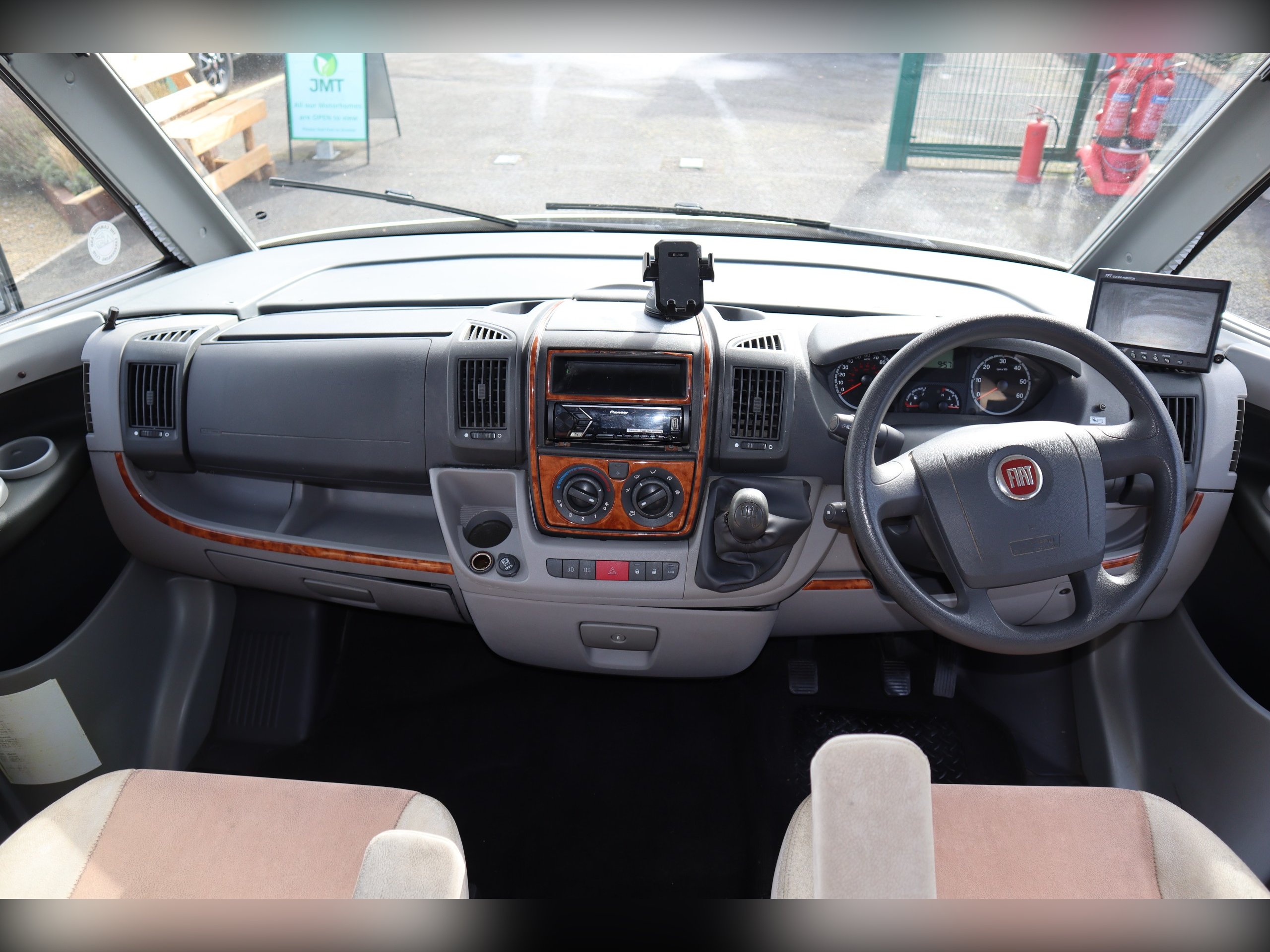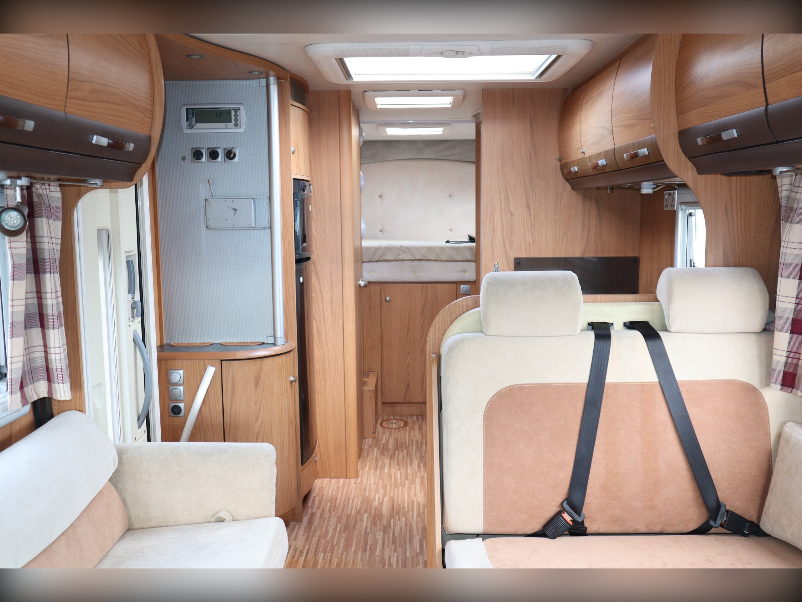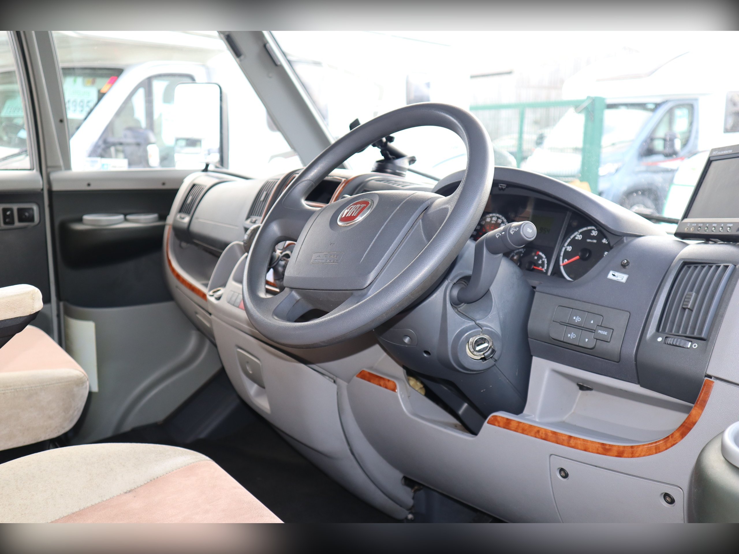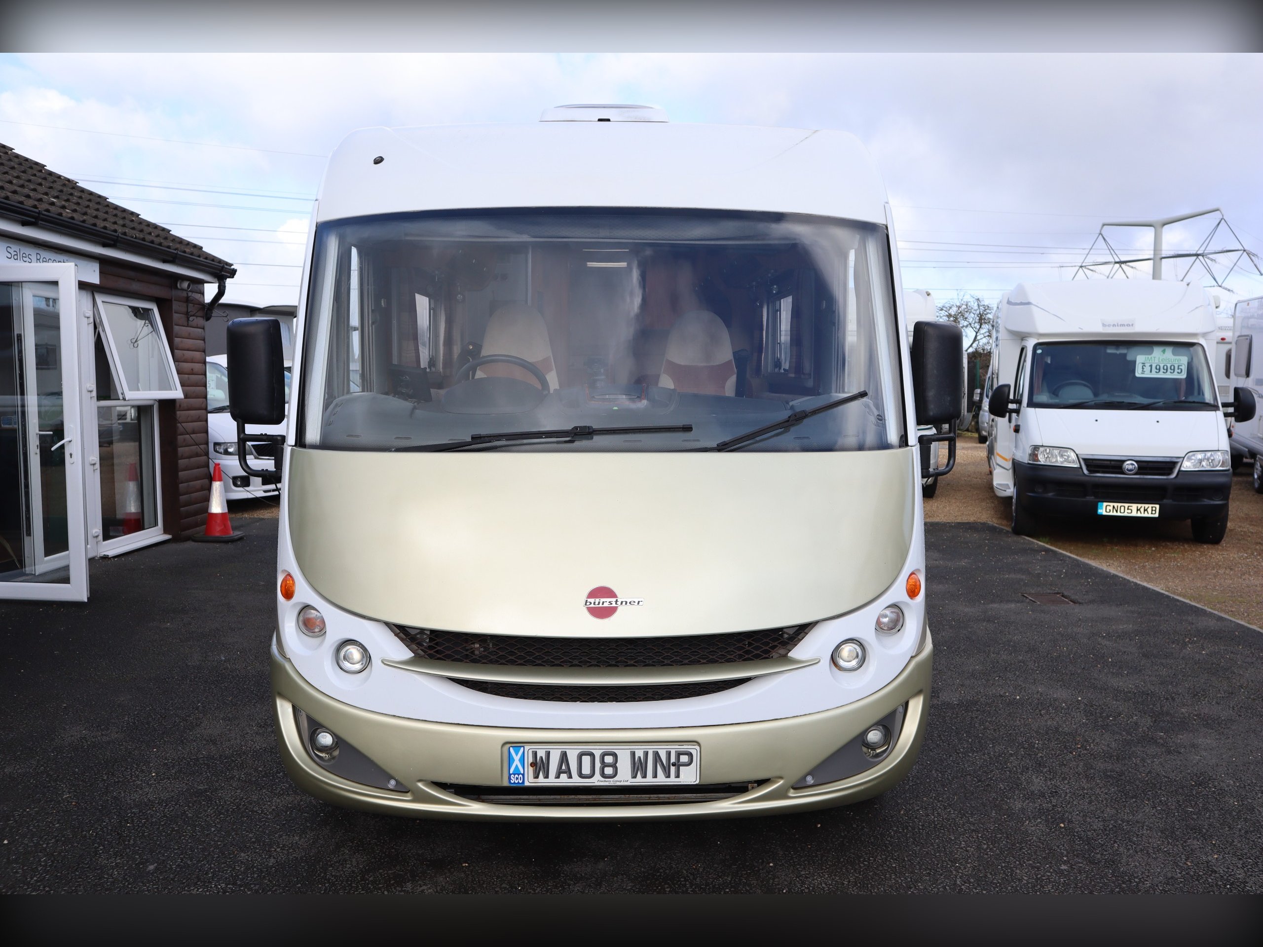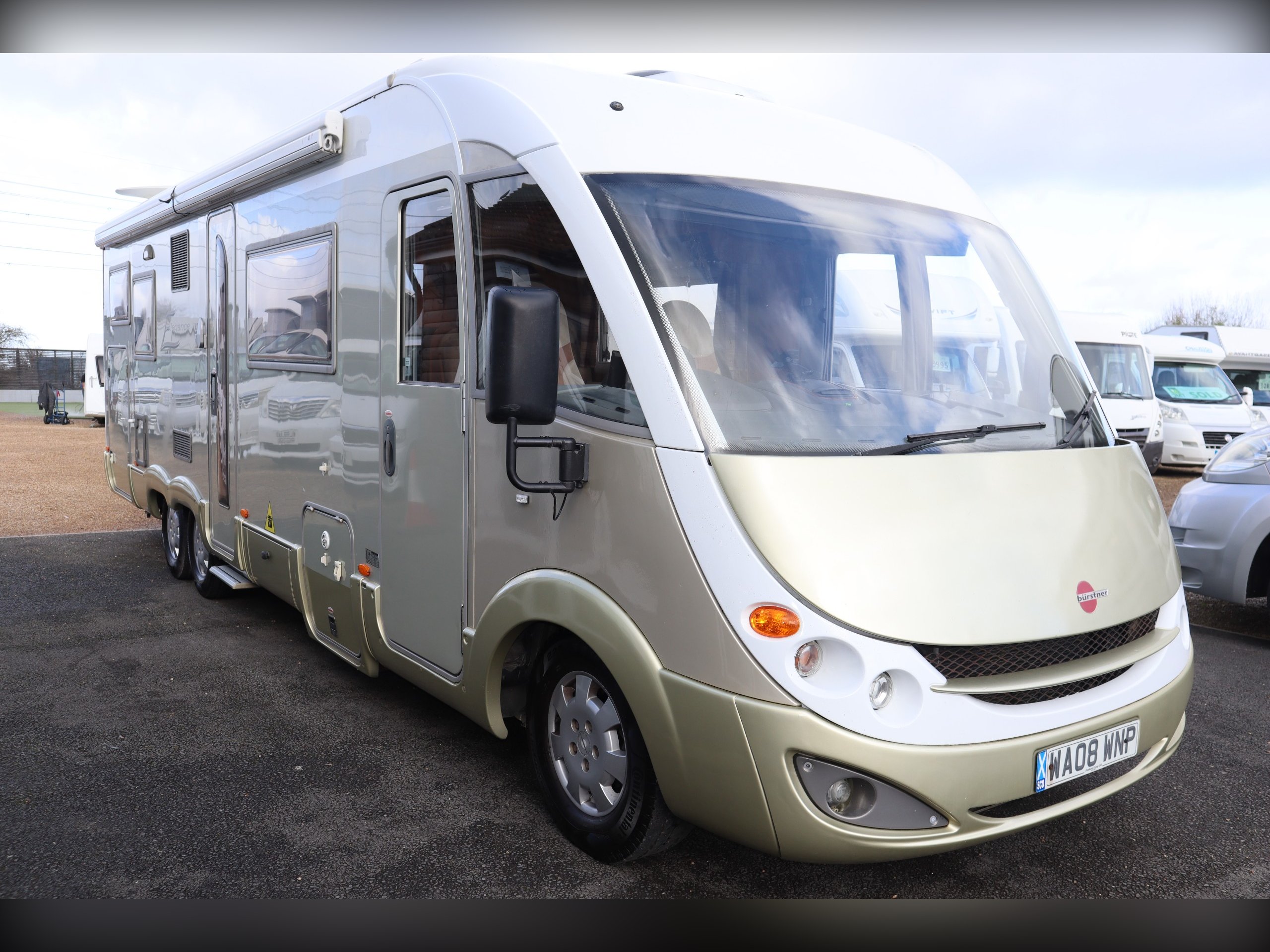 Burstner Elegance i 821 twin axle a class coach built motorhome, based on the Fiat Ducato Maxi 3.0 multi jet chassis, having covered 93,241 miles and features include alloy wheels, habitation air con, cab air con, fixed double transverse bed over the large garage, drop down double bed, lounge dinete area makes a double bed, cassette toilet and separate shower cubicle, kitchen with three way fridge, sink, gas hob, solar panel, tow bar, very spacious plenty of space., 6 berth, Gold