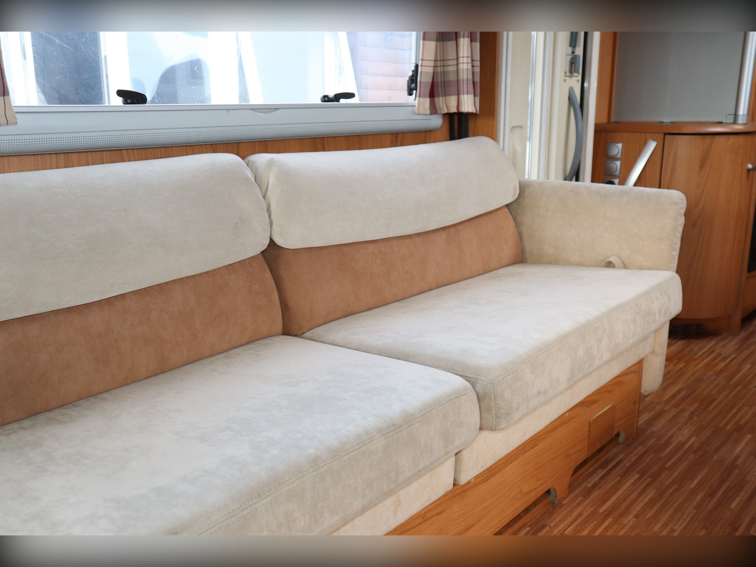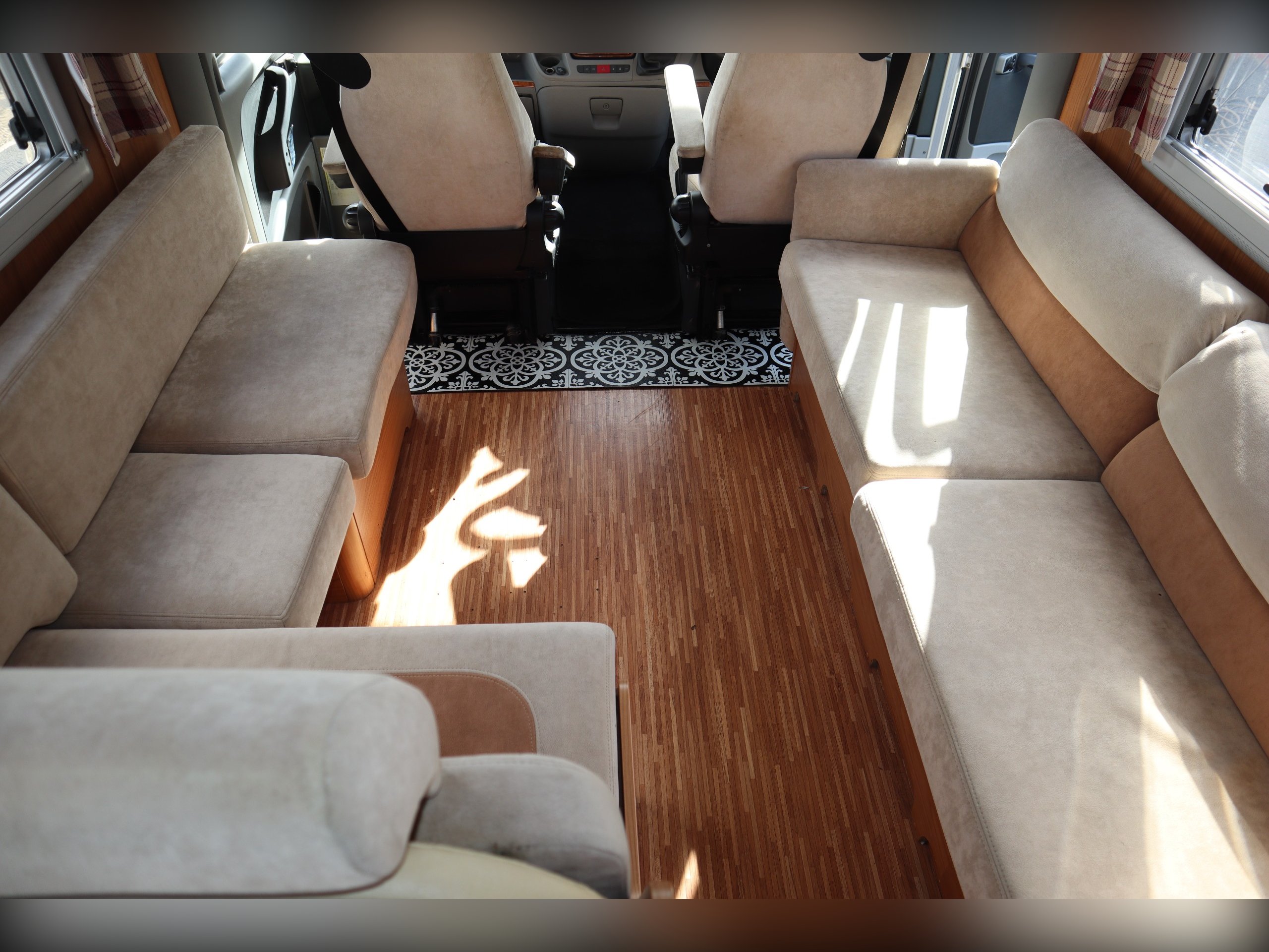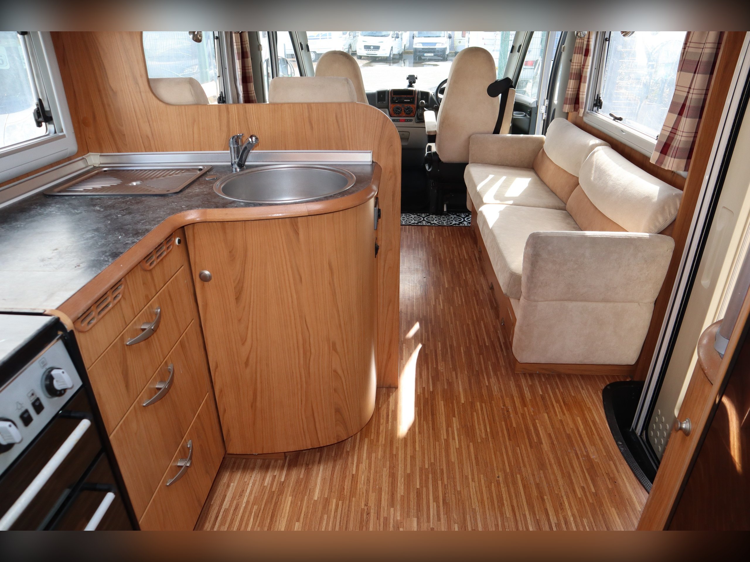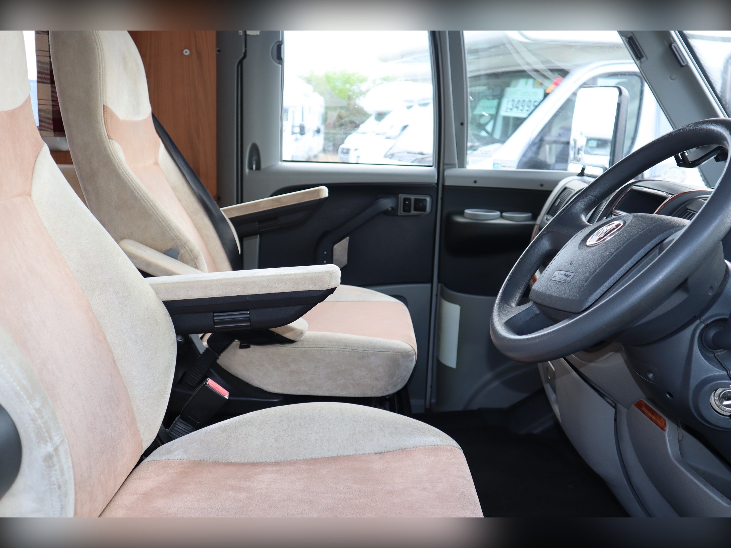 Burstner Elegance i 821 twin axle a class coach built motorhome, based on the Fiat Ducato Maxi 3.0 multi jet chassis, having covered 93,241 miles and features include alloy wheels, habitation air con, cab air con, fixed double transverse bed over the large garage, drop down double bed, lounge dinete area makes a double bed, cassette toilet and separate shower cubicle, kitchen with three way fridge, sink, gas hob, solar panel, tow bar, very spacious plenty of space., 6 berth, Gold