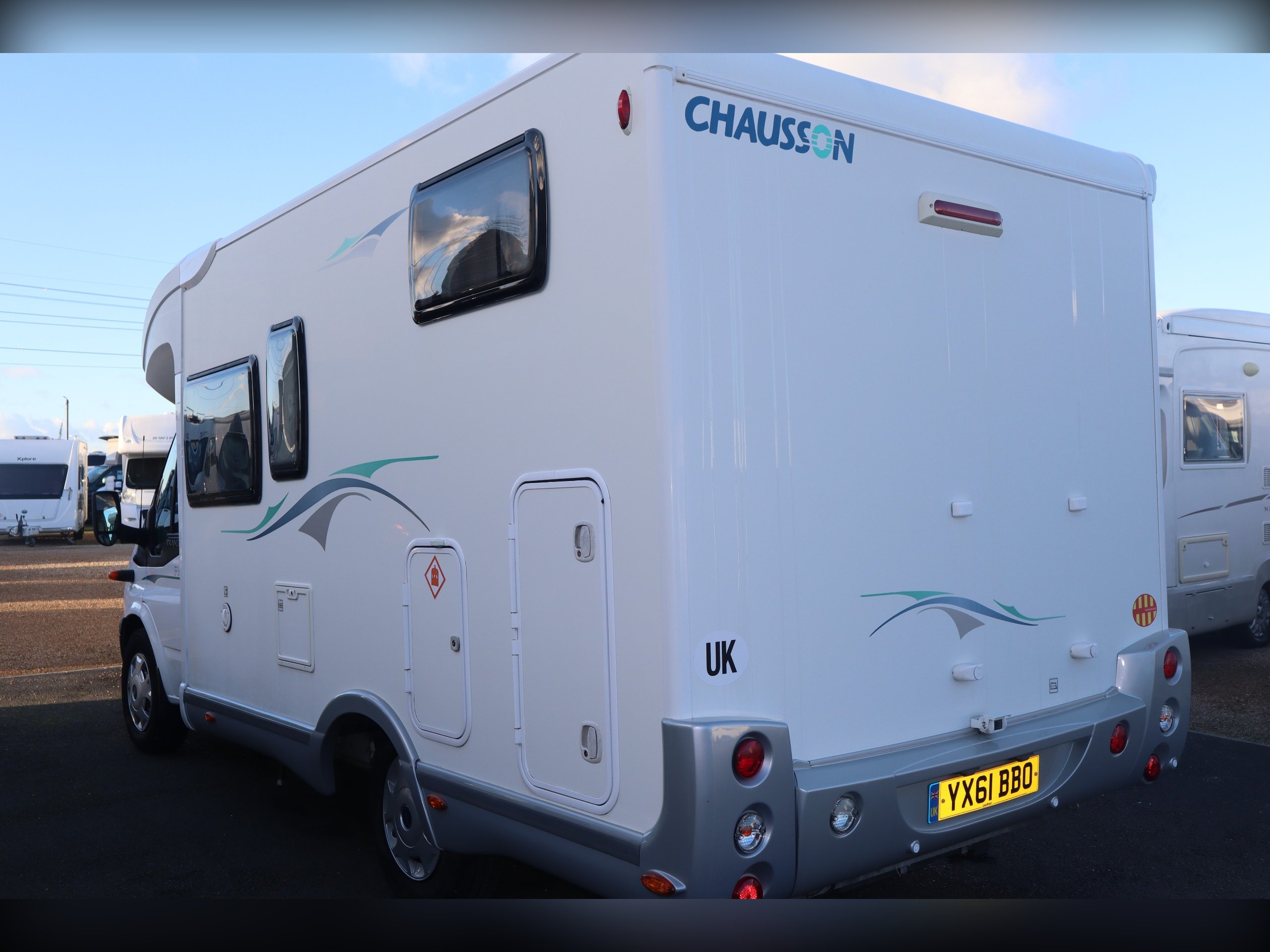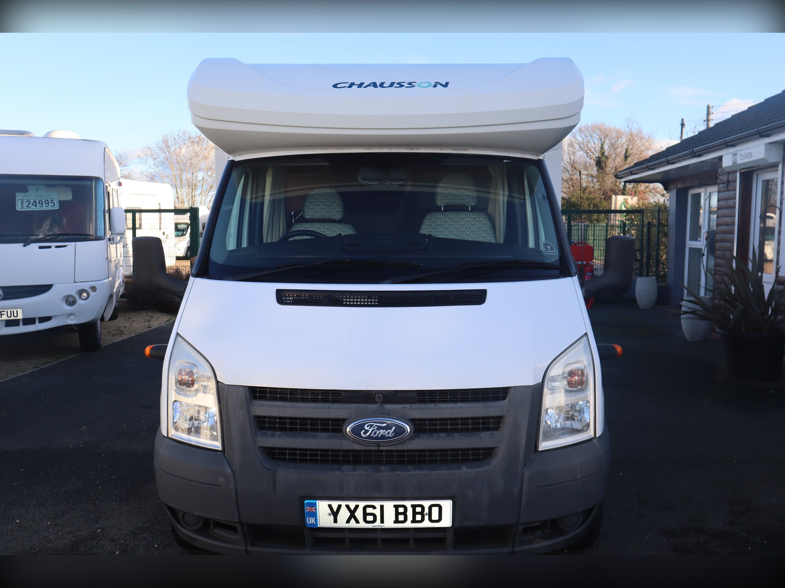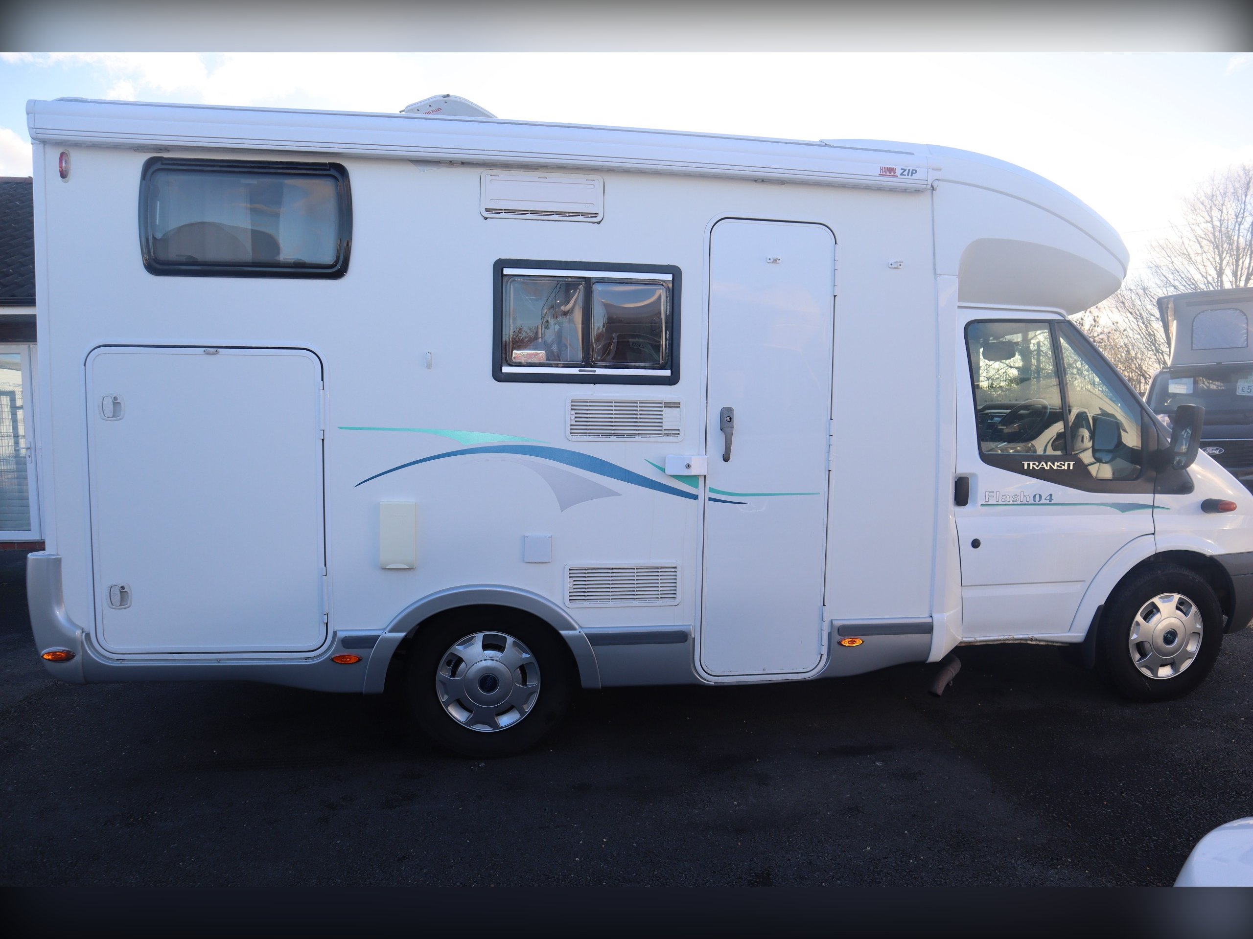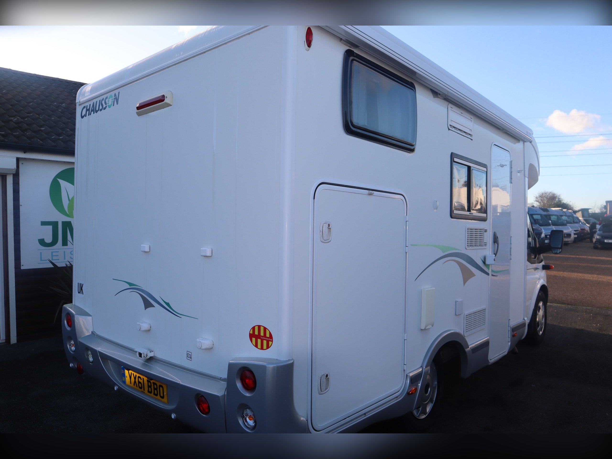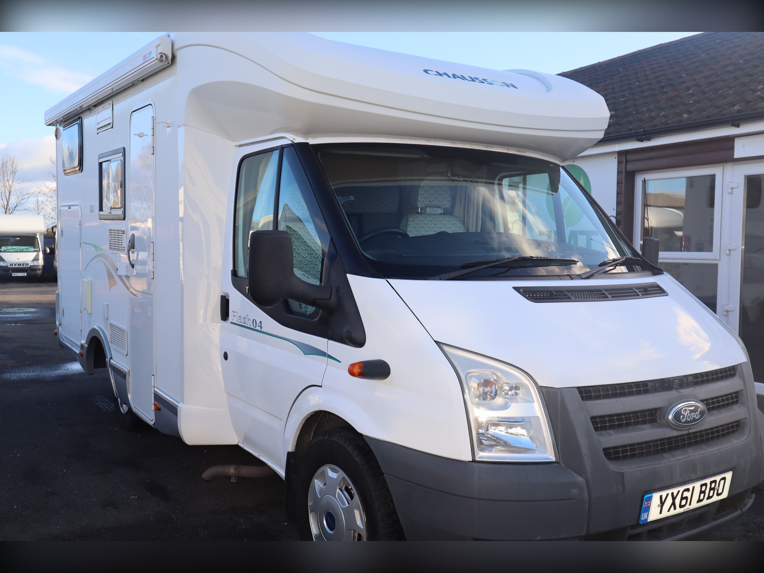 Chausson Flash 04, 3 Berth, 4 Belts, Fixed Rear Bed, Large Garage, Front Dinette with 2 additional seat belts, Side Kitchen, Side Bathroom, Awning, Cab Air con & Cruise Control. Lovely short Motorhome with plenty of storage and accommodation space.