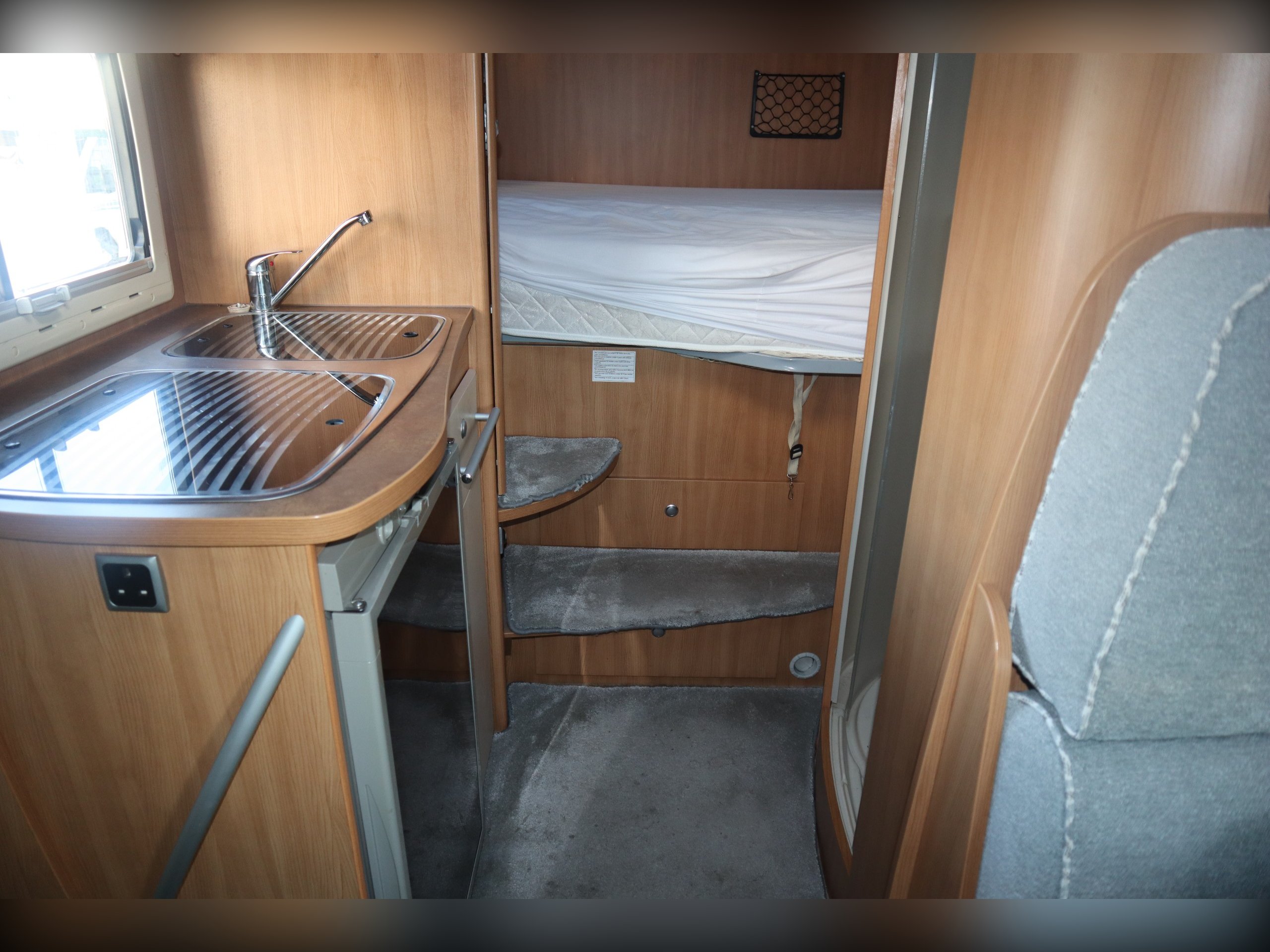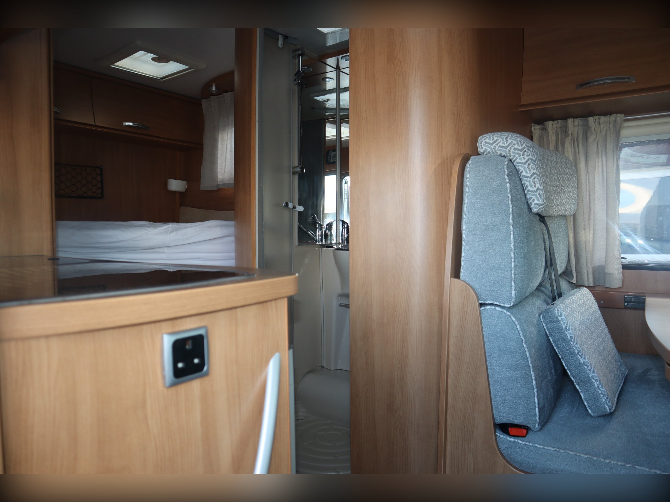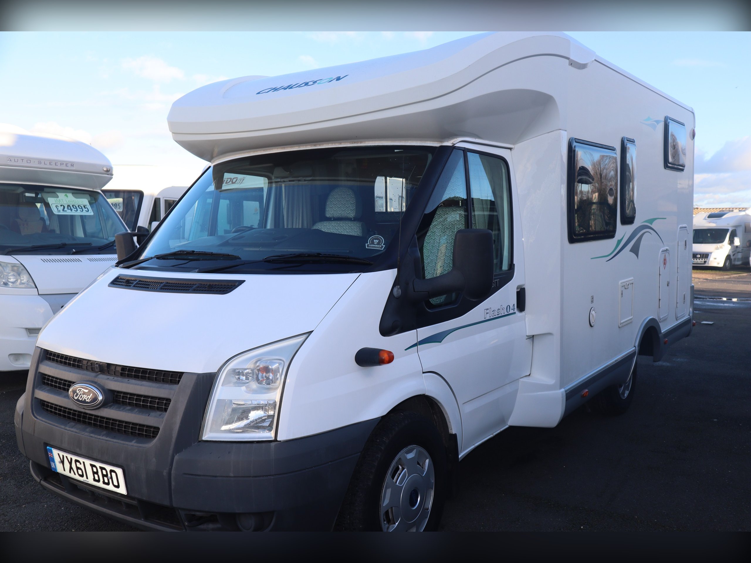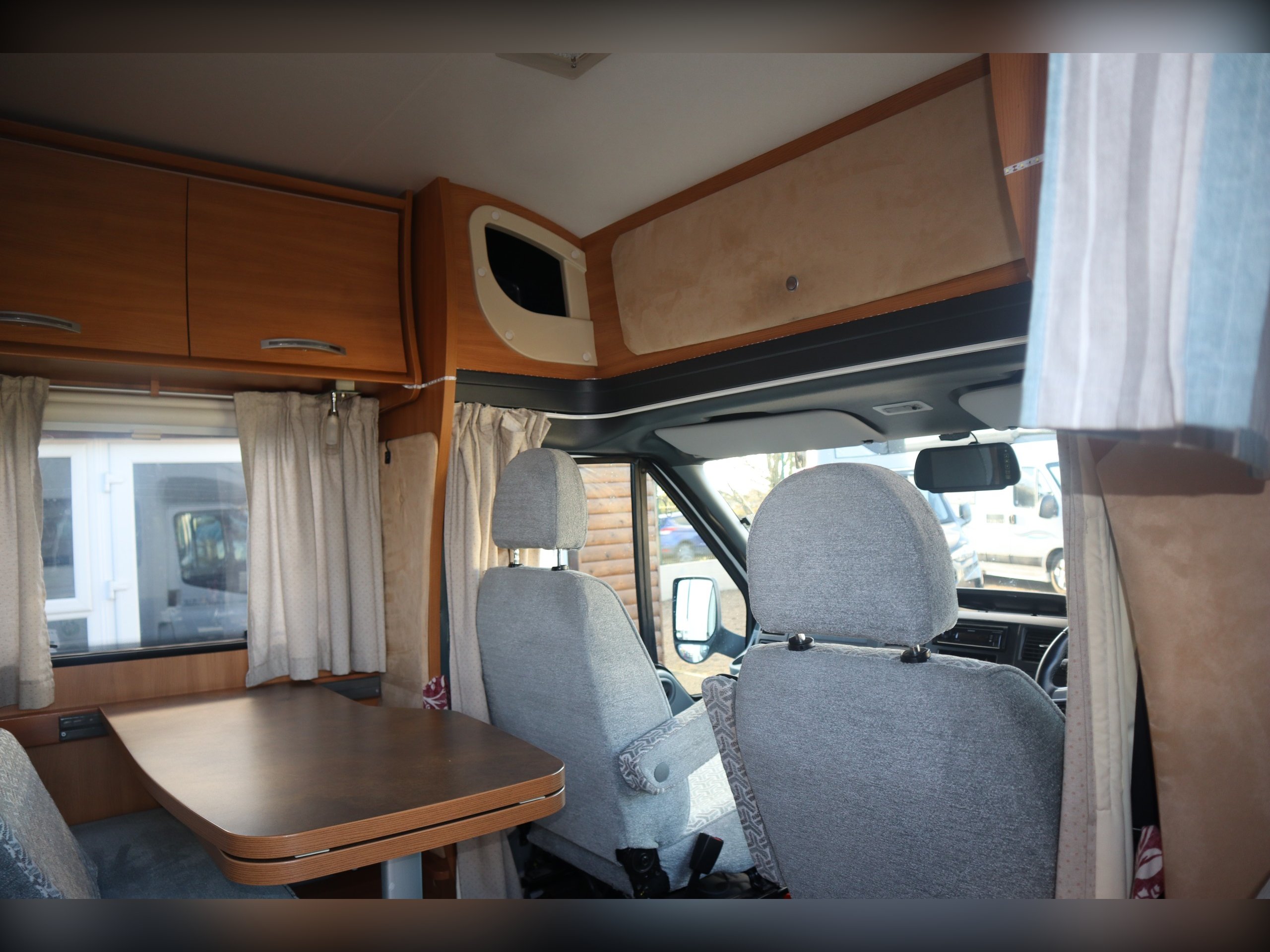 Chausson Flash 04, 3 Berth, 4 Belts, Fixed Rear Bed, Large Garage, Front Dinette with 2 additional seat belts, Side Kitchen, Side Bathroom, Awning, Cab Air con & Cruise Control. Lovely short Motorhome with plenty of storage and accommodation space.