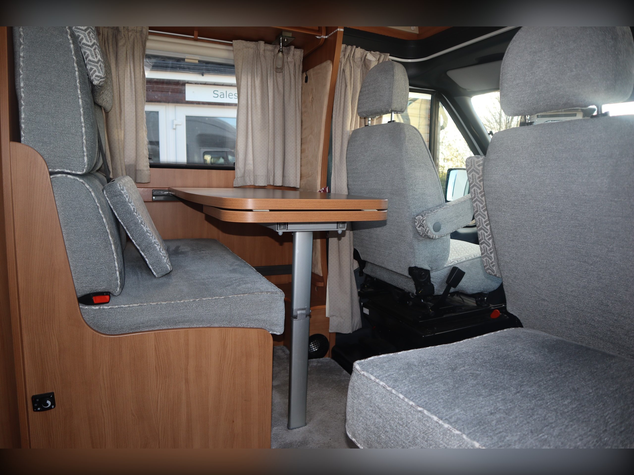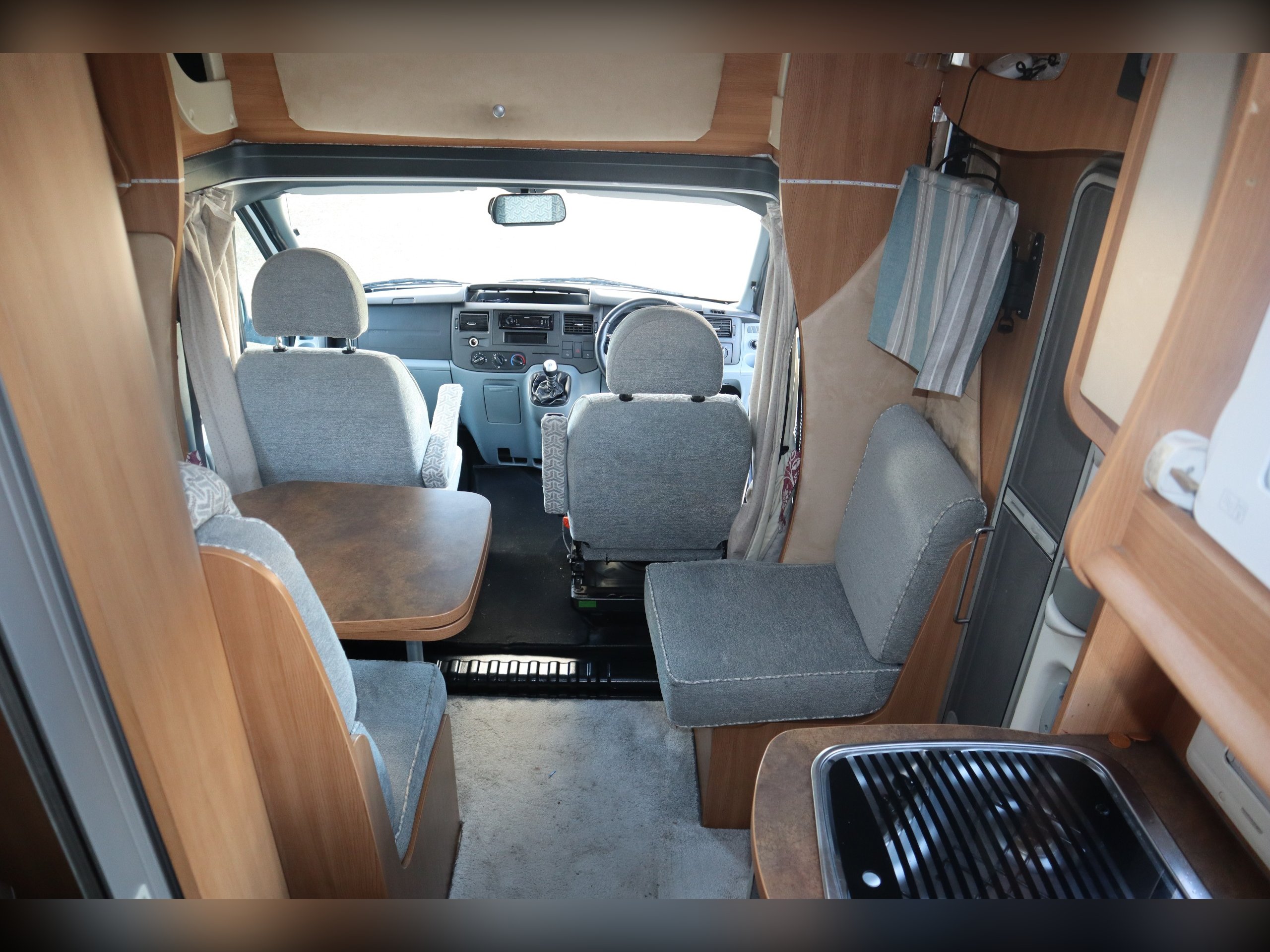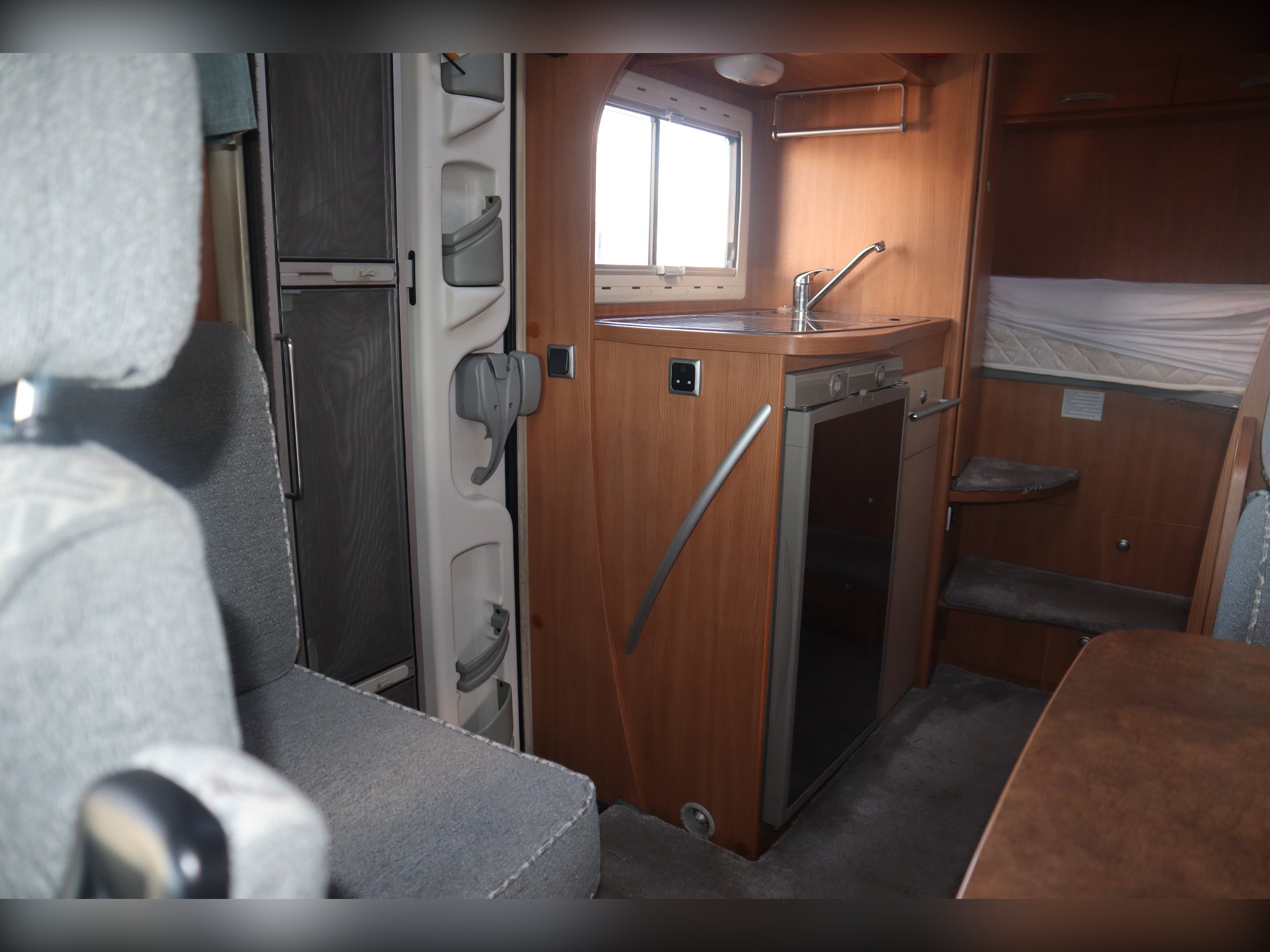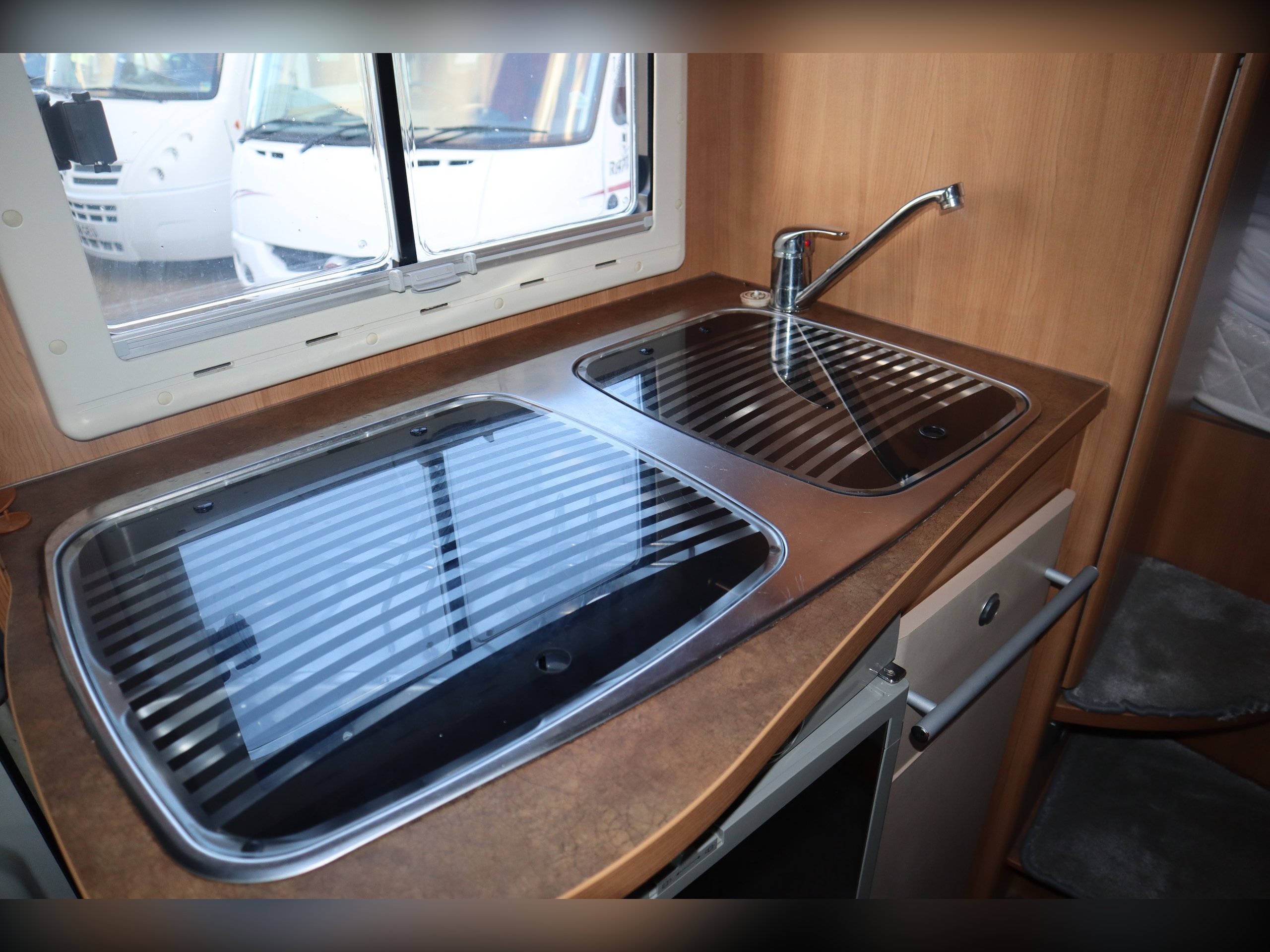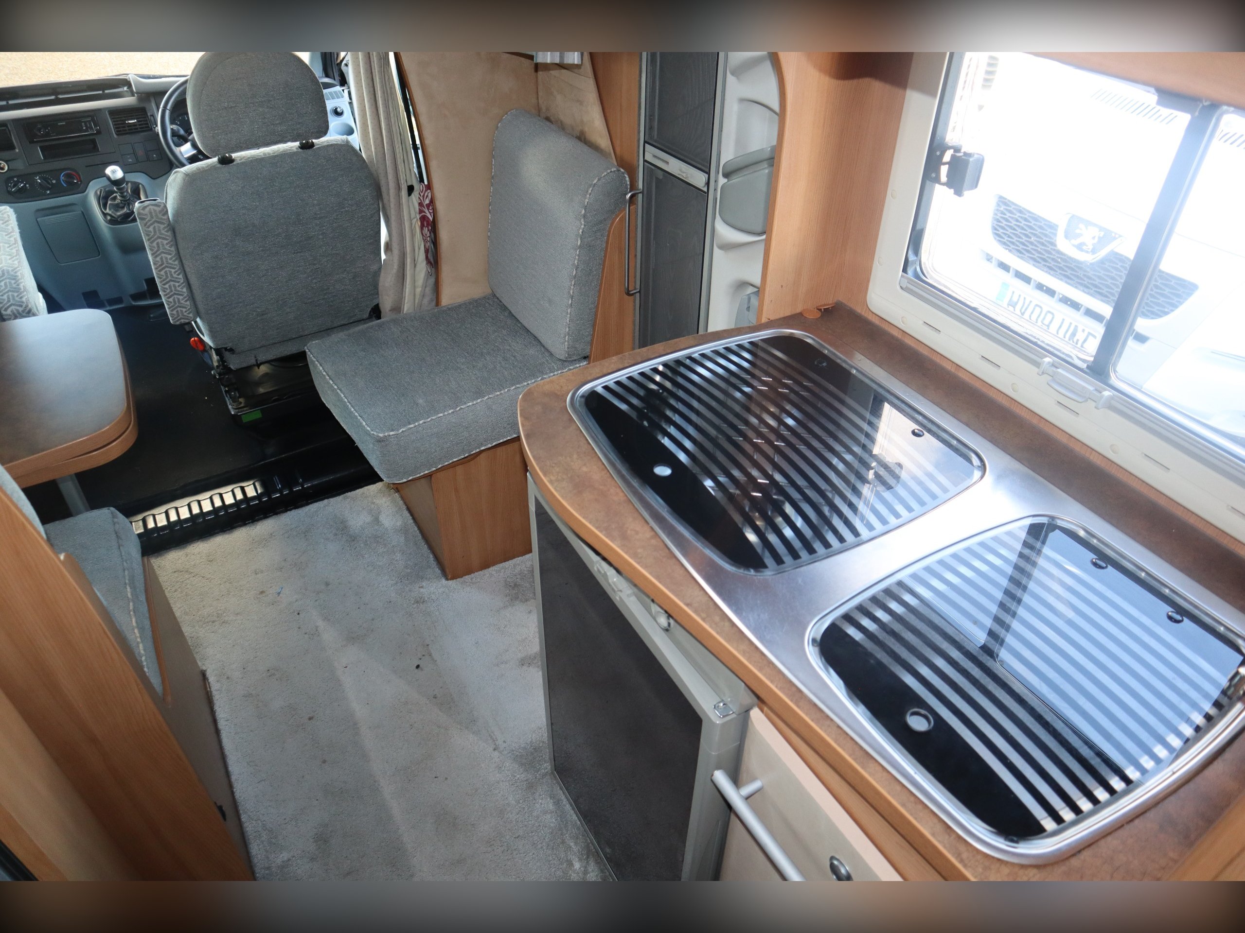 Chausson Flash 04, 3 Berth, 4 Belts, Fixed Rear Bed, Large Garage, Front Dinette with 2 additional seat belts, Side Kitchen, Side Bathroom, Awning, Cab Air con & Cruise Control. Lovely short Motorhome with plenty of storage and accommodation space.