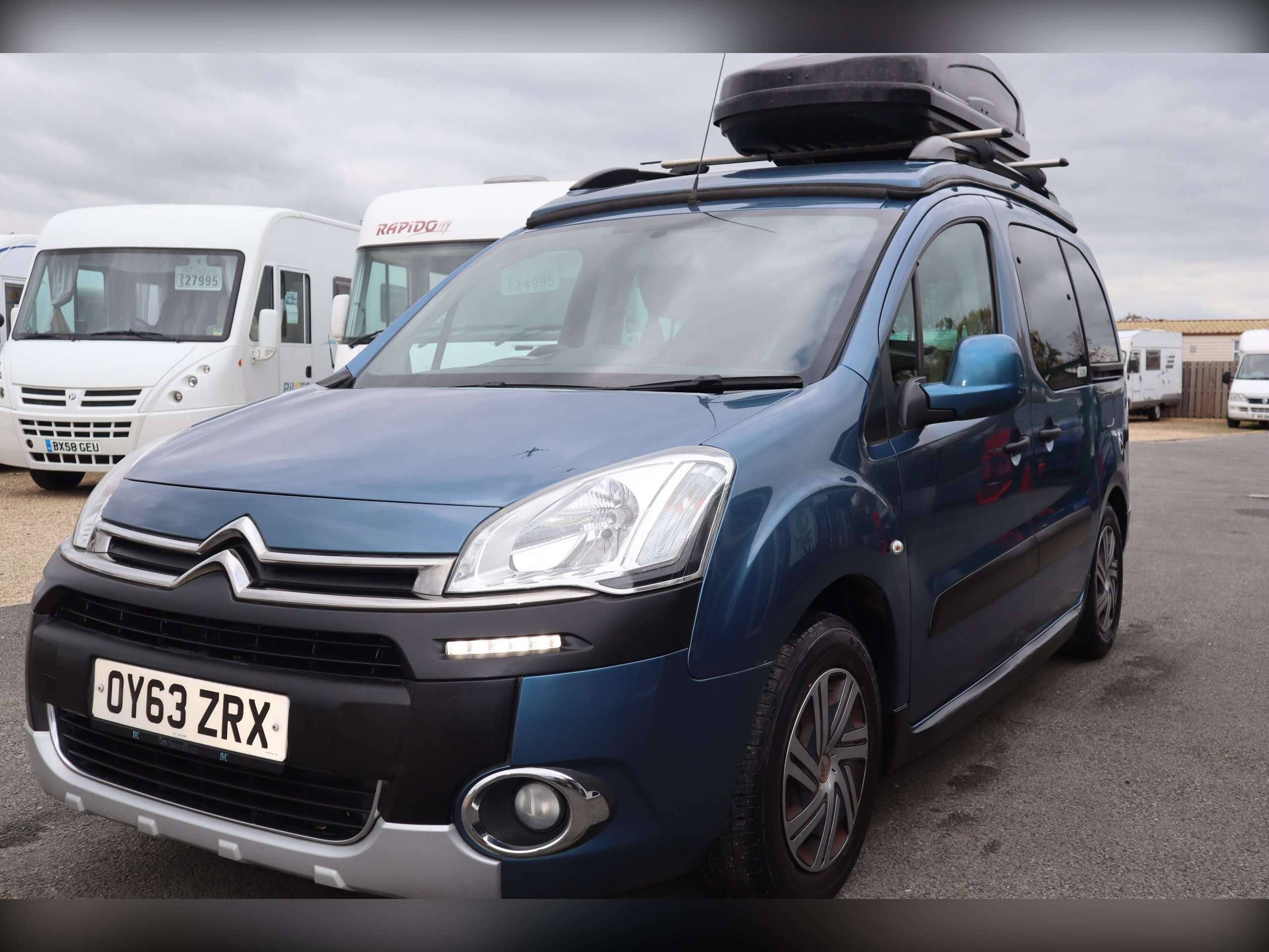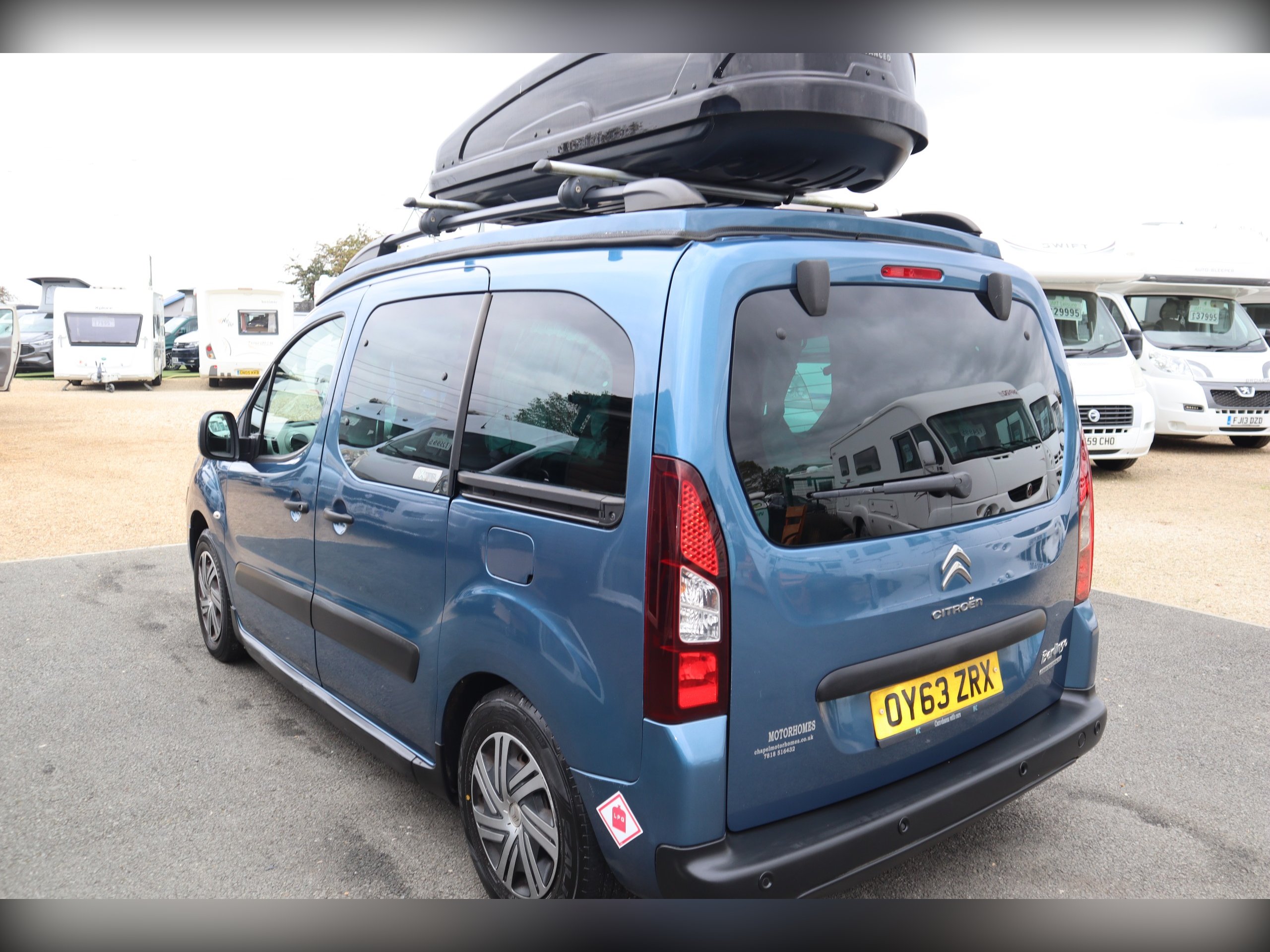 Citroen Berlingo Multispace, Chapel Motorhomes conversion. Pop Top Roof. Large double bed or 2 singles, hob and sink, on board water, plenty of storage. Leisure battery. Extras include, roof bars, roof box. Versatile little camper ready for your next adventures.