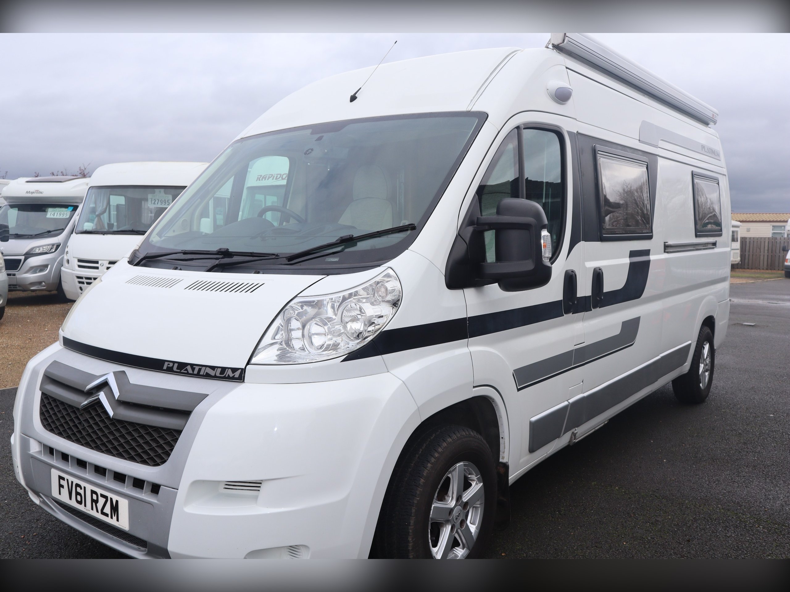 Citroen Relay, Platinum Conversion, 2 Berth, 2 Belts, Rear Lounge, Side Kitchen and Bathroom, Cab Air Con, Alloy Wheels, Reversing Camera.