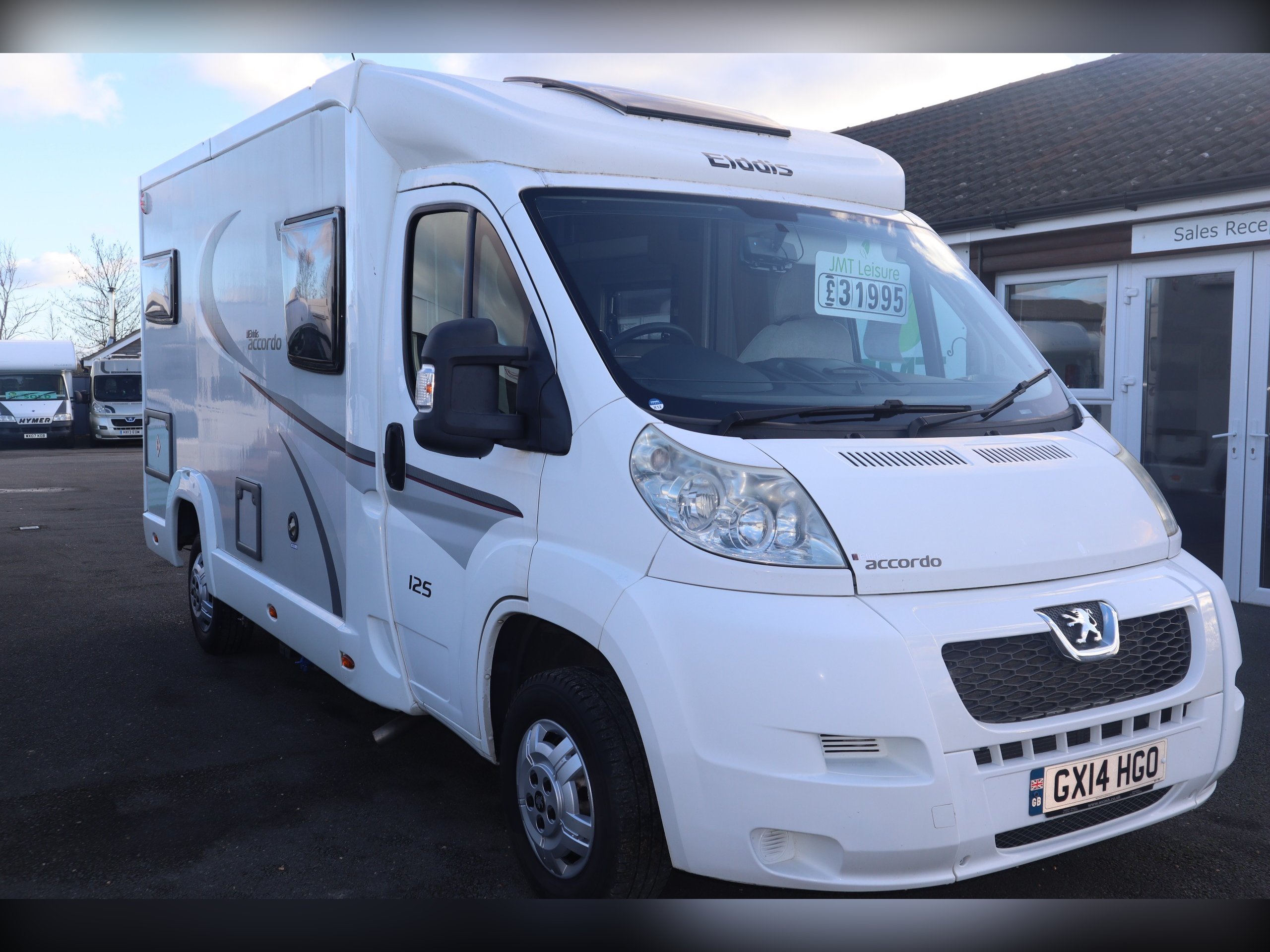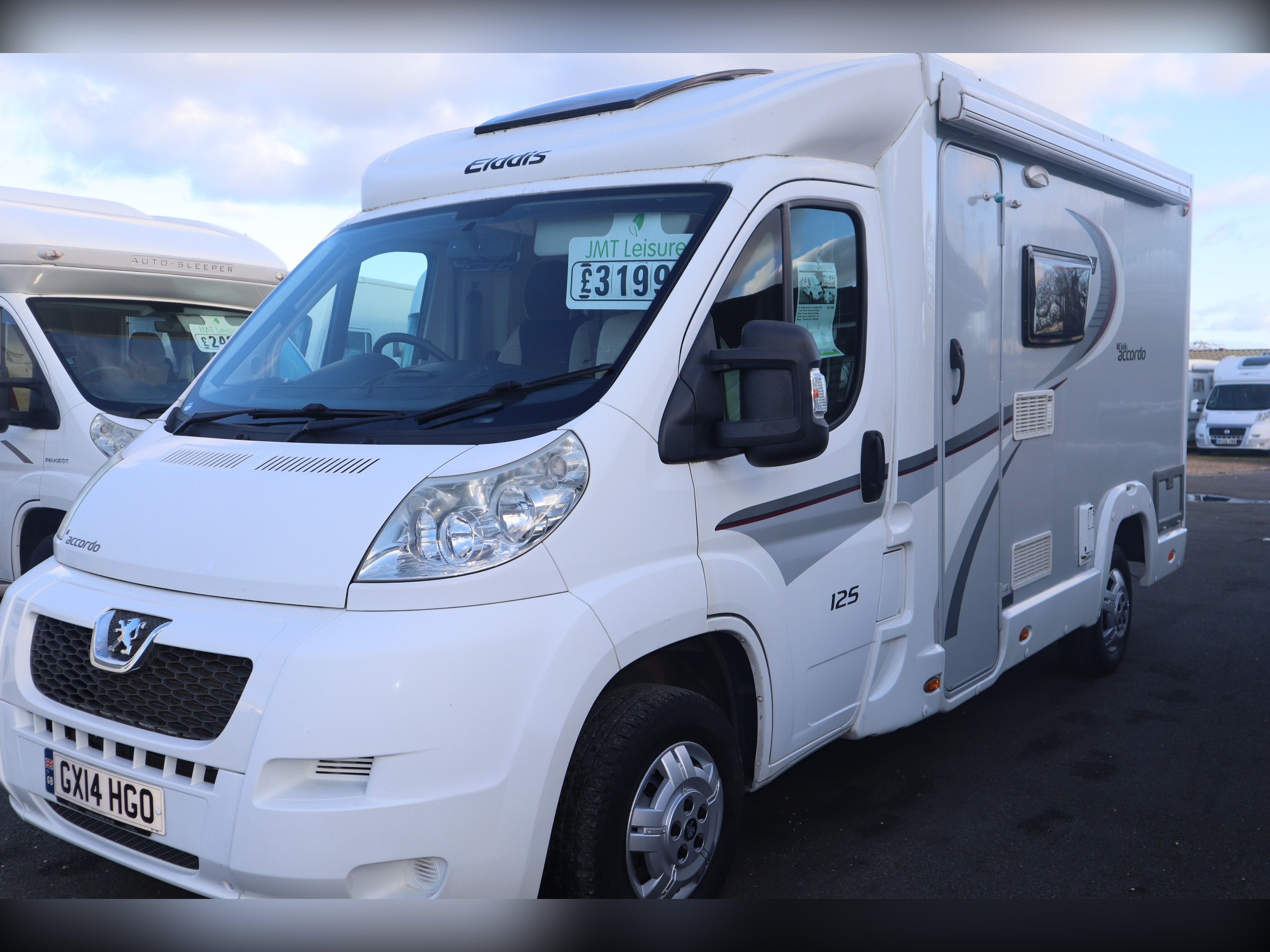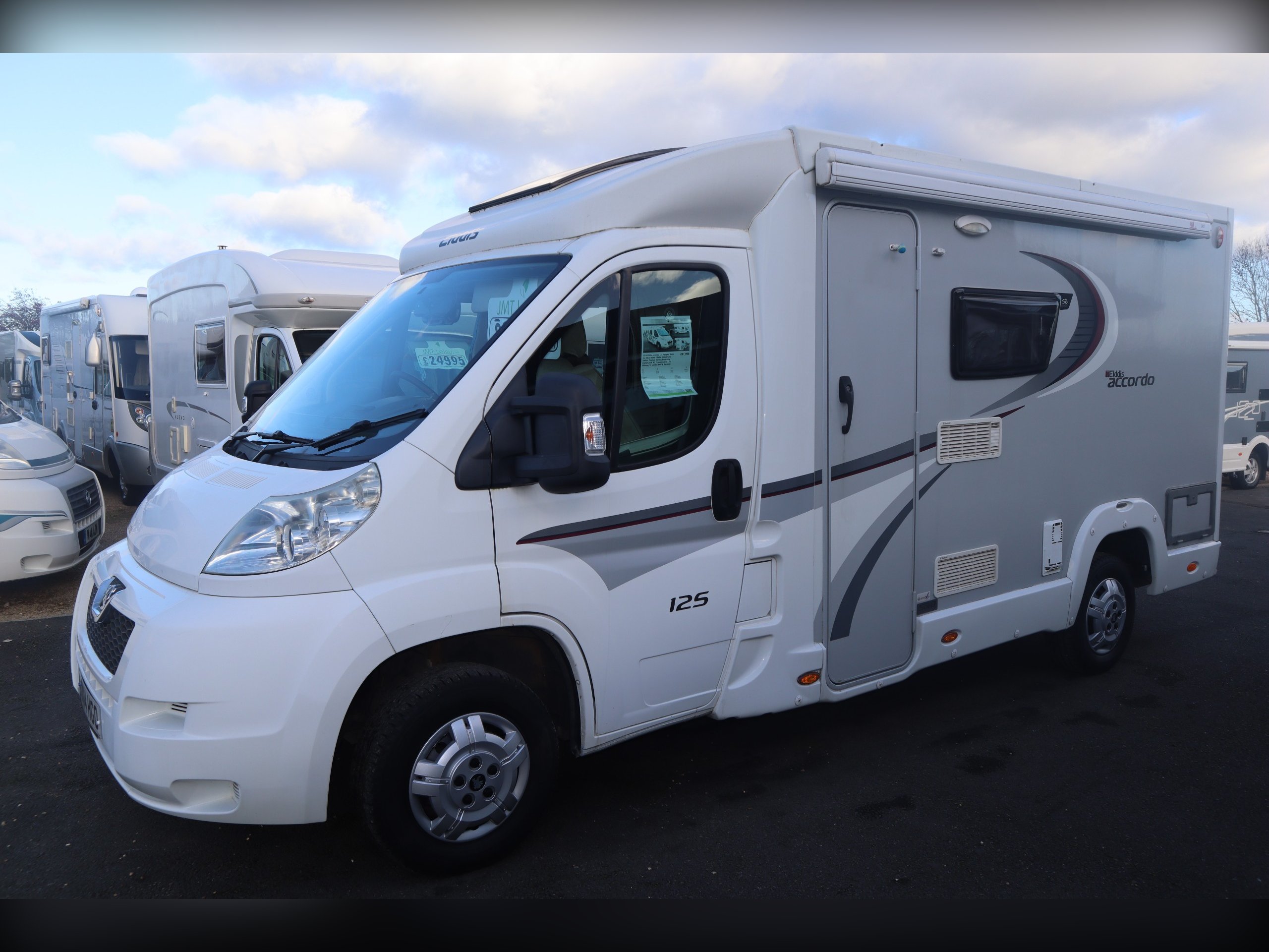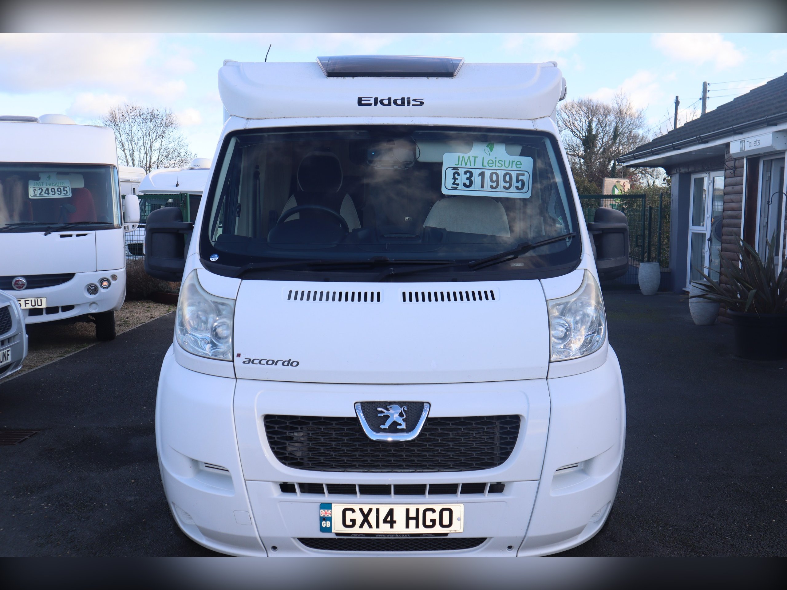 Elddis Accordo 125 Aniversary Edition, 2 Berth, 4 Belts, Rear fold up double bed with storage. Front half dinette with 2 additional belts. Side well equipped kitchen. Side bathroom with Toilet, Shower and wash basin. Extras include a reversing camera and awning. Well designed spacious motorhome with low mileage.