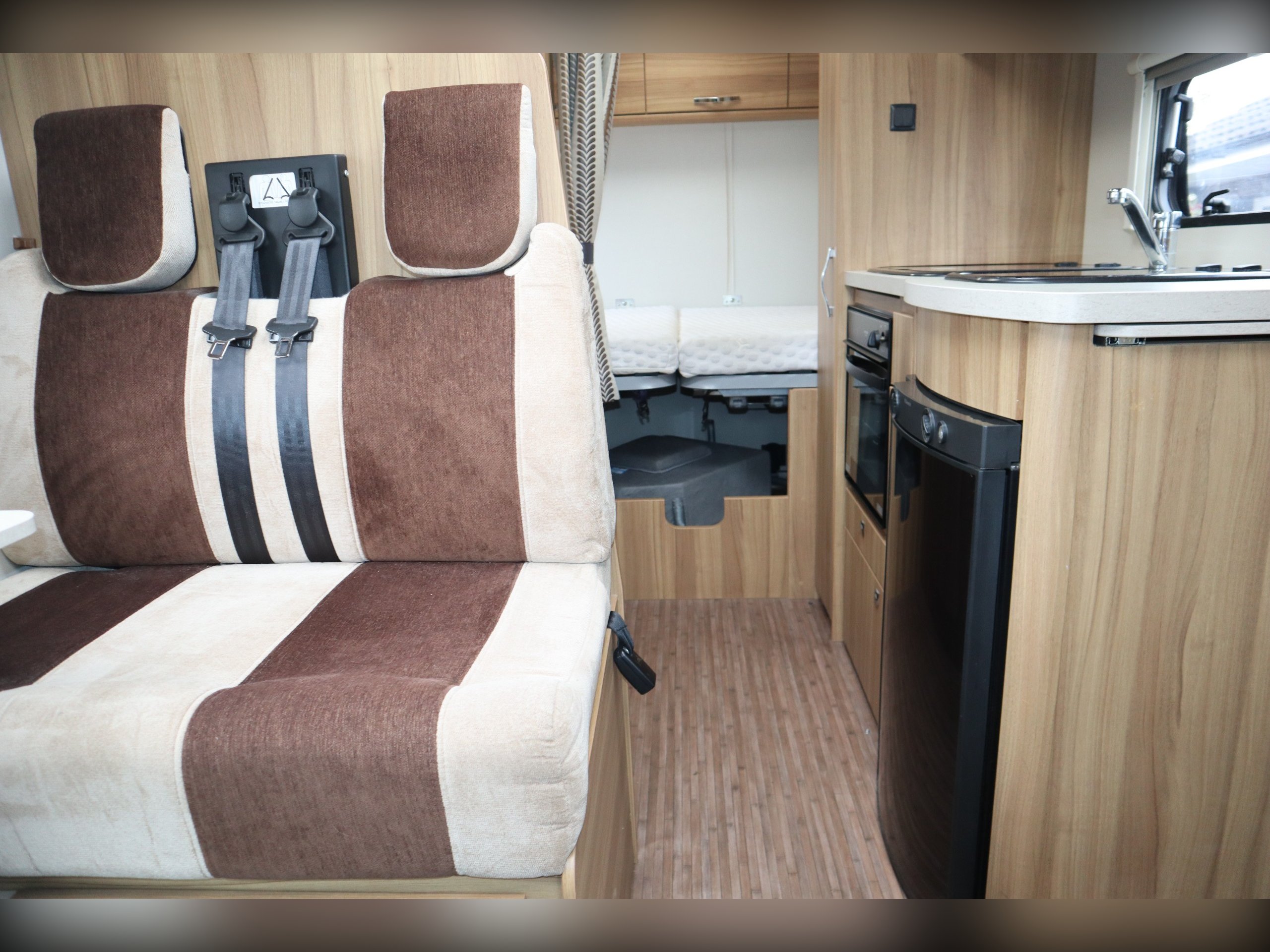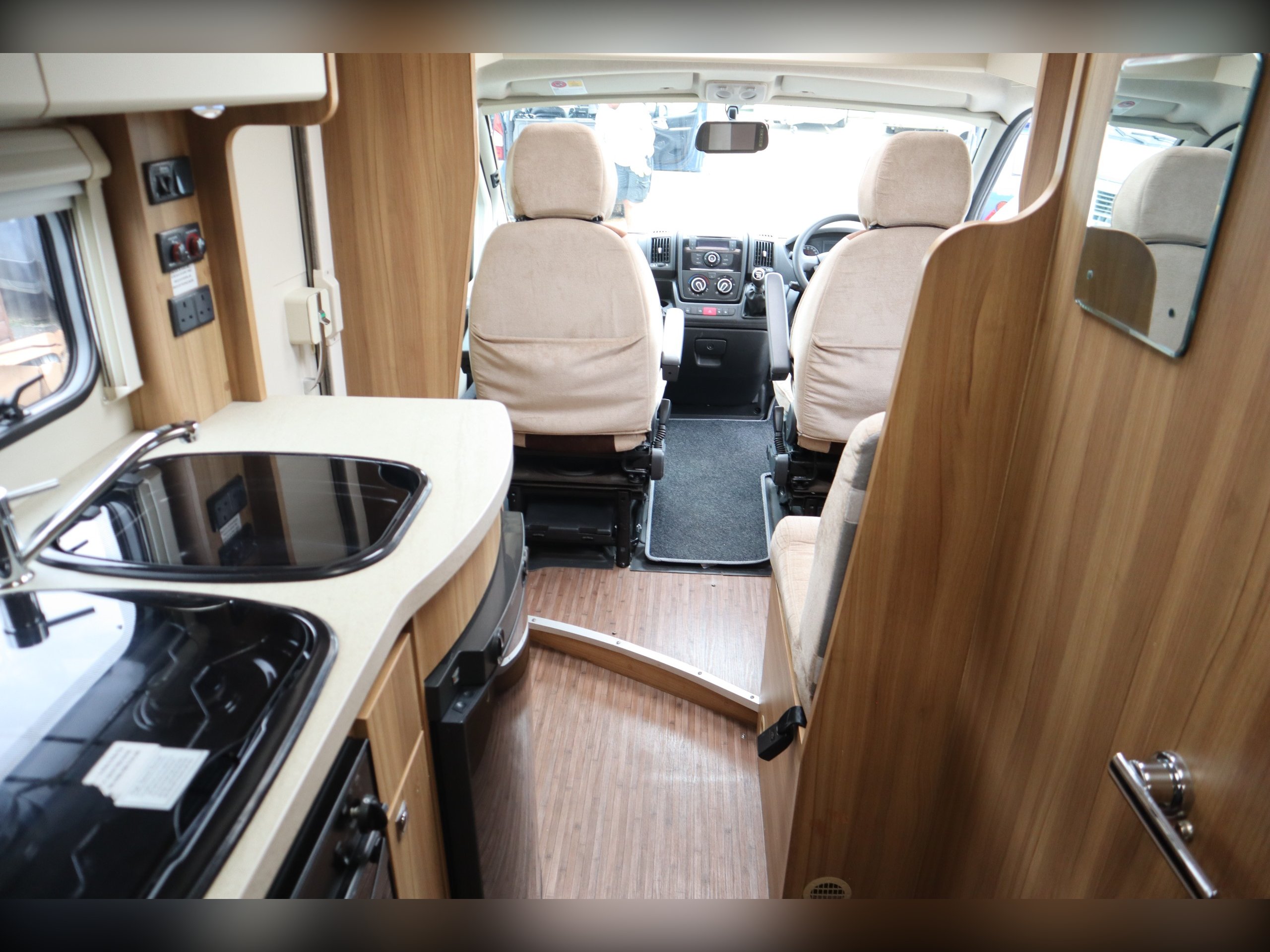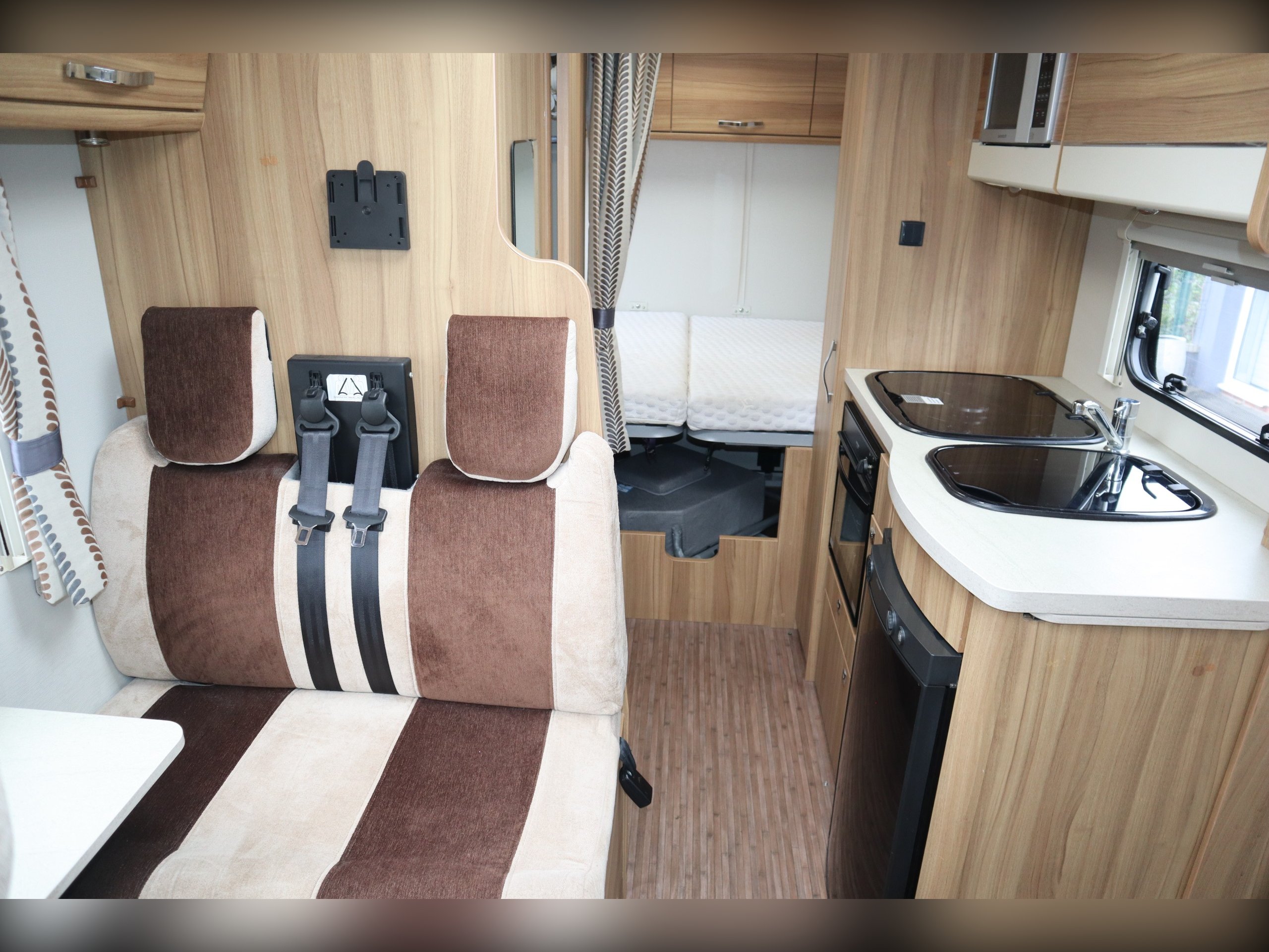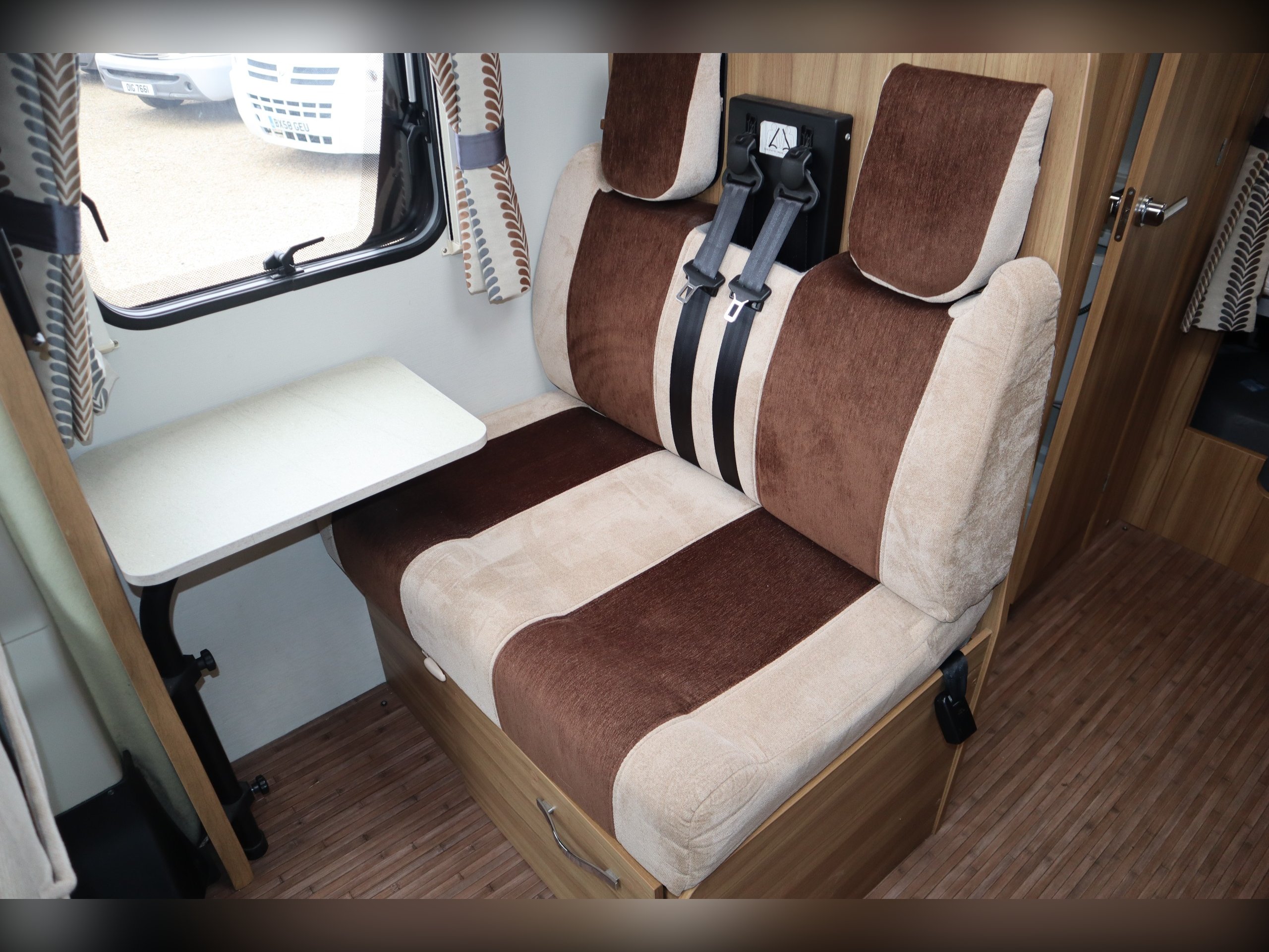 Elddis Accordo 125 Aniversary Edition, 2 Berth, 4 Belts, Rear fold up double bed with storage. Front half dinette with 2 additional belts. Side well equipped kitchen. Side bathroom with Toilet, Shower and wash basin. Extras include a reversing camera and awning. Well designed spacious motorhome with low mileage.