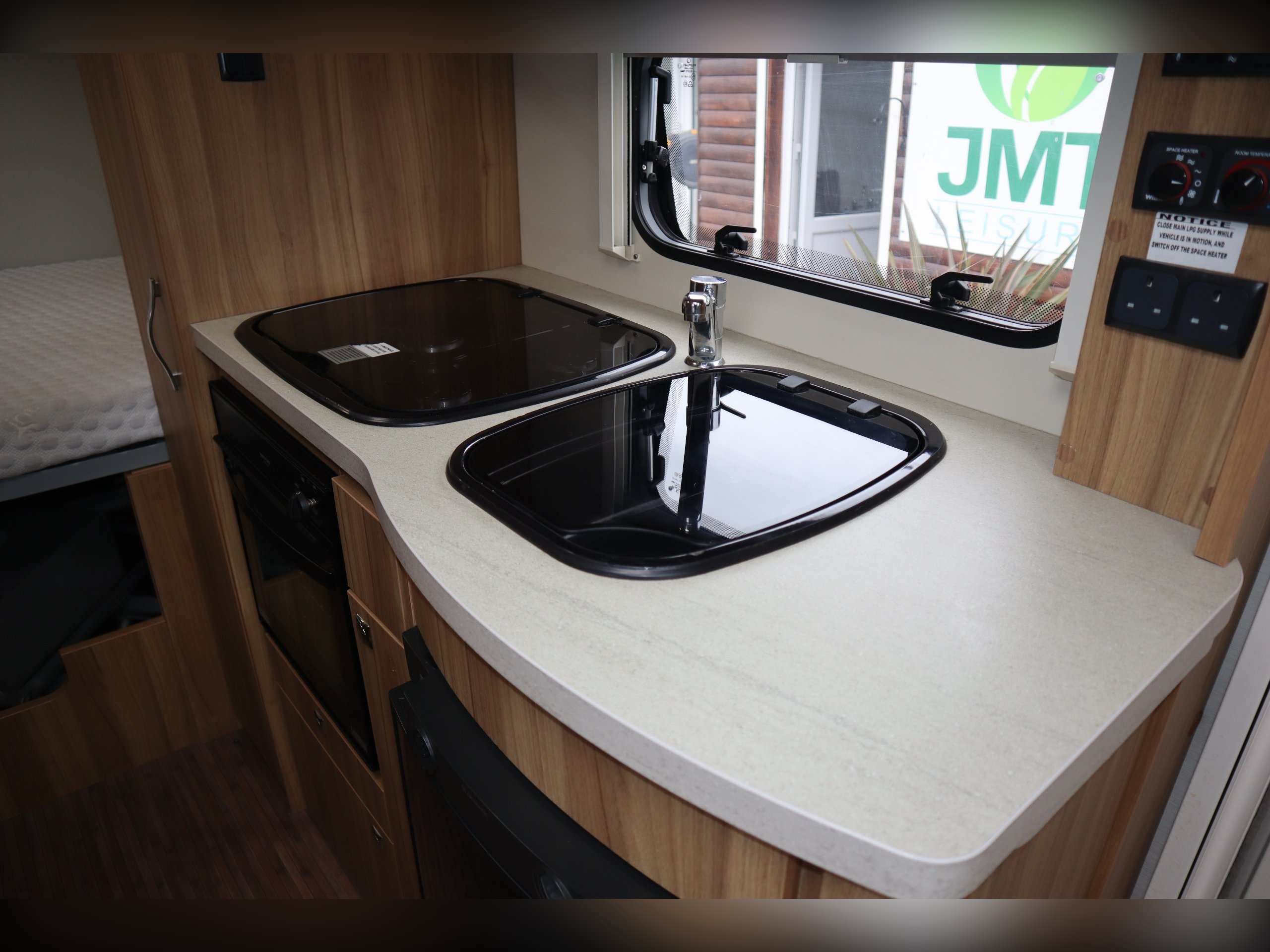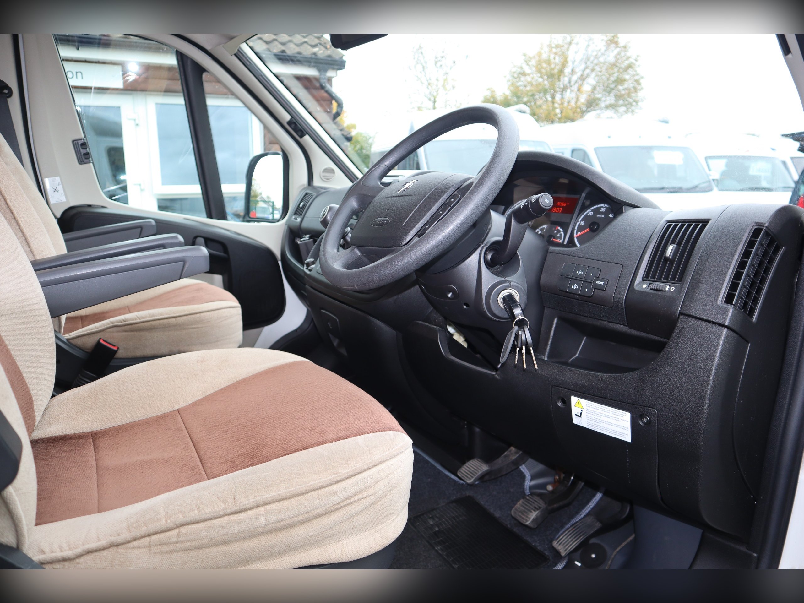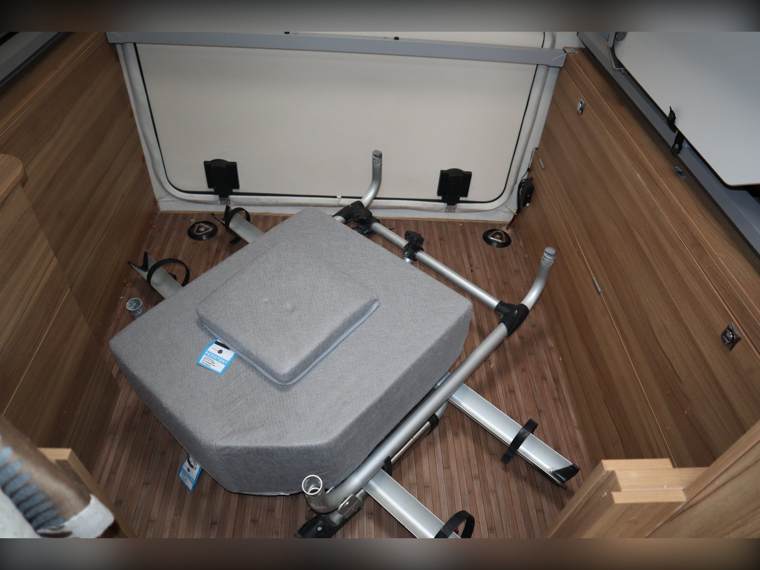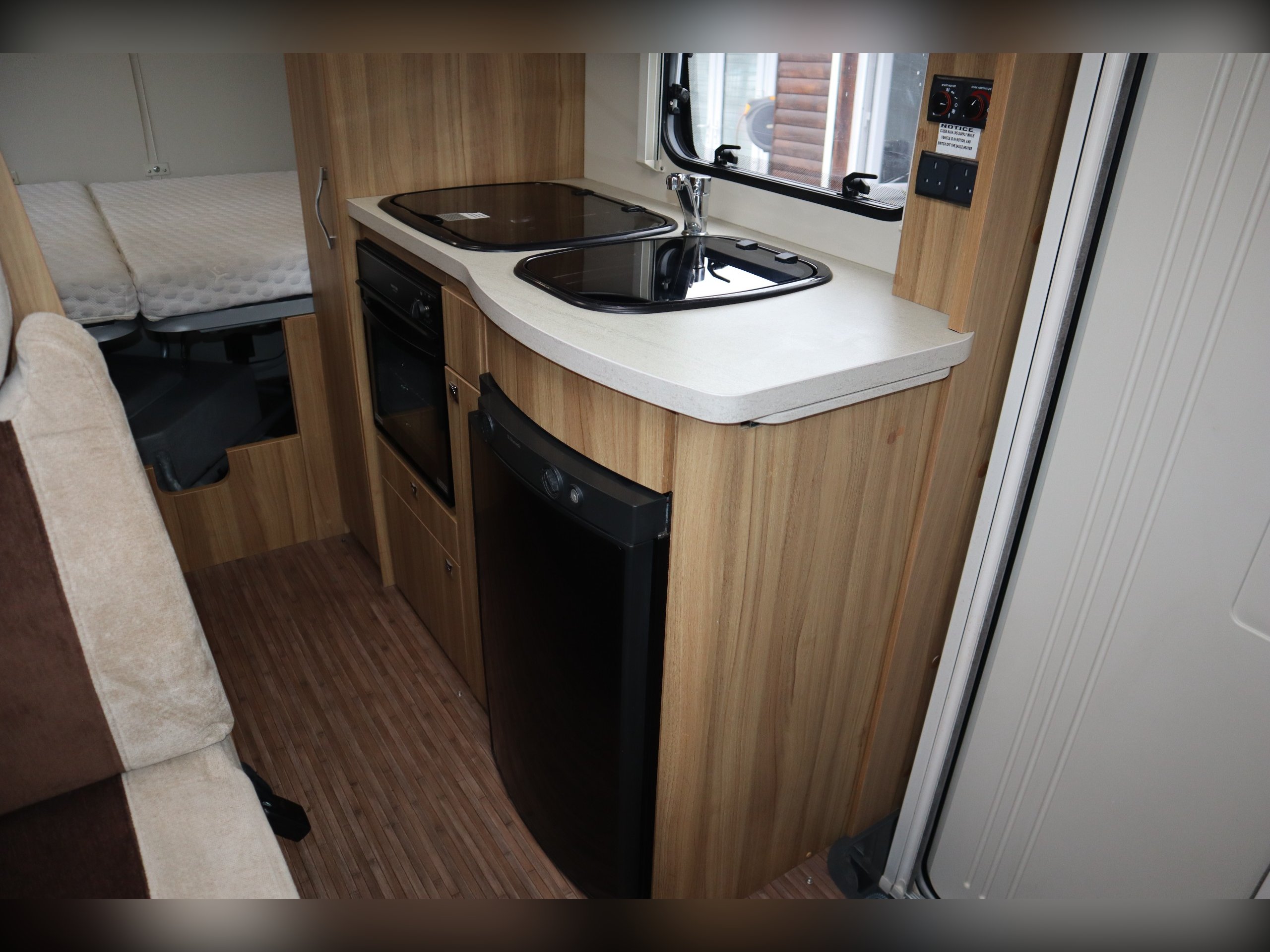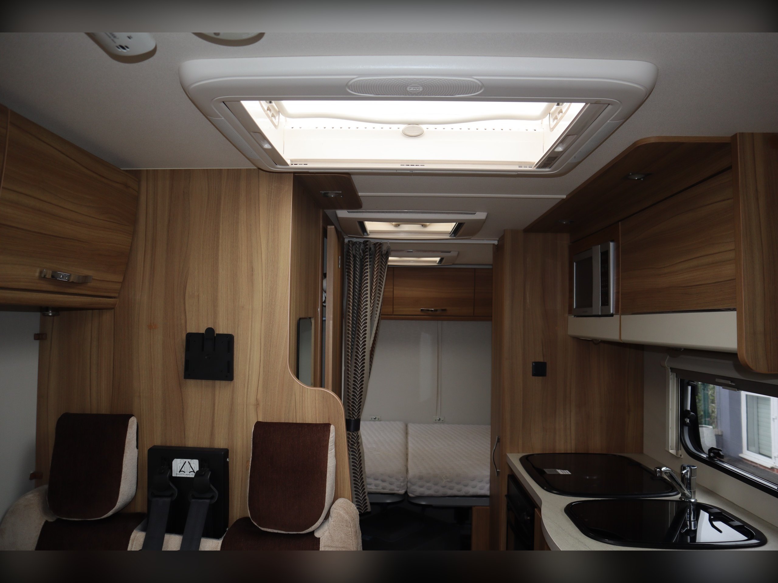 Elddis Accordo 125 Aniversary Edition, 2 Berth, 4 Belts, Rear fold up double bed with storage. Front half dinette with 2 additional belts. Side well equipped kitchen. Side bathroom with Toilet, Shower and wash basin. Extras include a reversing camera and awning. Well designed spacious motorhome with low mileage.