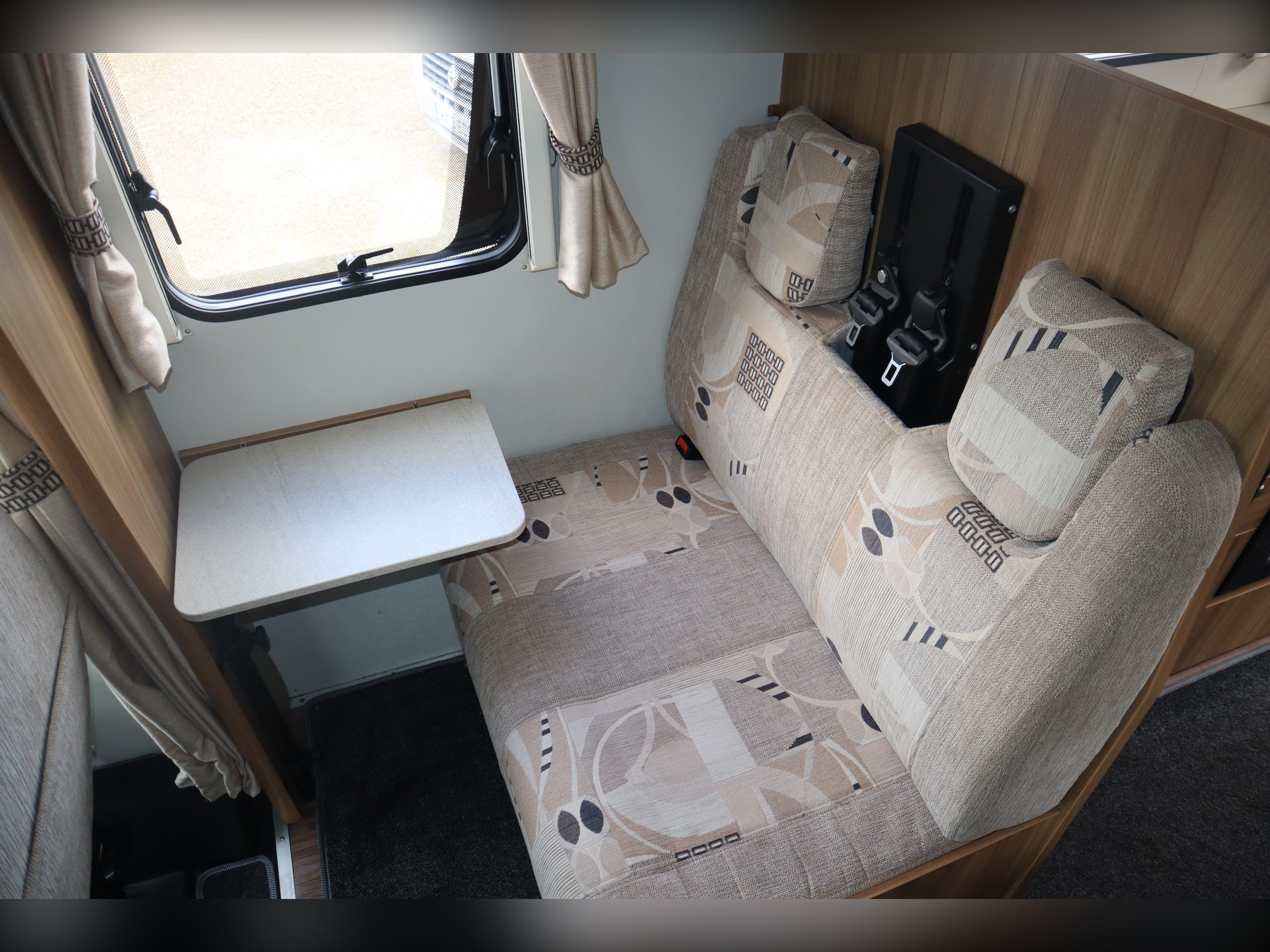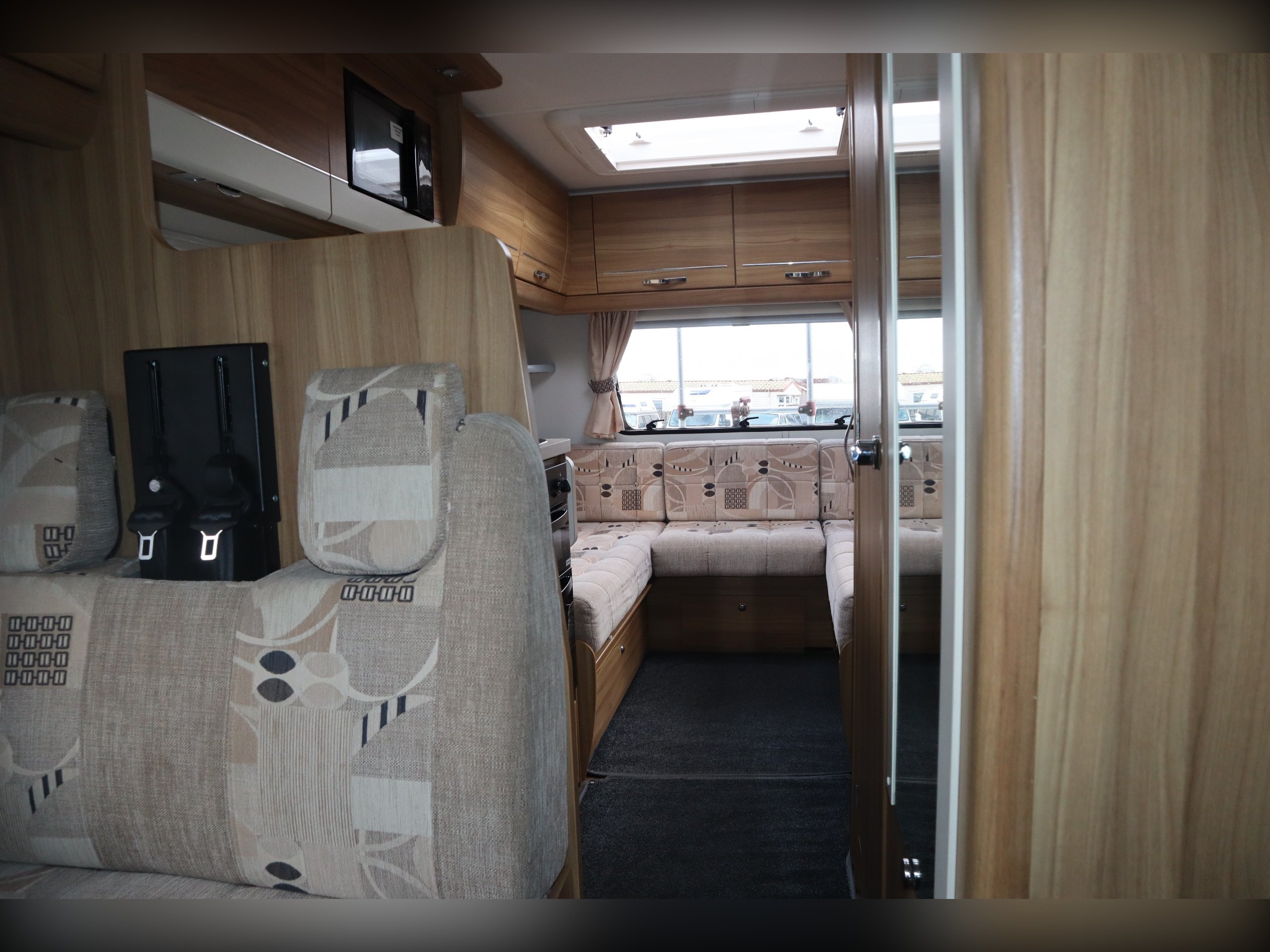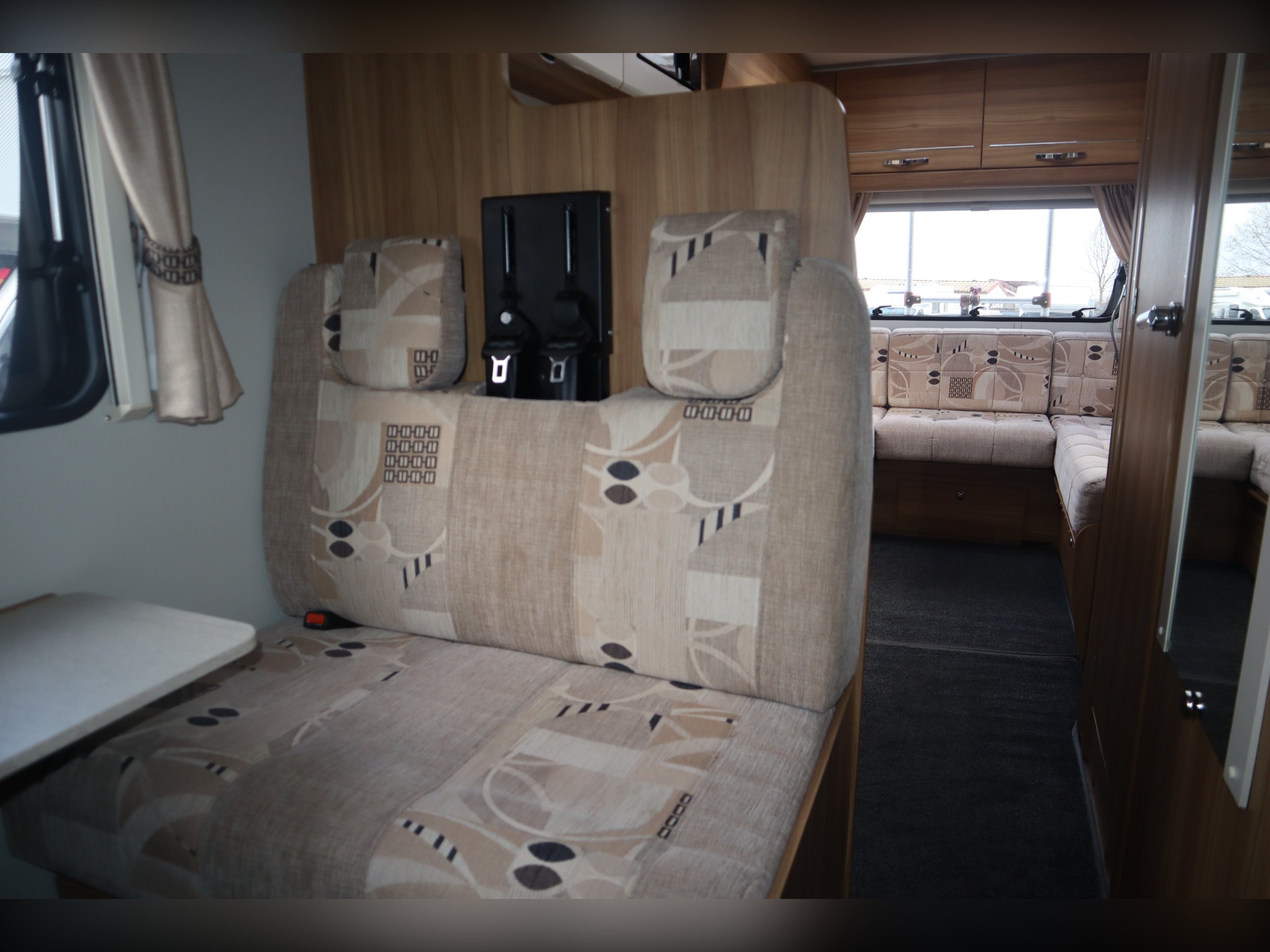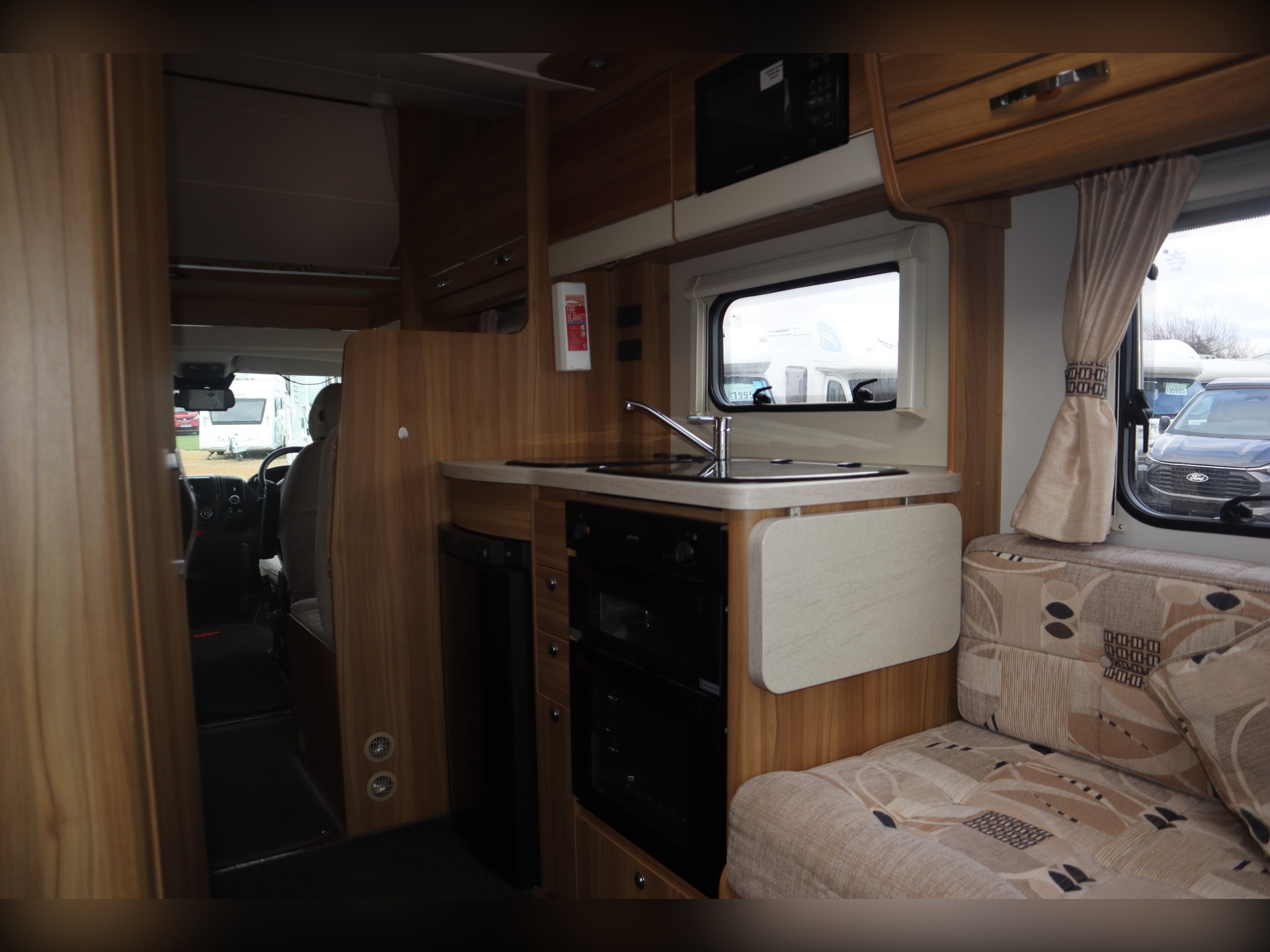 2014 Elddis Majestic 145, 4 Berth, 4 Belts, Rear Lounge, Side Kitchen with oven, hob & grill, Microwave and fridge freezer. Large rear Lounge that converts to a large bed. 2 rear forward facing belted seats. Side spacious bathroom. Over cab bed. Well equipped cab with air con, cruse control, 6 speed gearbox, reversing camera, electric windows and mirrors. Outside you will find a tow bar, awning and bike rack.