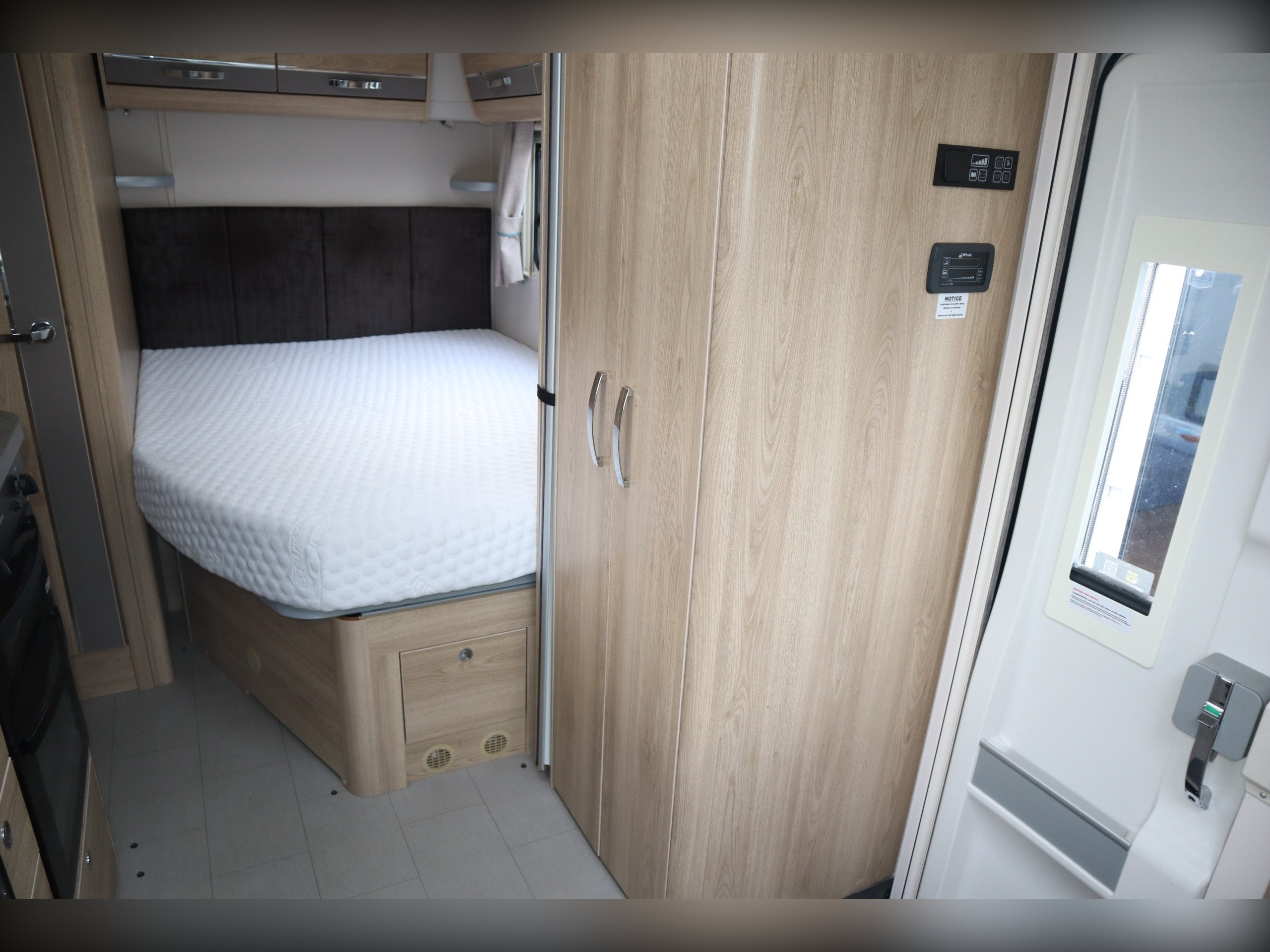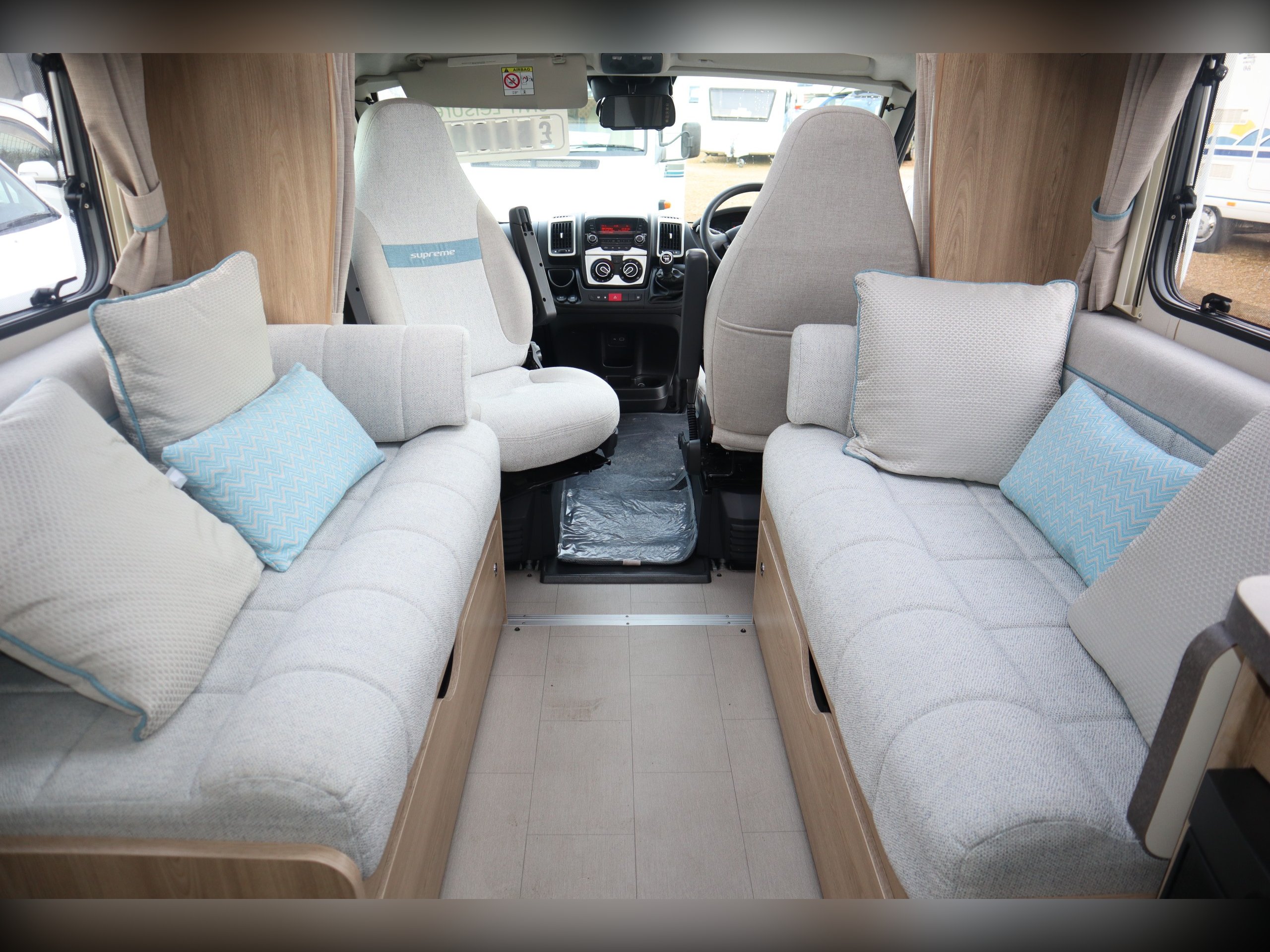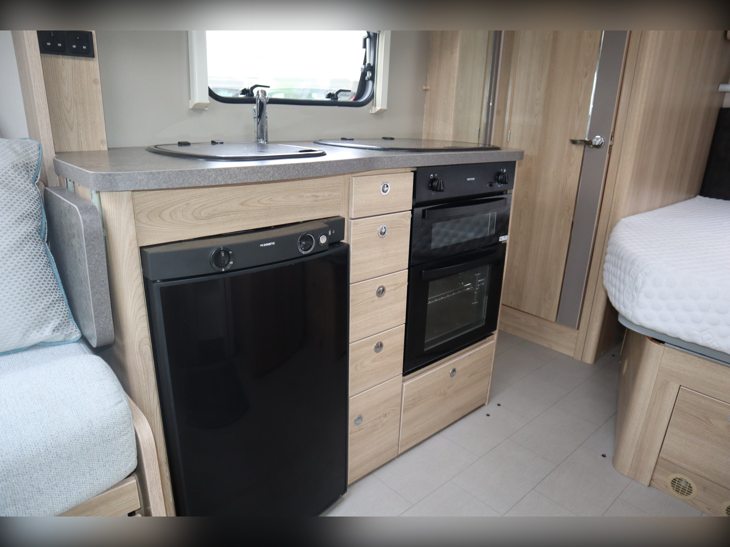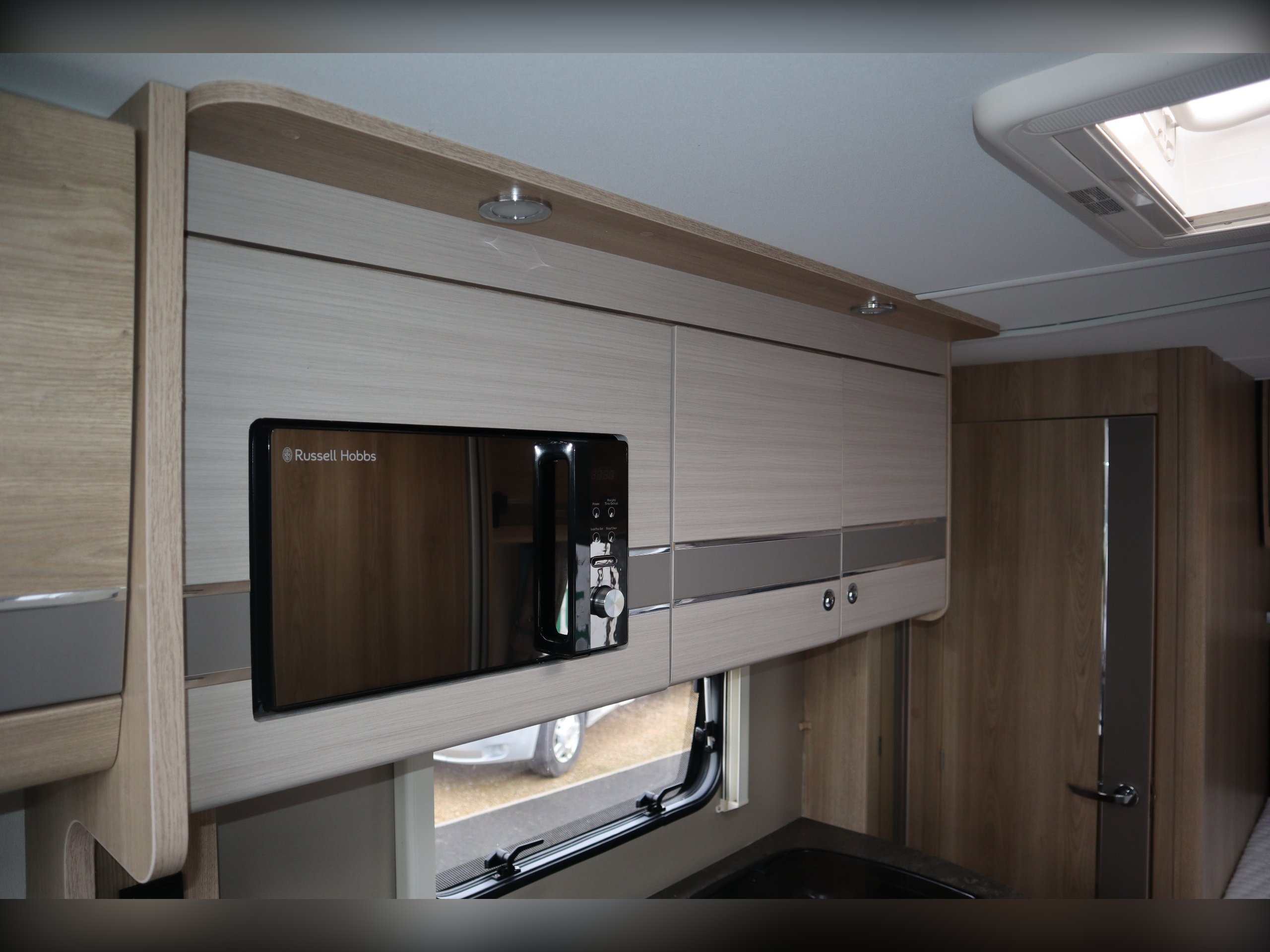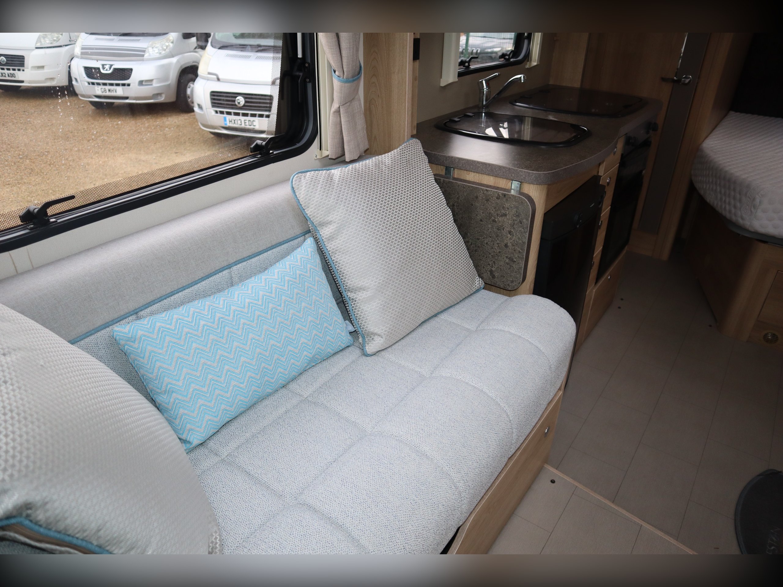 Elddis Supreme 155, 4 Berth, 4 Belts, Fixed Rear Bed, Front Benches that convert to a double bed, Side well equipped kitchen with Oven, Hob, Grill, Fridge Freezer & Microwave. Large rear side bathroom. Peugeot Boxer Cab with Air Con, Cruise Control, 6 Speed Gearbox, Reversing Camera and Electric Windows & Mirrors. Extras include Alloy Wheels, Tow Bar and Awning.