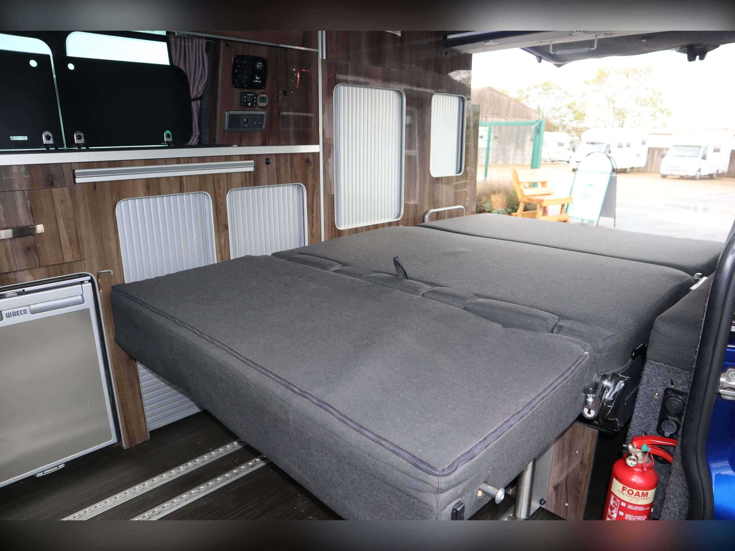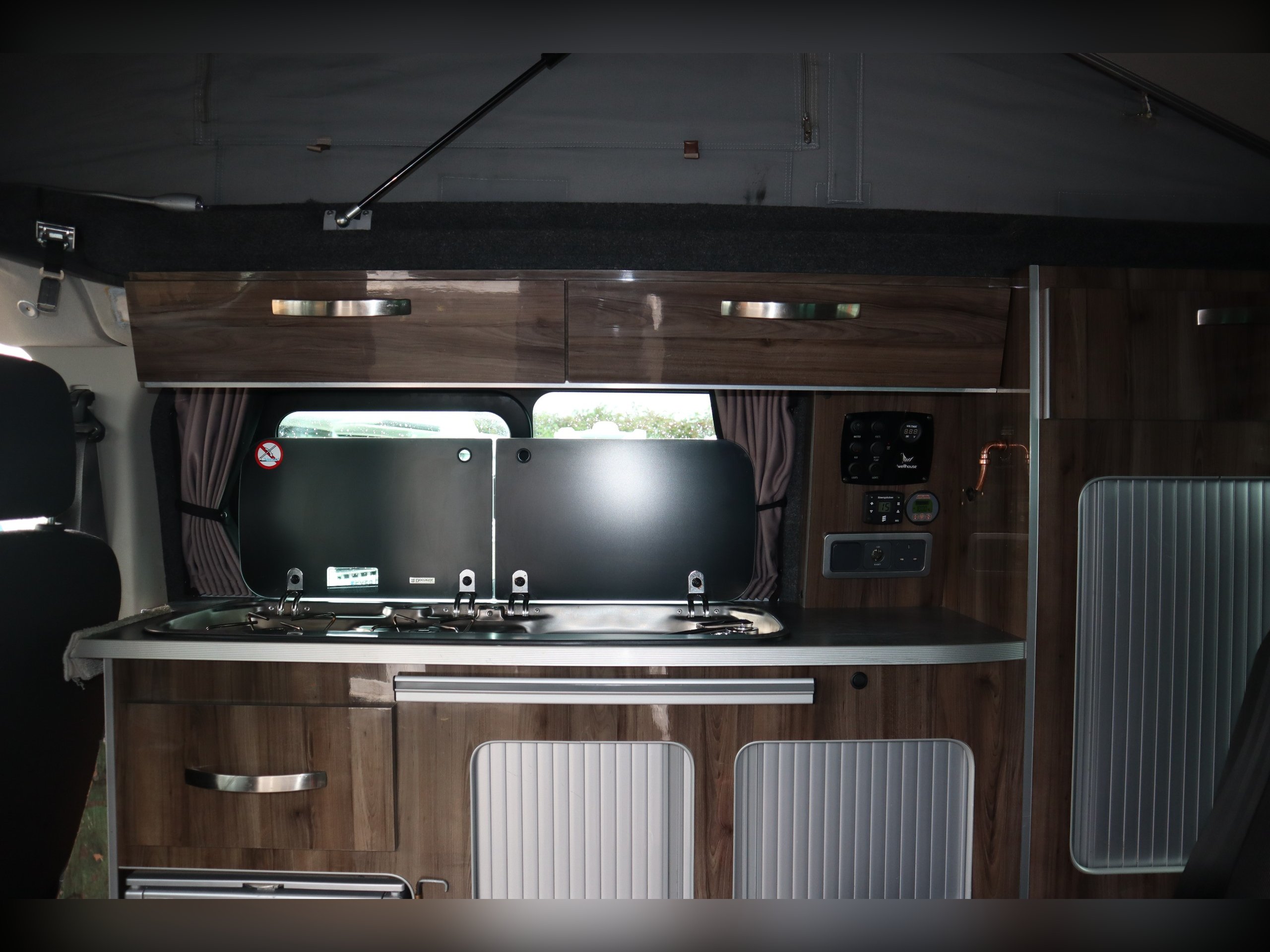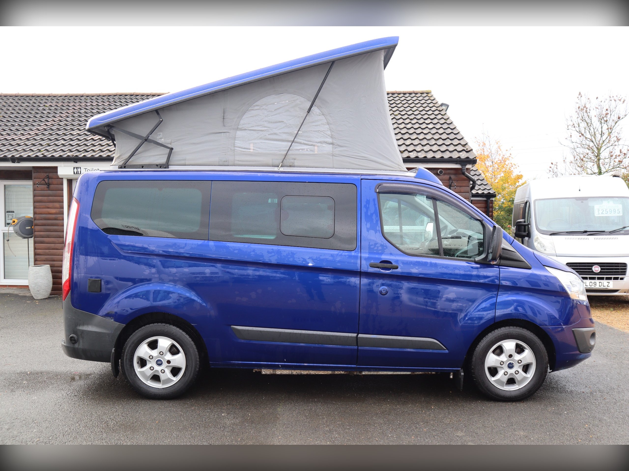 Wellhouse Leisure, Ford Transit Tourneo Custom Terrier. 4 Berth, 4 Belts, Pop top roof, RIB Bed, fridge, hob and sink, heating. 1 owner from new with full service history.