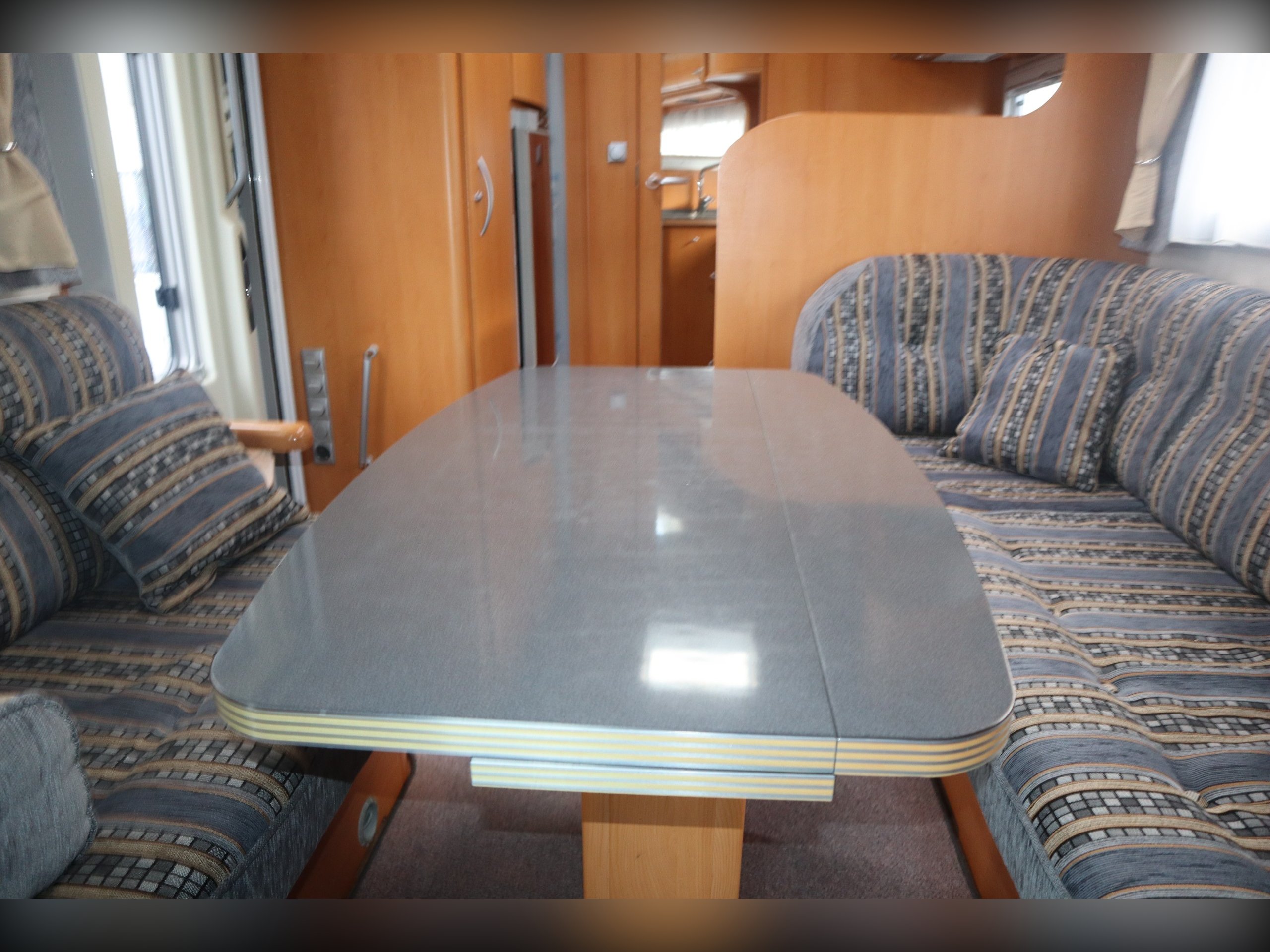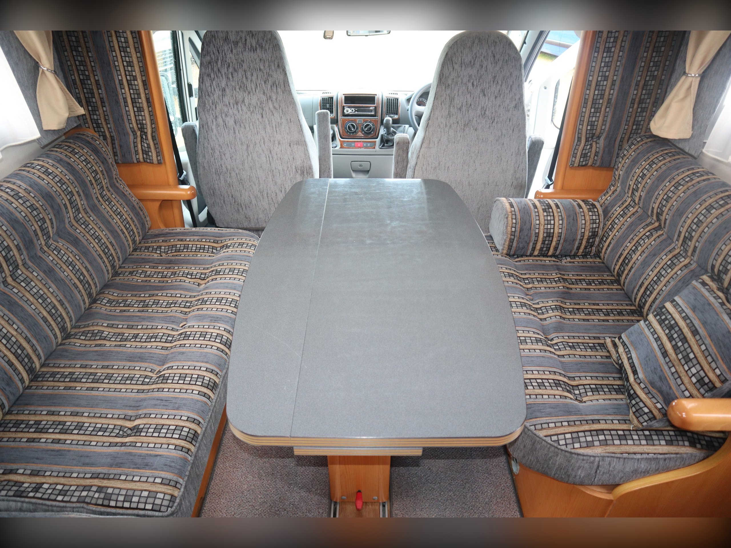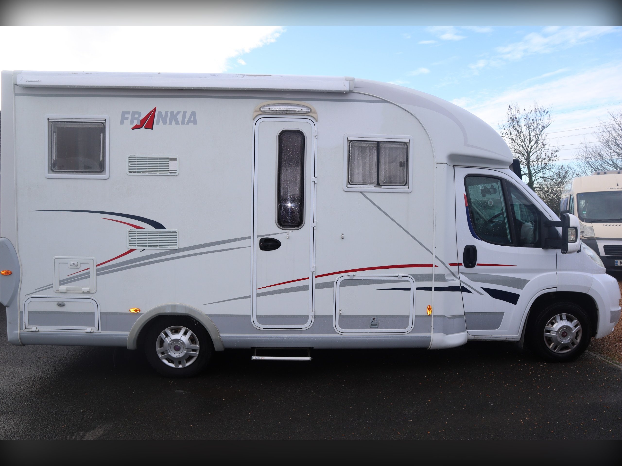 Fiat Ducato, Frankia Compact Class 640, 2/4 Berth, Electric Drop Down Bed, Large Rear Washroom with separate shower. Front dining / seating area. Side well equipped kitchen. Cab Air Conditioning, electric windows and mirrors, extras include an awning. Quality built rare motorhome