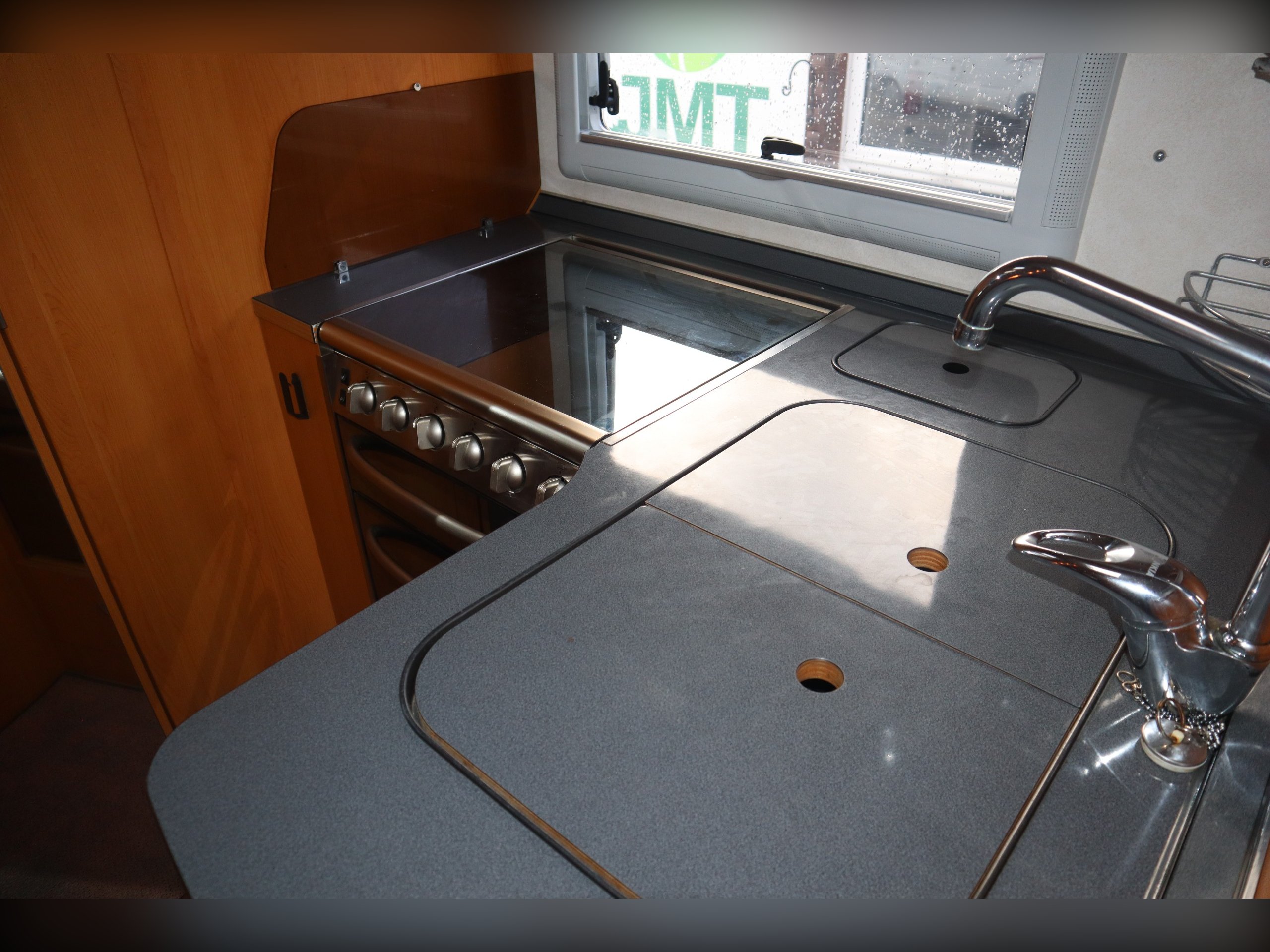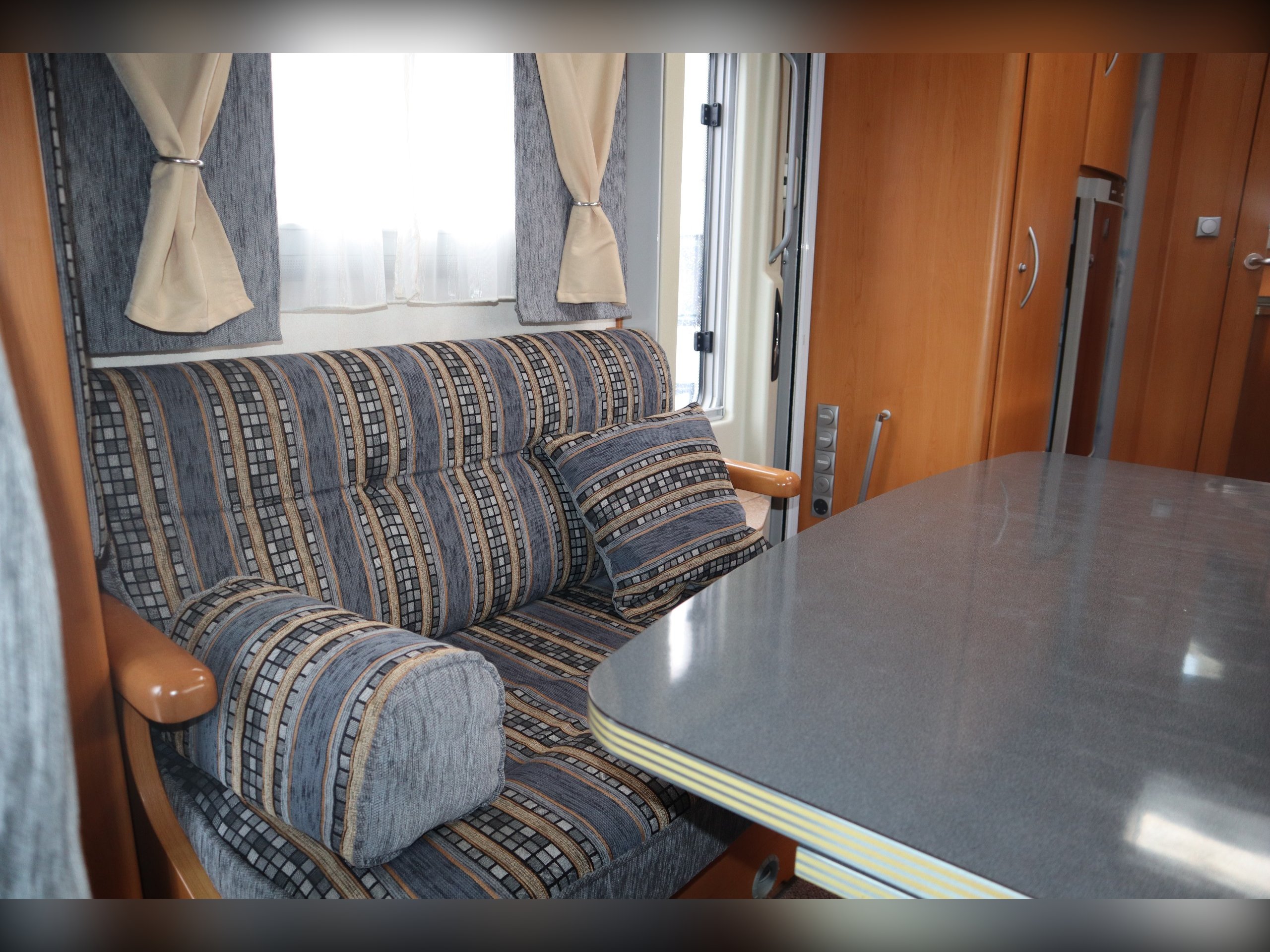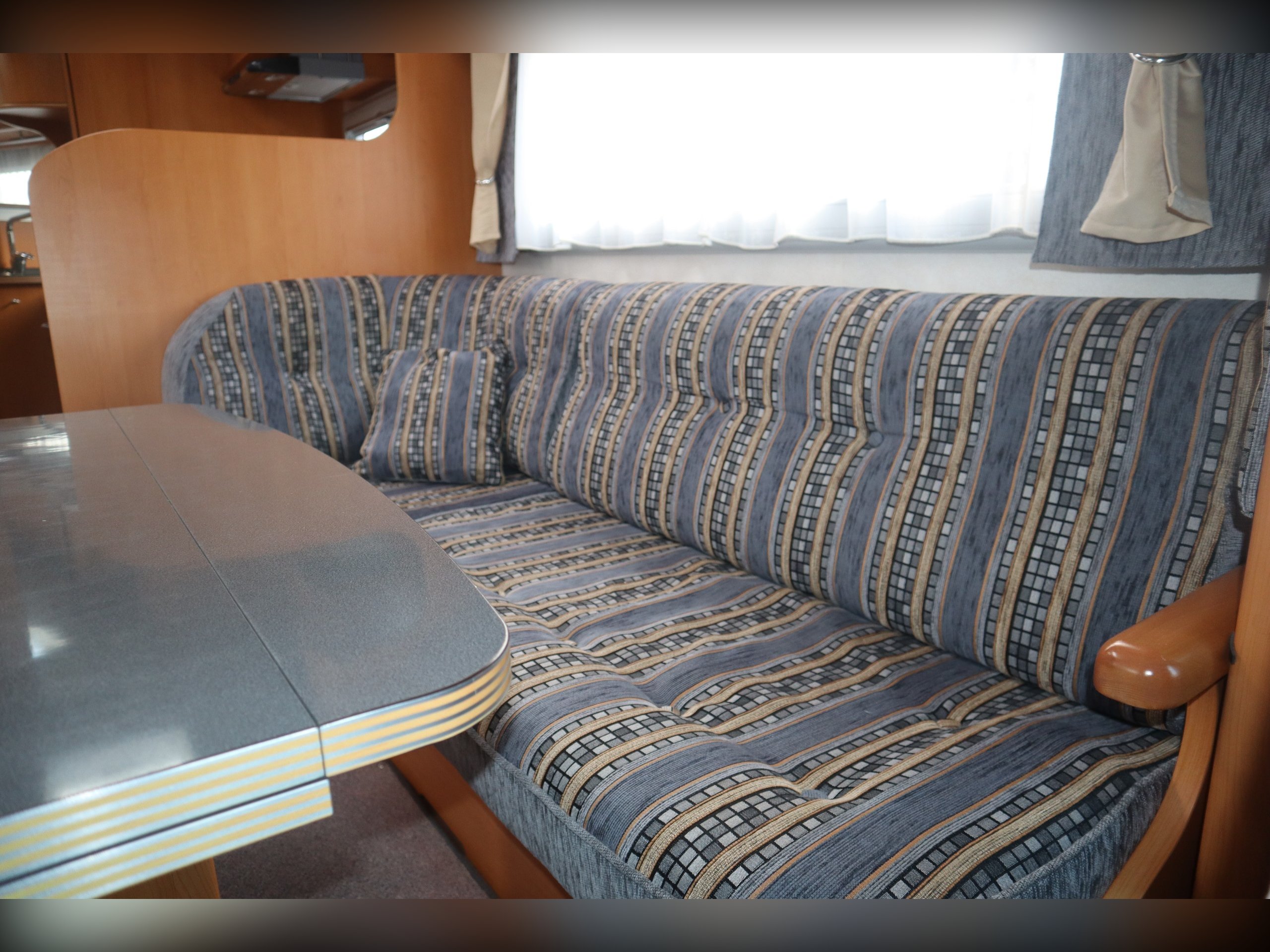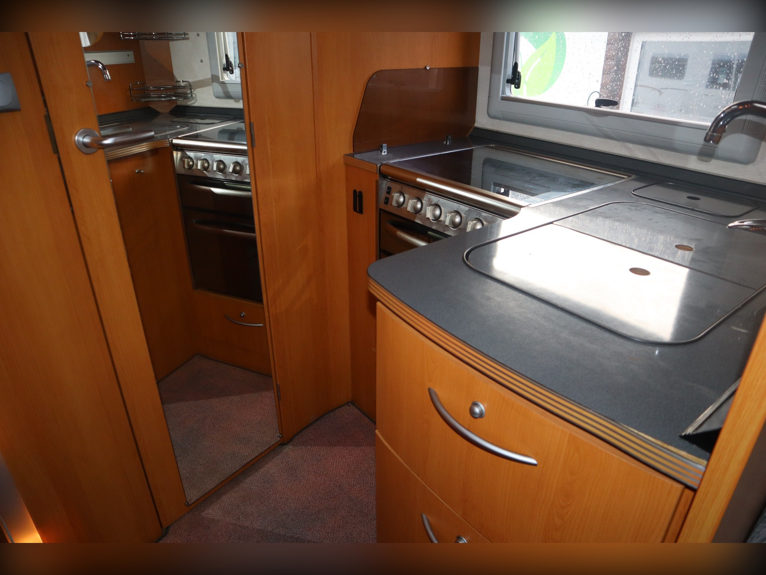 Fiat Ducato, Frankia Compact Class 640, 2/4 Berth, Electric Drop Down Bed, Large Rear Washroom with separate shower. Front dining / seating area. Side well equipped kitchen. Cab Air Conditioning, electric windows and mirrors, extras include an awning. Quality built rare motorhome