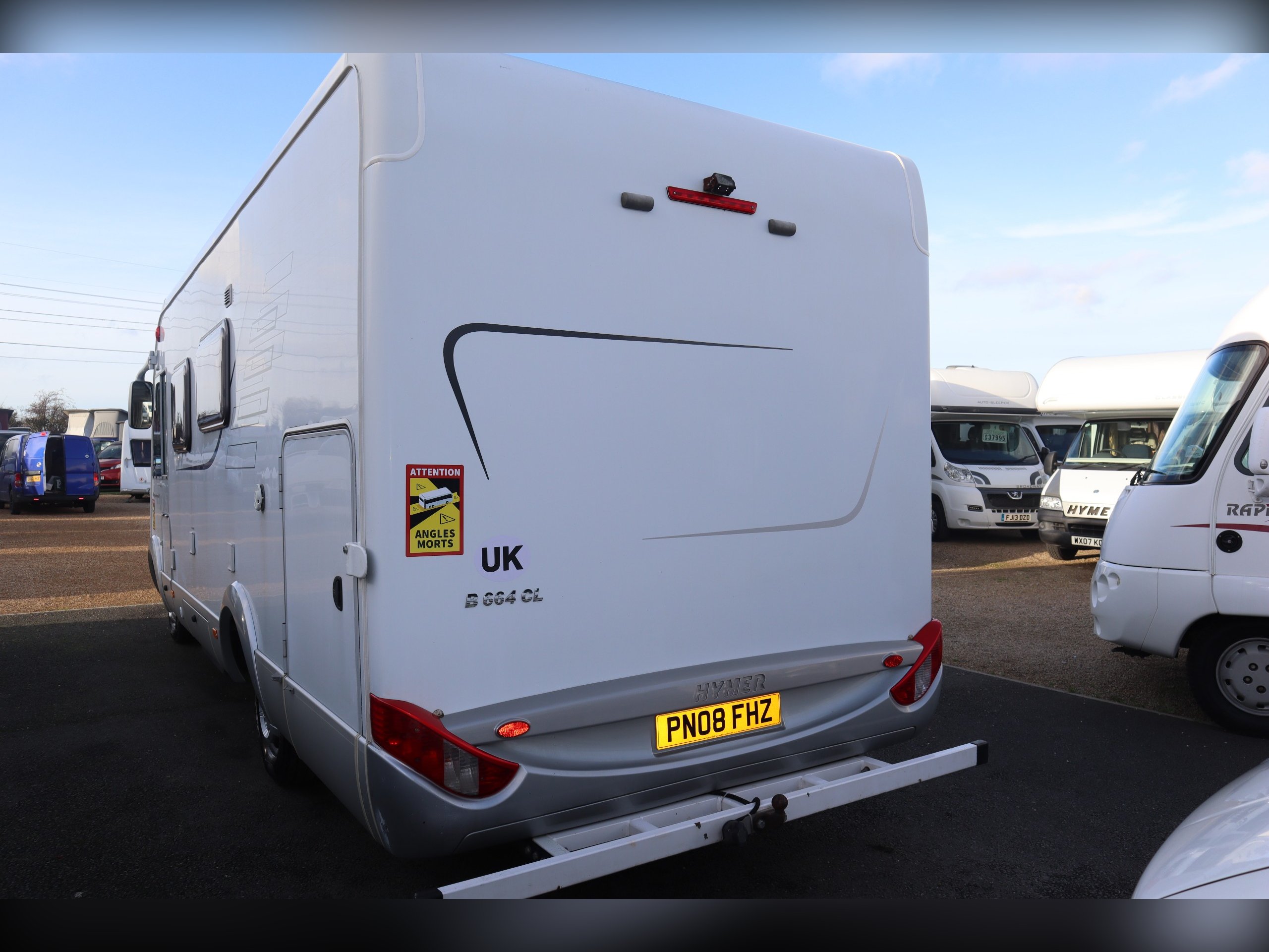Hymer B664CL, 5 Berth, 4 Belts, Large Drop Down Over Cab Bed, Fixed Rear Bed, Large Garage, Front Dinette with 2 Additional Seat Belts, Central Kitchen and Spacious Bathroom with Separate Shower. Cab Air Conditioning, Tow Bar, Awning, Electric Windows & Mirrors, Superb quality Motorhome.