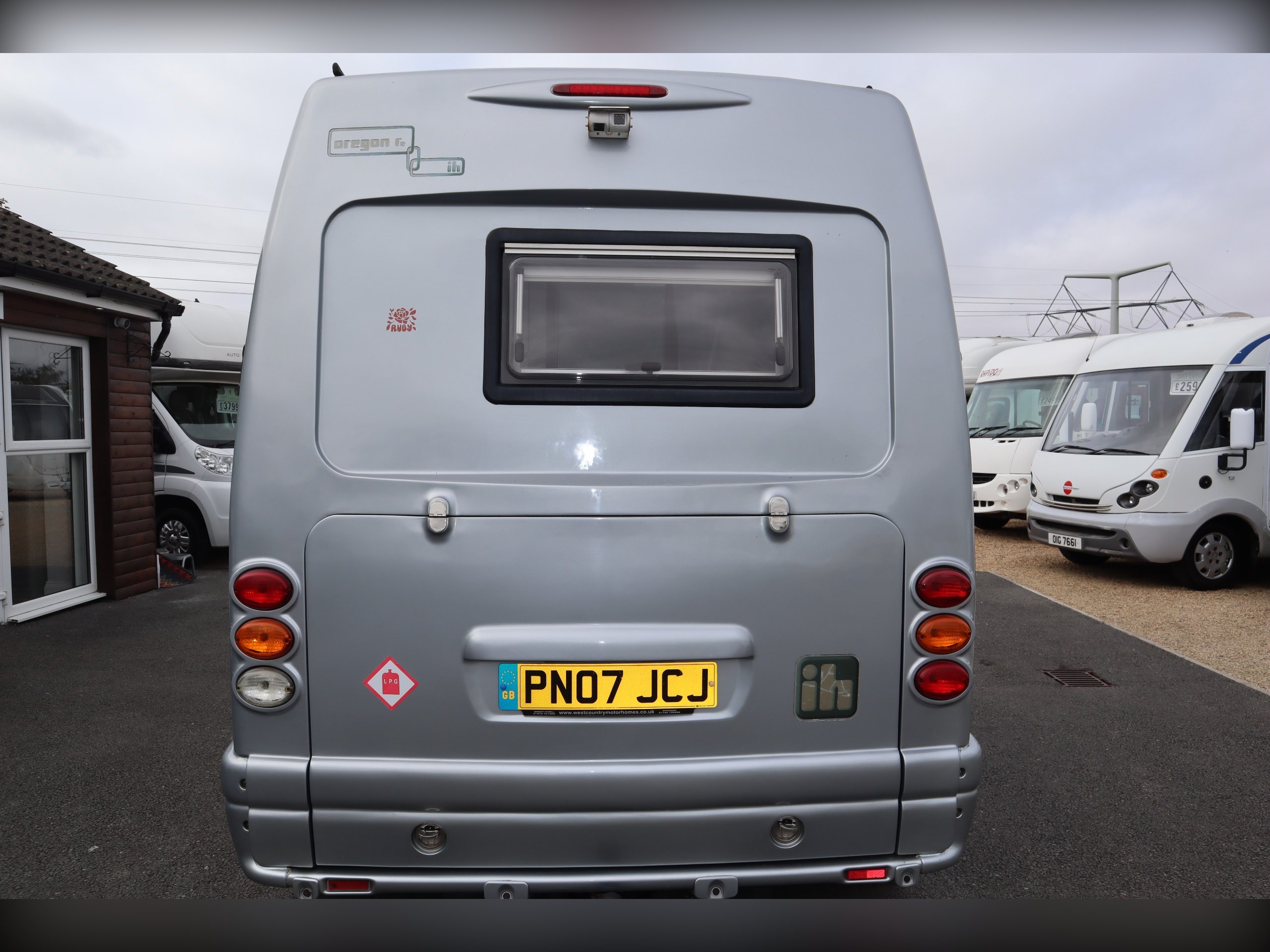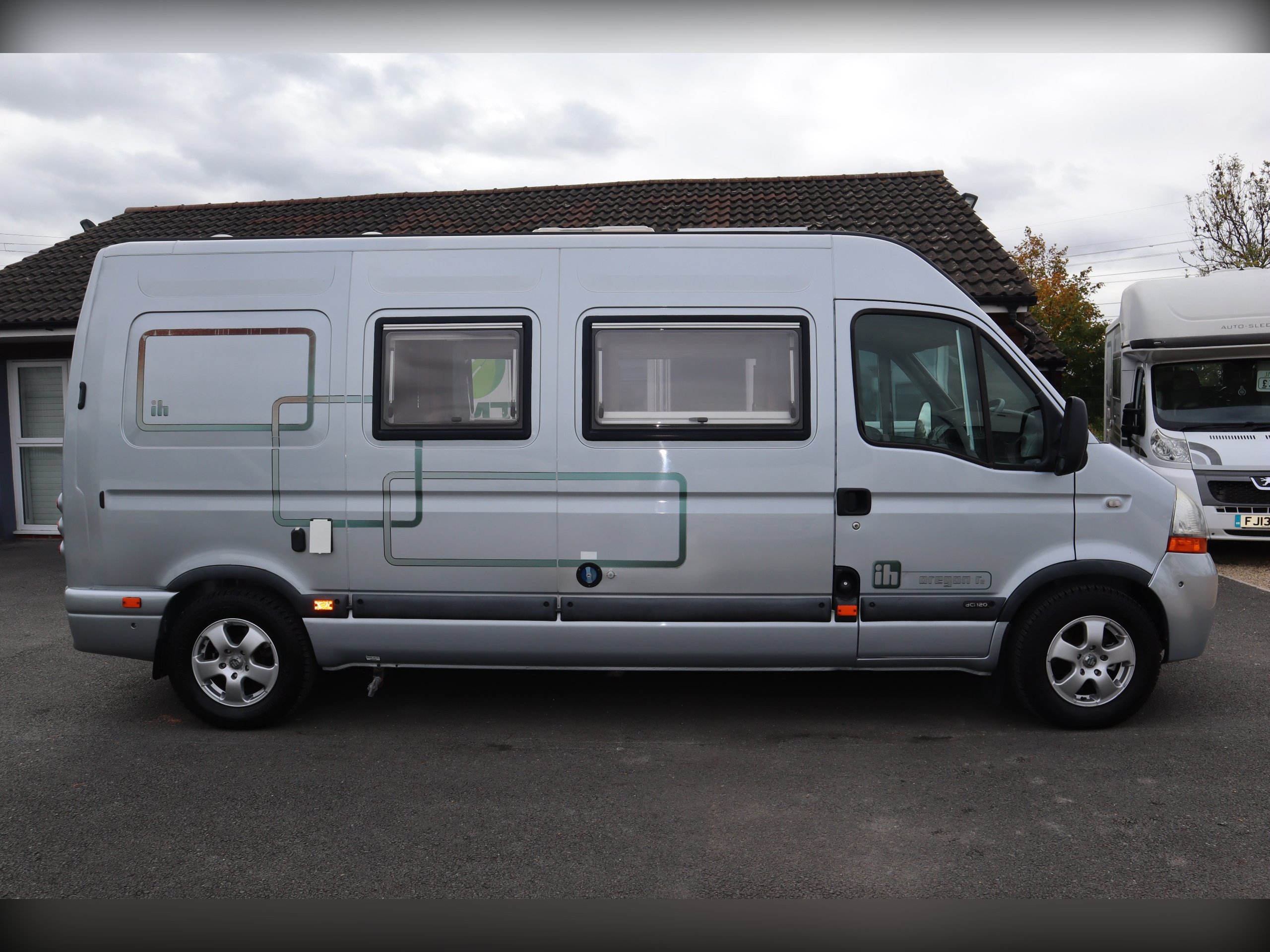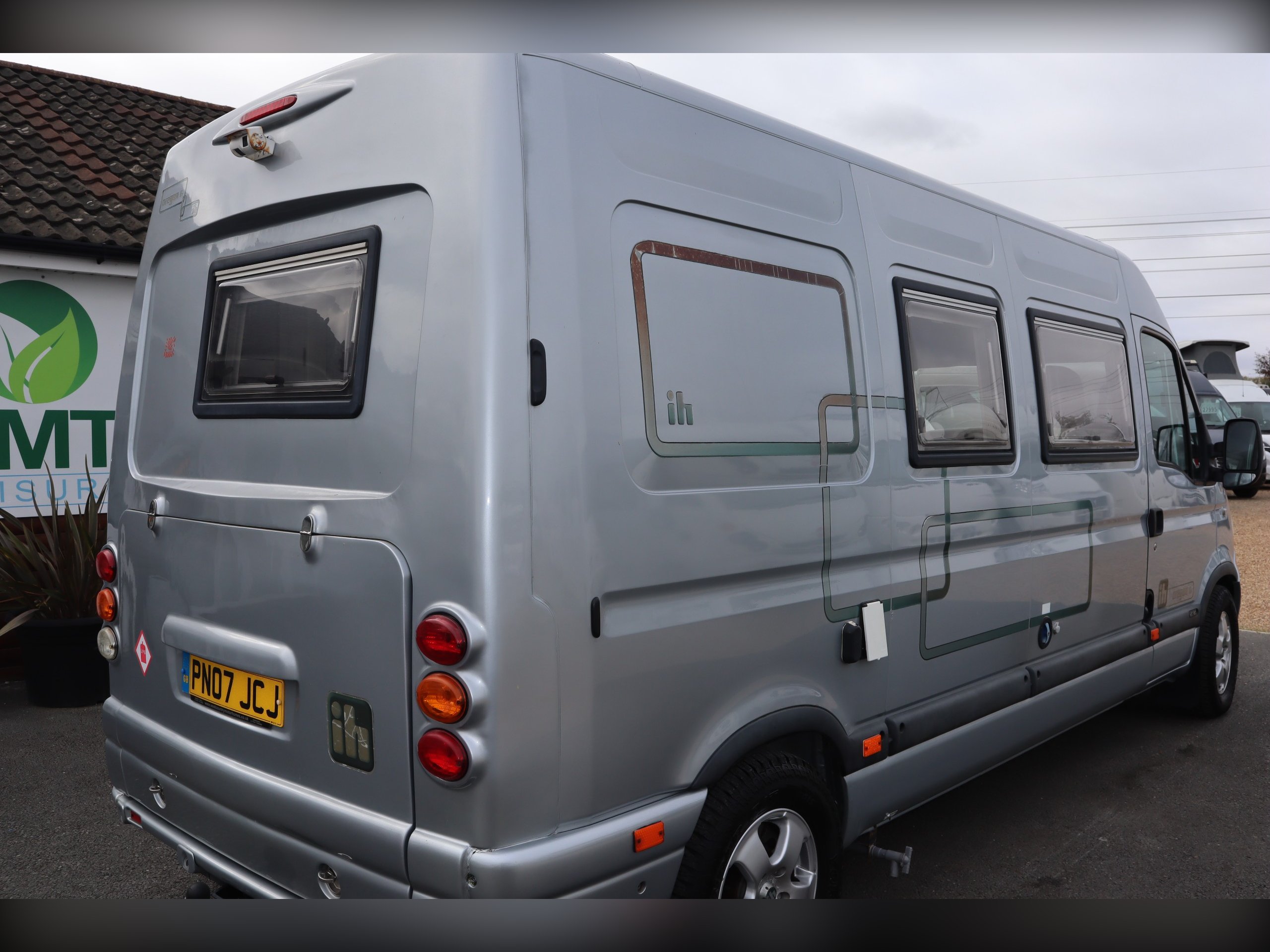 Ih Oregon , 2 Berth, 2 Belts, Automatic. High specification with large rear washroom. Front lounge that converts to a double. Mid kitchen with oven, hob, grill and fridge freezer. Extras include cab air con, alloy wheels, electric step, swivel seats, solar panel and awning. Exceptional build quality from Ih.