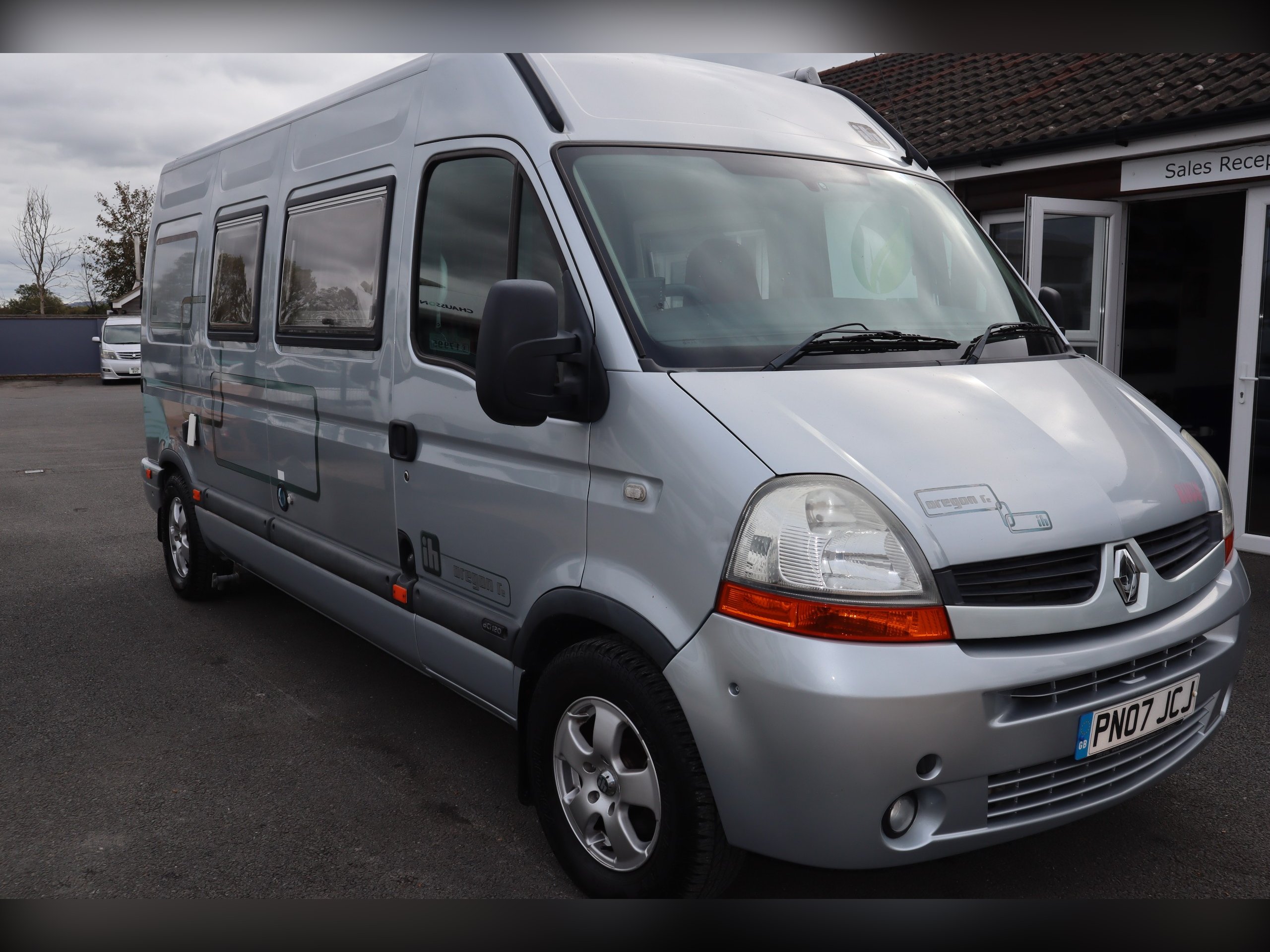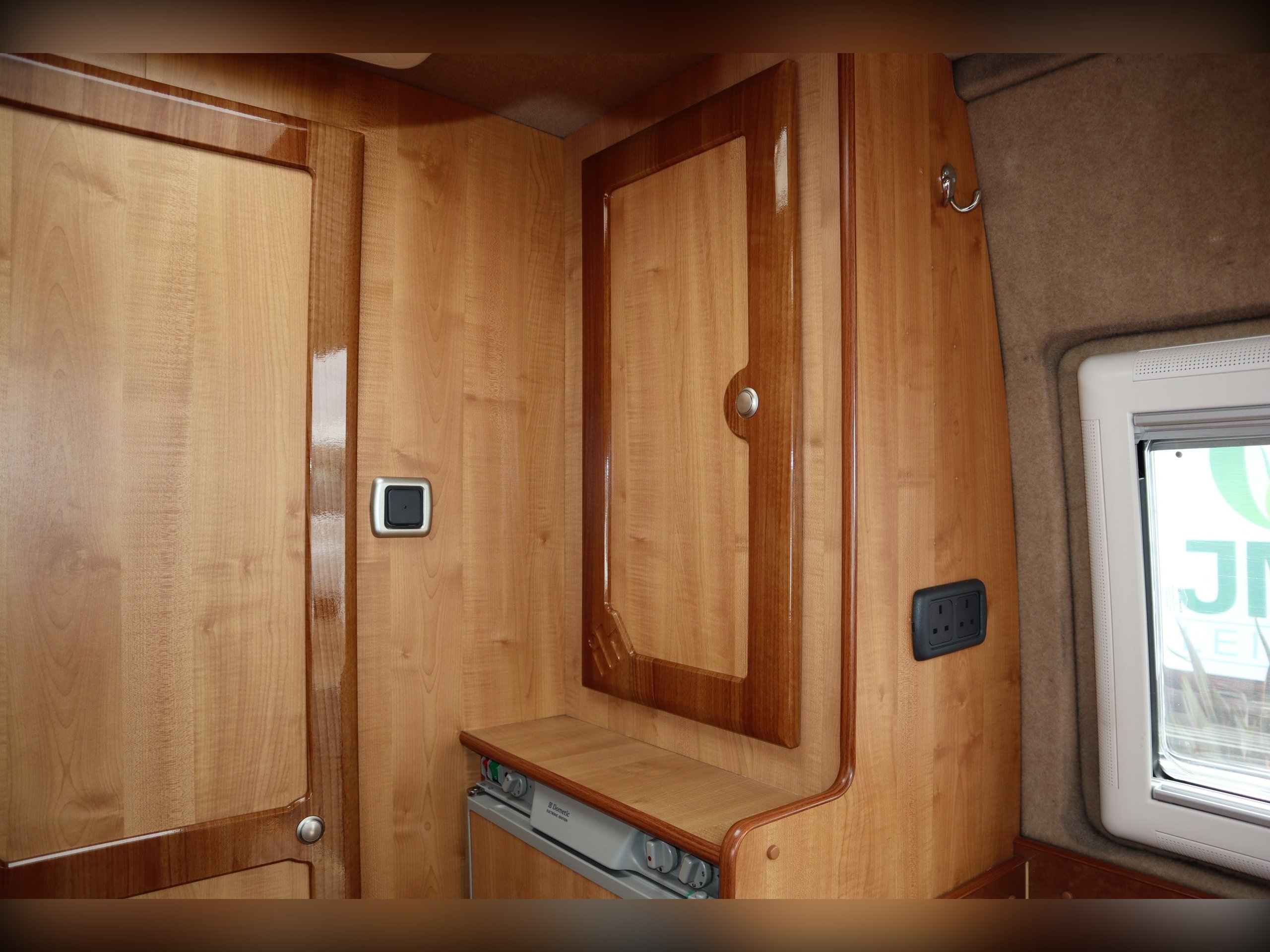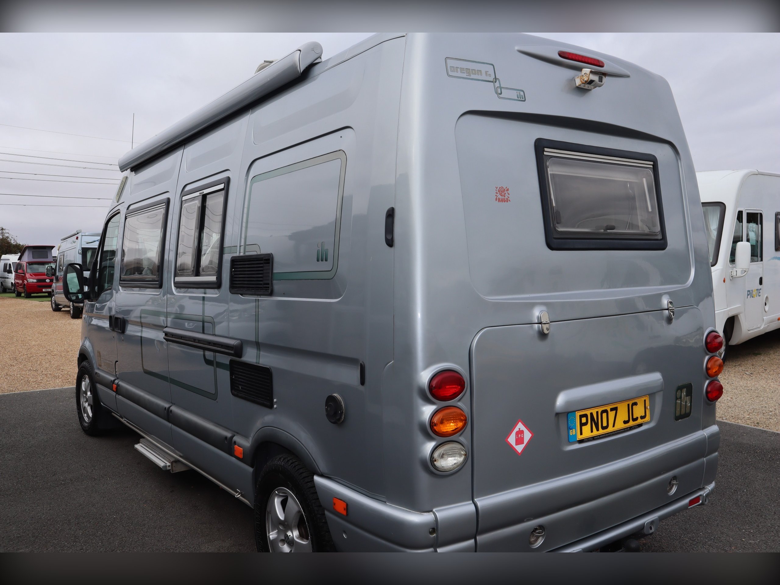 Ih Oregon , 2 Berth, 2 Belts, Automatic. High specification with large rear washroom. Front lounge that converts to a double. Mid kitchen with oven, hob, grill and fridge freezer. Extras include cab air con, alloy wheels, electric step, swivel seats, solar panel and awning. Exceptional build quality from Ih.
