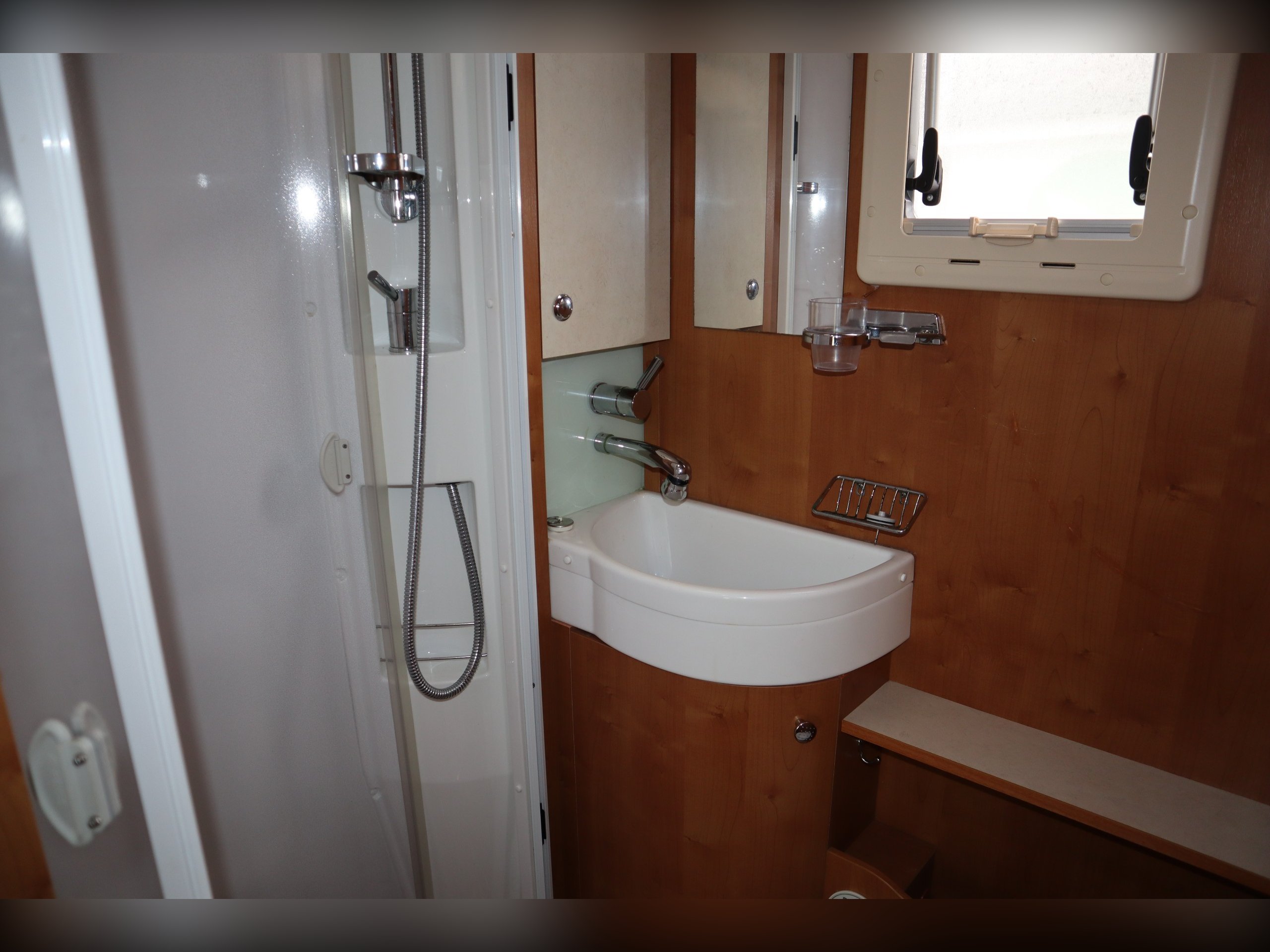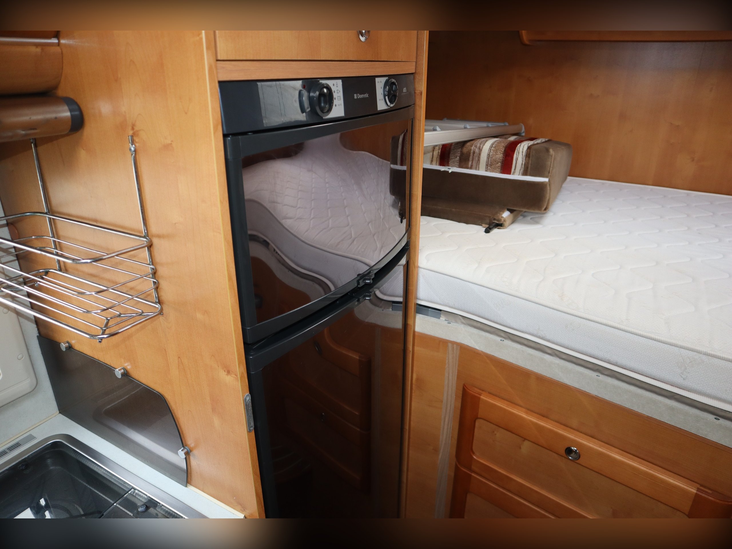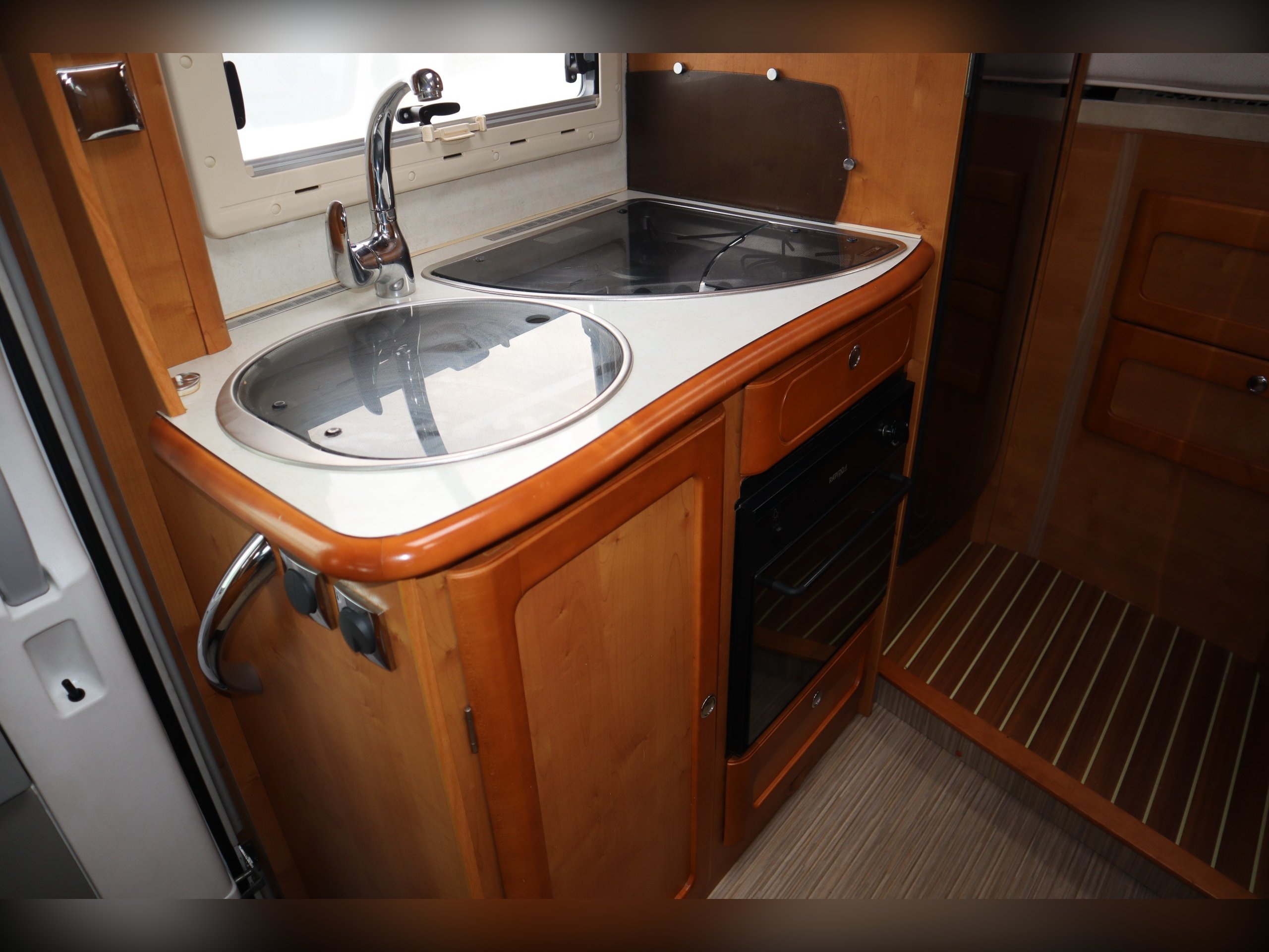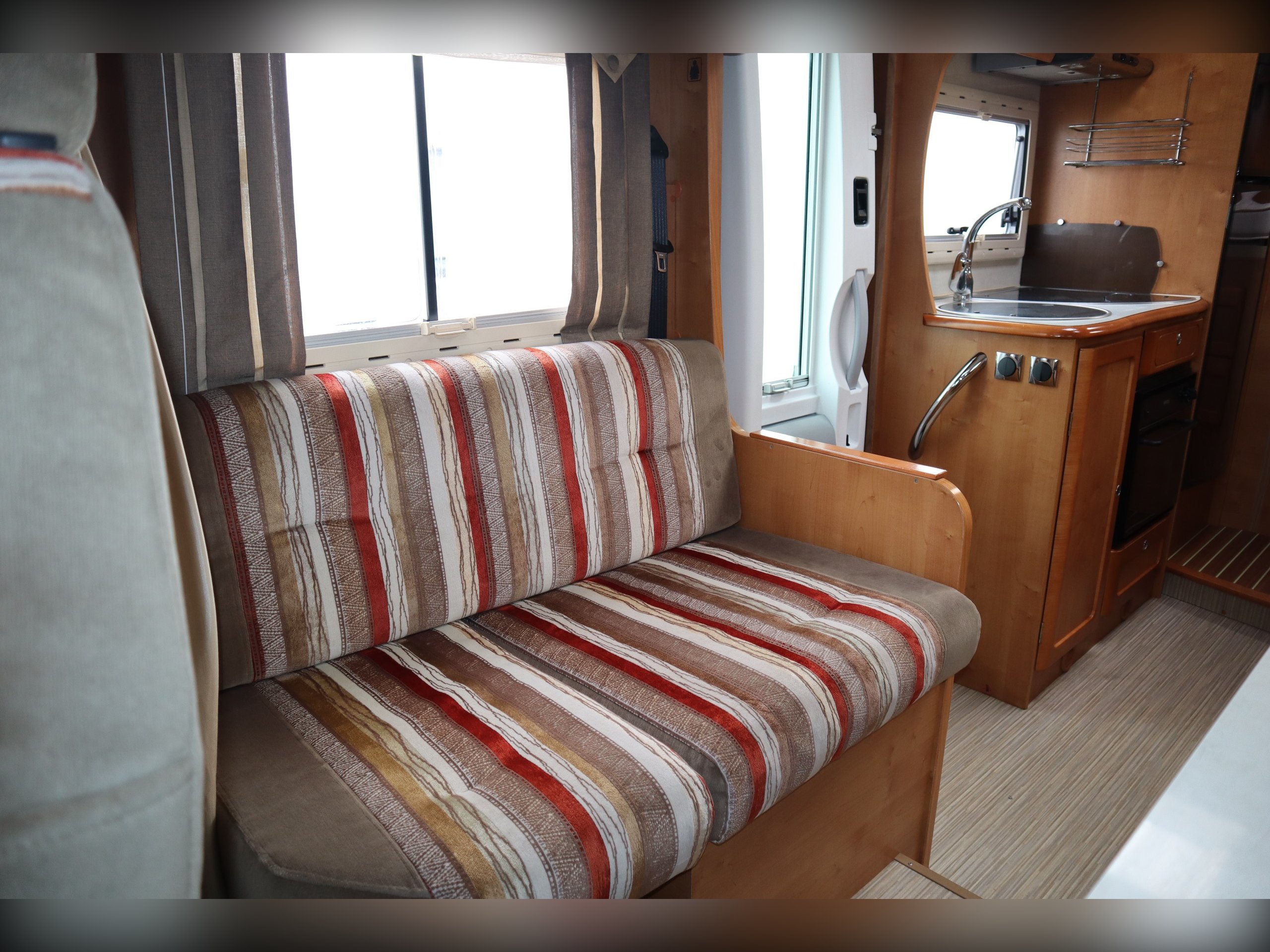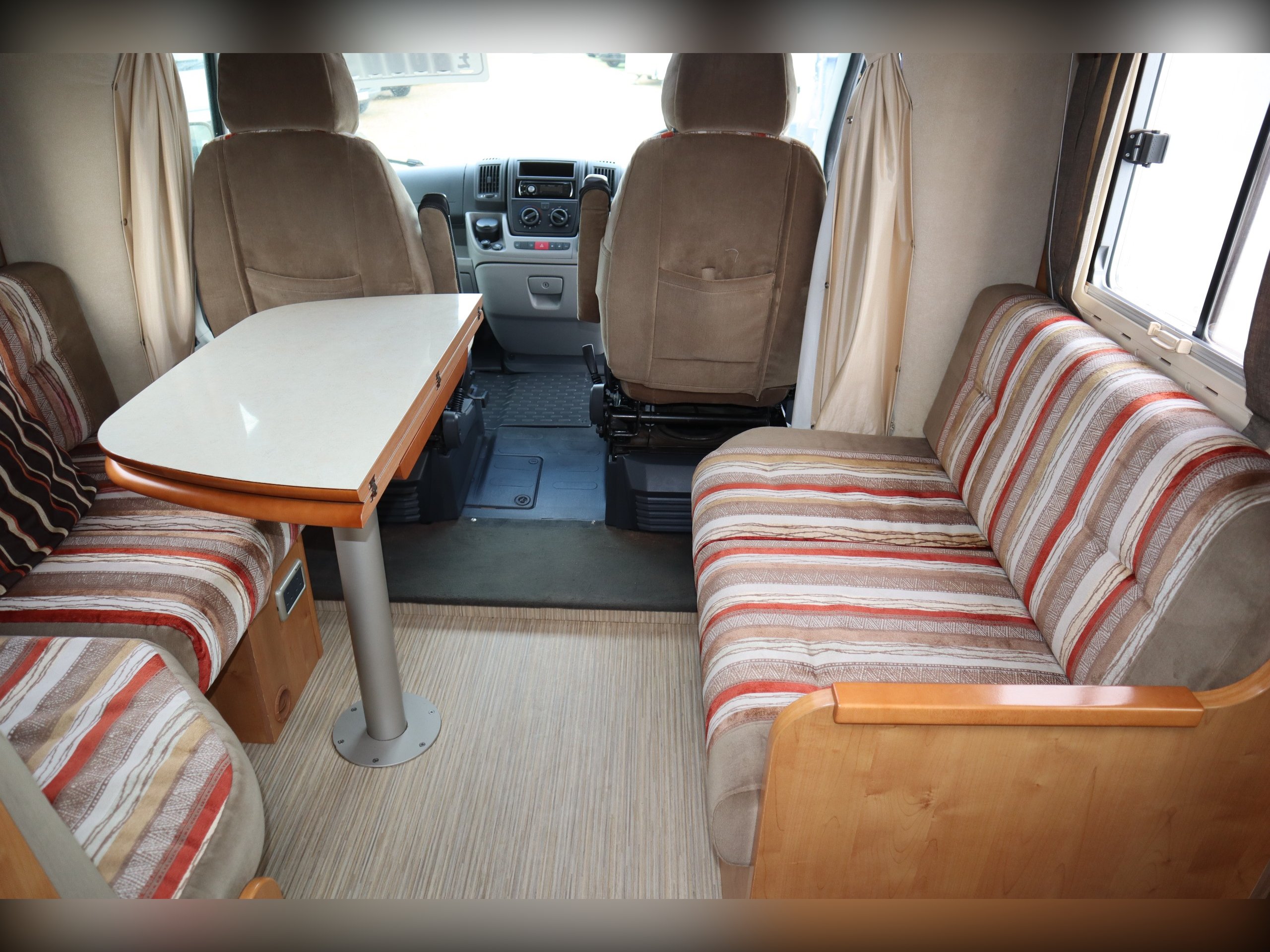 Rapido 773FF, 4 Berth, 4 Belts, Rear fixed bed, Garage. Front dinette with 2 additional seatbelts. Large drop down double bed. Well equipped side kitchen. Spacious bathroom with shower, cassette toilet and wash basin. Fiat Ducato cab with 6 speed gearbox, air conditioning, cruise control, electric windows & mirrors. Extras include a bike rack and awning. Hight quality well built Motorhome.