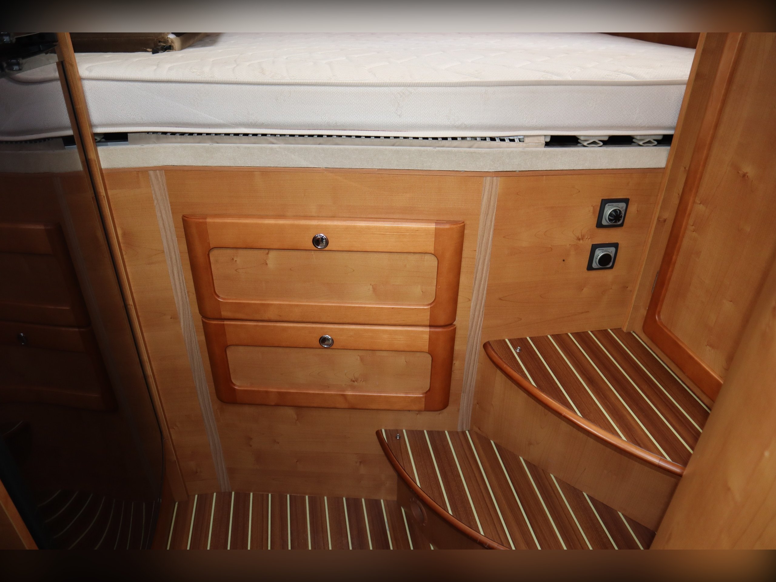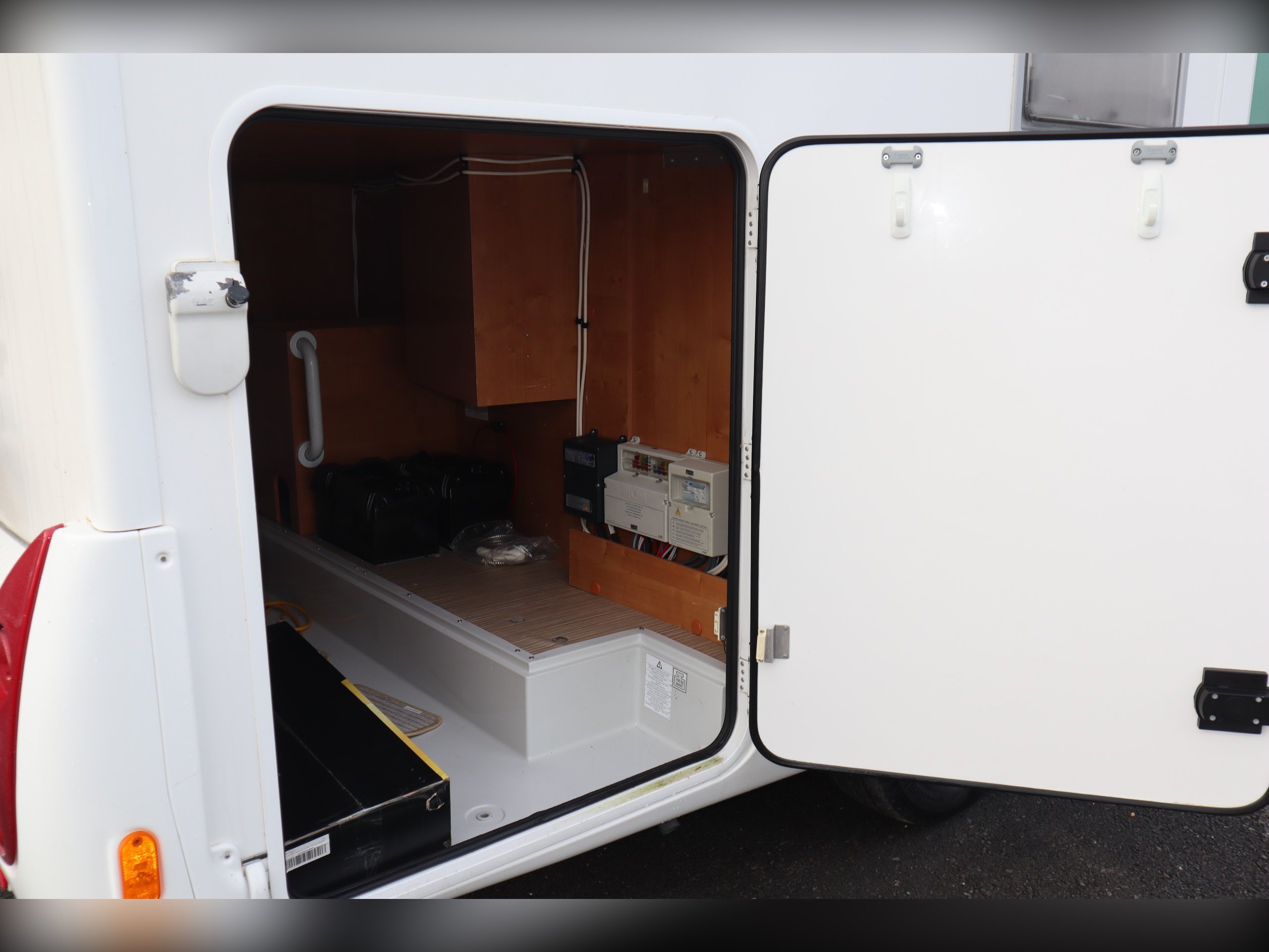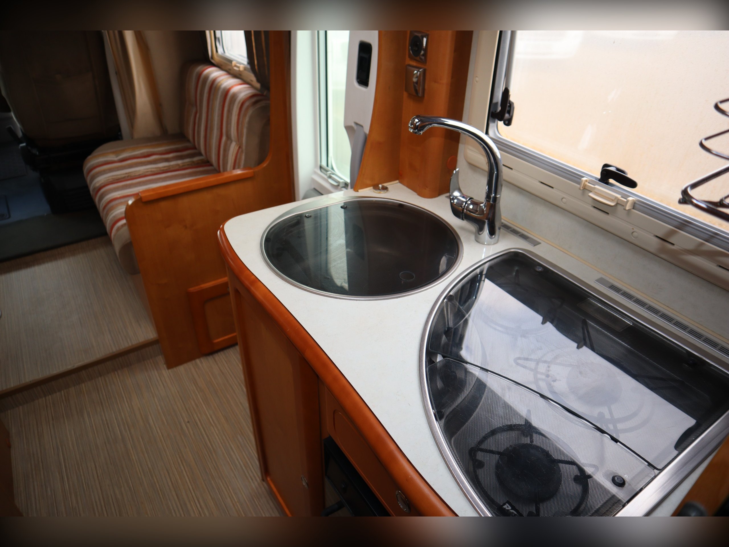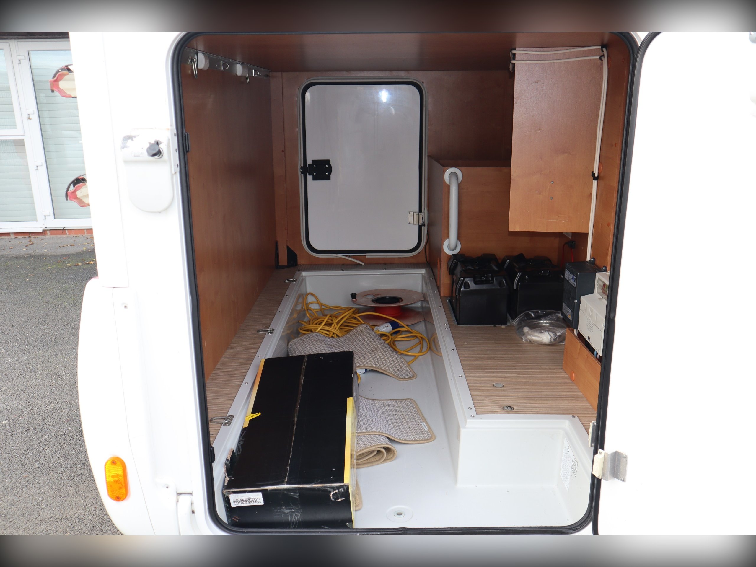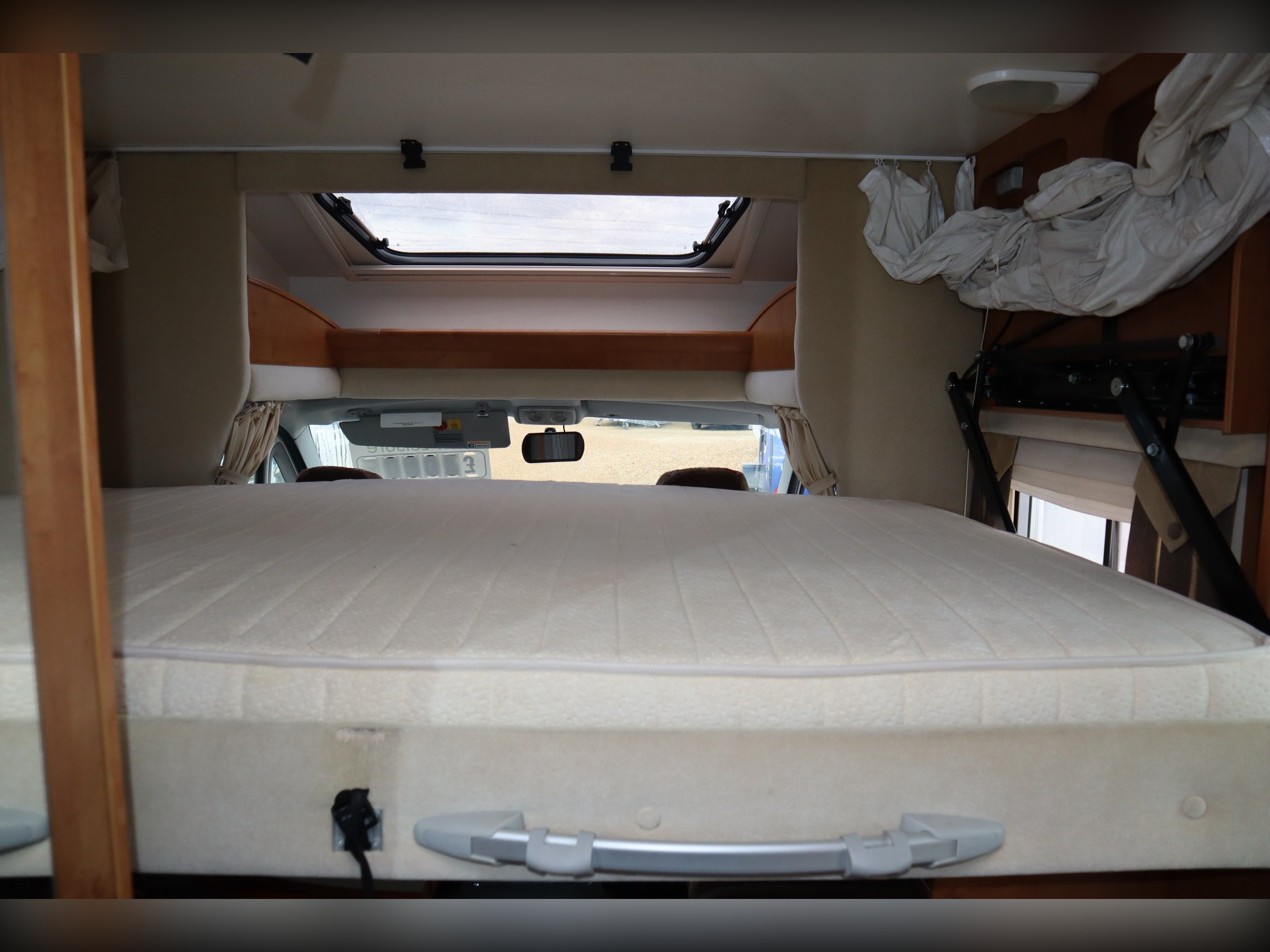 Rapido 773FF, 4 Berth, 4 Belts, Rear fixed bed, Garage. Front dinette with 2 additional seatbelts. Large drop down double bed. Well equipped side kitchen. Spacious bathroom with shower, cassette toilet and wash basin. Fiat Ducato cab with 6 speed gearbox, air conditioning, cruise control, electric windows & mirrors. Extras include a bike rack and awning. Hight quality well built Motorhome.