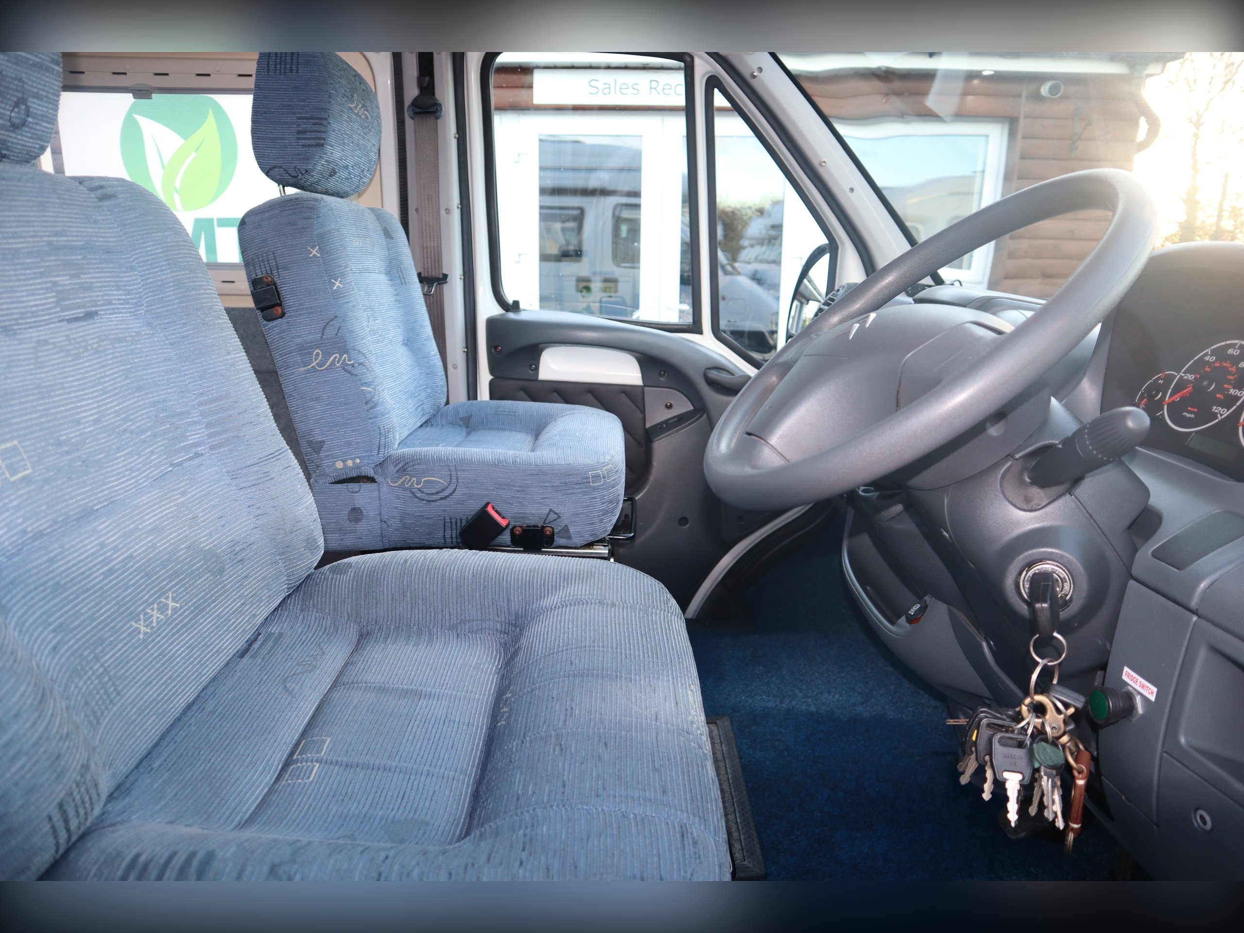 Romahome Dimension, 2 Berth (Single Beds) 4 Belts, Low Mileage, Full Service History, Swivel Seats, Kitchen with Hob, Grill, Fridge & Oven, Side Bathroom with Cassette Toilet, Wash Basin and Shower. Heating and Hot Water, Awning. Excellent Condition with low mileage.