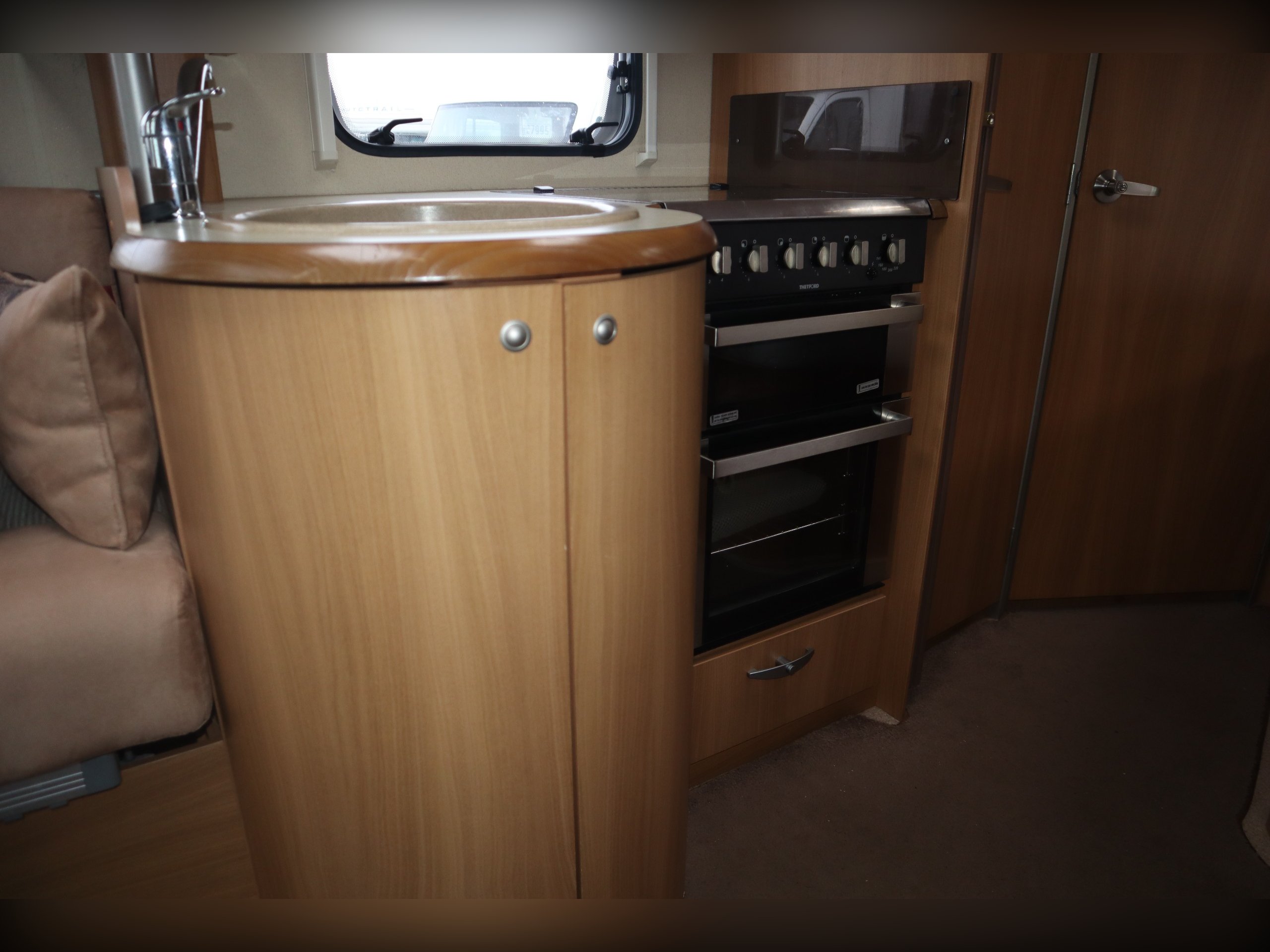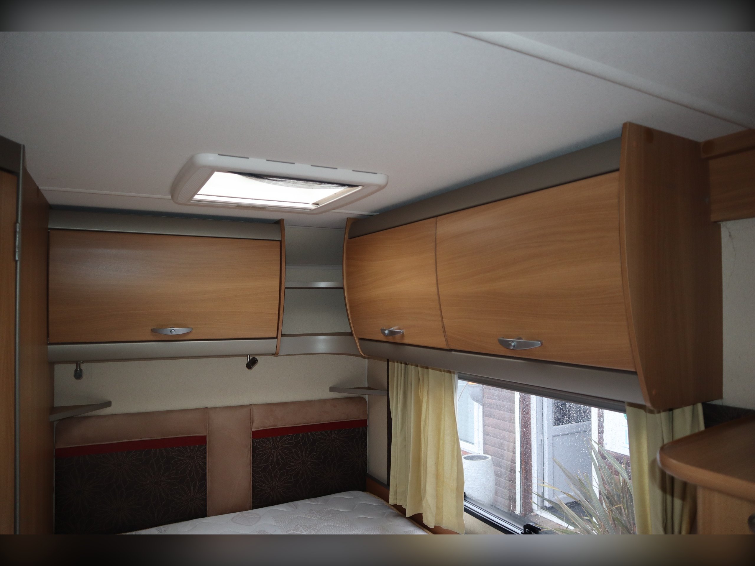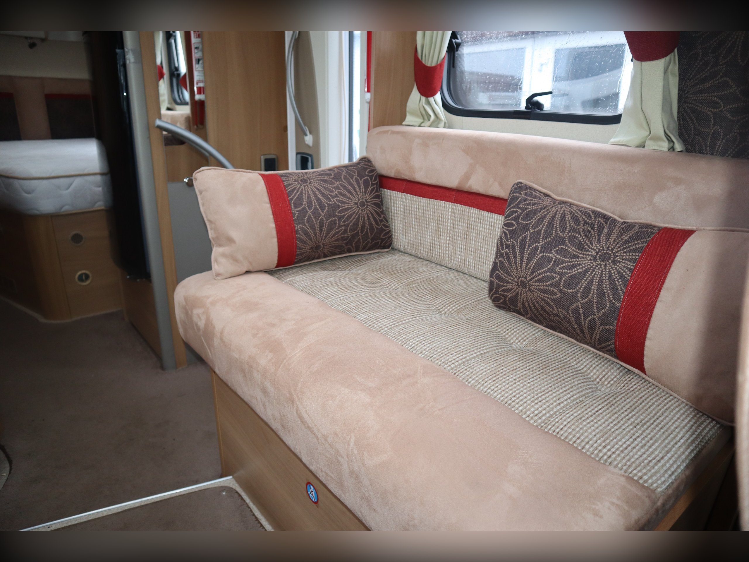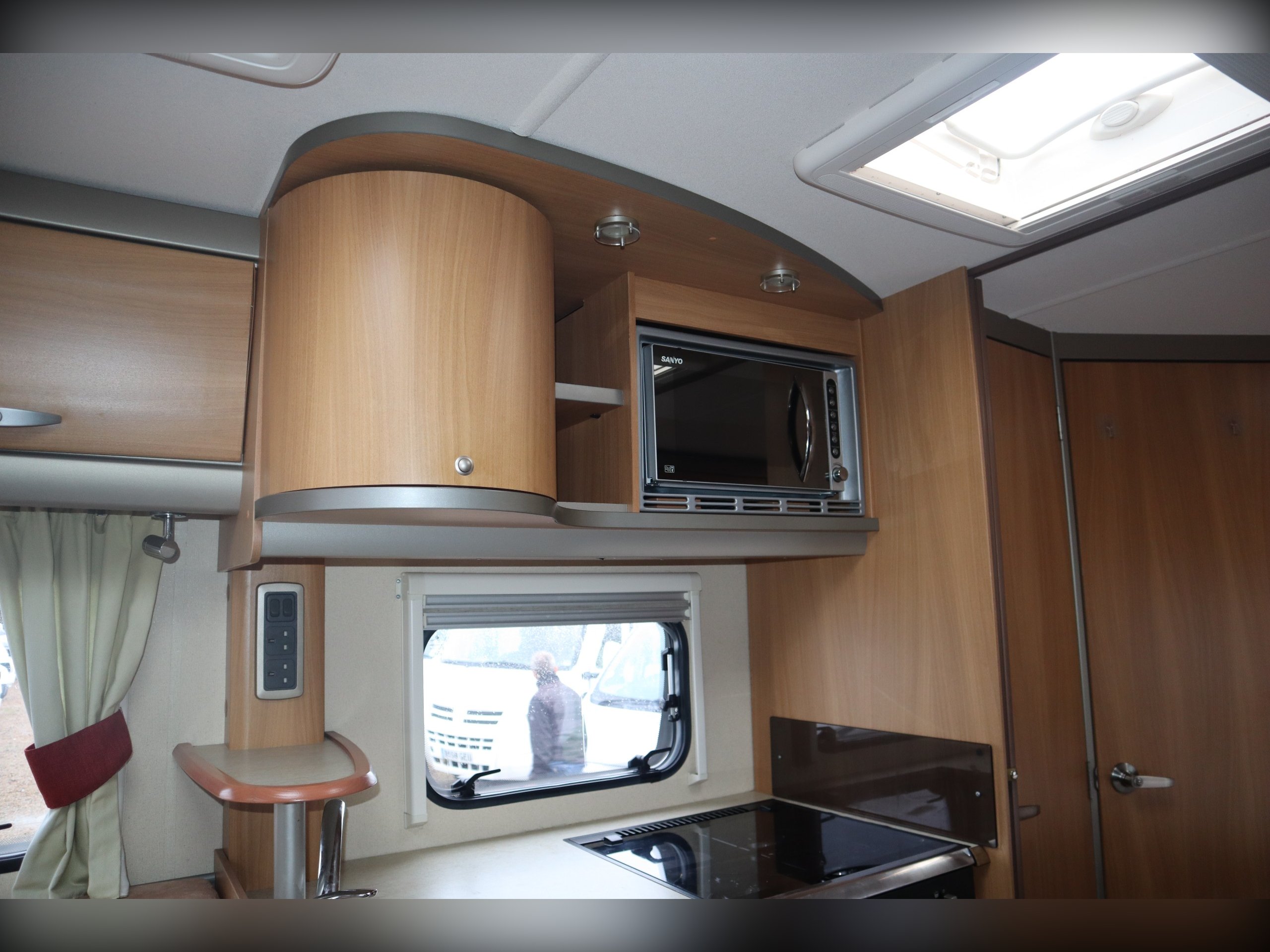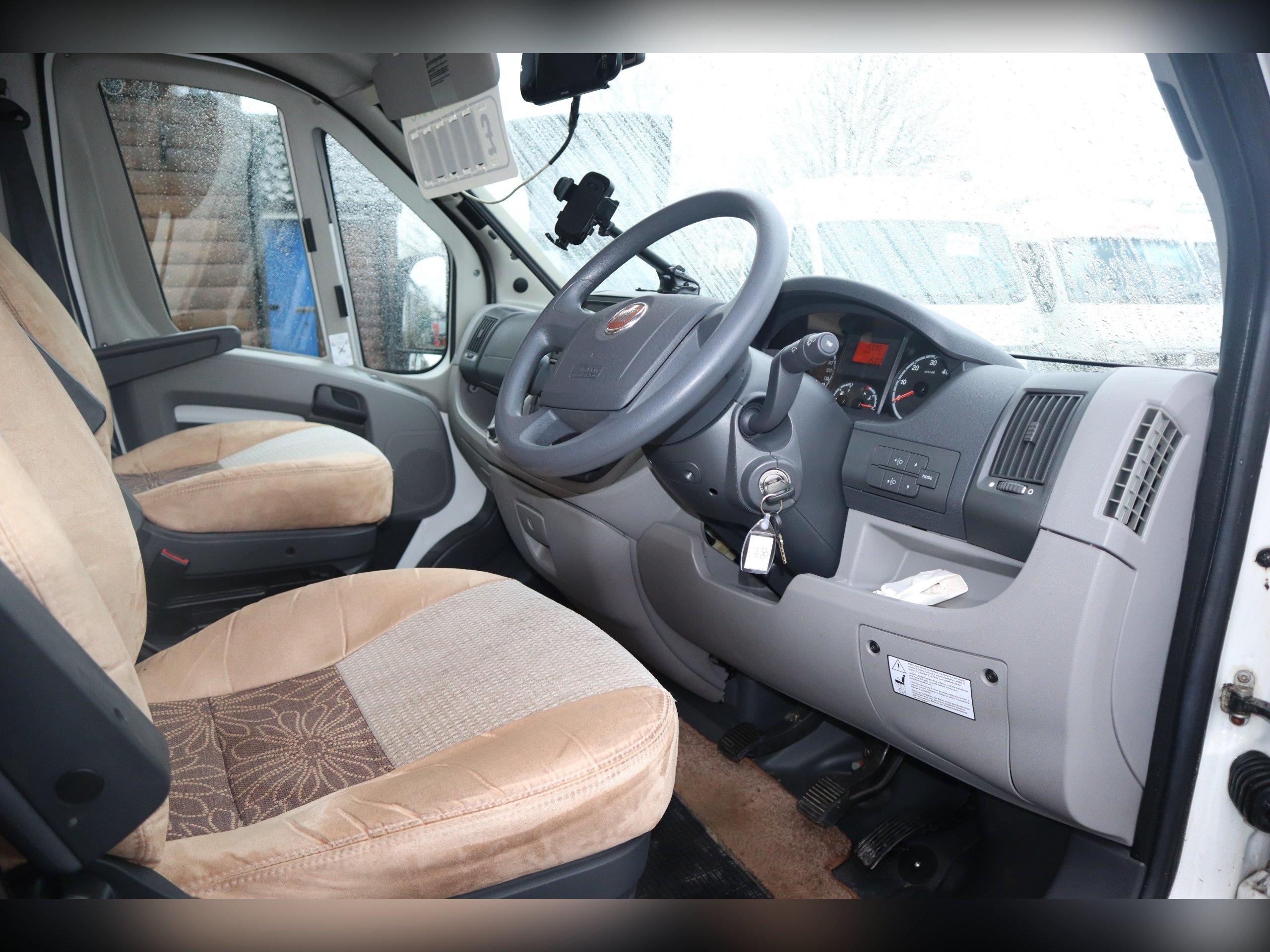 Swift Bolero 680 FB, 4 Berth, 2 Belts, Fixed rear Bed, Front seating that converts to a double bed, Side Kitchen, Rear side Bathroom with cassette toilet, wash basin and separate shower. Well equipped cab with Air Con, cruise control and reversing camera. Extras include Awning, bike rack and tow bar.