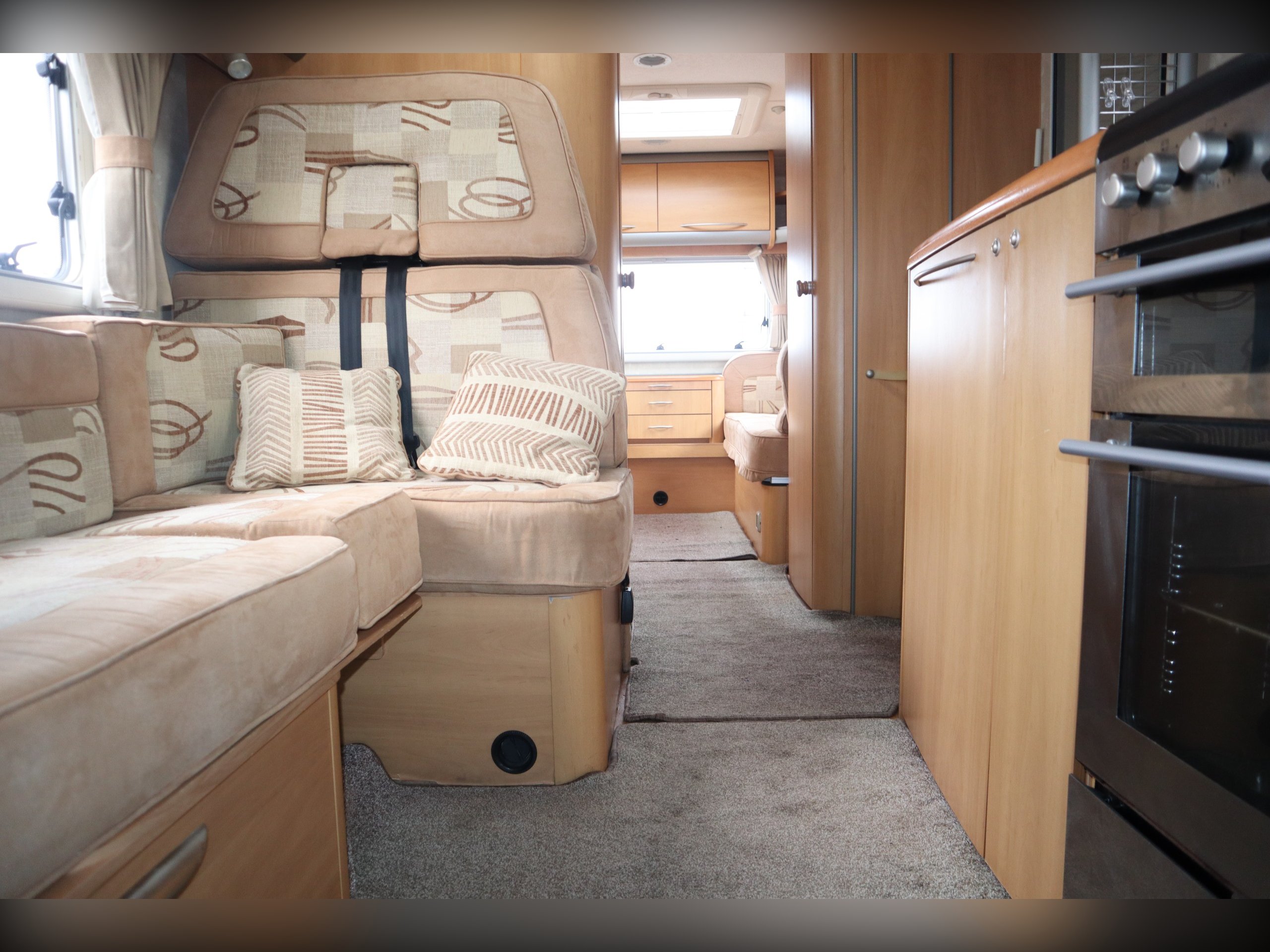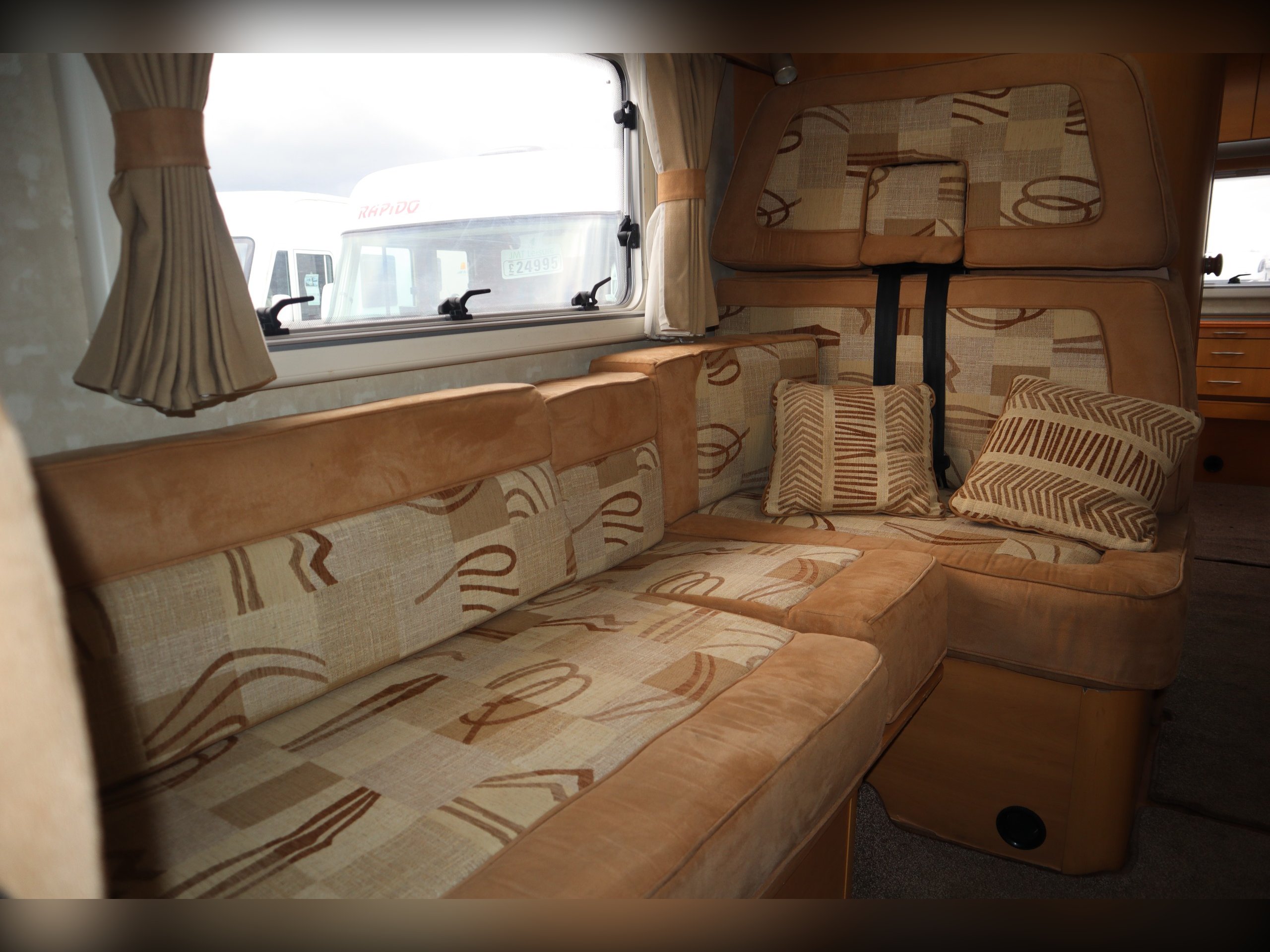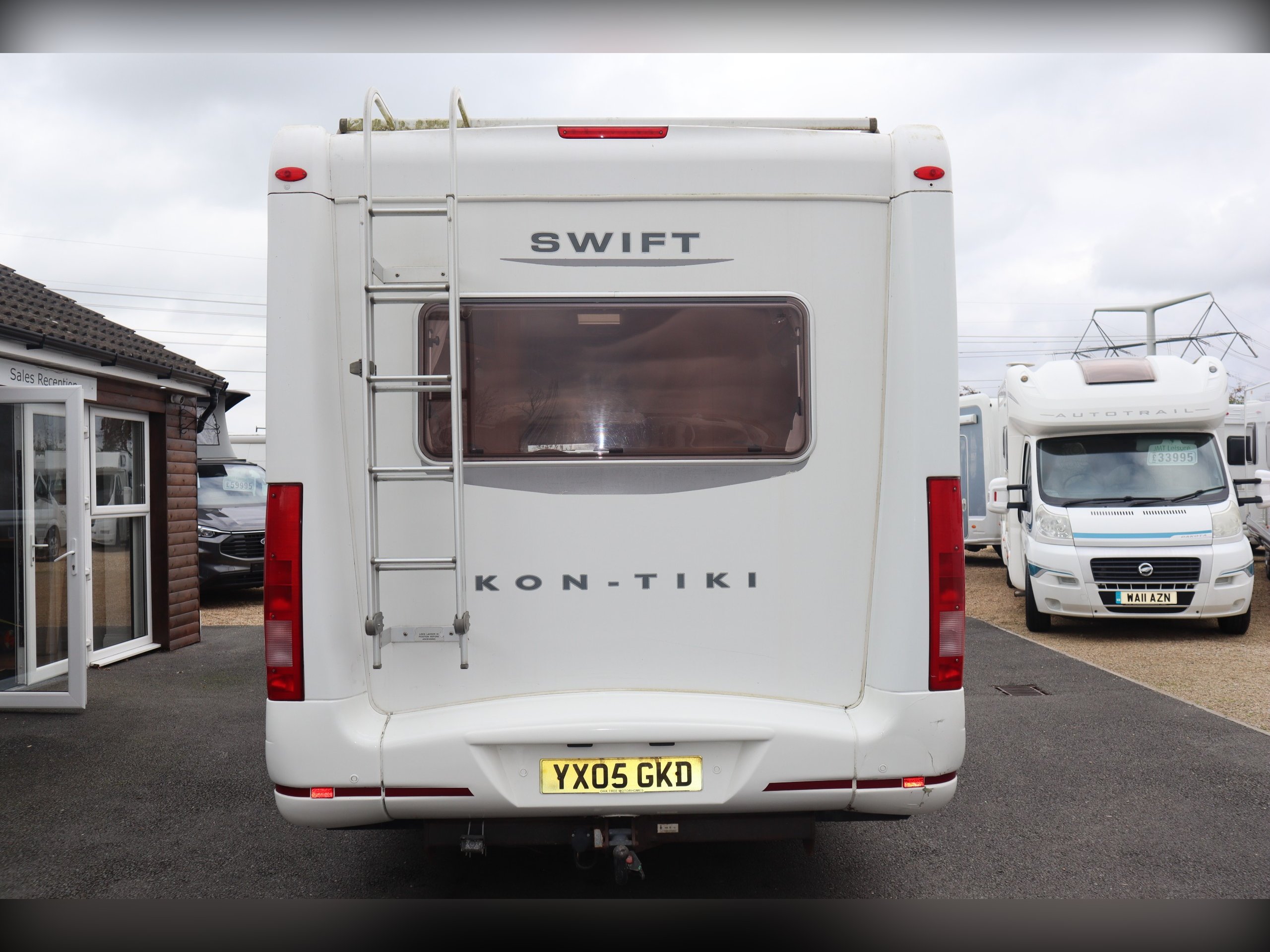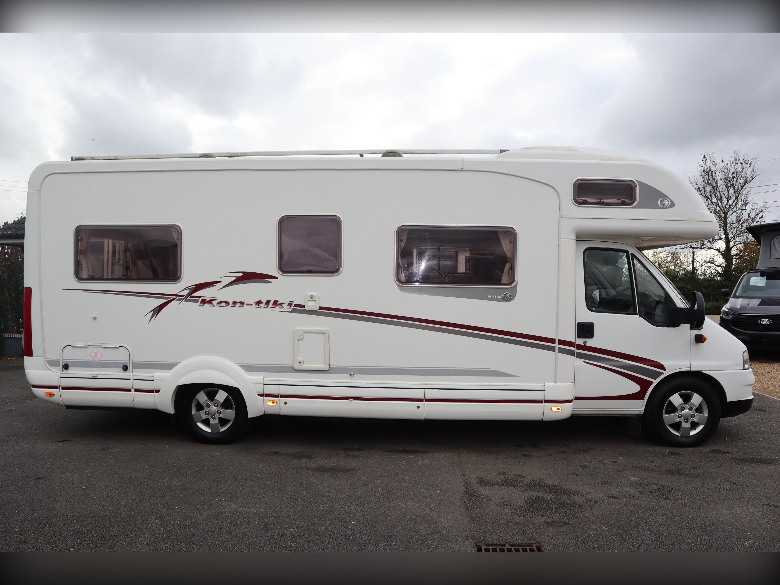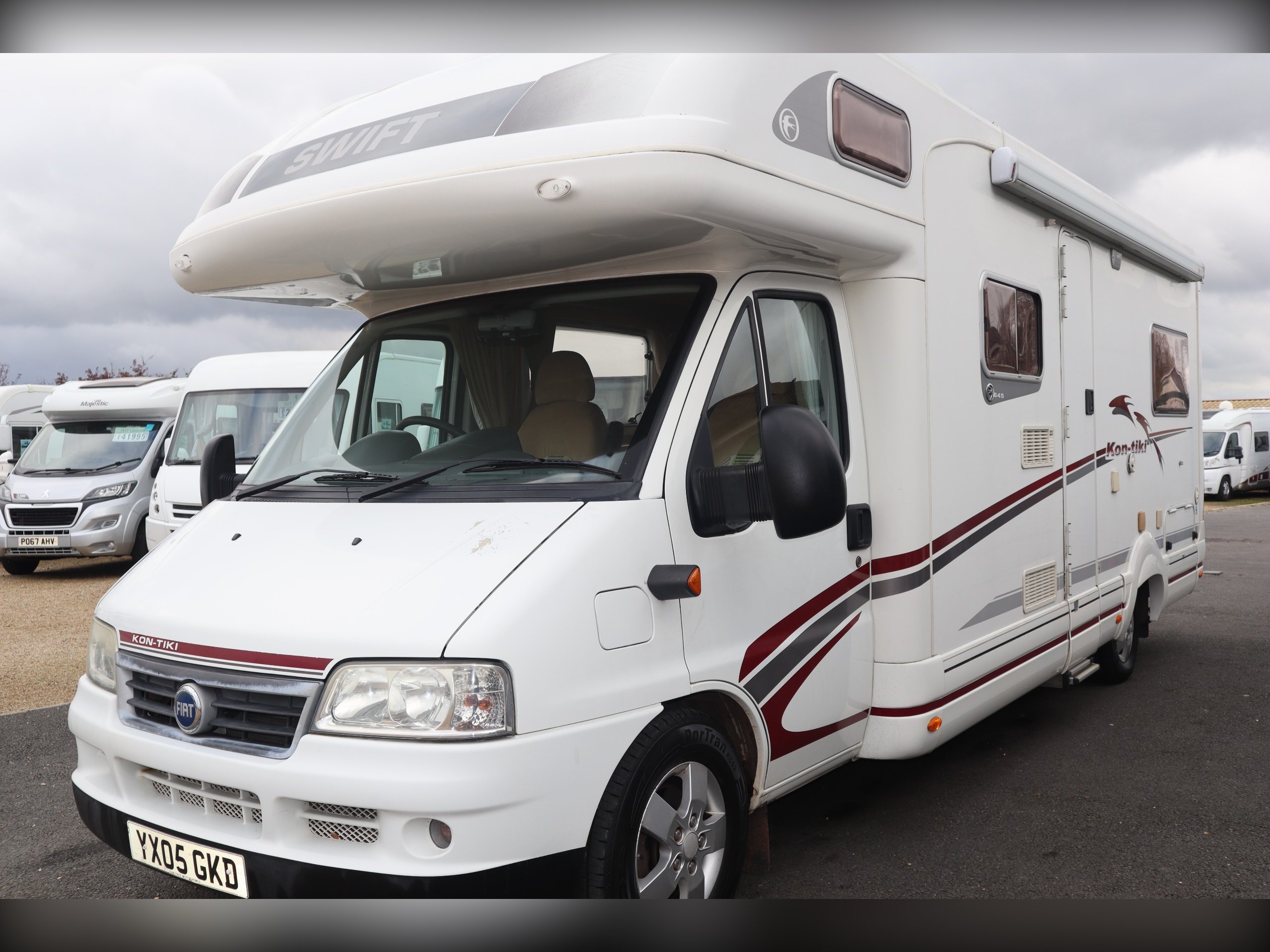 Swift Kon Tiki 645, 6 Berth, 4 Seatbelts, 3500kg, Sat Nav, Reversing Camera, Cab AC, Alloy Wheels, Rear Lounge, Over cab Bed, Front dinette with 2 additional belts, side well quipped kitchen, mid bathroom with cassette toilet, separate shower, sink and vanity unit. Extras include a tow bar, awning and alloy wheels. Lovey condition with low miles.