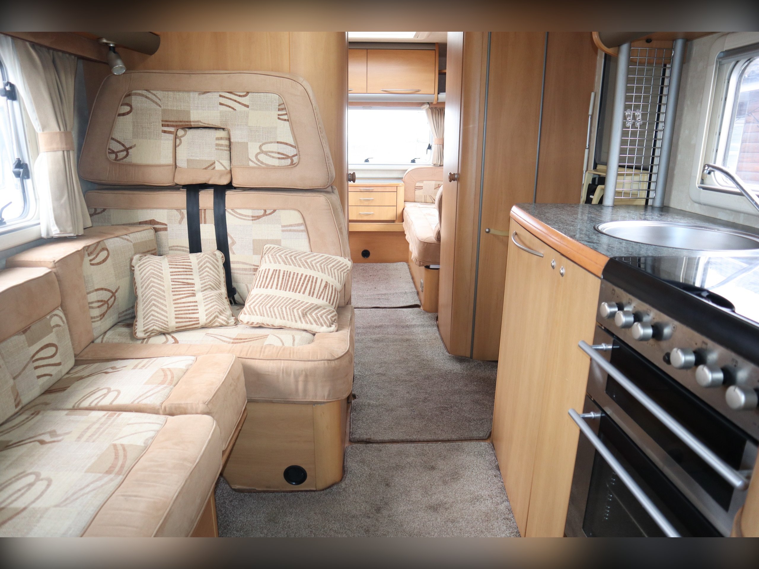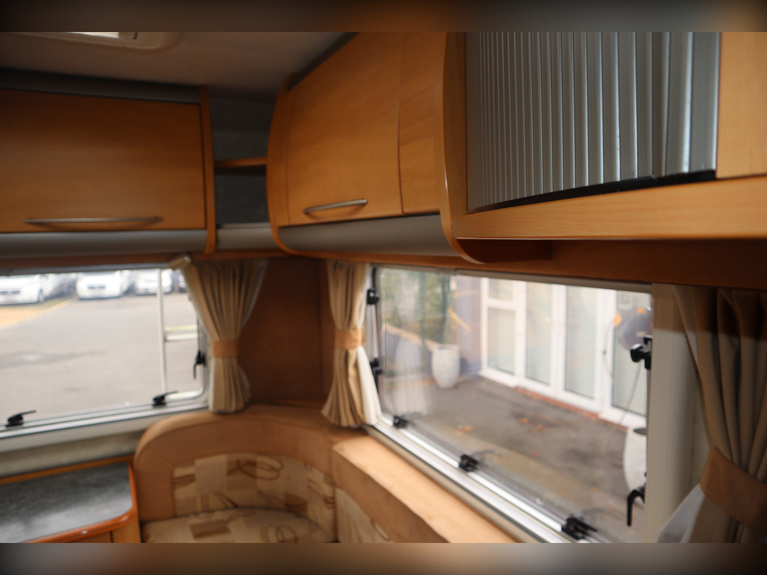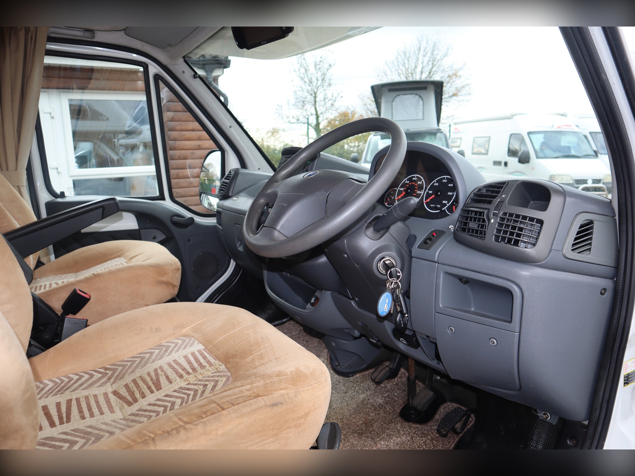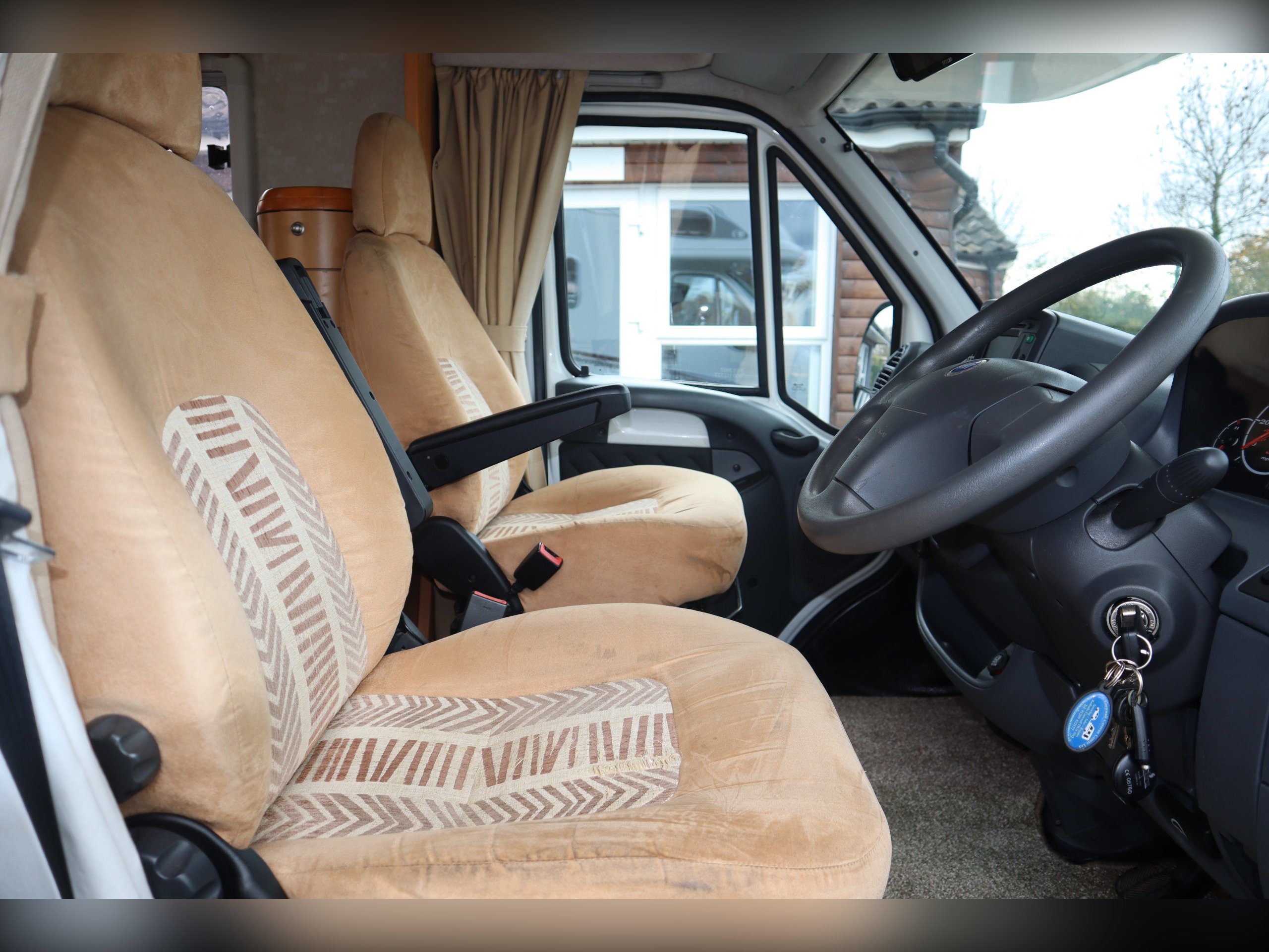 Swift Kon Tiki 645, 6 Berth, 4 Seatbelts, 3500kg, Sat Nav, Reversing Camera, Cab AC, Alloy Wheels, Rear Lounge, Over cab Bed, Front dinette with 2 additional belts, side well quipped kitchen, mid bathroom with cassette toilet, separate shower, sink and vanity unit. Extras include a tow bar, awning and alloy wheels. Lovey condition with low miles.