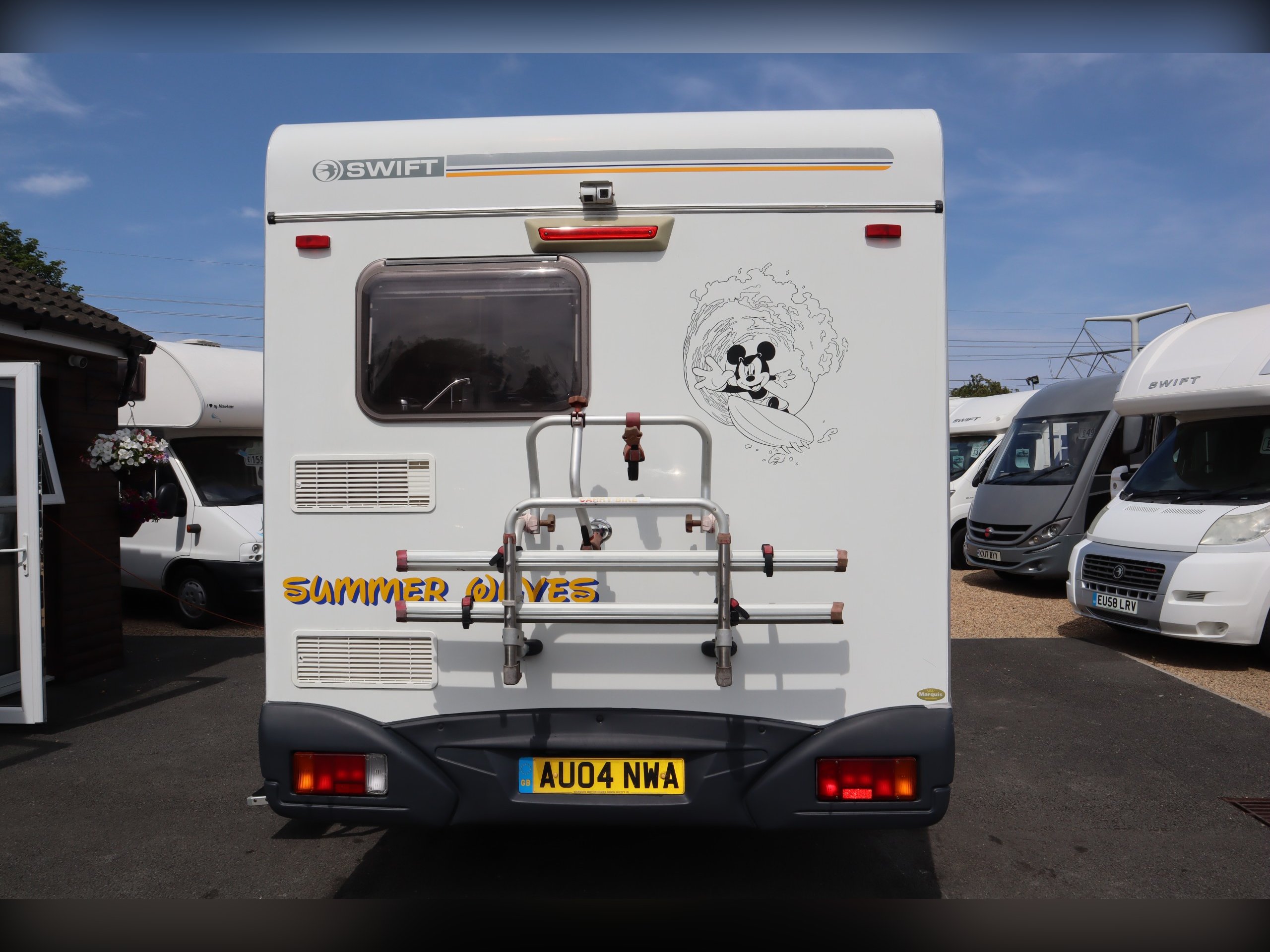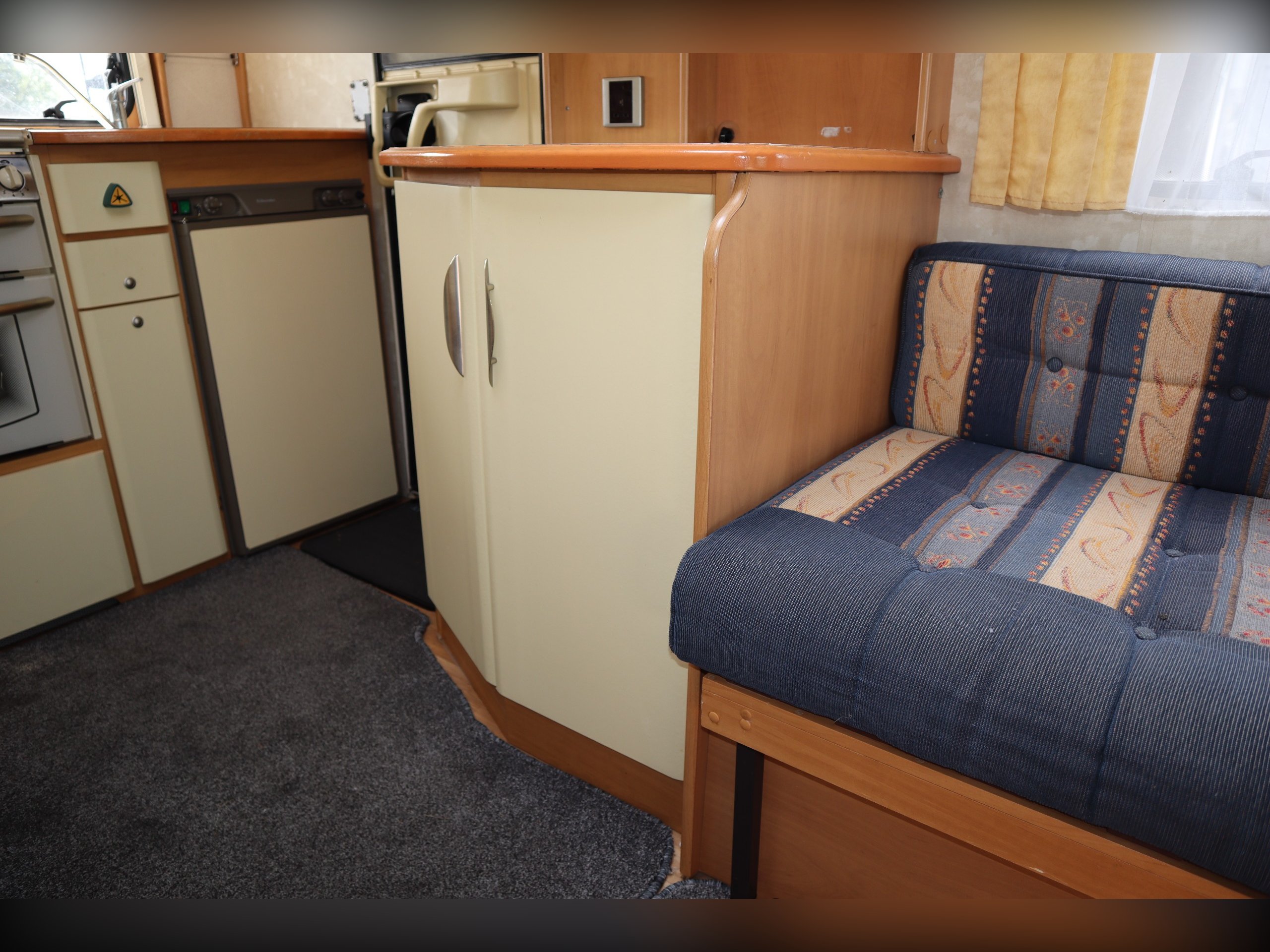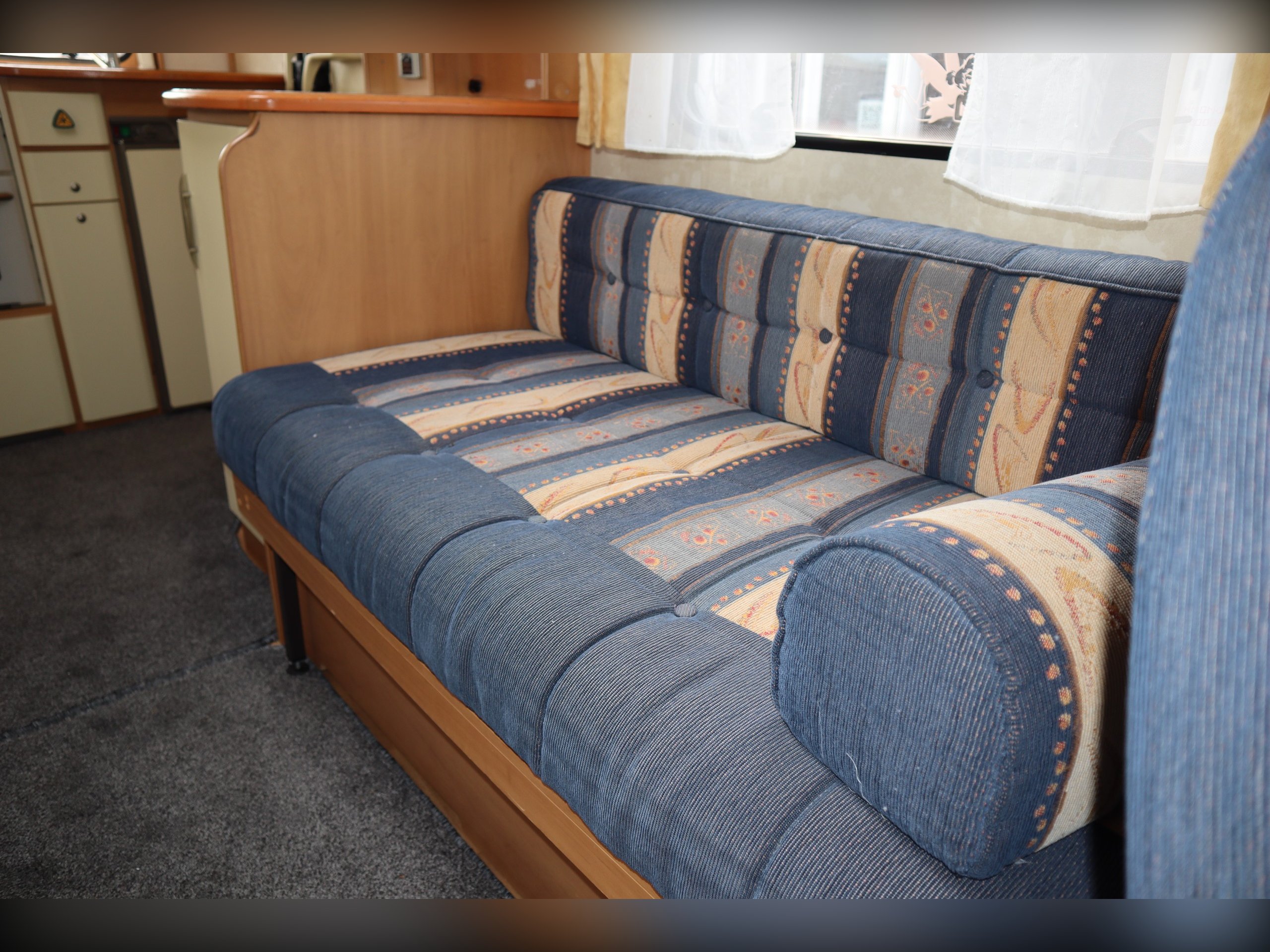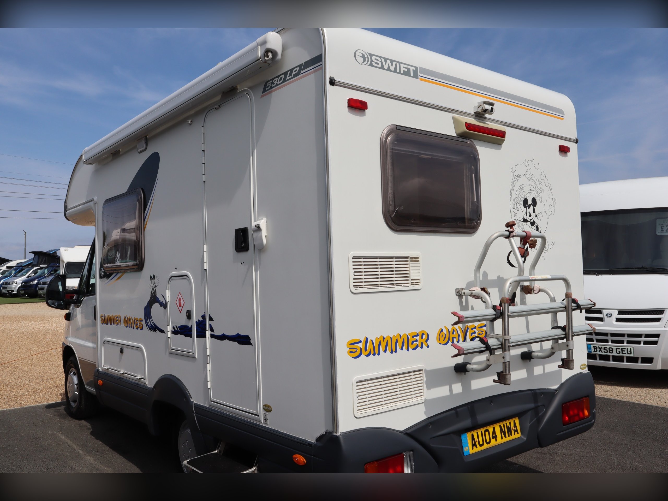 Swift Sundance 530LP, 2 Berth, 2 Belts, Immaculate condition having benefitted from a full internal refurb. 2 bench seats that convert to a double bed. Side bathroom with oven, hob, grill and fridge freezer. Rear bathroom with cassette toilet, wash basin and shower. Out side you have a bike rack and awning.