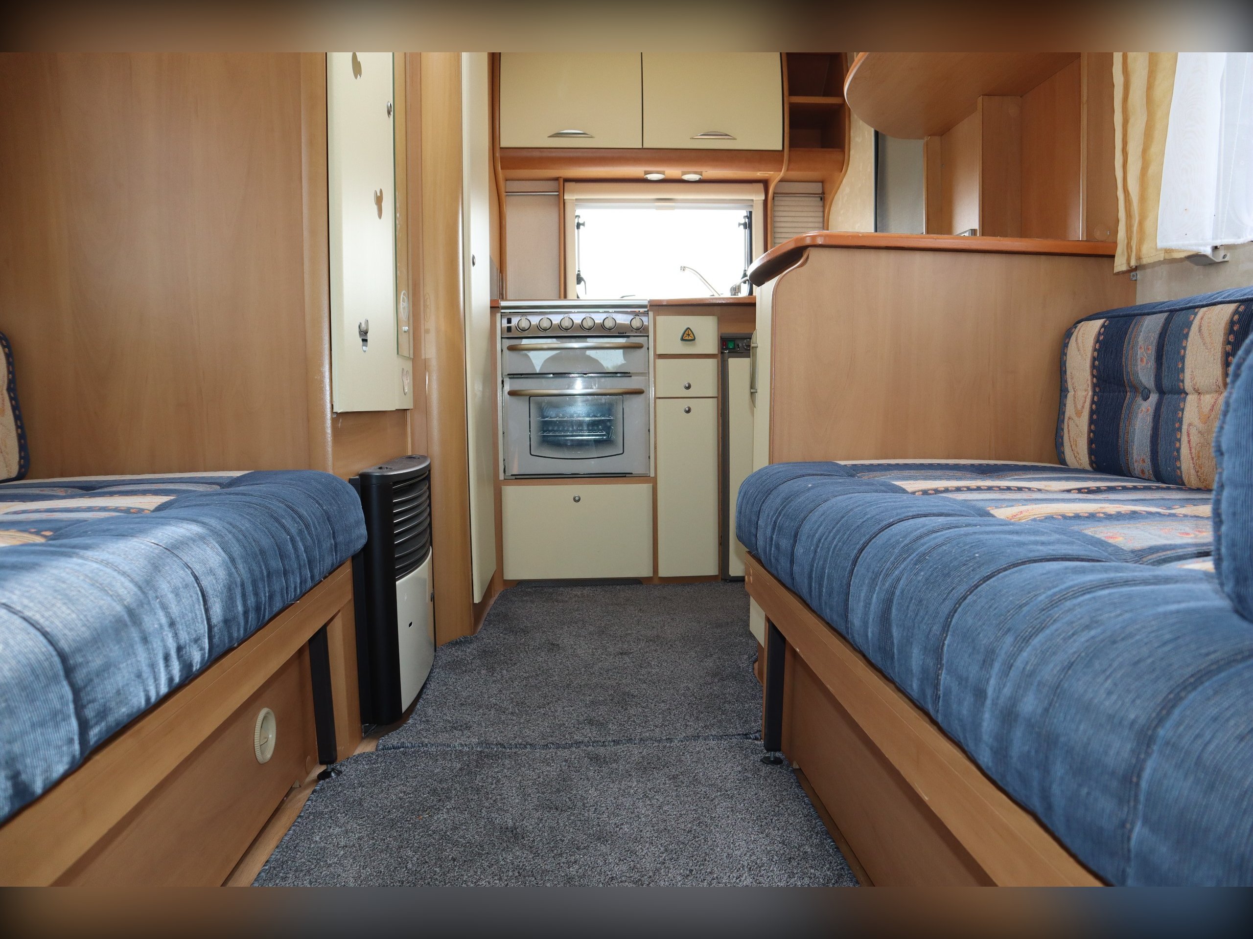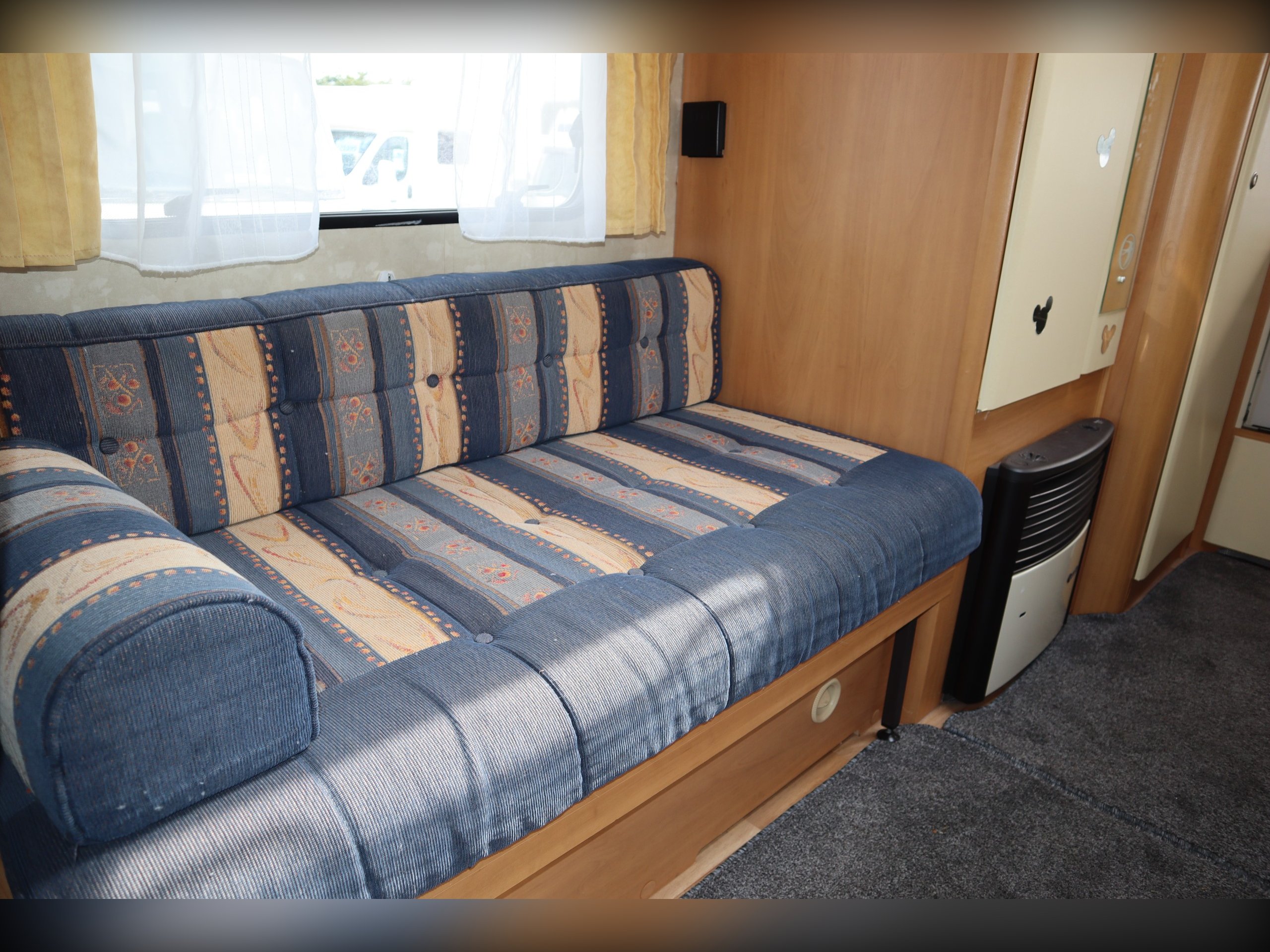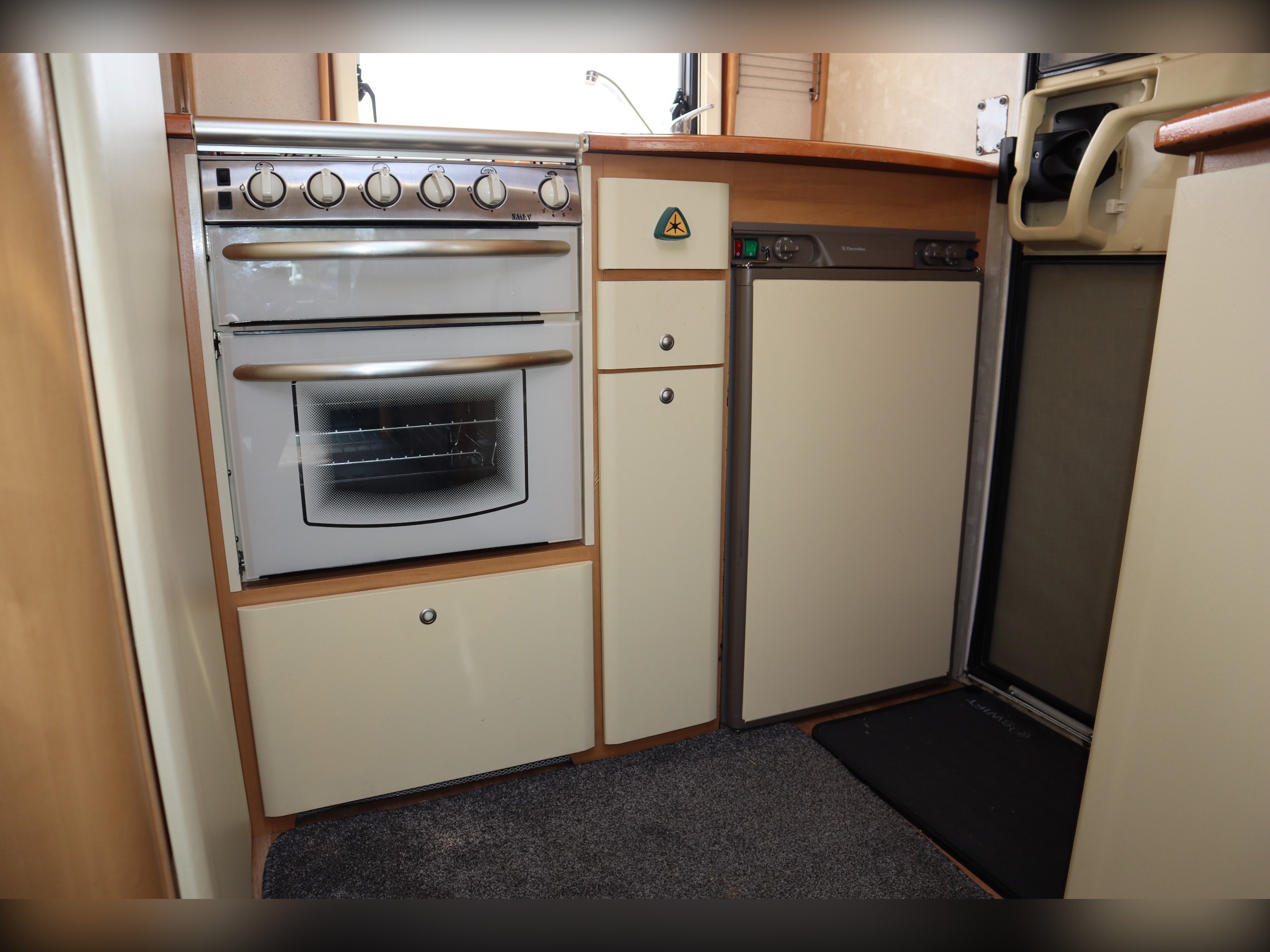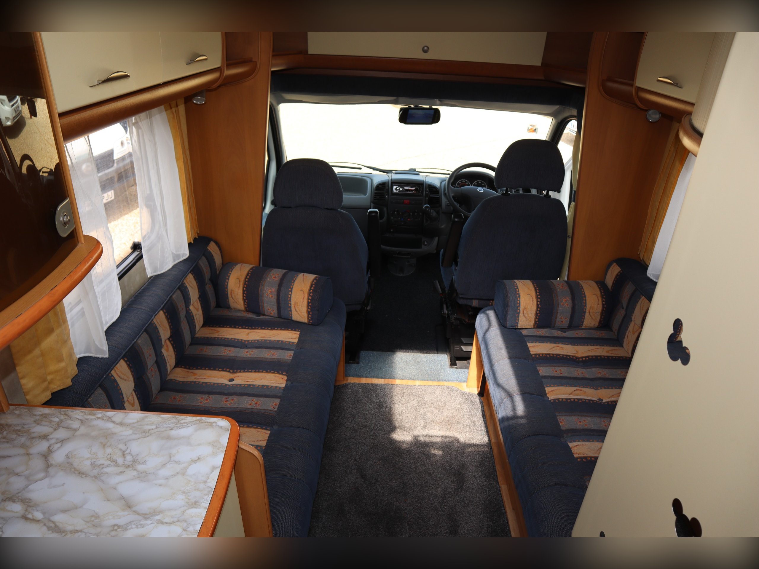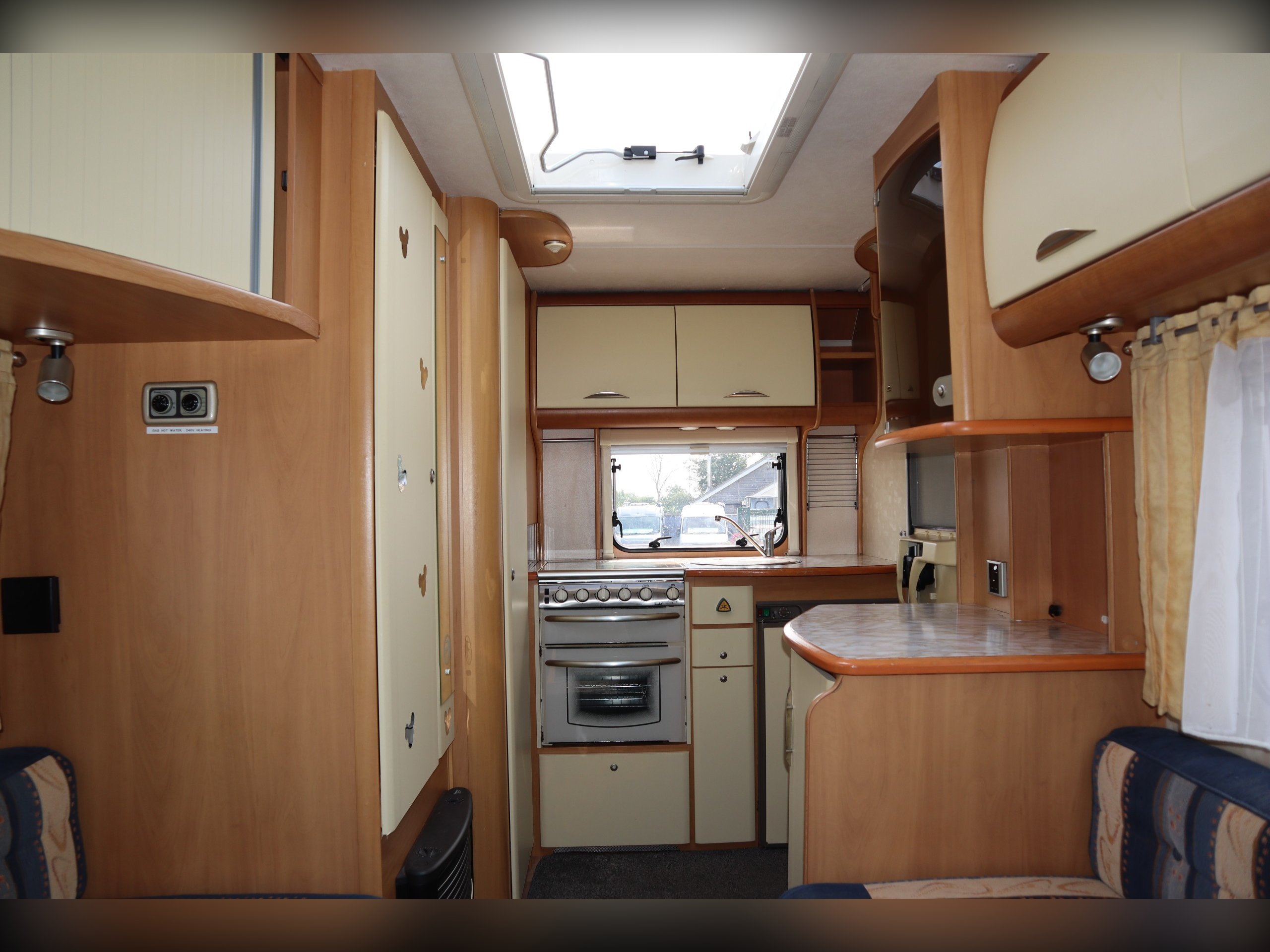 Swift Sundance 530LP, 2 Berth, 2 Belts, Immaculate condition having benefitted from a full internal refurb. 2 bench seats that convert to a double bed. Side bathroom with oven, hob, grill and fridge freezer. Rear bathroom with cassette toilet, wash basin and shower. Out side you have a bike rack and awning.