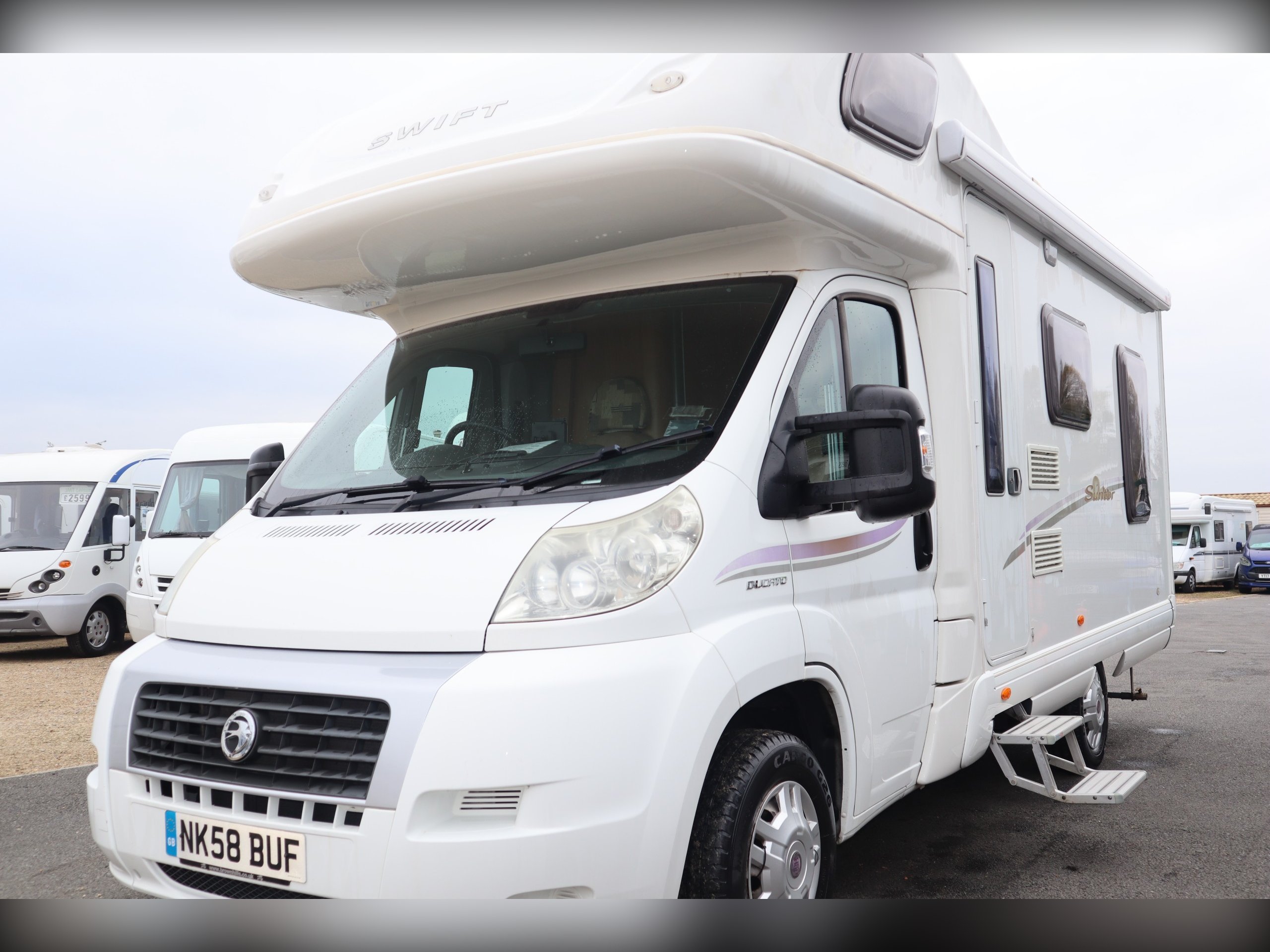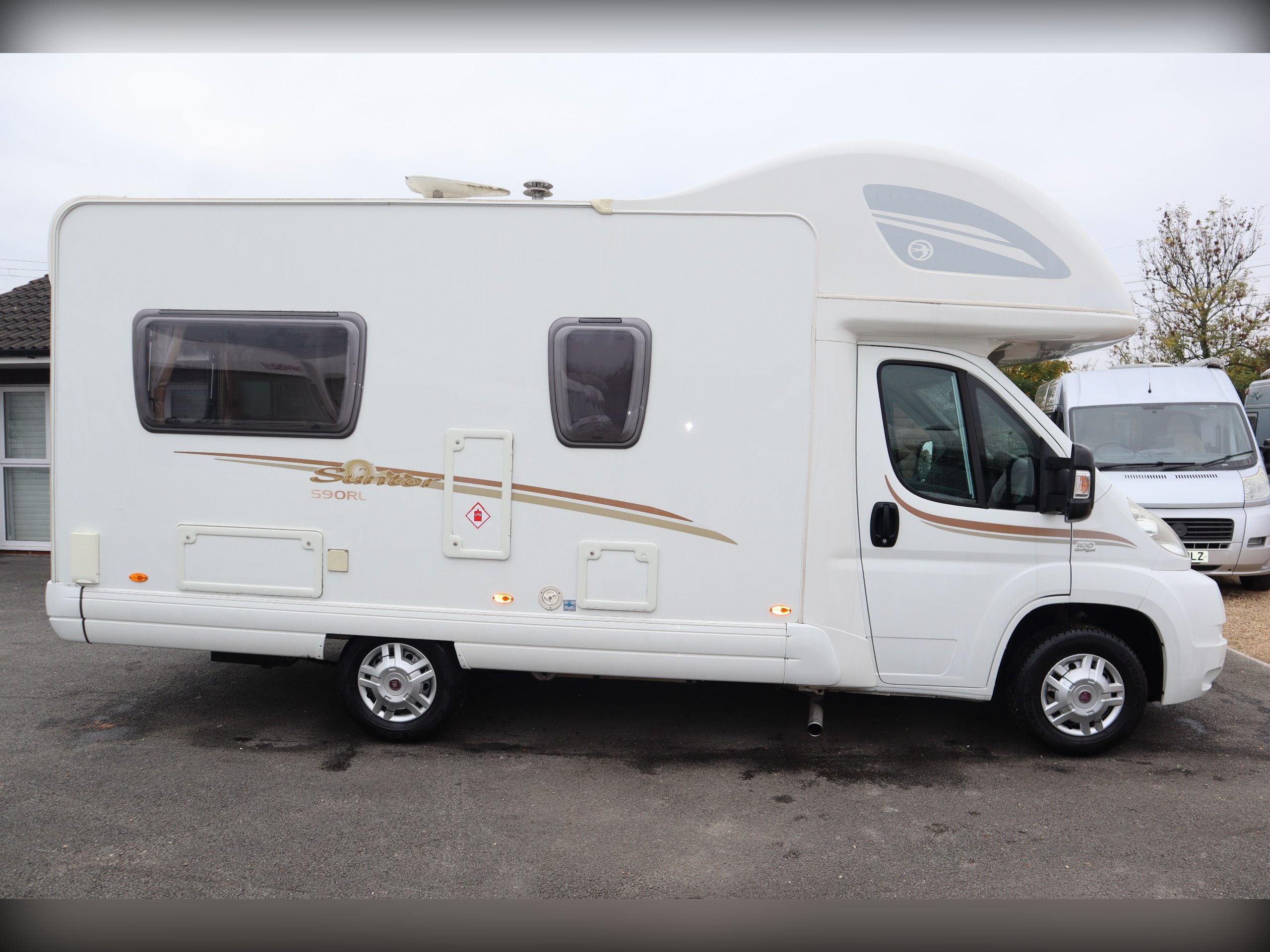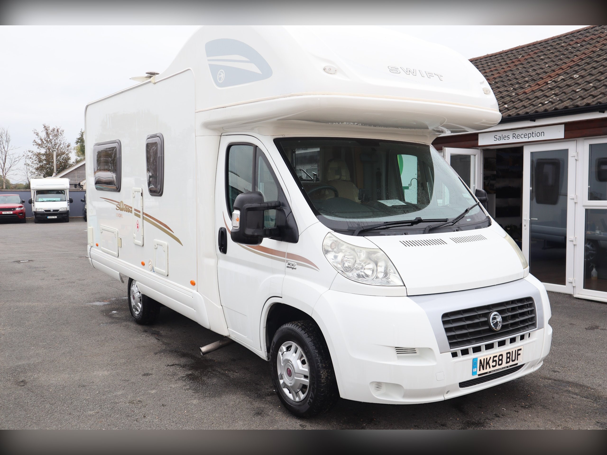 Swift Suntor 590 RL,4 berth, 2 belts, rear lounge, overcab bed. Mid kitchen with oven, hob, grill, sink and fridge freezer. side bathroom with cassette toilet, shower and wash basin. Extras include a bike rack and awning. Popular layout Motorhome with very low mileage.