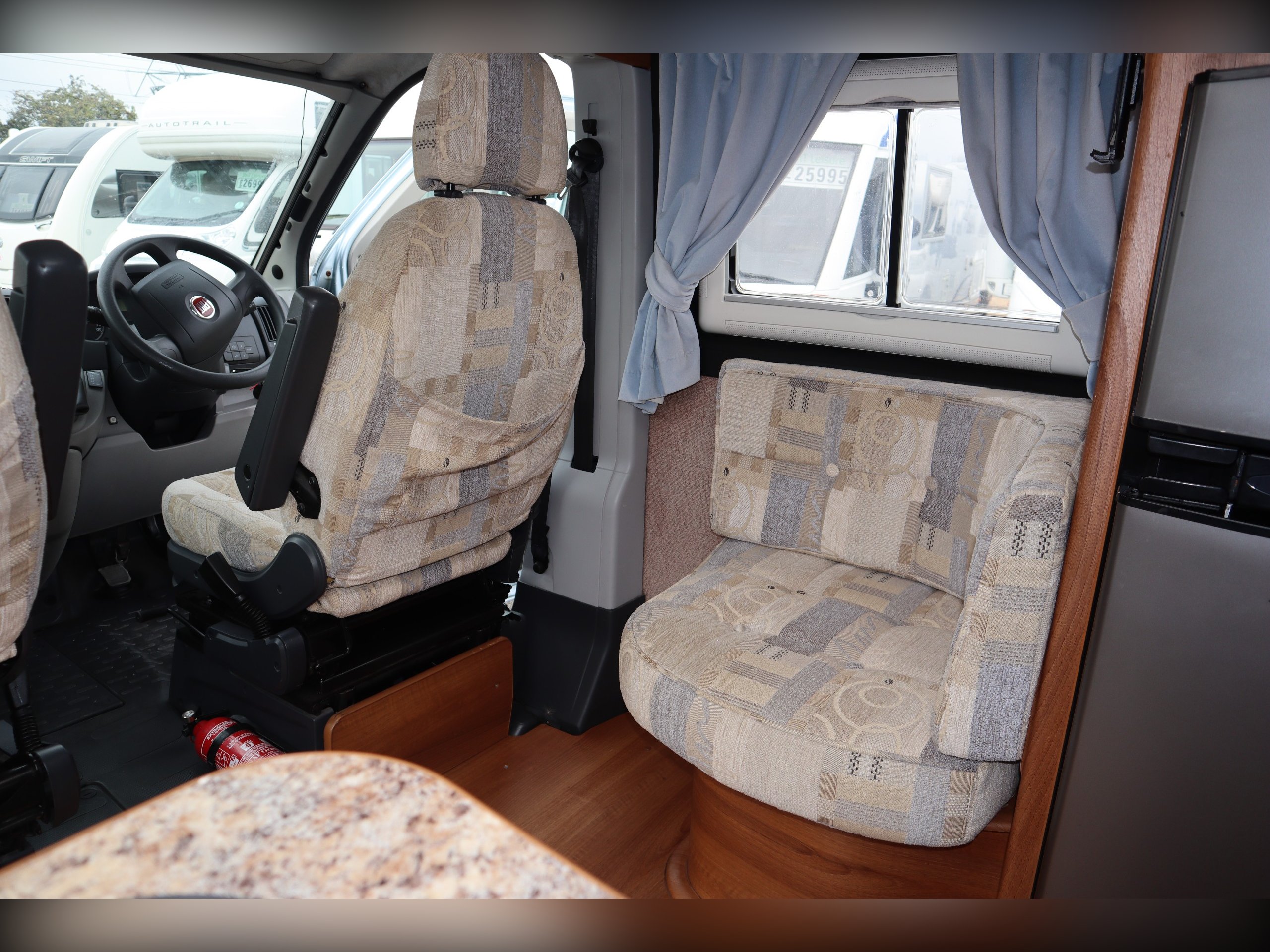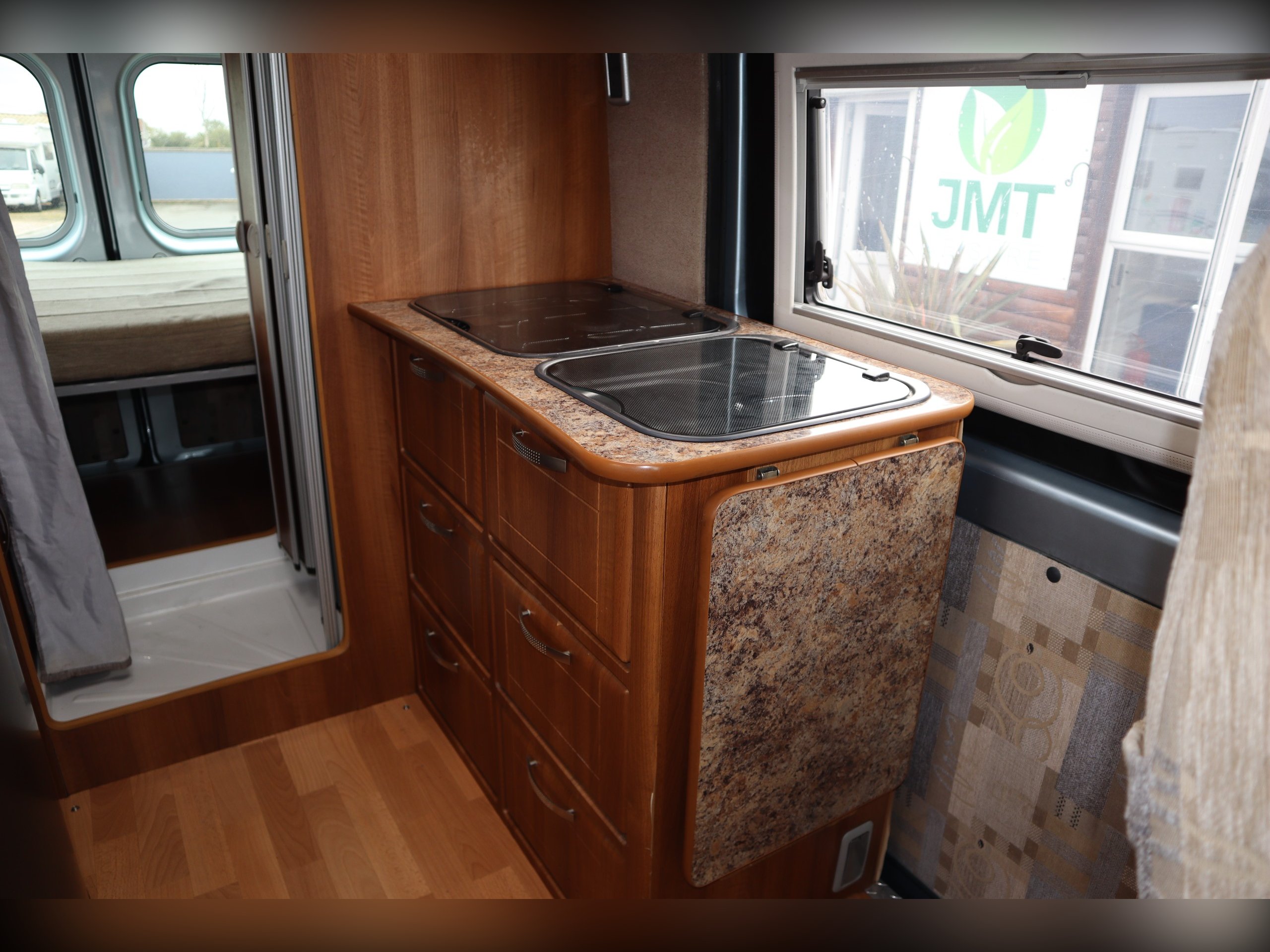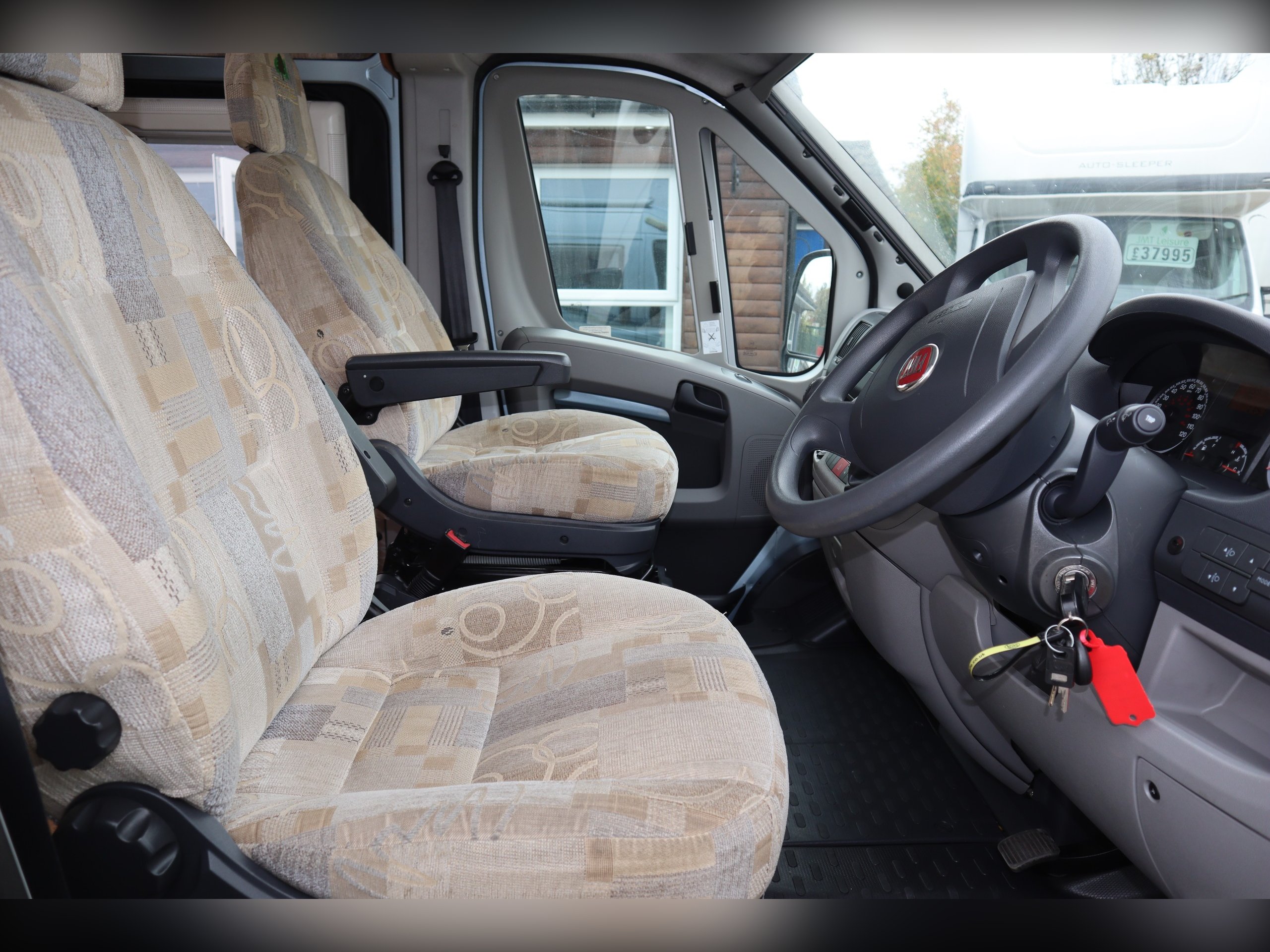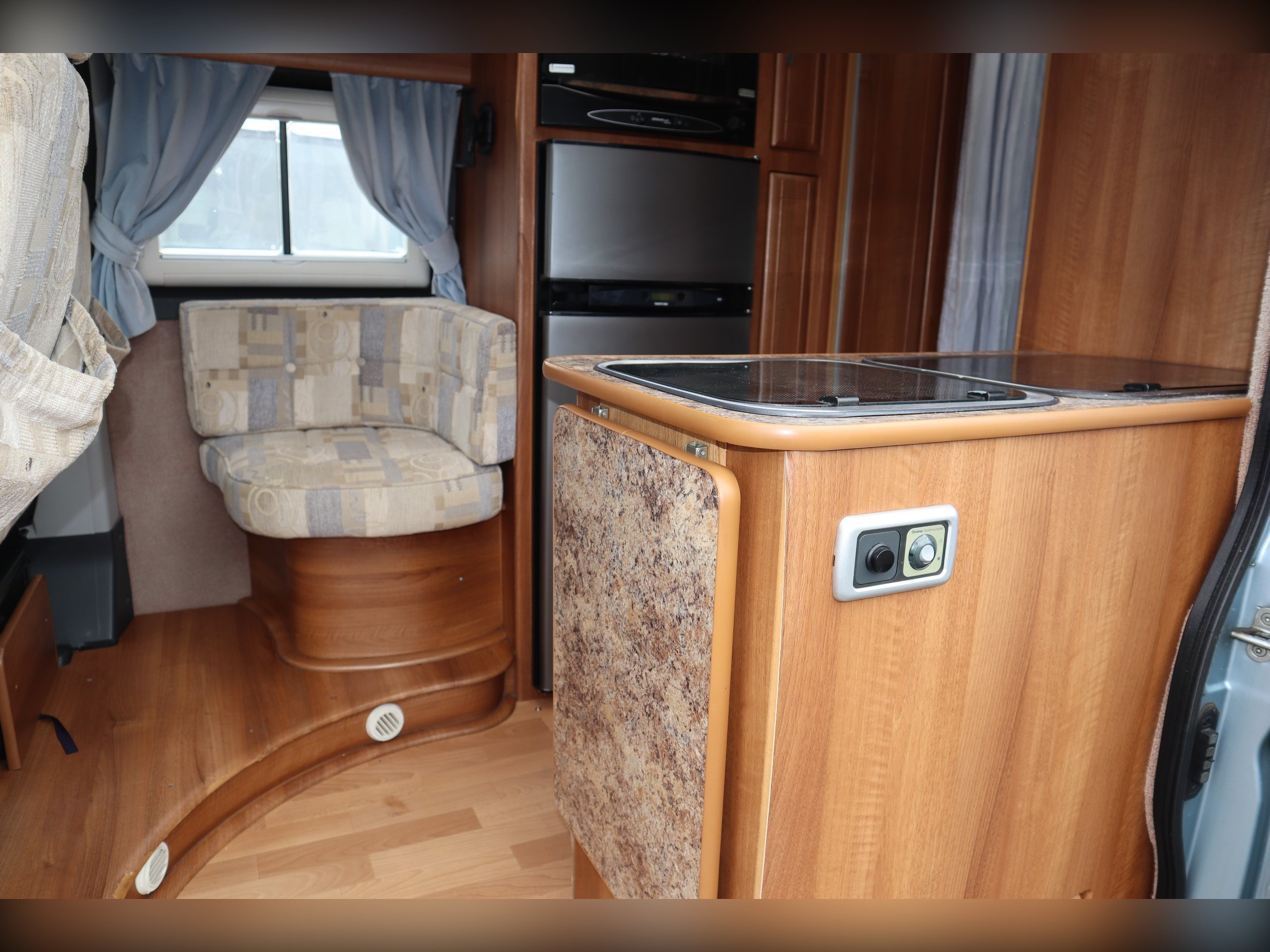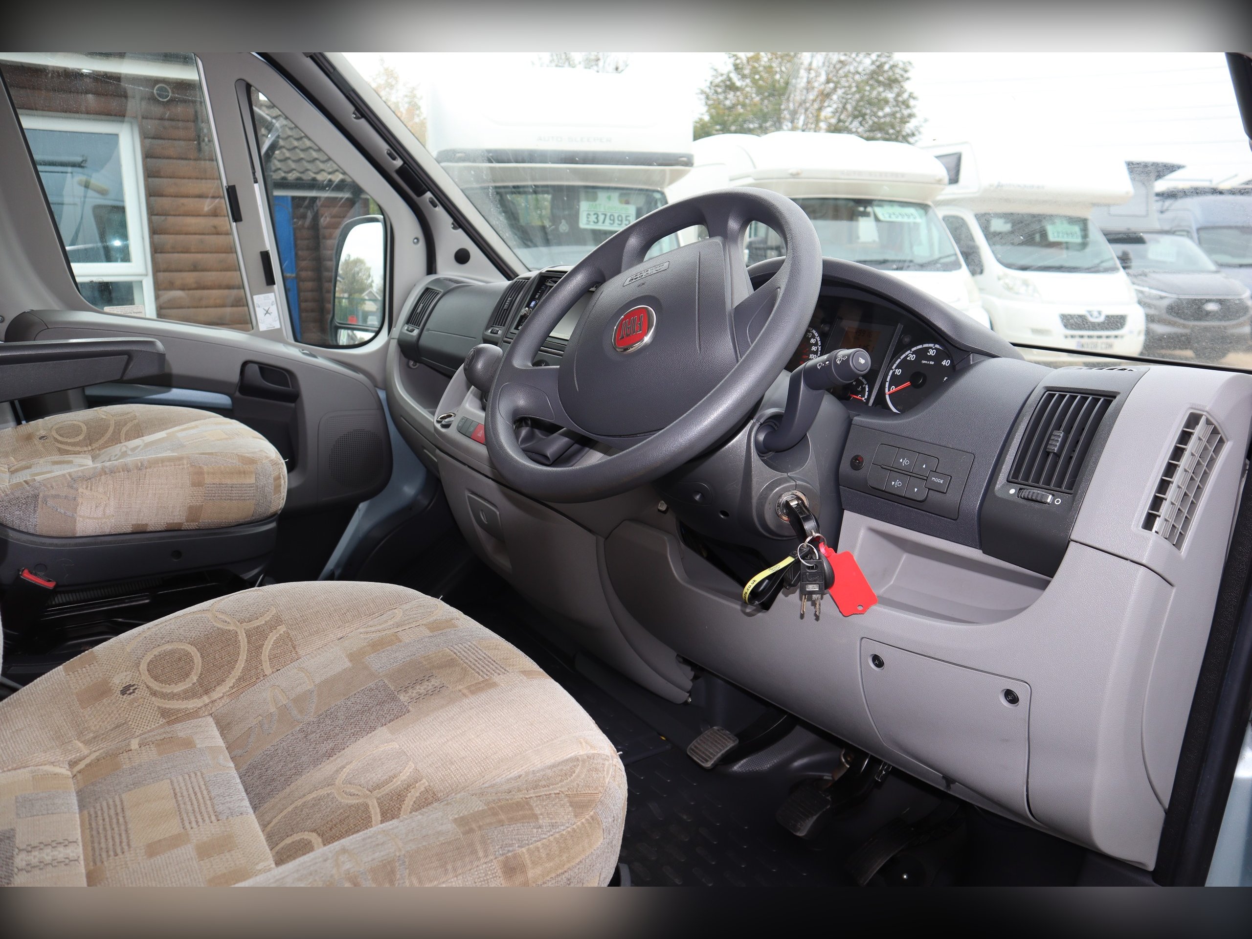 Timberland Atlantis, 2 Berth, 2 Belts, Awning. Large rear double bed that can be raised for additional storage. Mid centre bathroom with shower, cassette toilet basin and vanity unit. Front lounge area that incorporates the swivel captains seats. Mid kitchen with fridge freezer, hob, sink and combi oven. Fiat Ducato cab with electric windows and mirrors. Exceptional Timberland quality with versatile living accommodation.