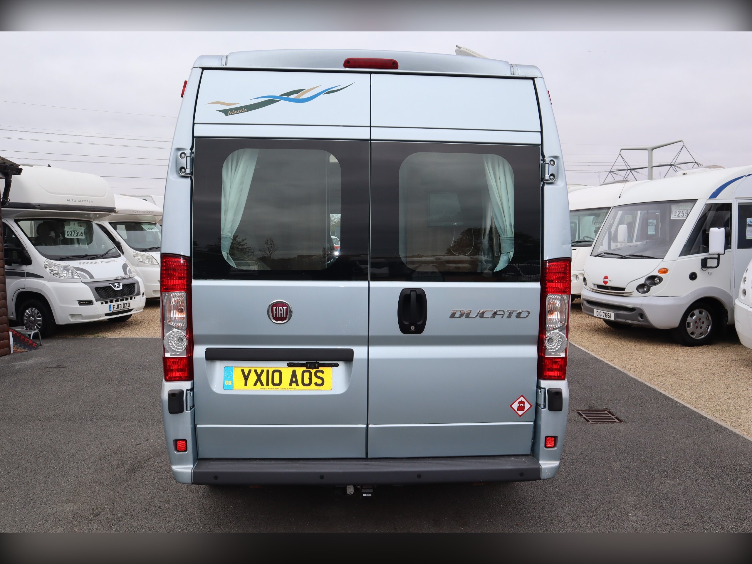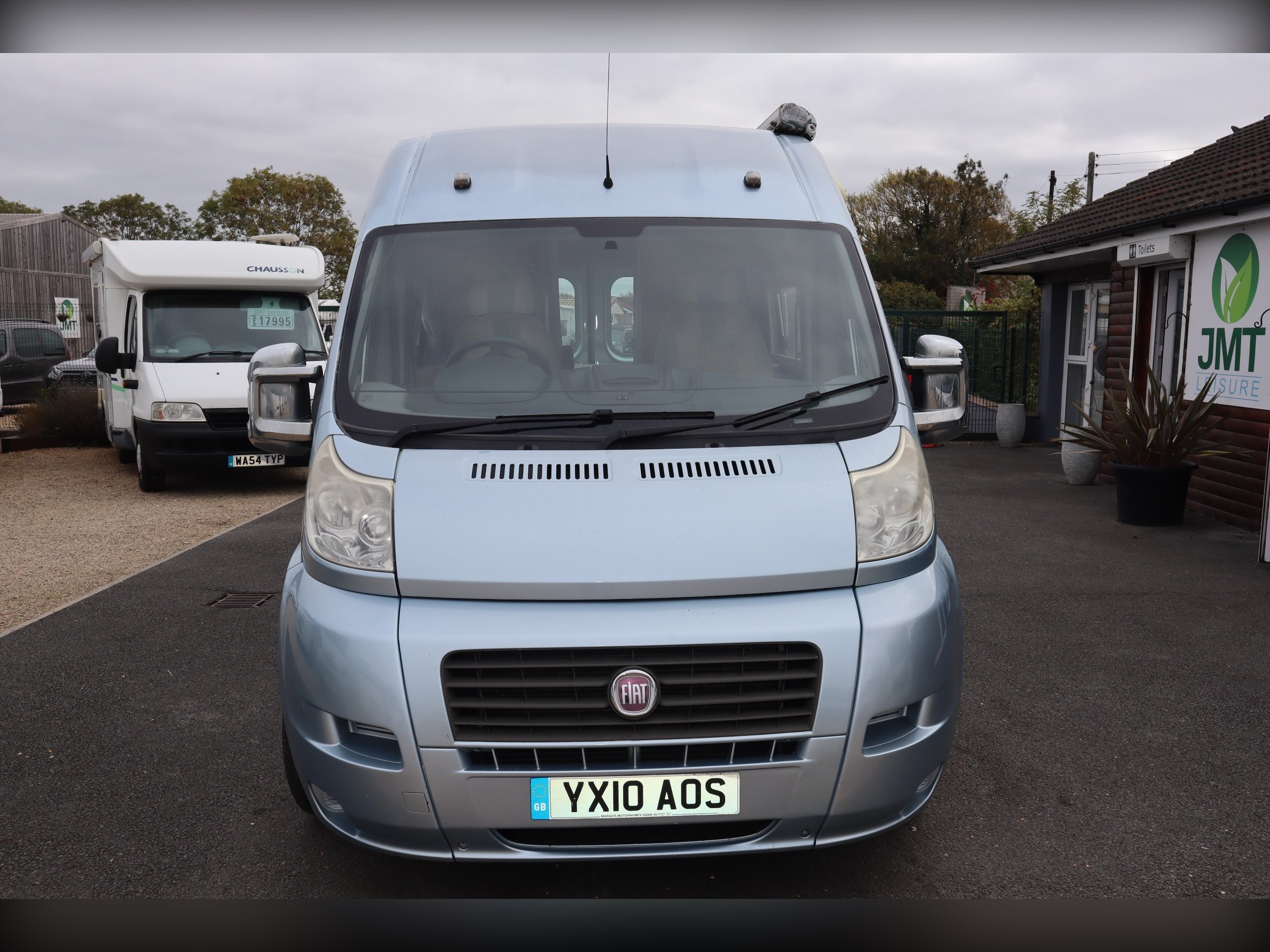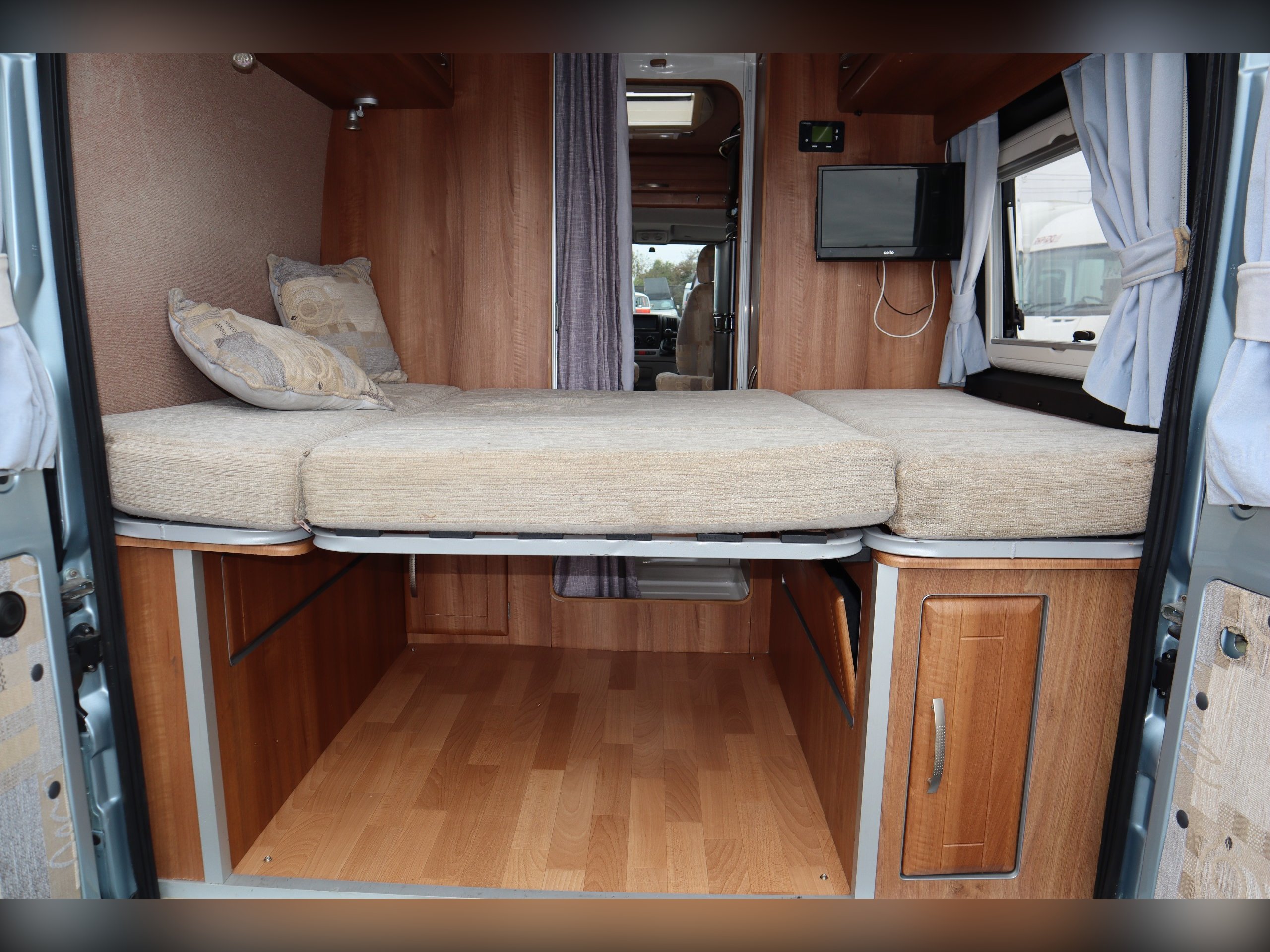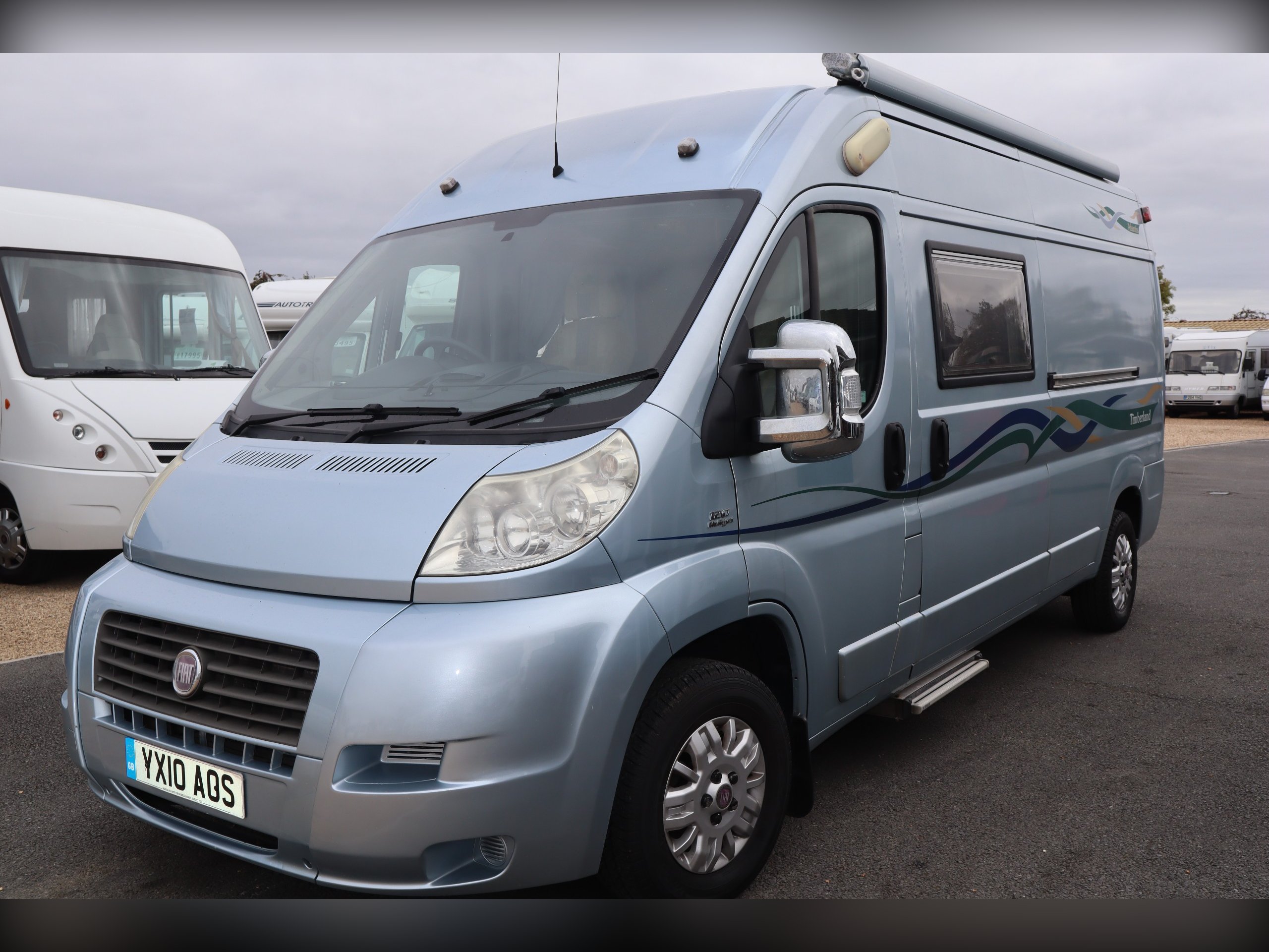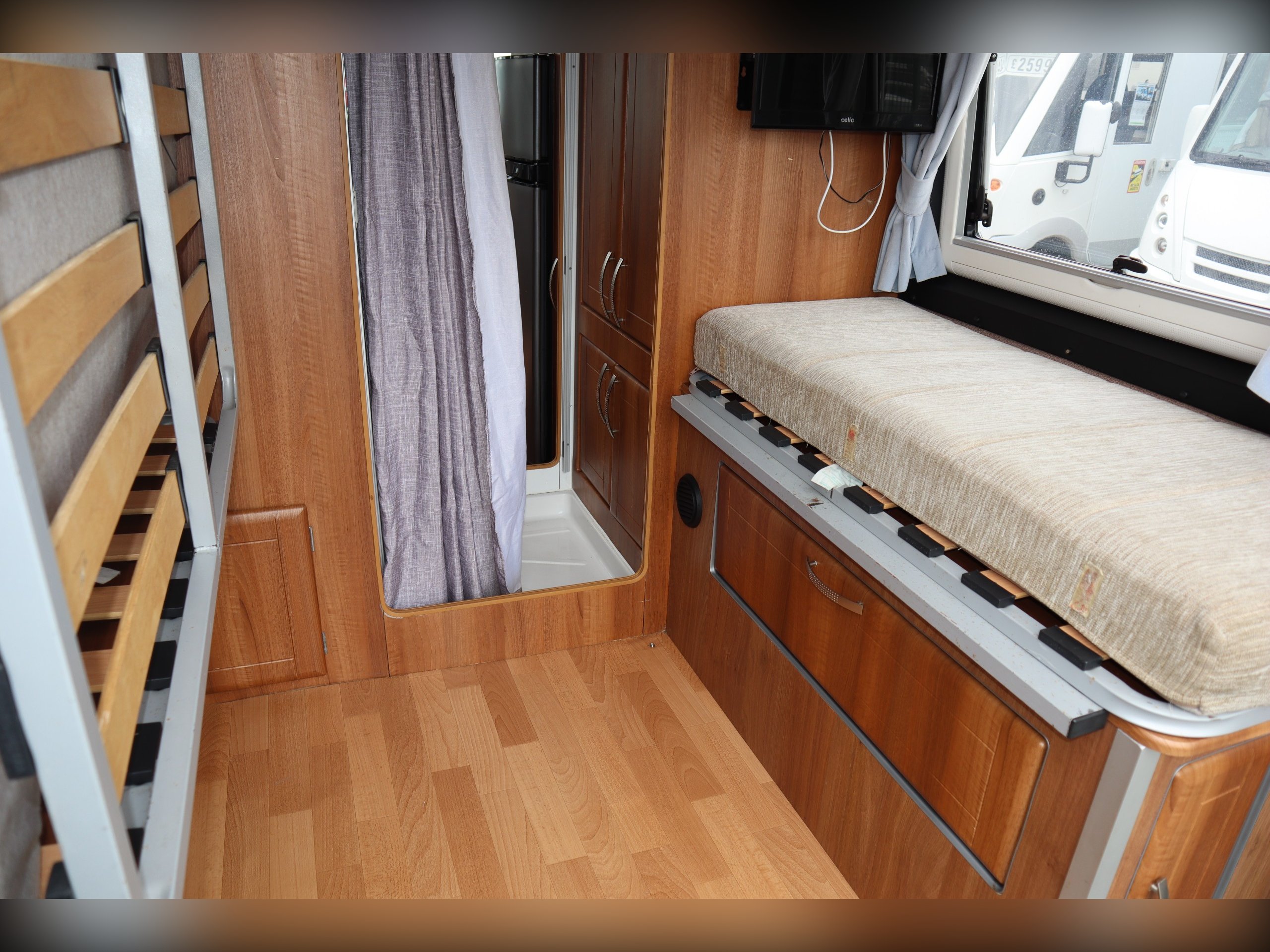 Timberland Atlantis, 2 Berth, 2 Belts, Awning. Large rear double bed that can be raised for additional storage. Mid centre bathroom with shower, cassette toilet basin and vanity unit. Front lounge area that incorporates the swivel captains seats. Mid kitchen with fridge freezer, hob, sink and combi oven. Fiat Ducato cab with electric windows and mirrors. Exceptional Timberland quality with versatile living accommodation.