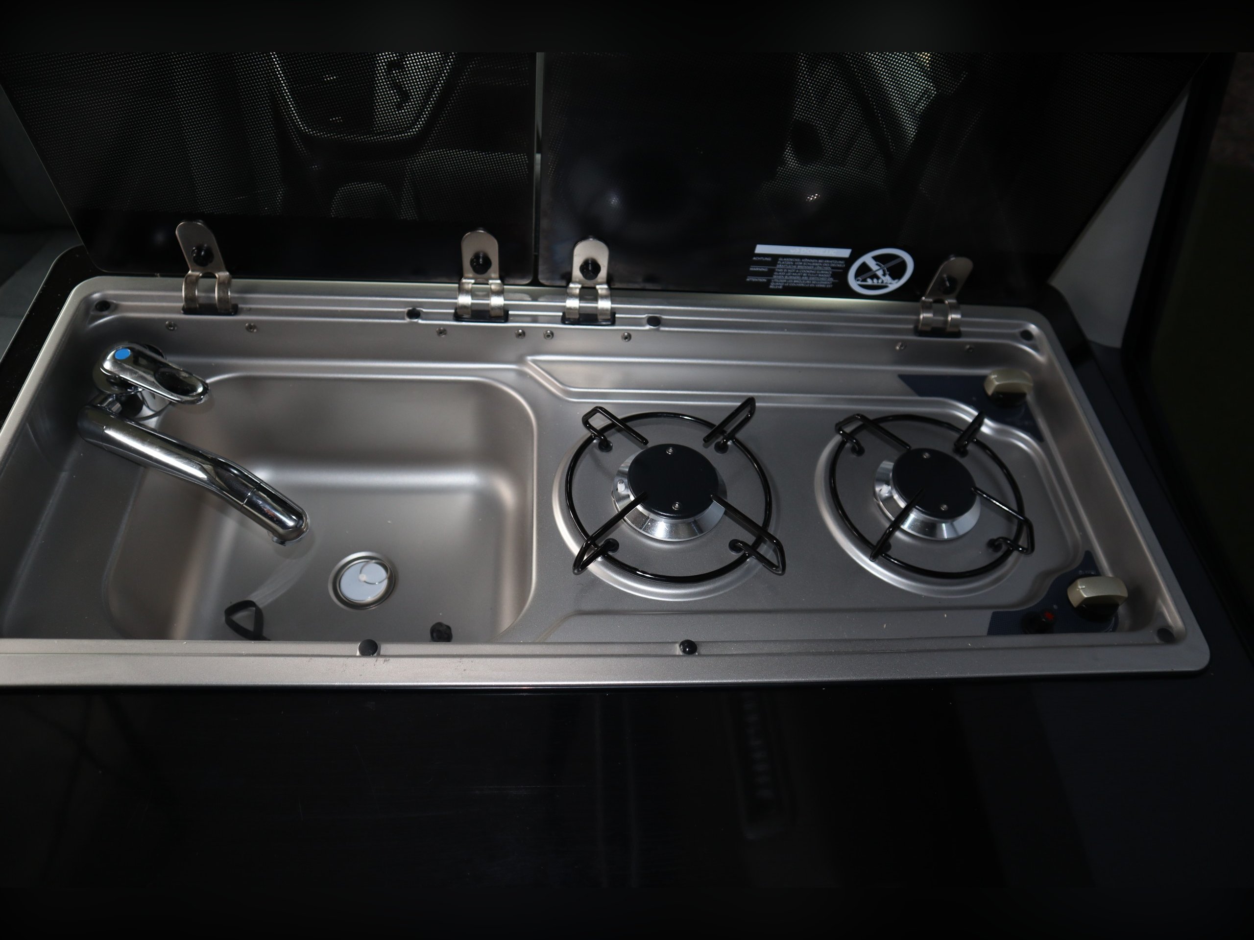2 ring hob & sink with tap