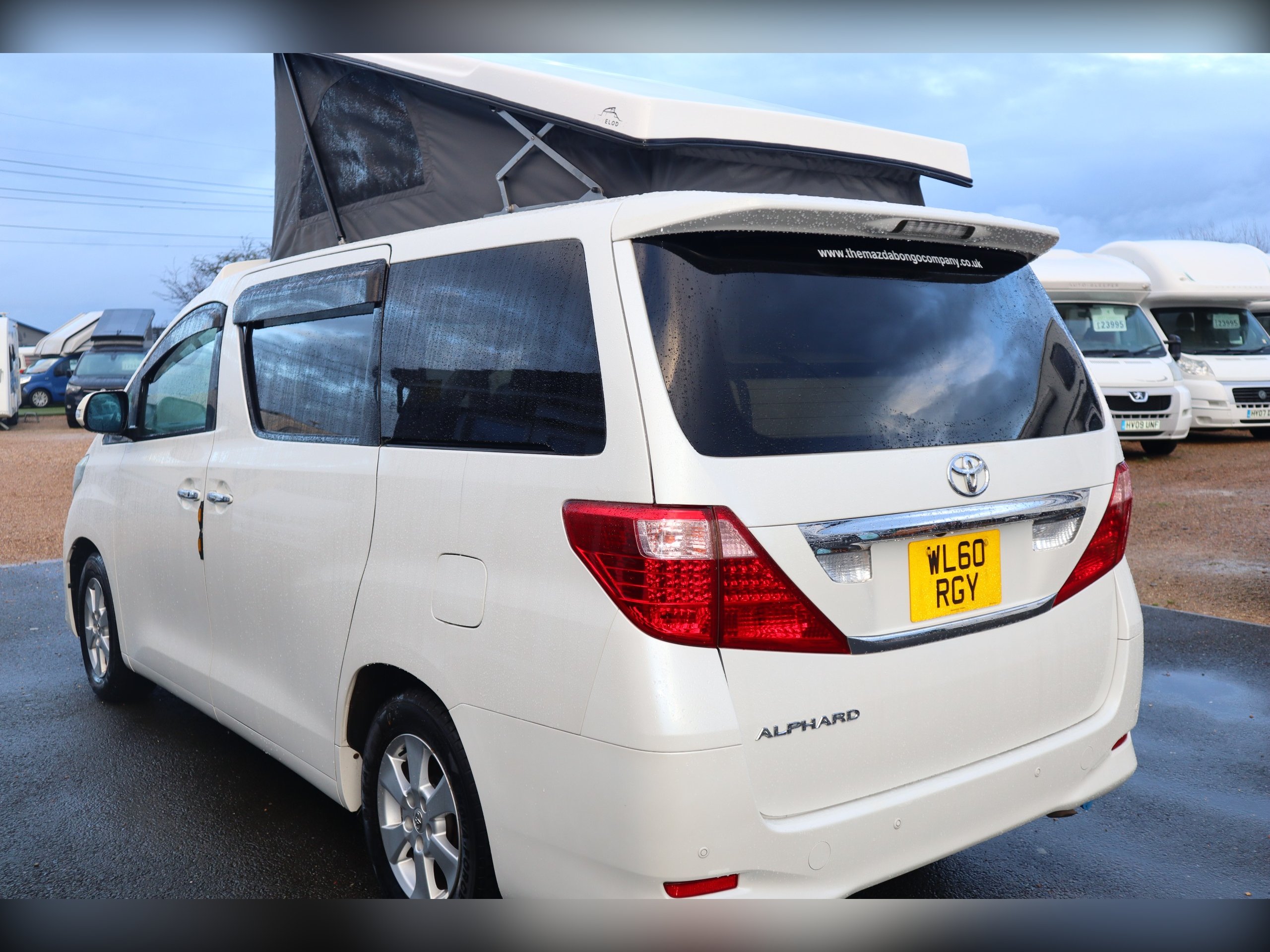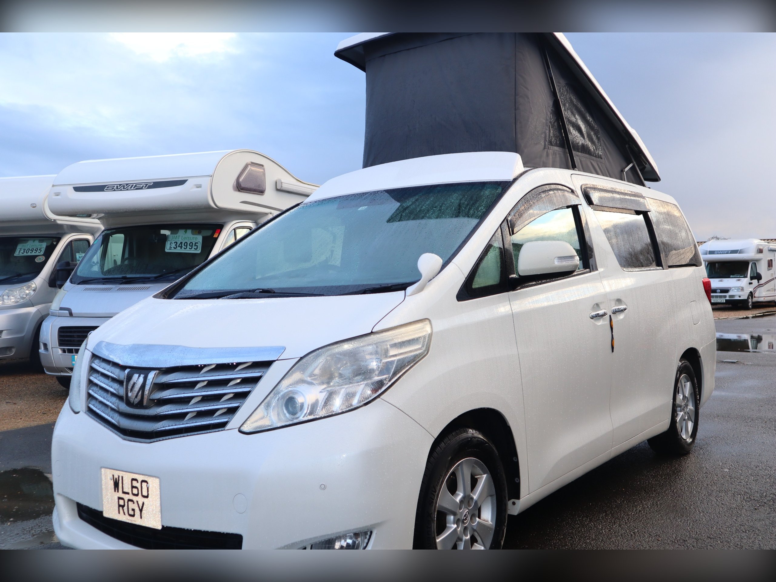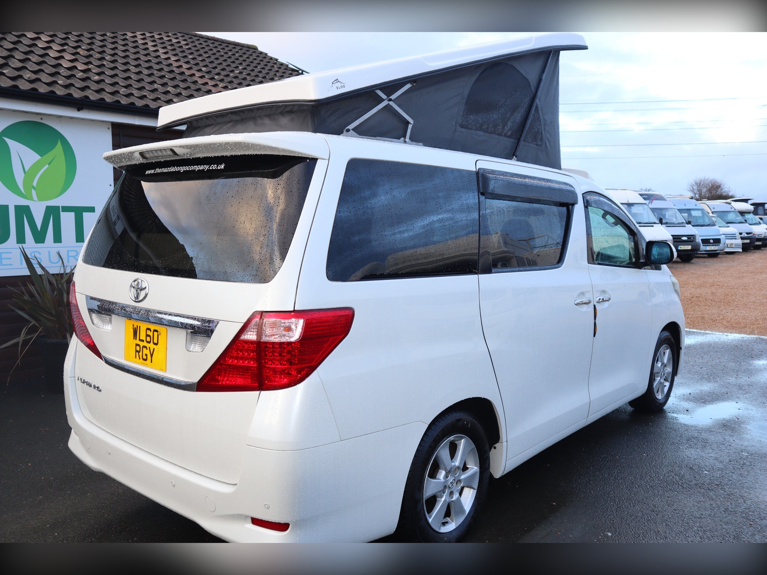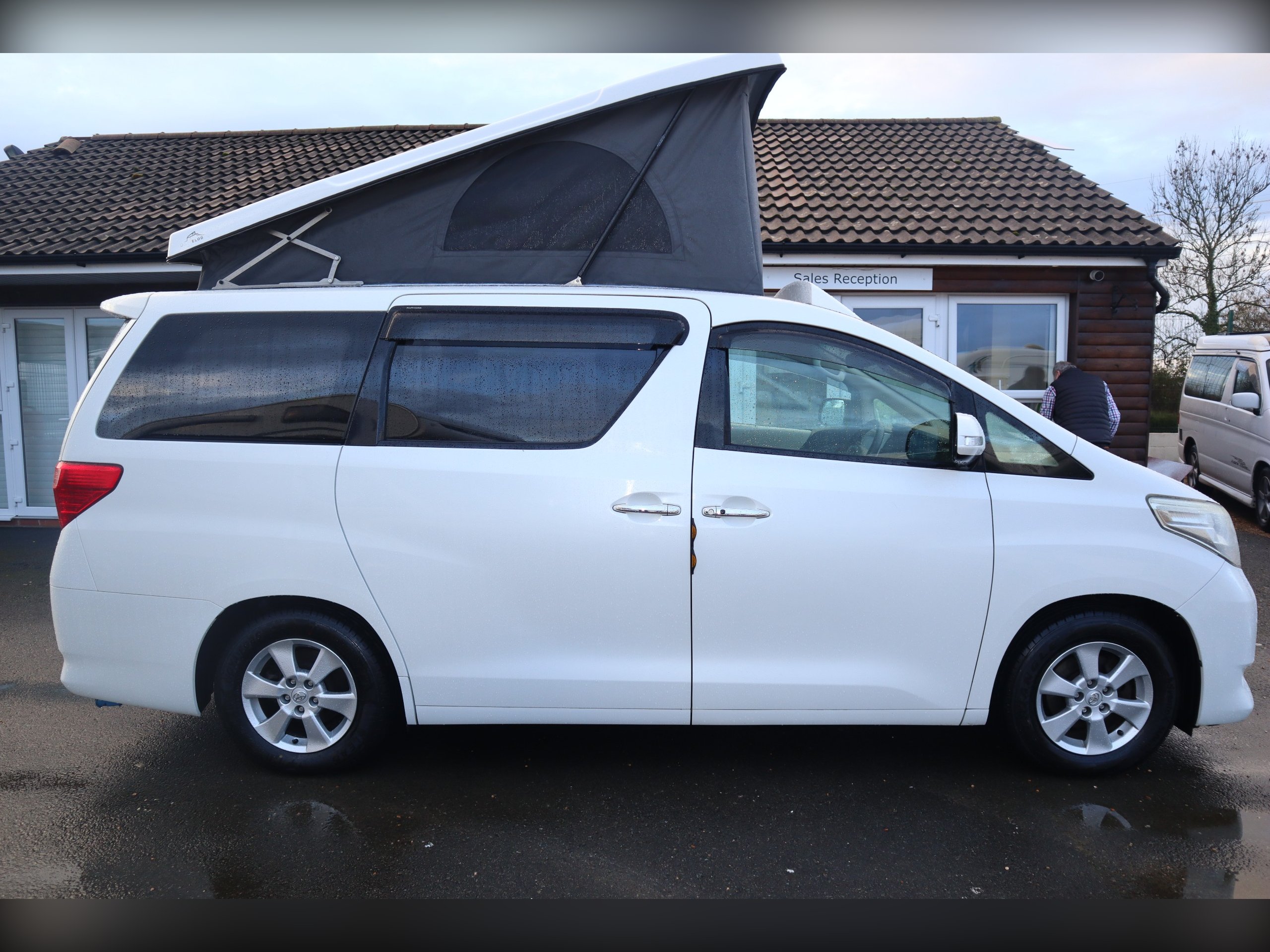 Toyota Alphard, 4 Berth, 4 Belts, Automatic, Alloy Wheels, Cruise Control, Air Conditioning, UK Stereo, Pop Top Roof, Rock N Roll Bed, Roof Board, Hob & Sink, Fridge. Exceptional example.