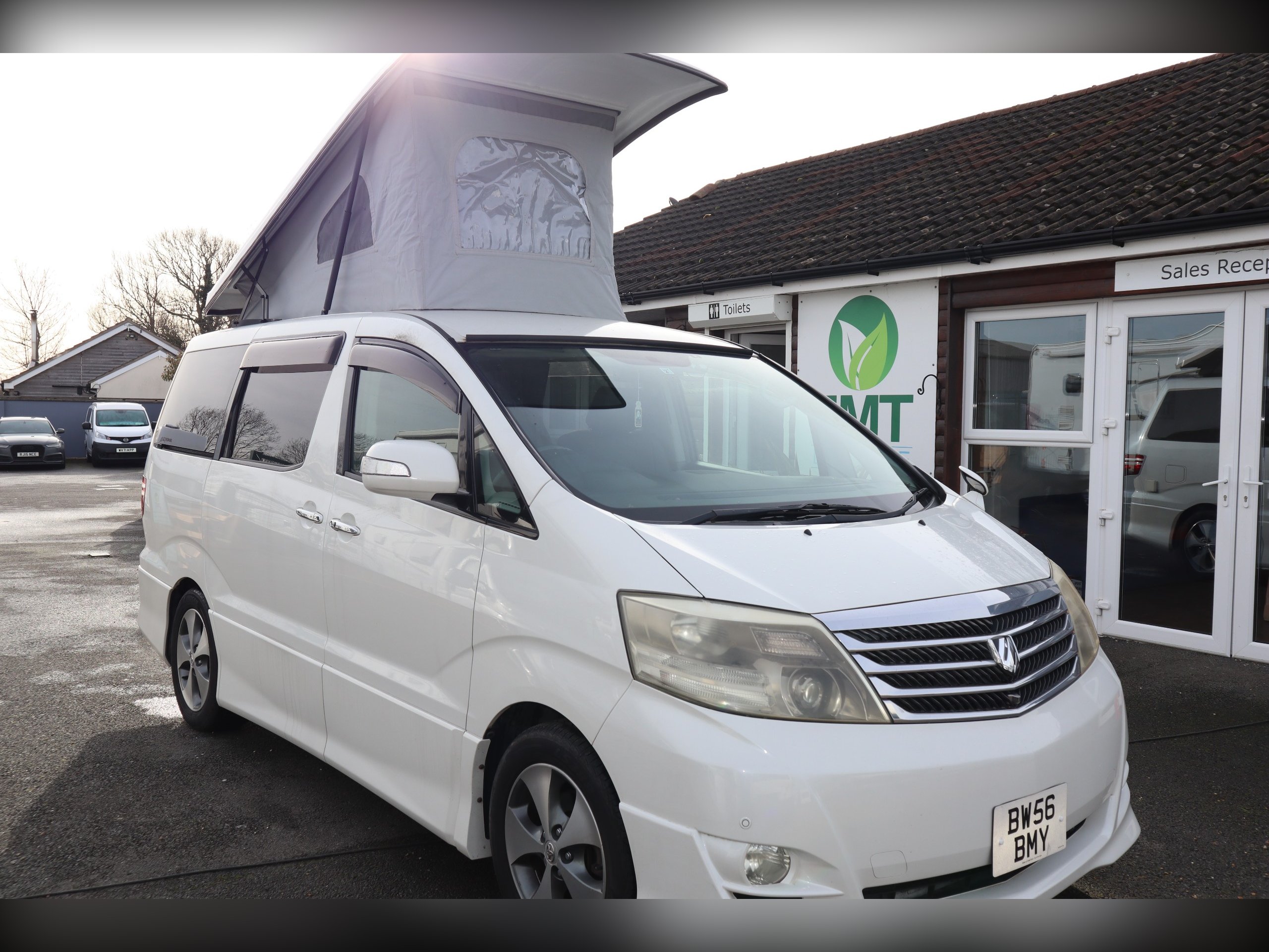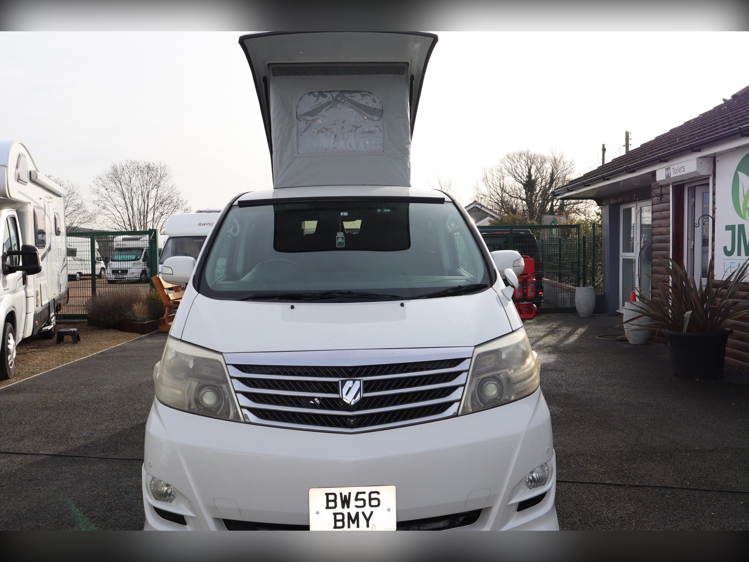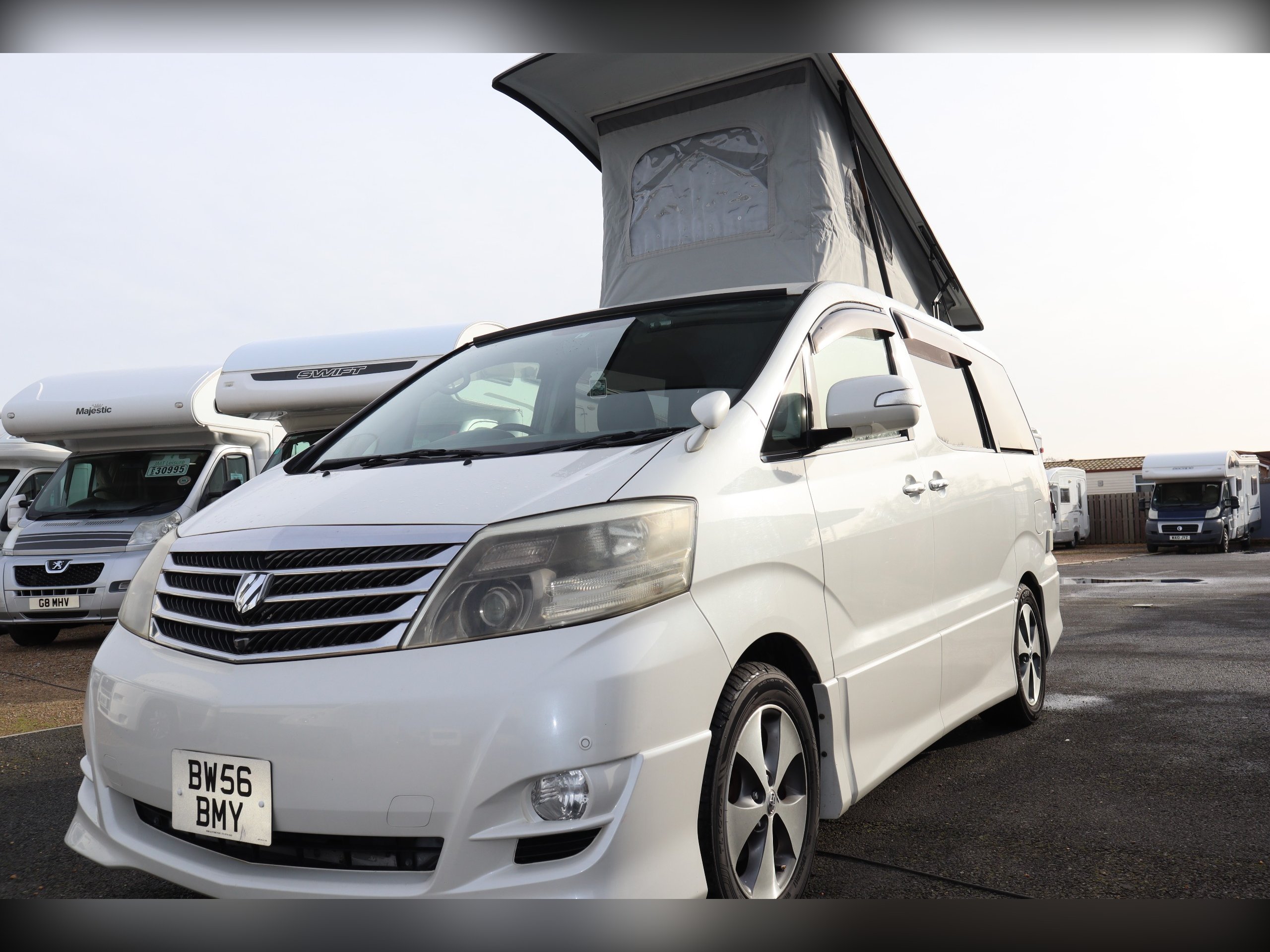 Toyota Alphard G, 4 Berth, 4 Belts, Automatic, Alloy Wheels, Solar Panel, Hob, Sink & Fridge. Rock n Roll Bed, Cab Air Con, UK Stereo. Superb camper example of the luxurious Toyota Alphard. 102500 km (63630 Miles)