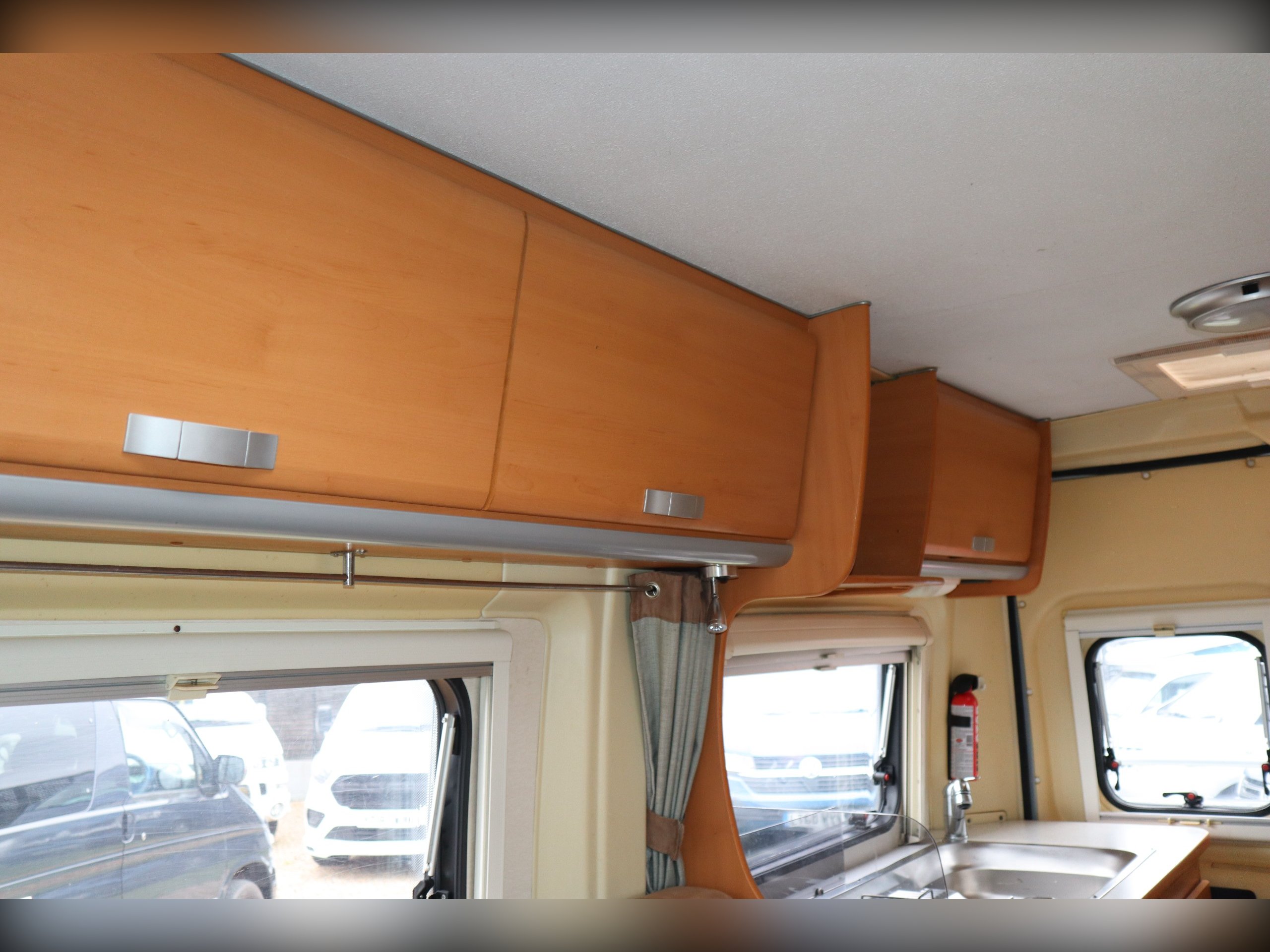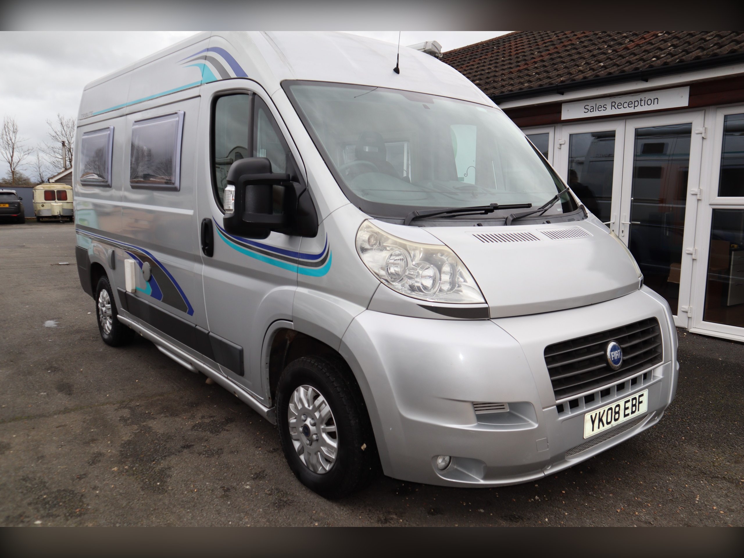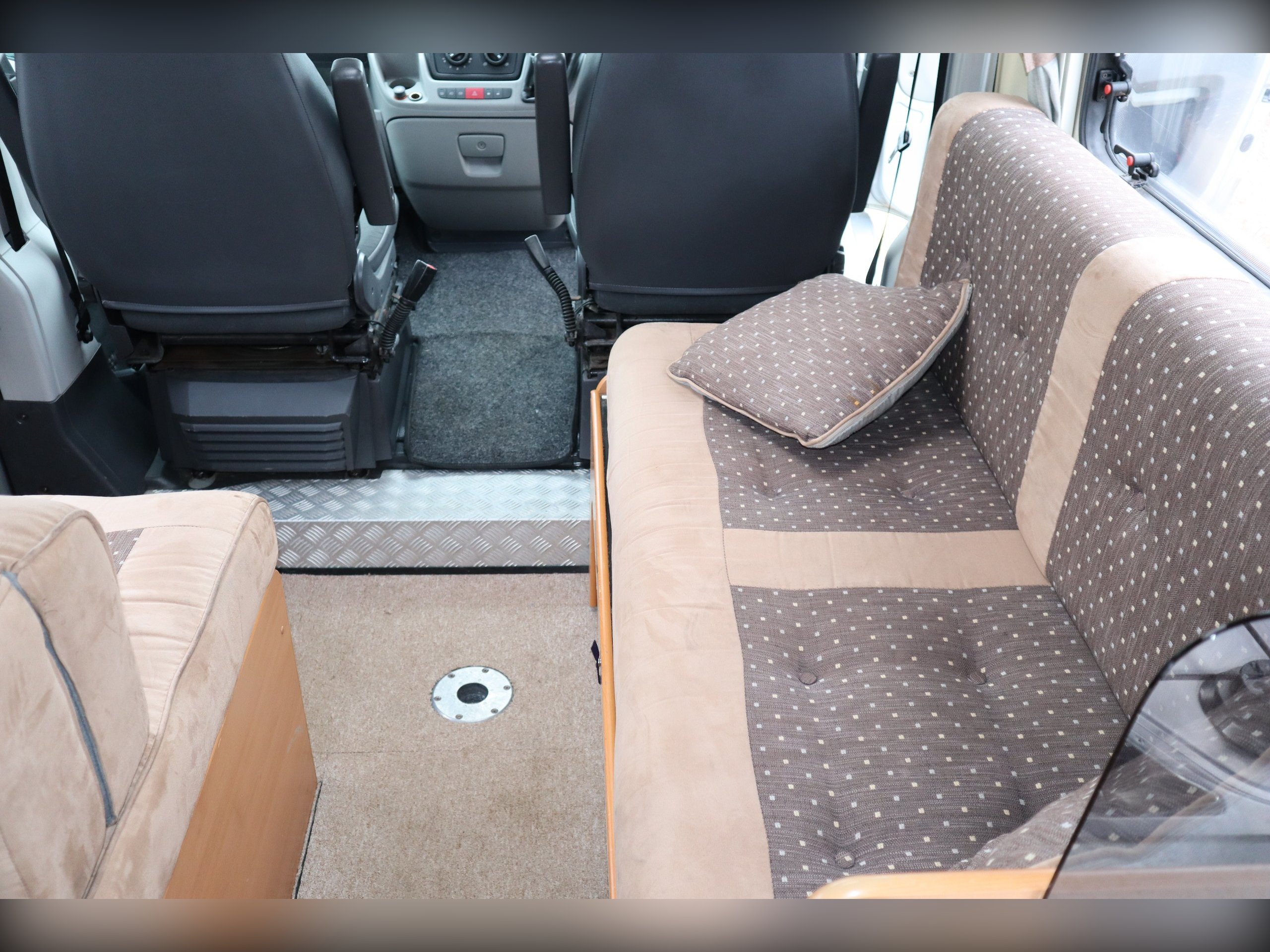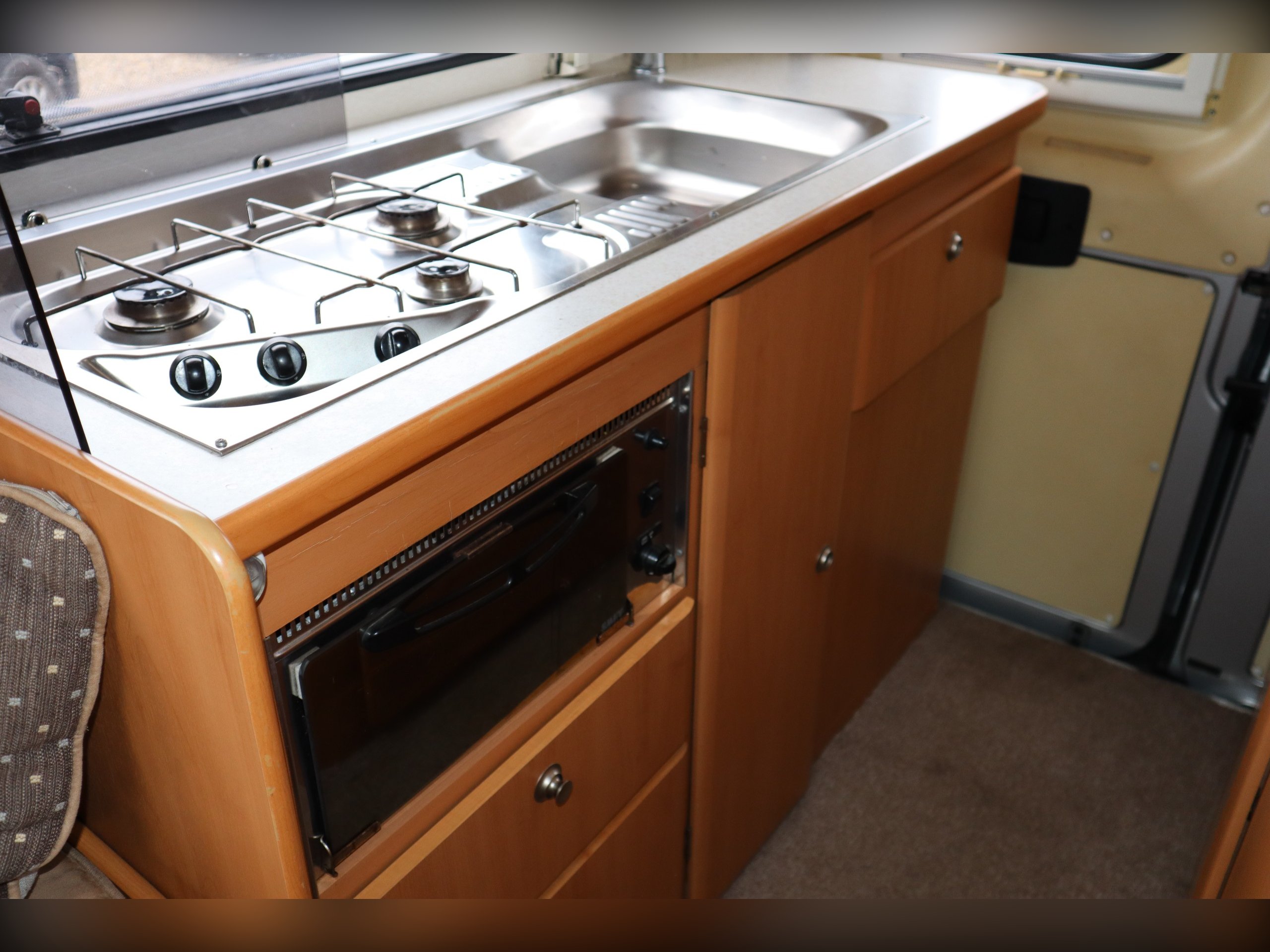 Trigano Tribute 550, 2 Berth, 3 Belts, Rear Side Kitchen, Bathroom Opposite, Front lounge area that can be made up to make 2 single or 1 double bed. Extras include Tow Bar, Awning, Bike rack, Alloy Wheels and Solar Panel.