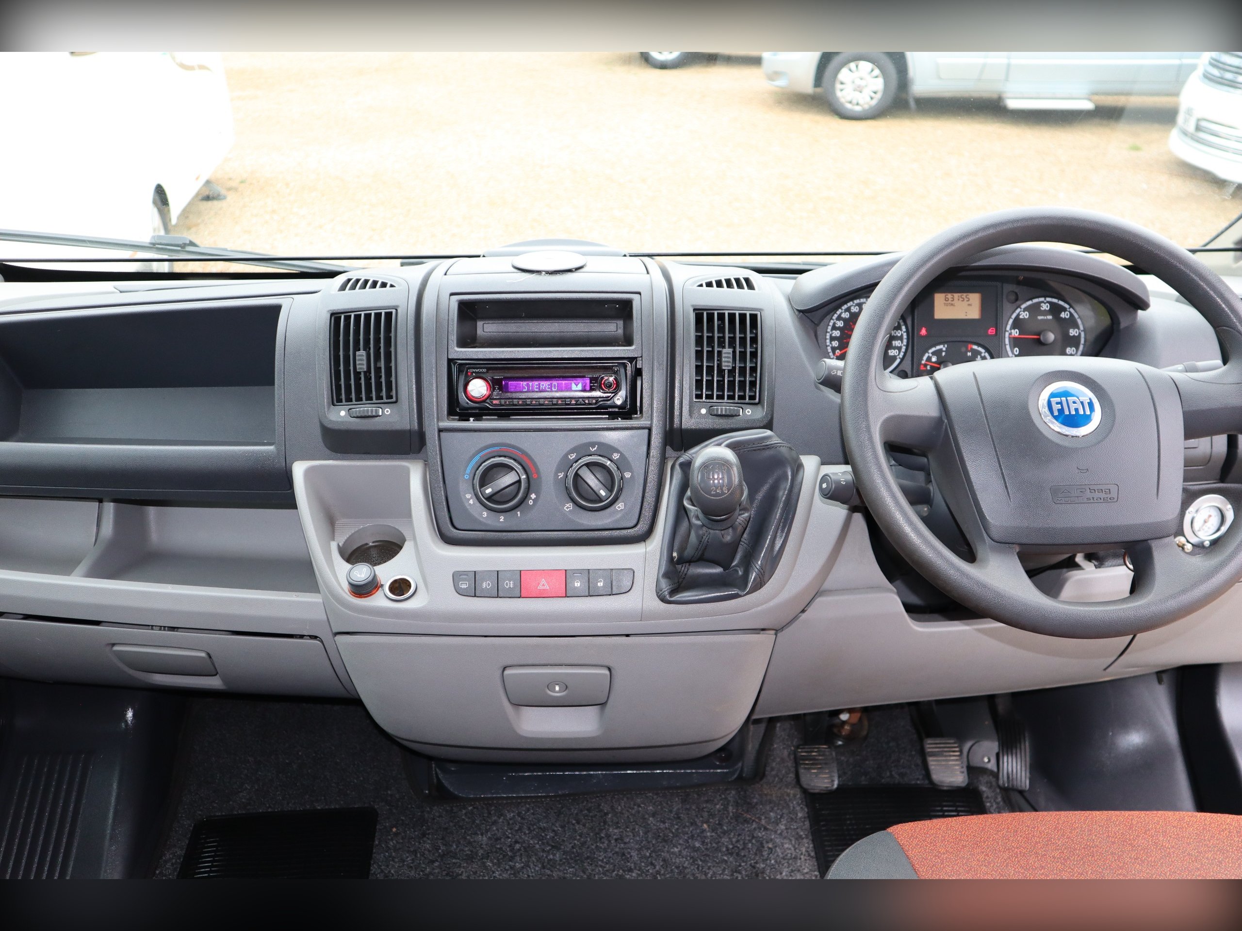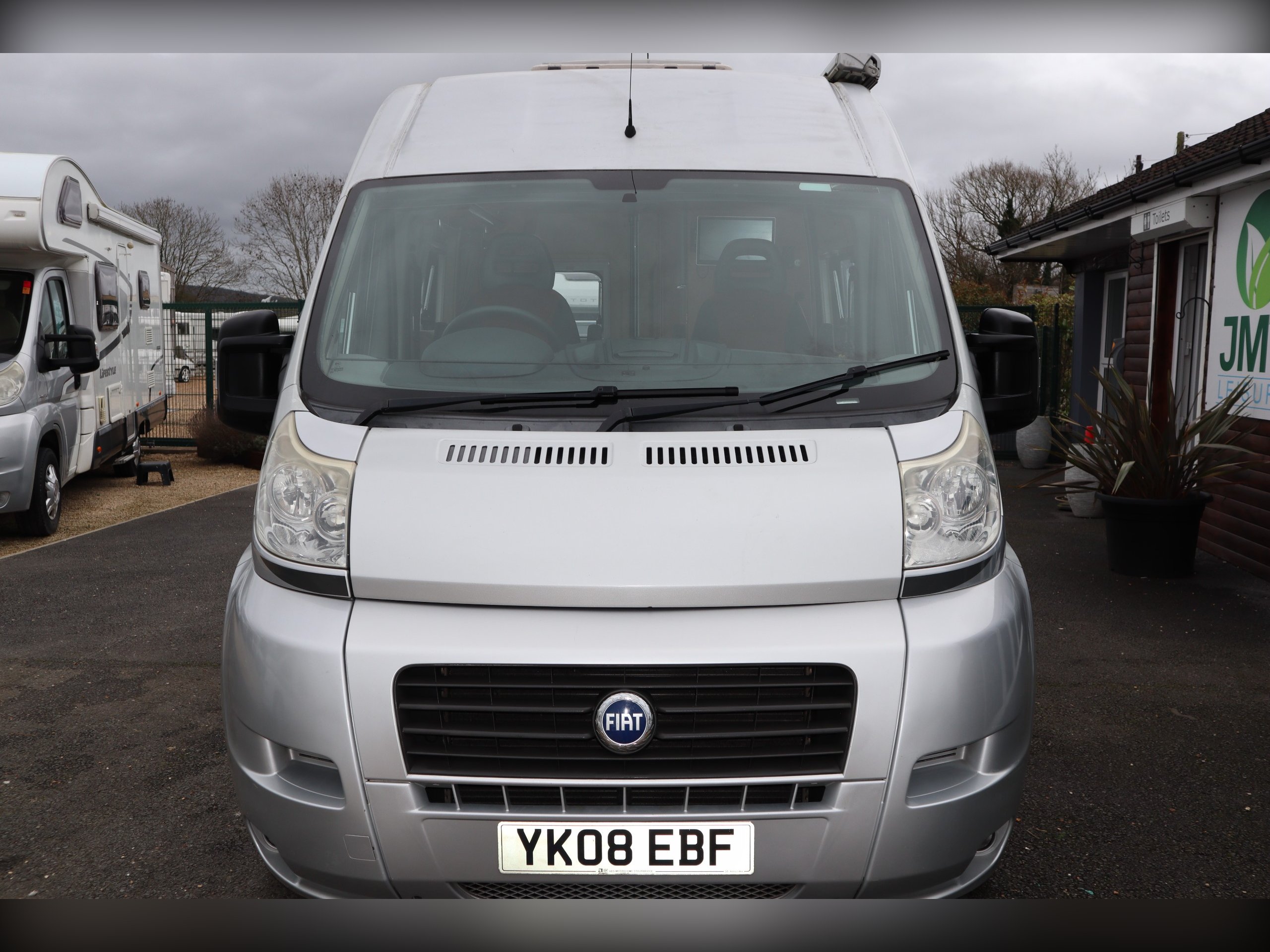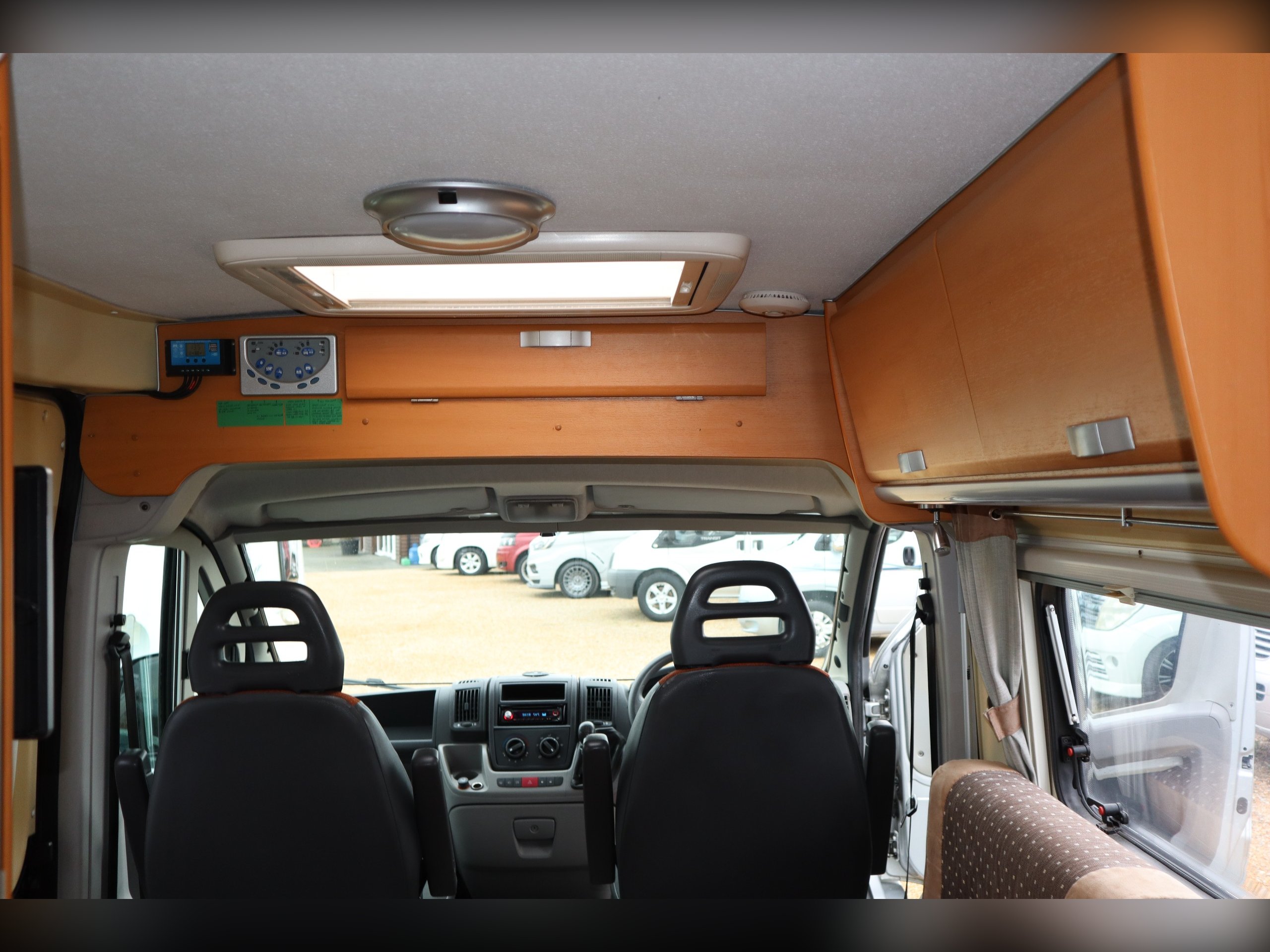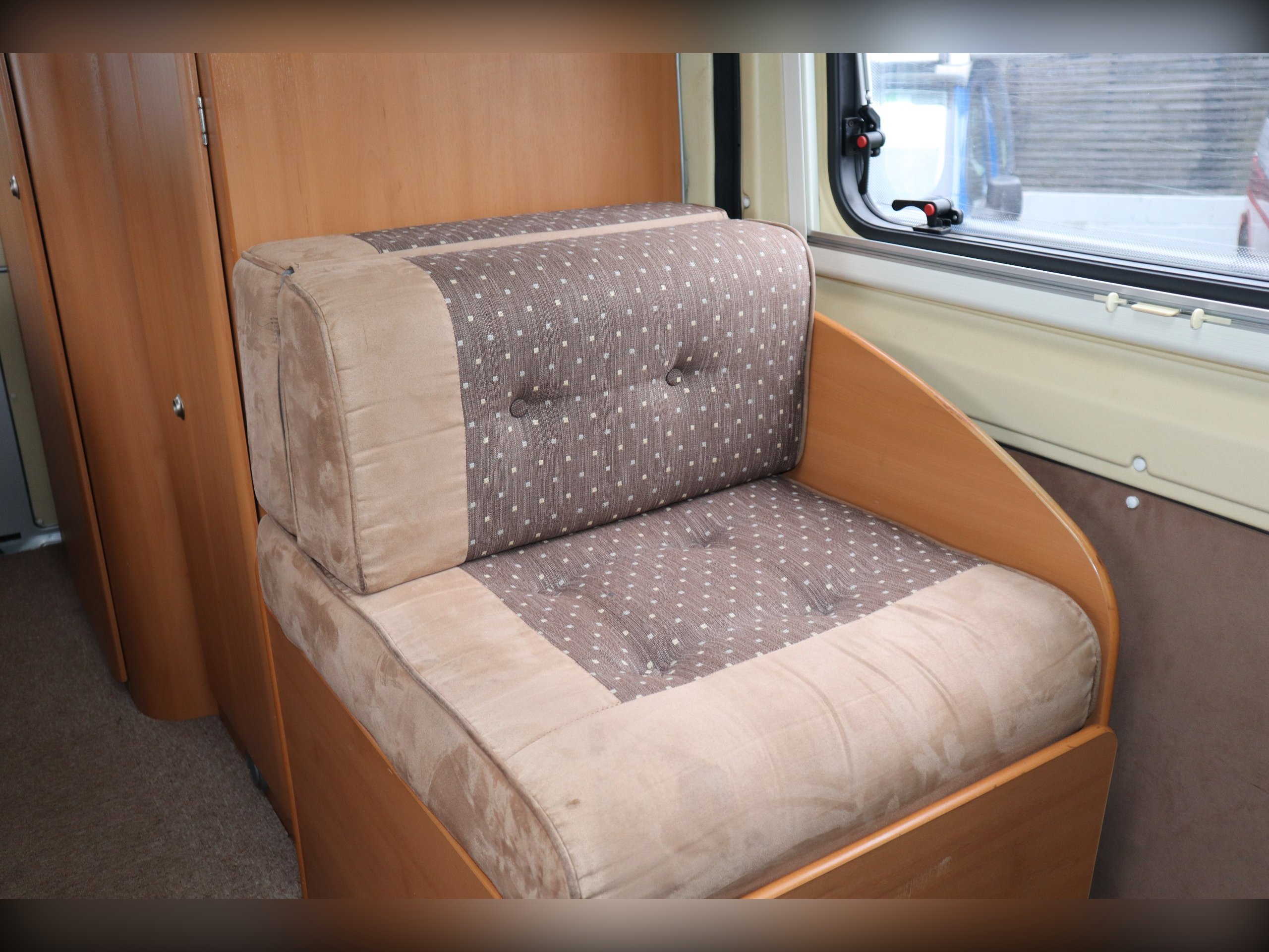 Trigano Tribute 550, 2 Berth, 3 Belts, Rear Side Kitchen, Bathroom Opposite, Front lounge area that can be made up to make 2 single or 1 double bed. Extras include Tow Bar, Awning, Bike rack, Alloy Wheels and Solar Panel.