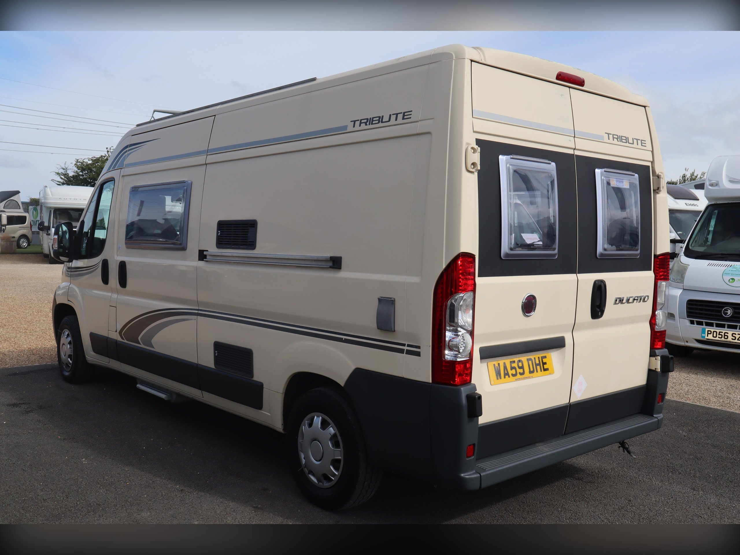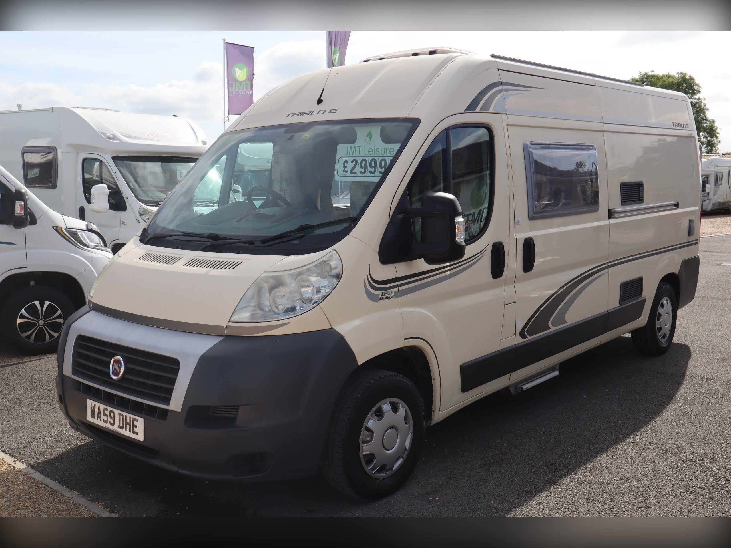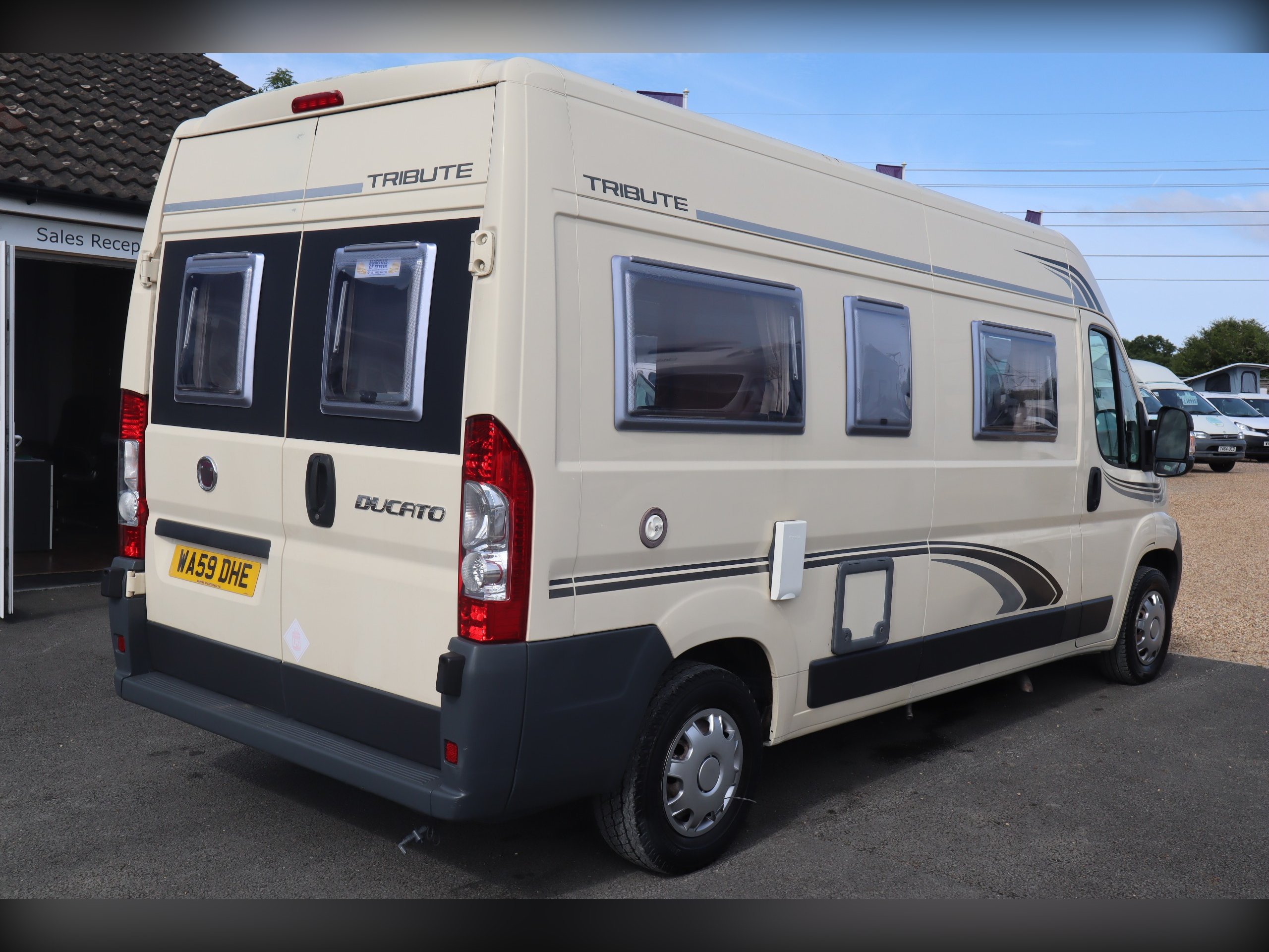Trigano Tribute 655, 3 Berth, 3 Belts, Double transverse rear bed that can be folded up to walk out of rear doors or to access a large under bed storage area, Cruise Control, Diesel Heating