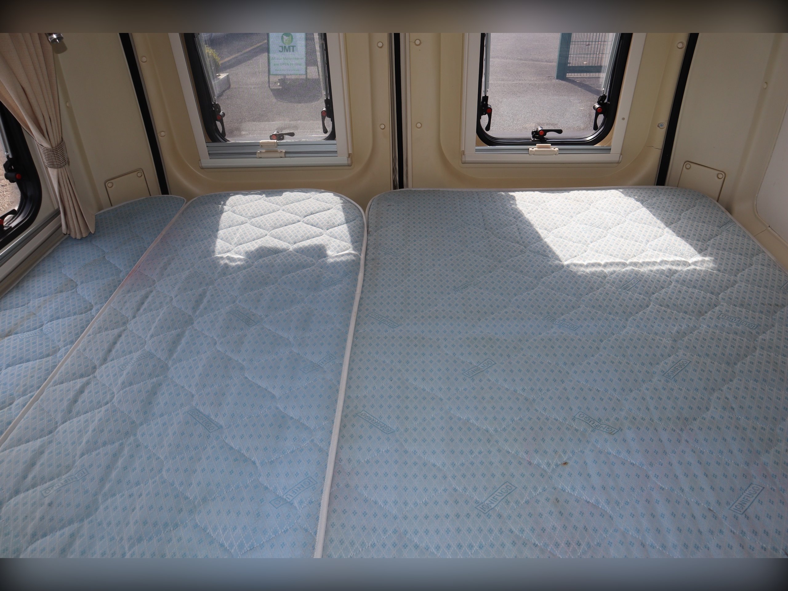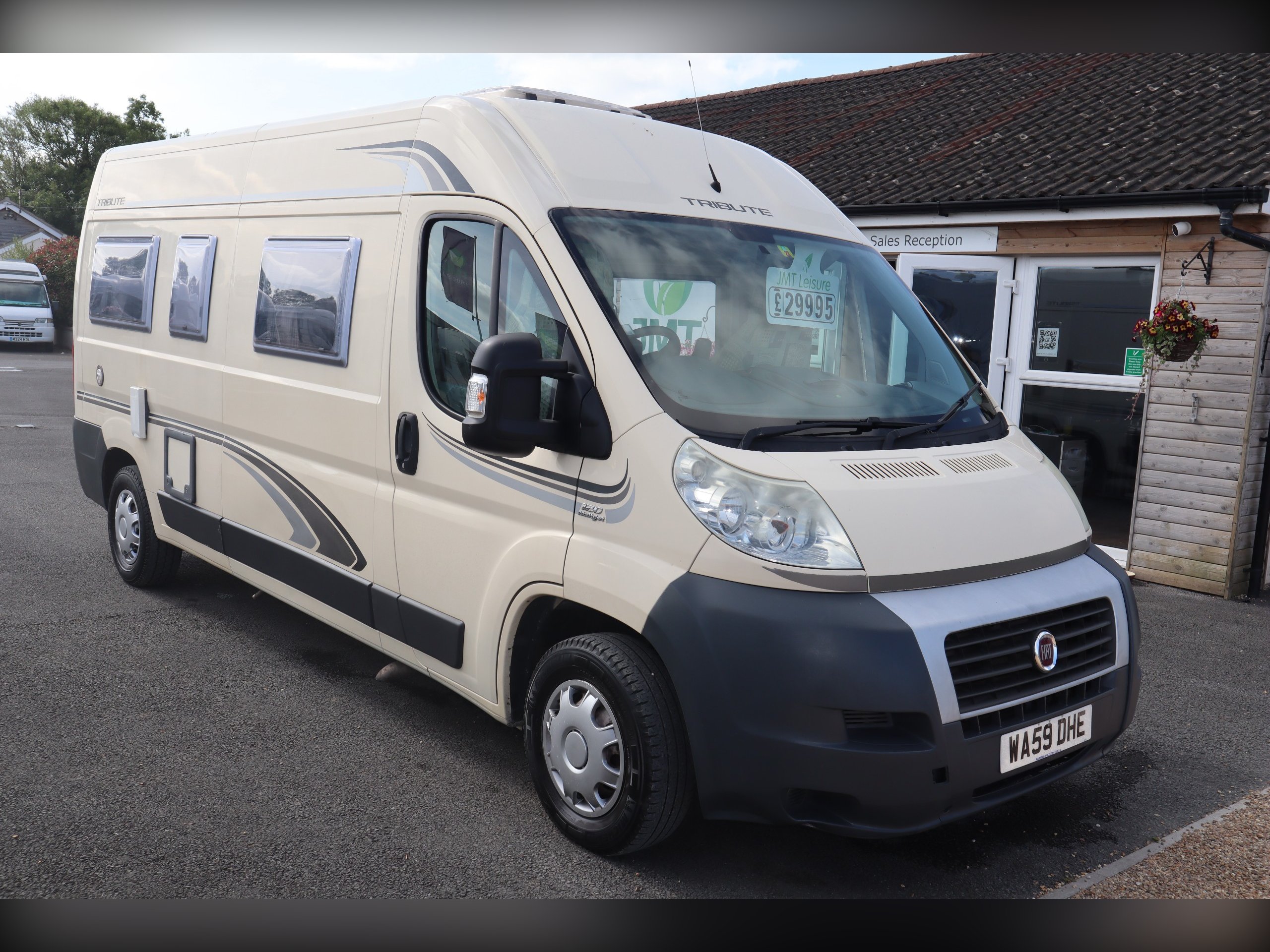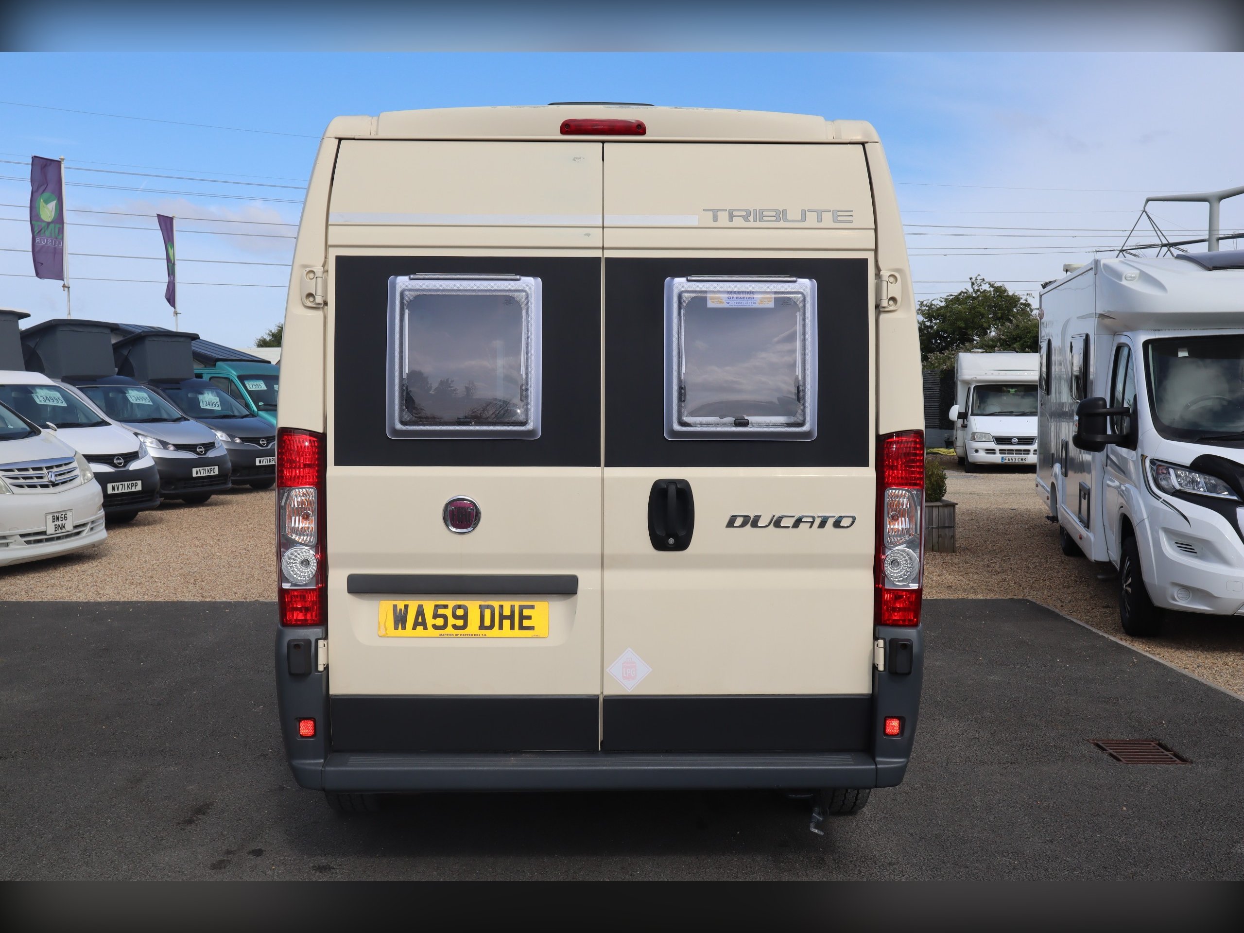 Trigano Tribute 655, 3 Berth, 3 Belts, Double transverse rear bed that can be folded up to walk out of rear doors or to access a large under bed storage area, Cruise Control, Diesel Heating