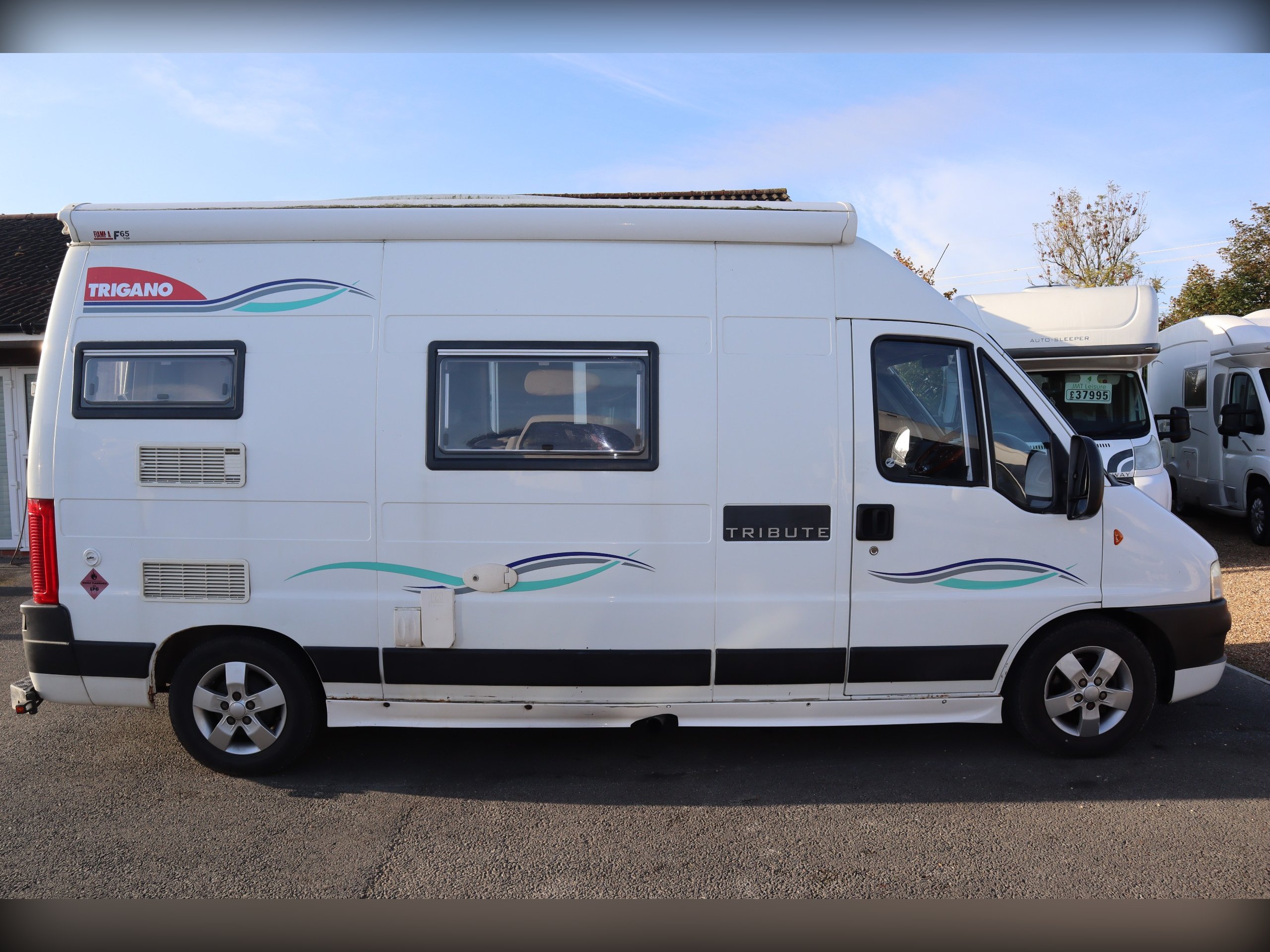 Trigano Tribute, 2 Berth, 3 Belts, Rear side Kitchen with hob, grill, microwave, sink and fridge freezer. Rear side bathroom with shower, cassette toilet and wash basin. Front lounge area with bench and forward facing belted travelling seat. Double or single bed options. Lots of service history with cambelt and water pump change in 2022. Mot to 11/08/26. Extras include Range Rover Electric front seats, Tow bar, Awning, alloy wheels and rear ladder. This has been someone's pride and joy and is reflected in the condition.