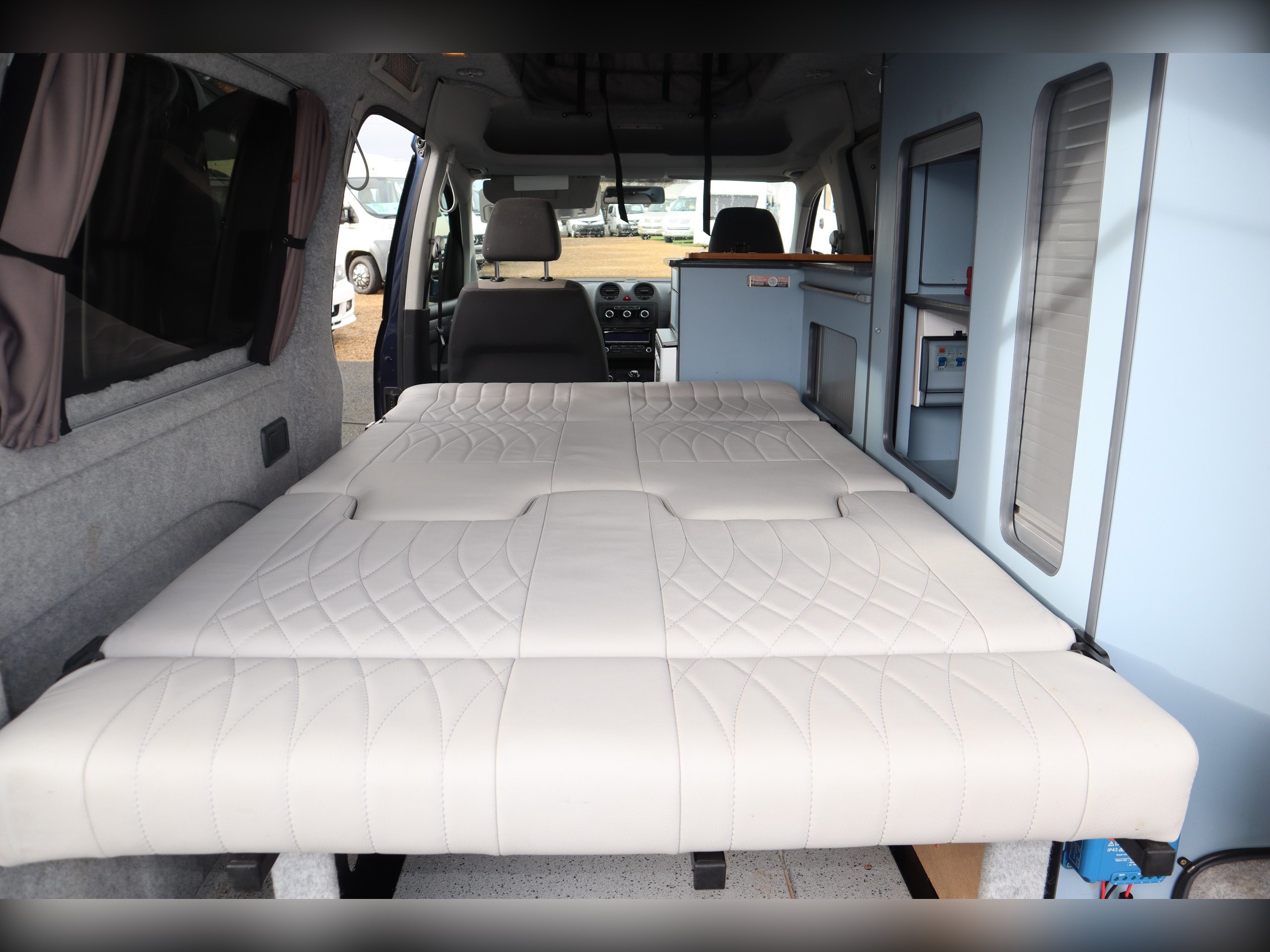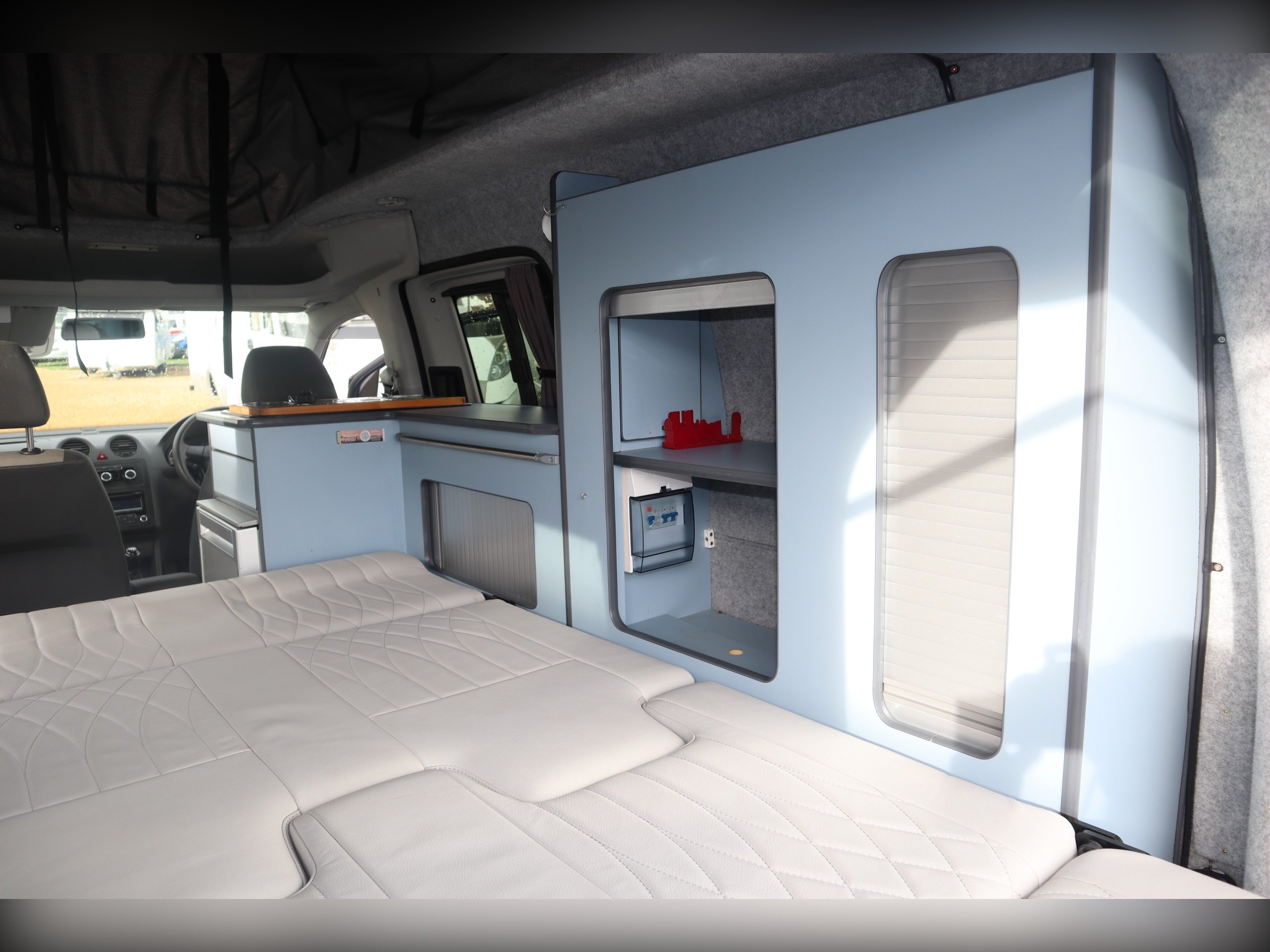 VW Caddy Maxi, 2 Berth, 2 Belts, Rock N Roll Bed, Pop Top Roof, Alloy Wheels, Cab Air Con, Mains Hook Up, Fridge, Sink & Hob